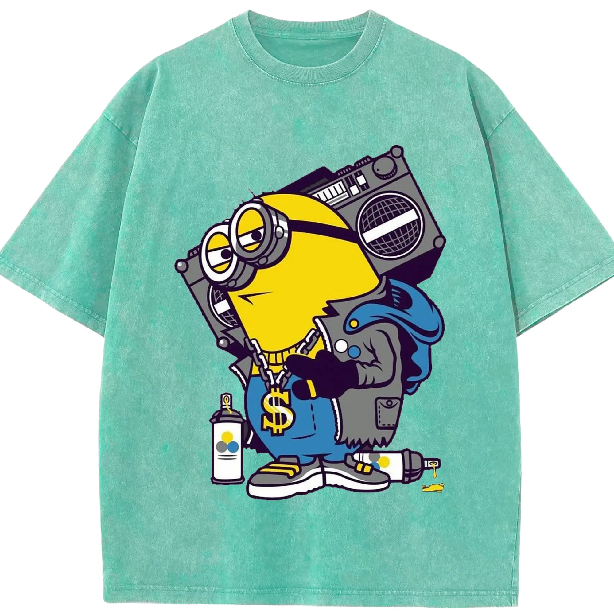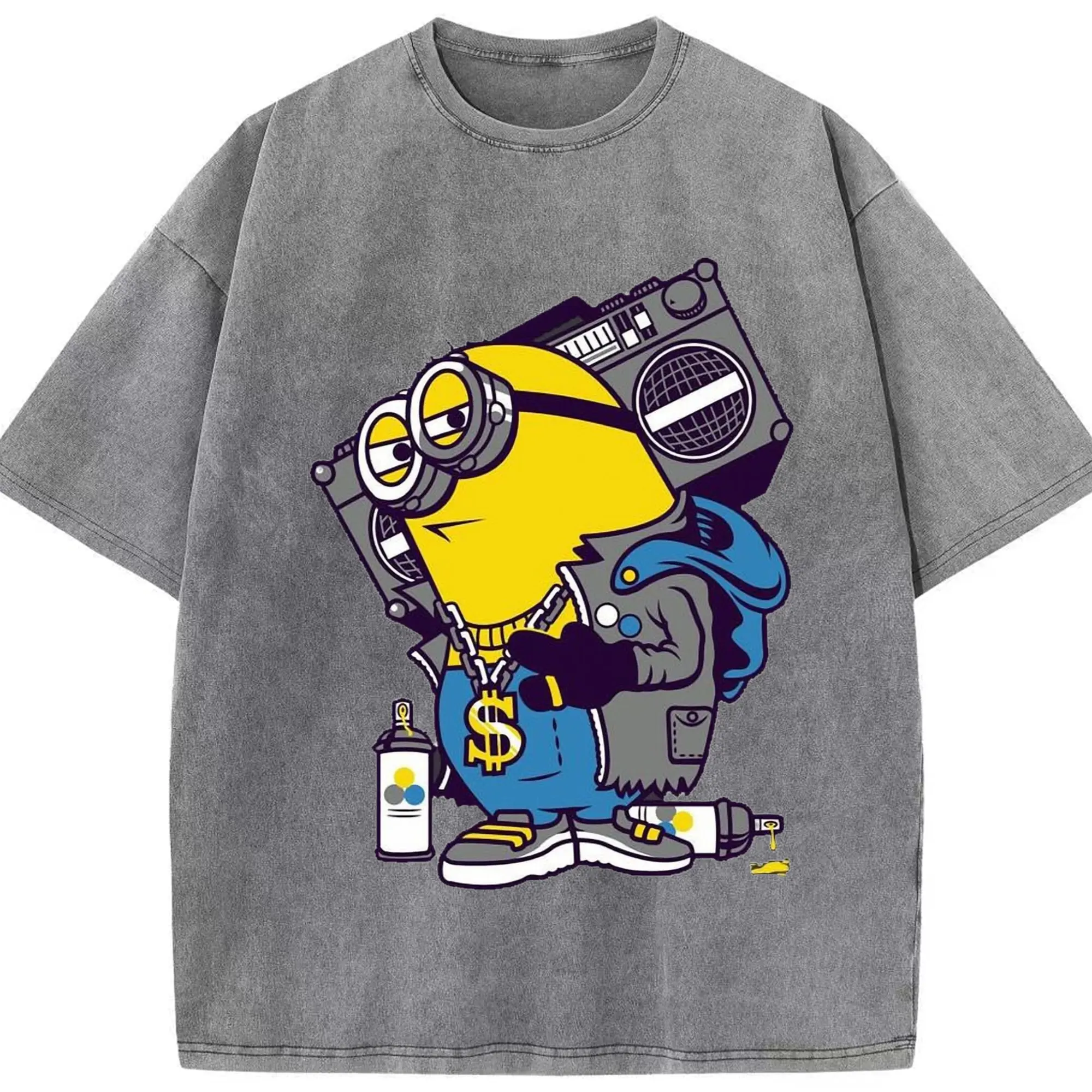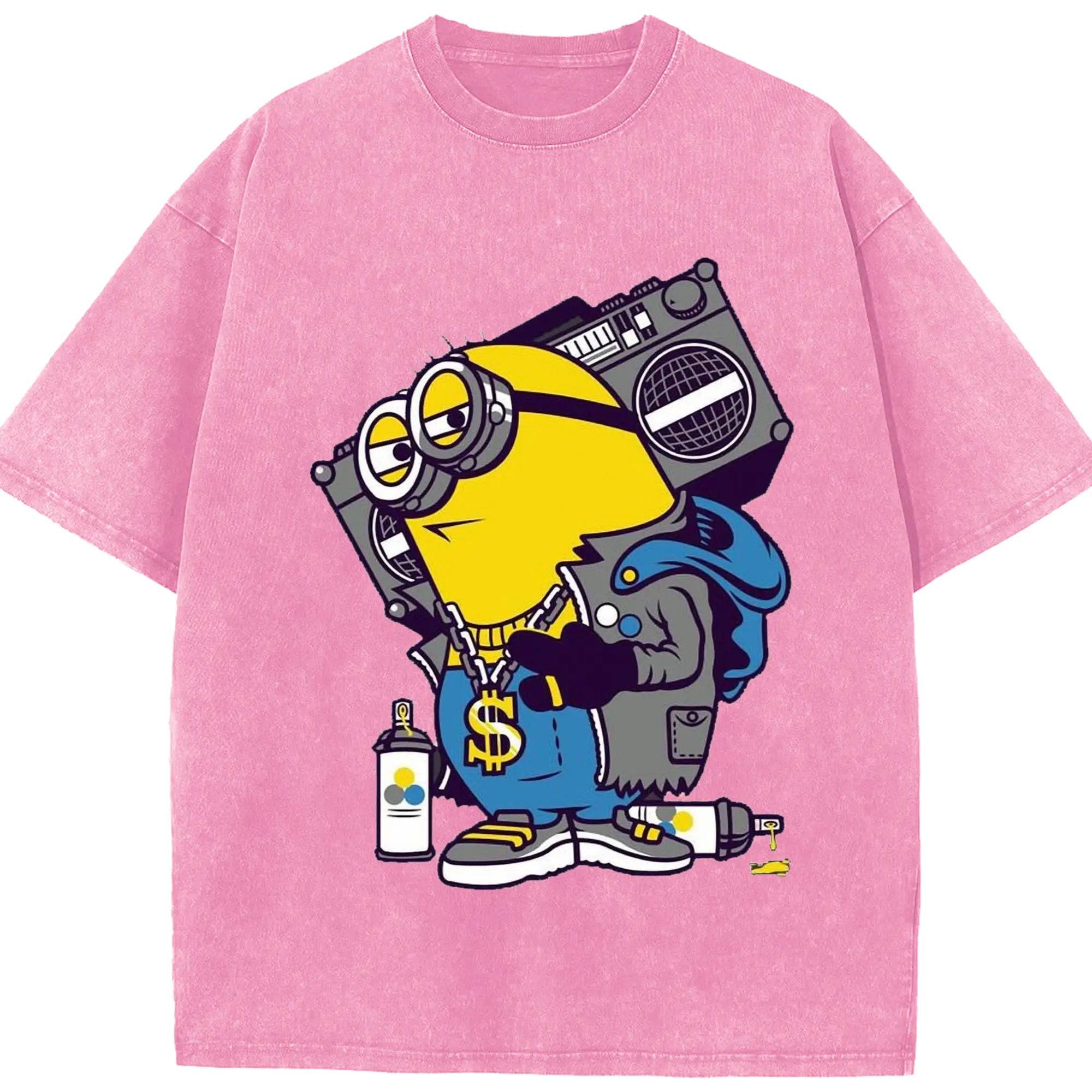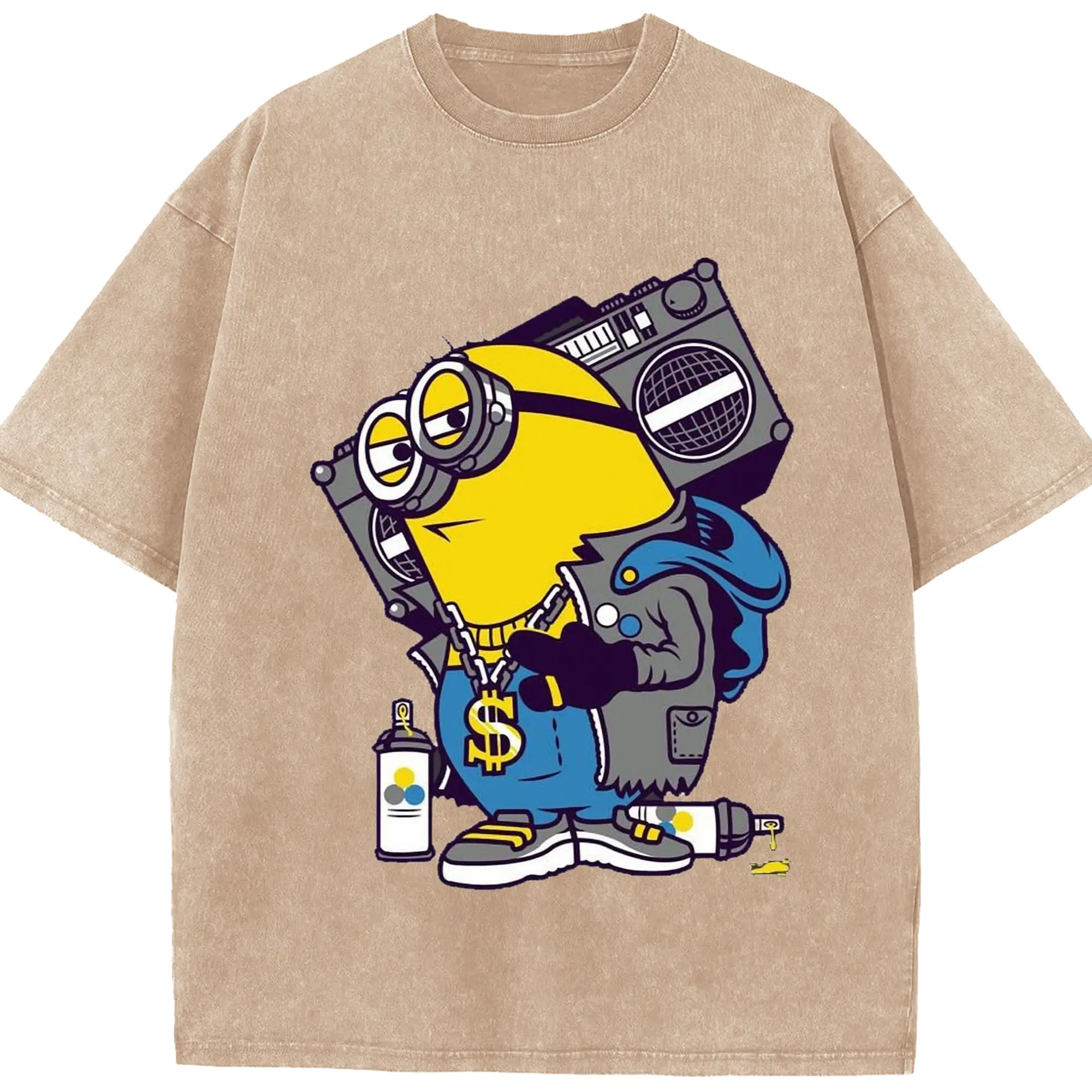 Minion shirts for adults - Washed Vintage Look 230g Cotton Oversized T-Shirt With Front Heat Transfer Print – Soft, Lightweight, Stylish Fit – Comfortable Casual Wear For Sports & Everyday Use