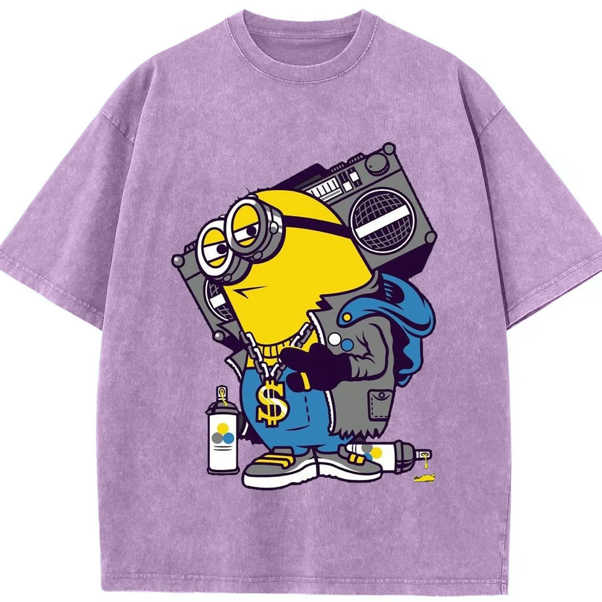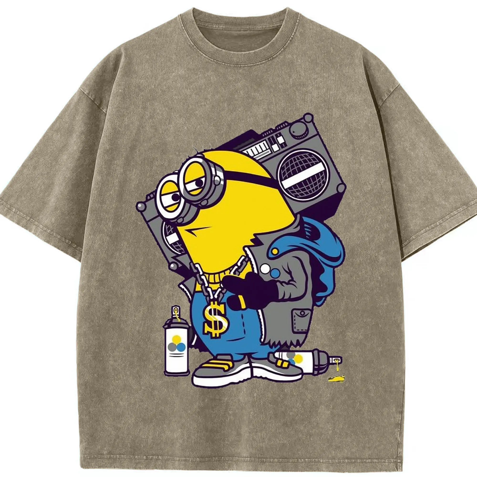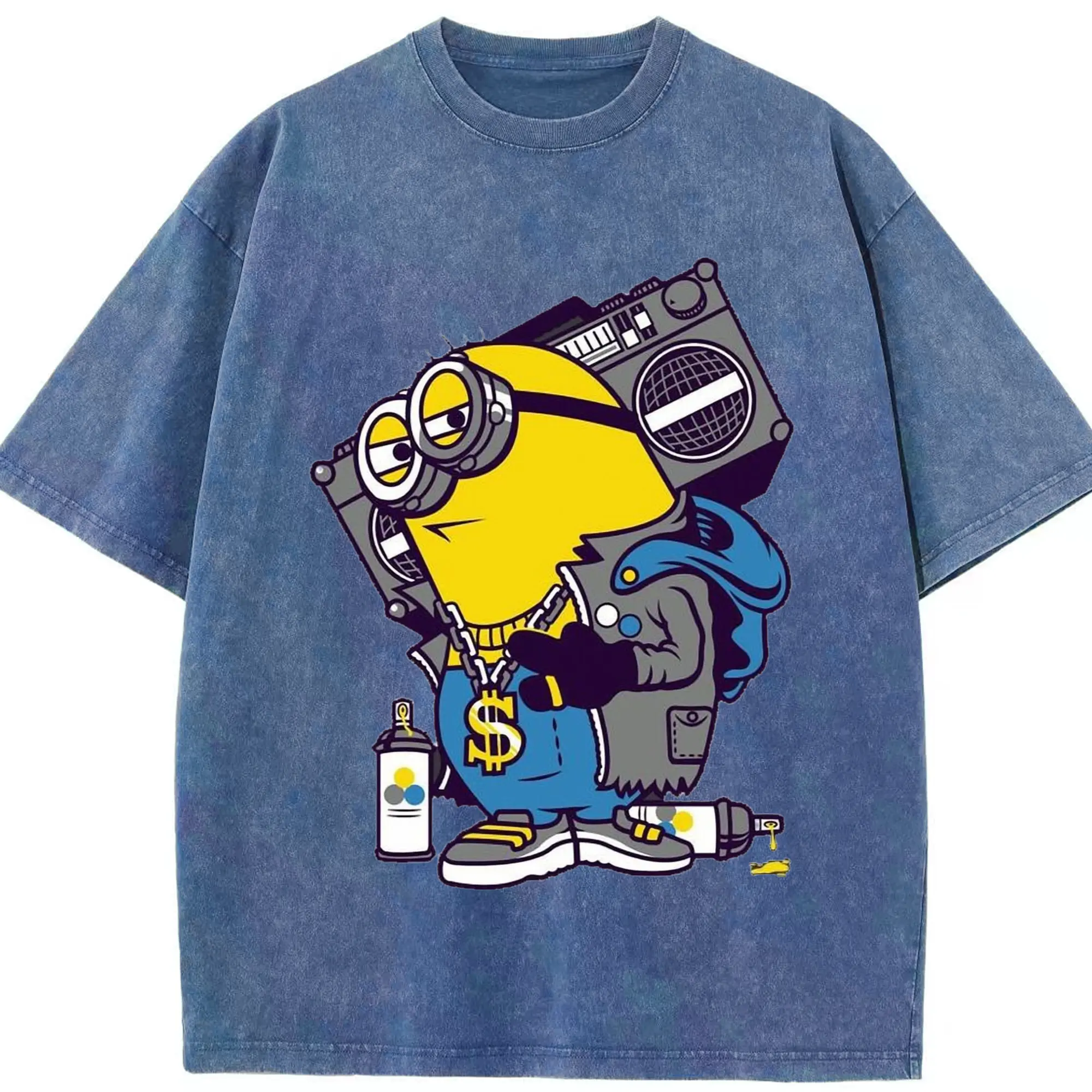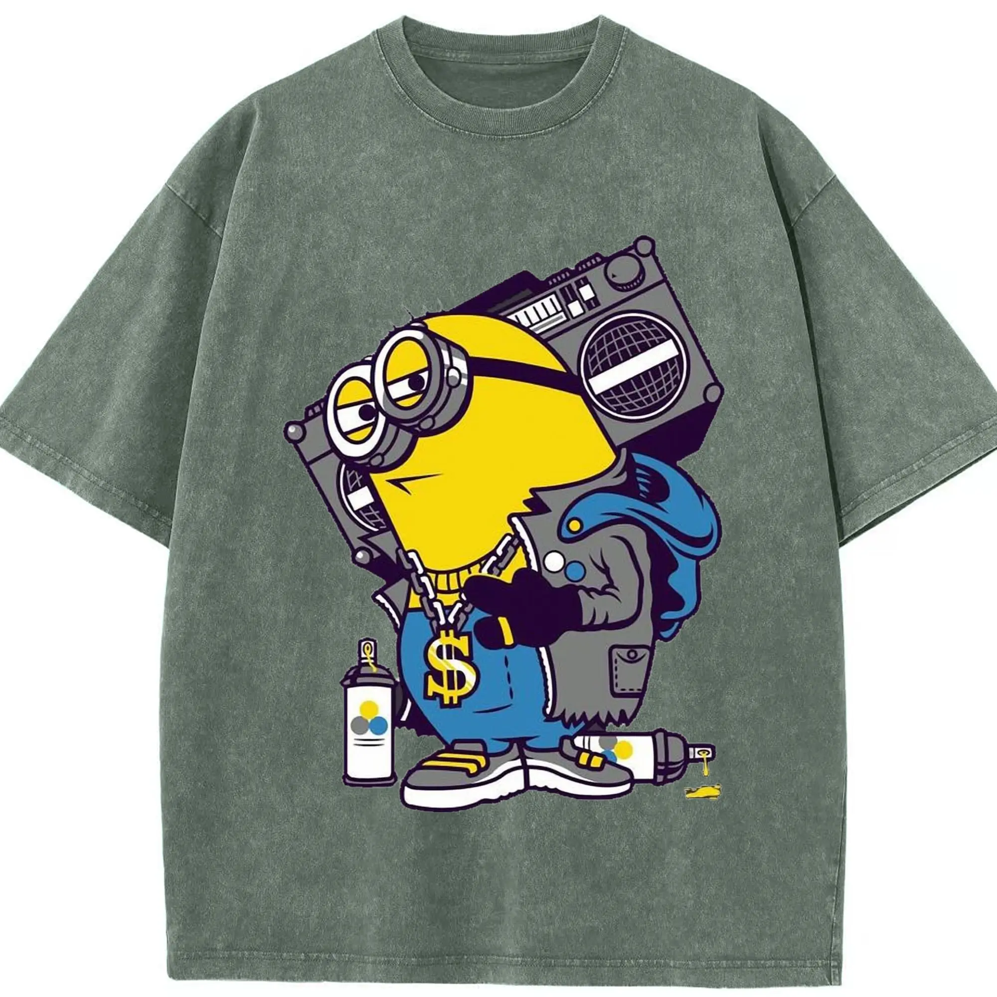 Minion shirts for adults - Washed Vintage Look 230g Cotton Oversized T-Shirt With Front Heat Transfer Print – Soft, Lightweight, Stylish Fit – Comfortable Casual Wear For Sports & Everyday Use