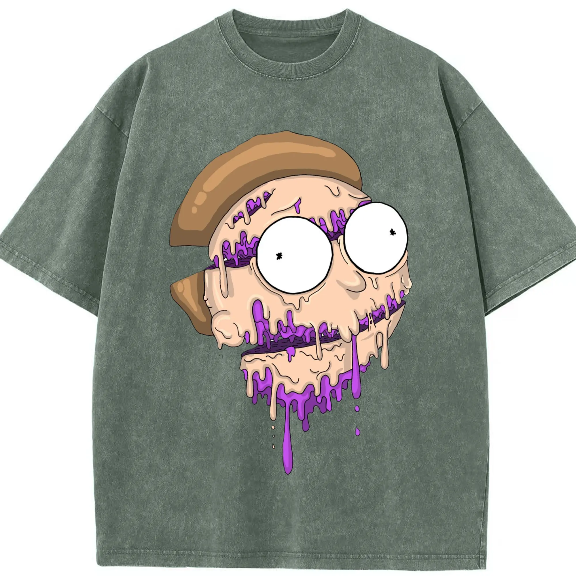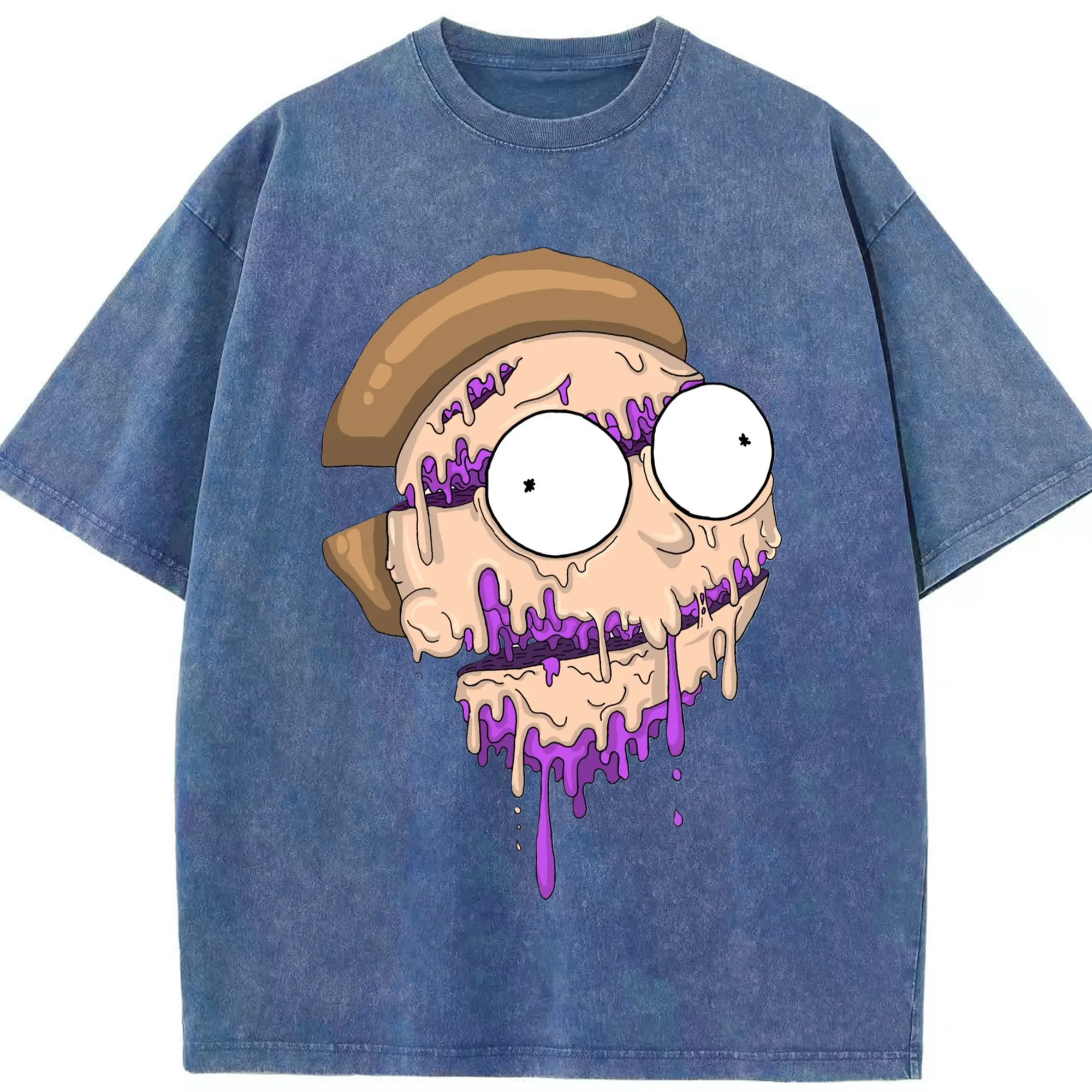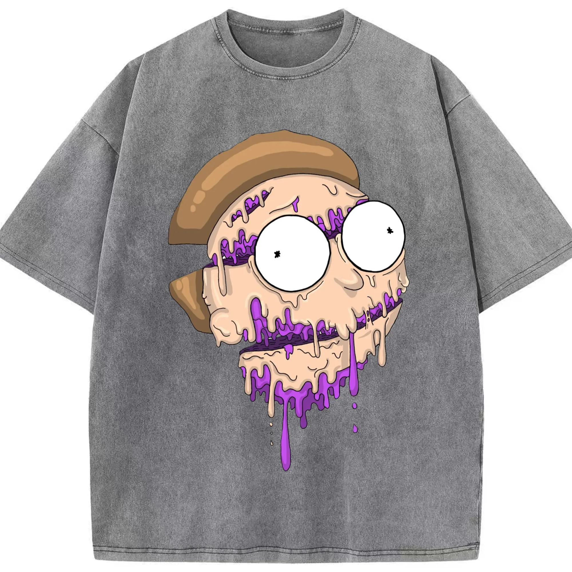 Morty smith cartoon face t-shirt - Washed Vintage Look 230g Cotton Oversized T-Shirt With Front Heat Transfer Print – Soft, Lightweight, Stylish Fit – Comfortable Casual Wear For Sports & Everyday Use