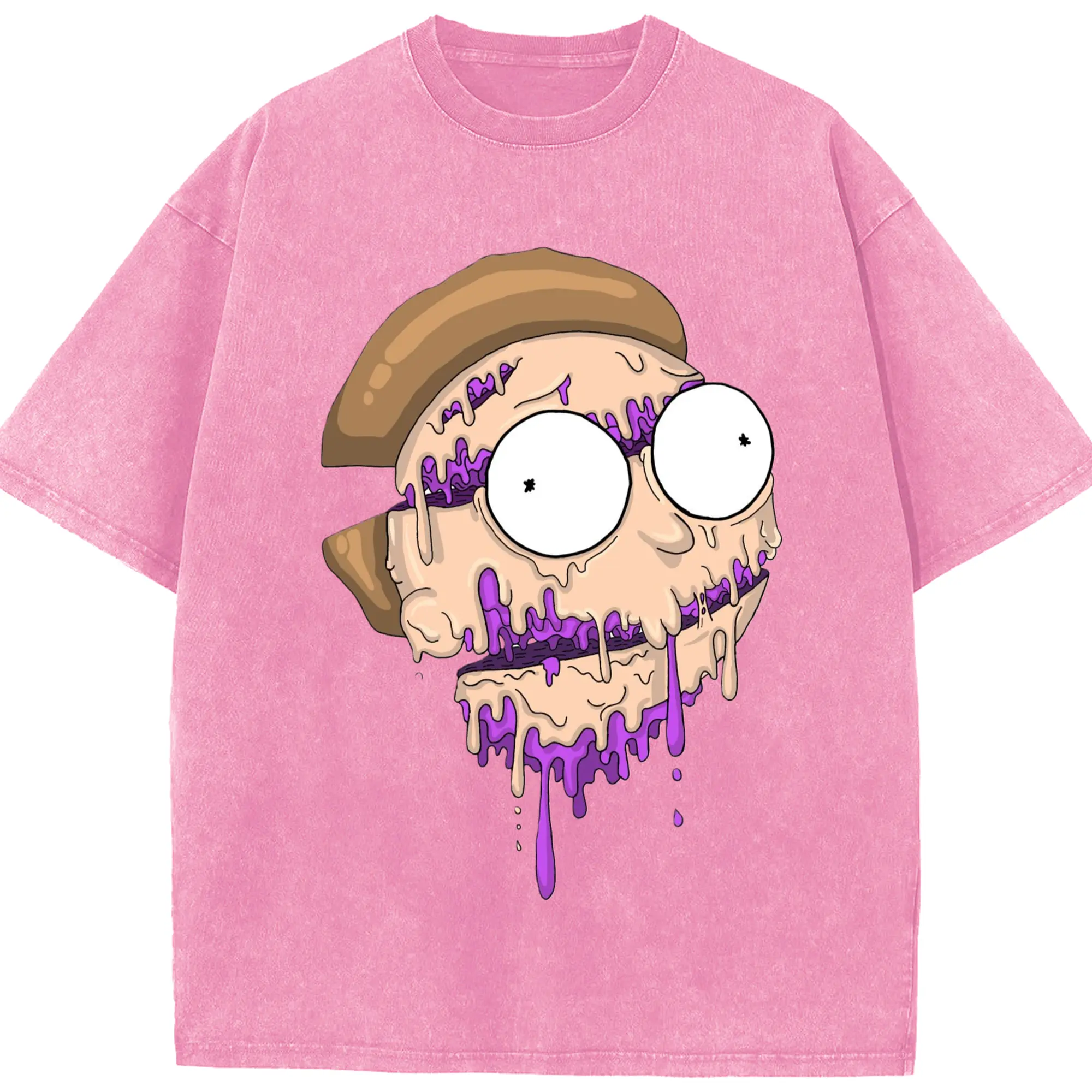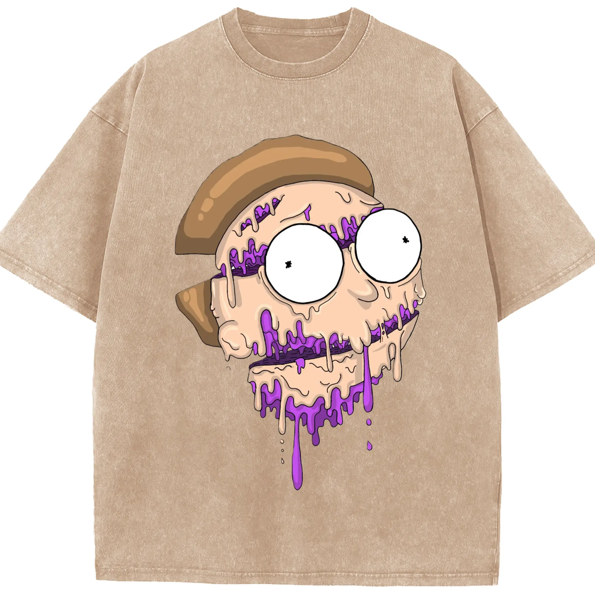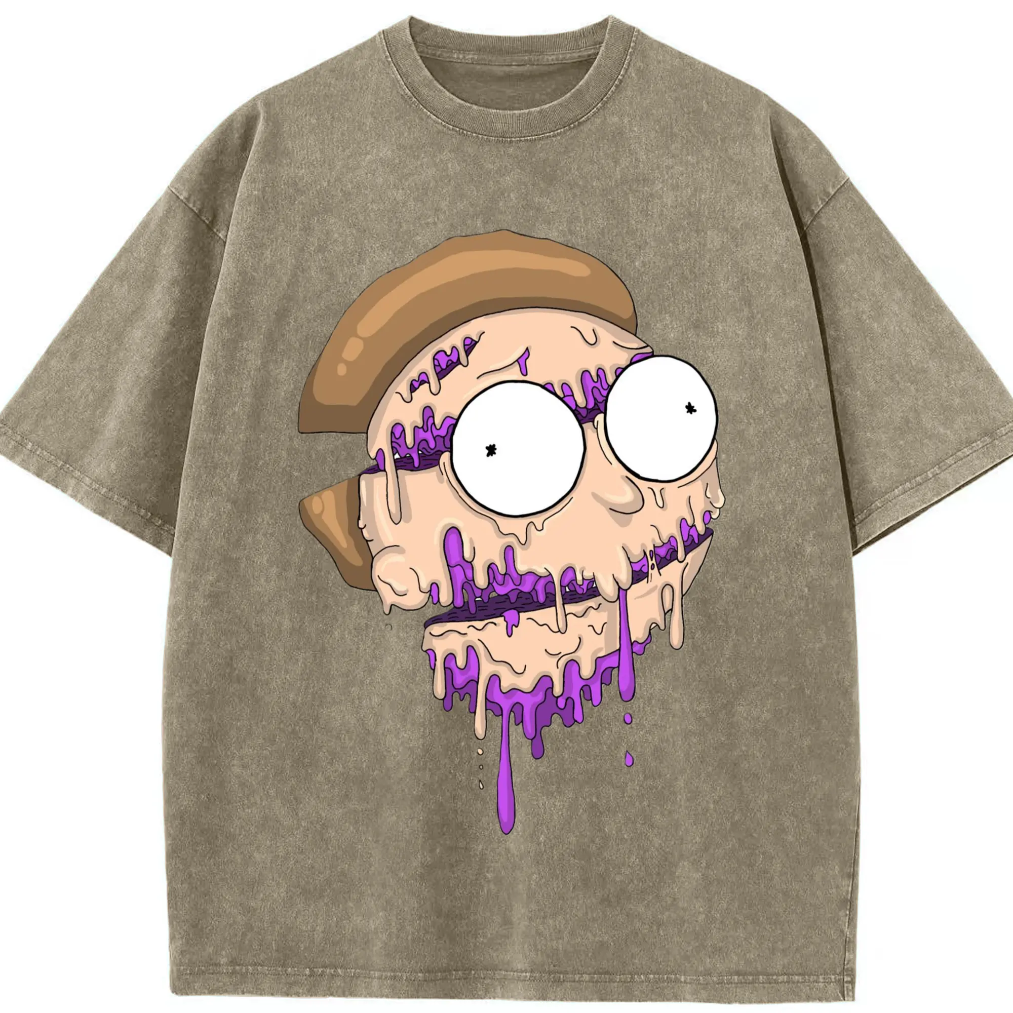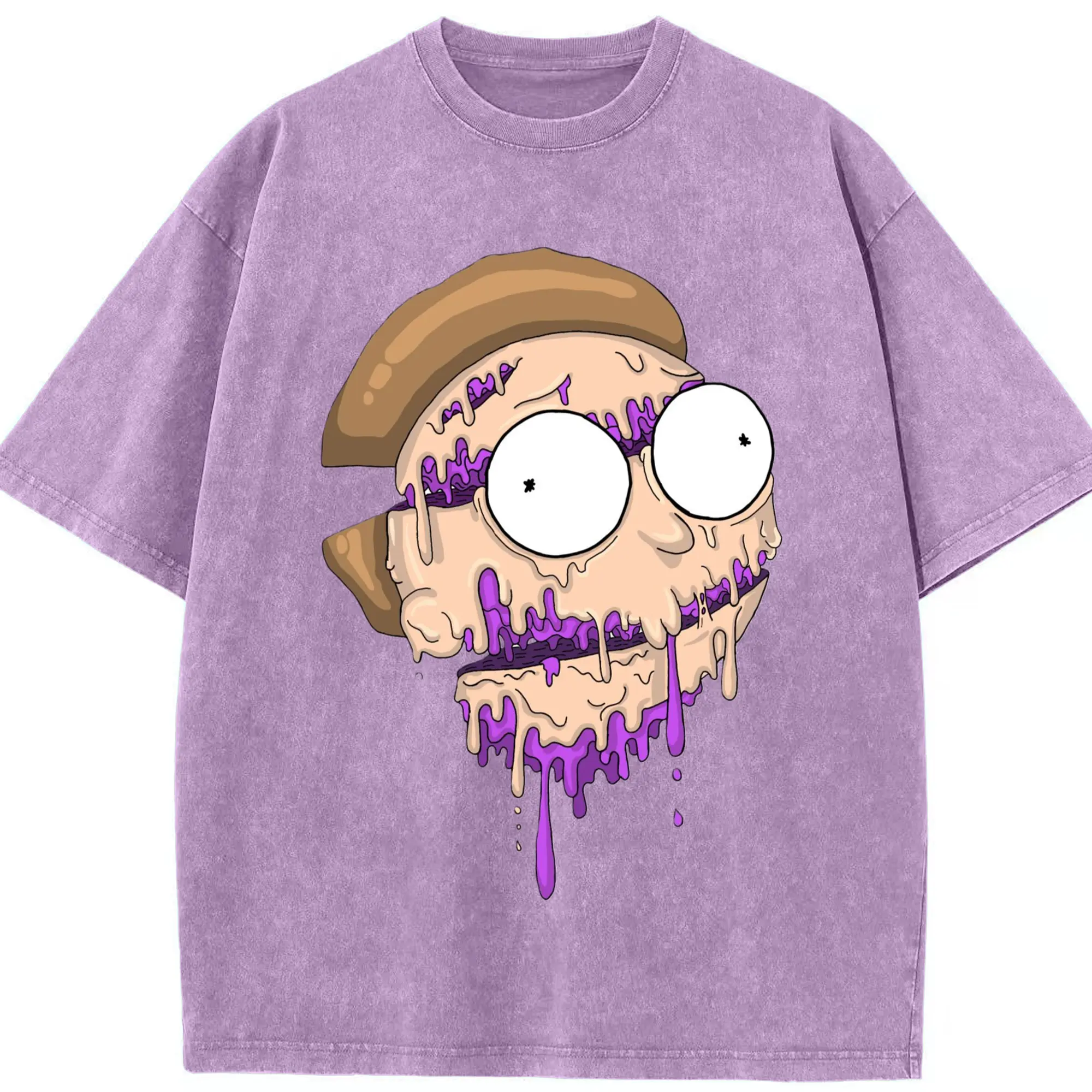 Morty smith cartoon face t-shirt - Washed Vintage Look 230g Cotton Oversized T-Shirt With Front Heat Transfer Print – Soft, Lightweight, Stylish Fit – Comfortable Casual Wear For Sports & Everyday Use