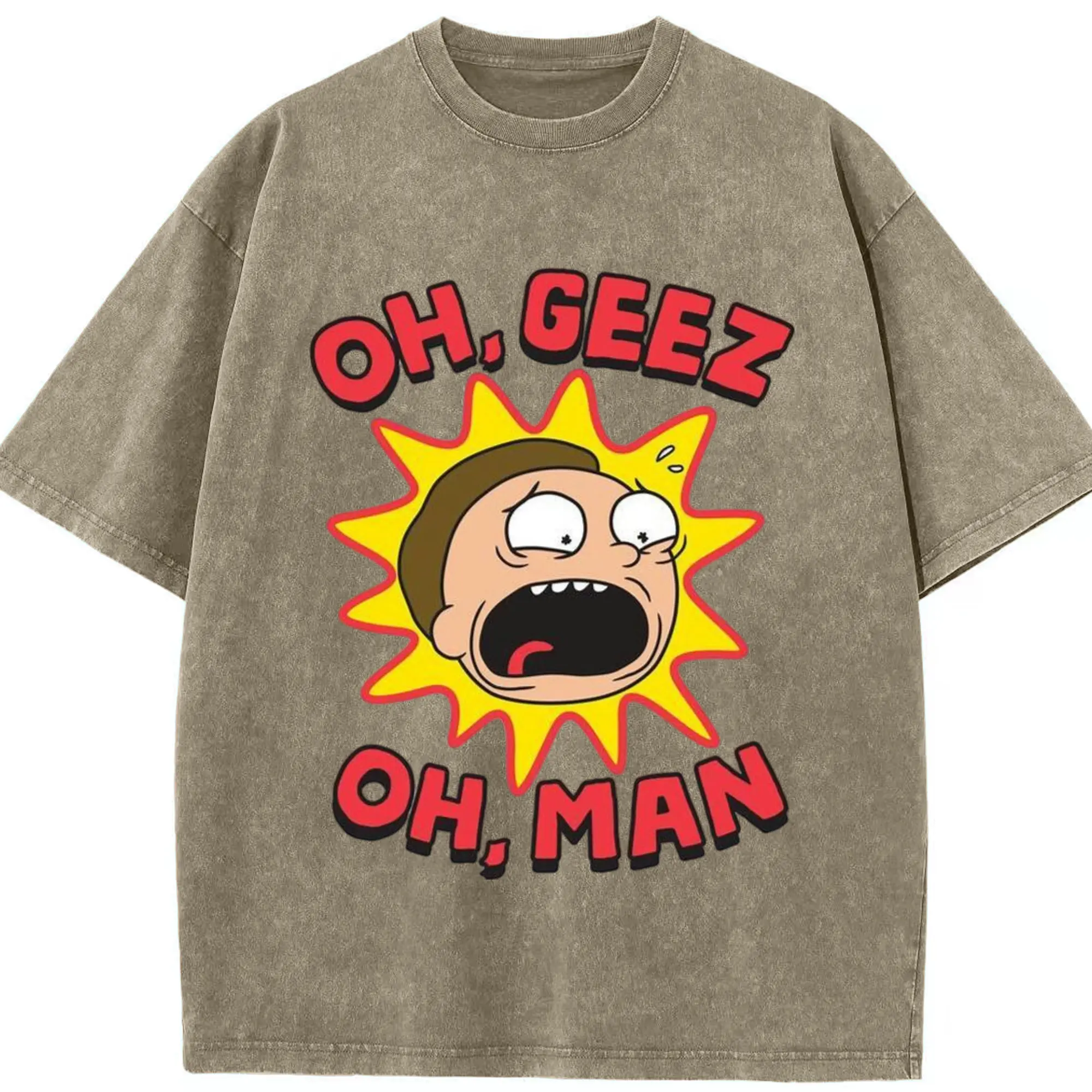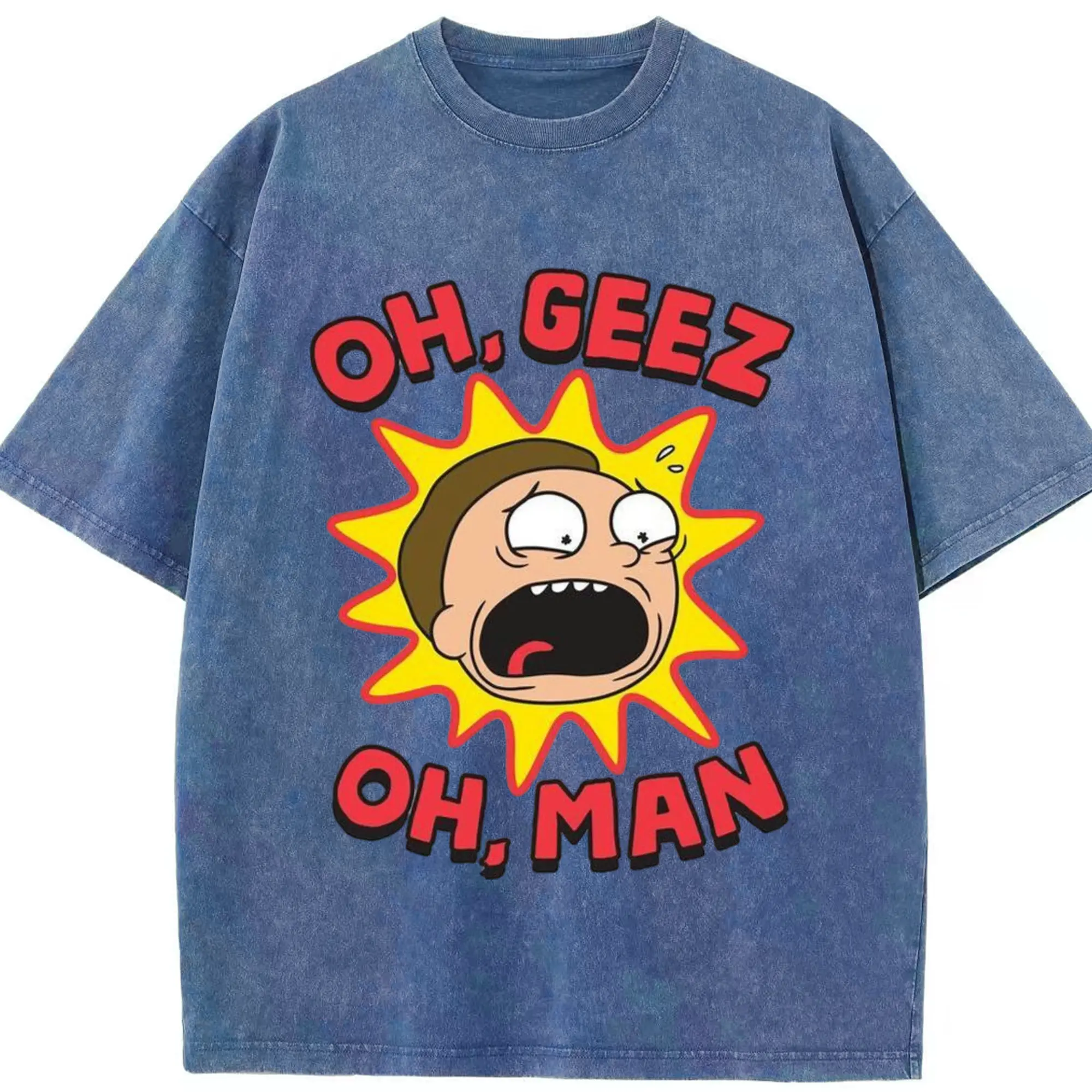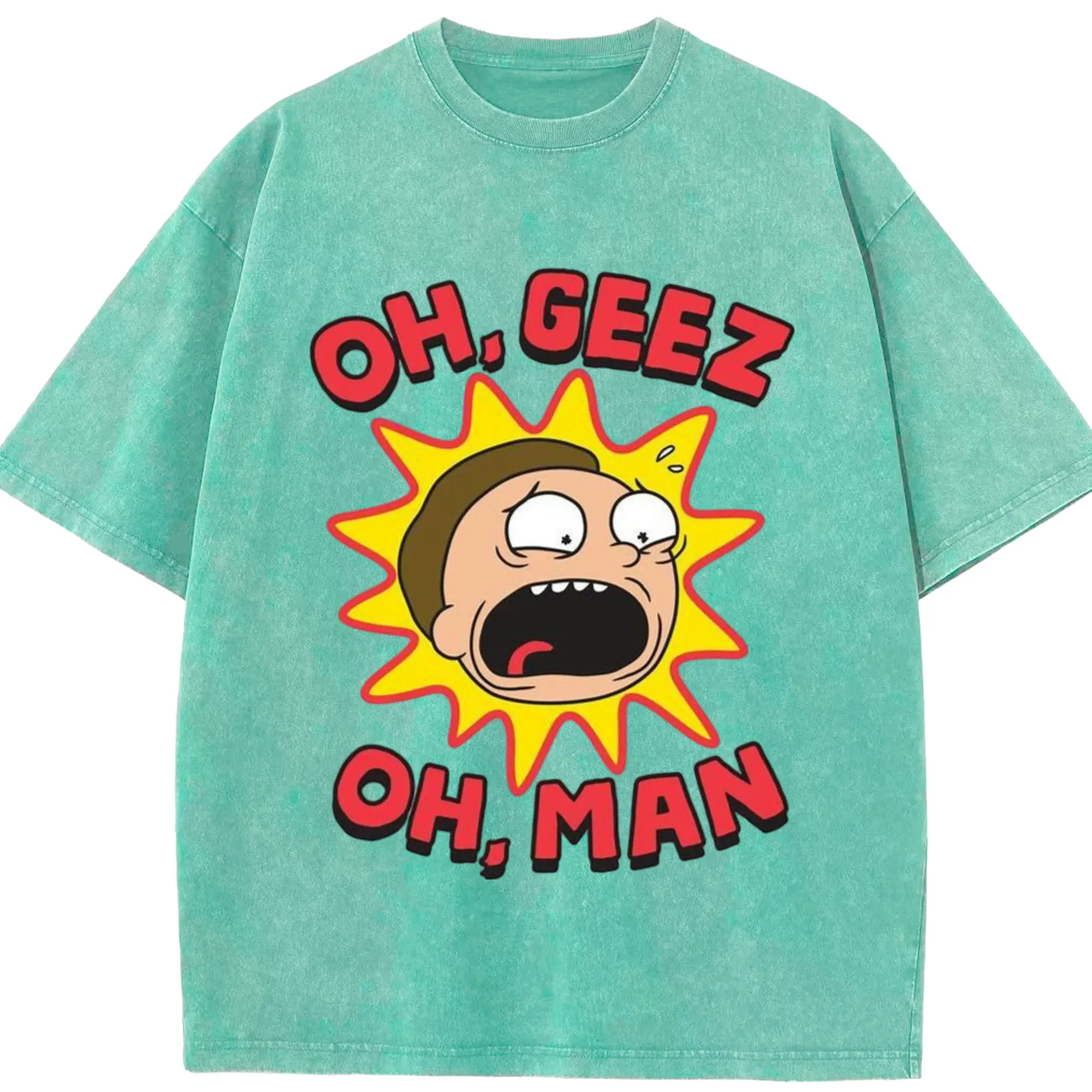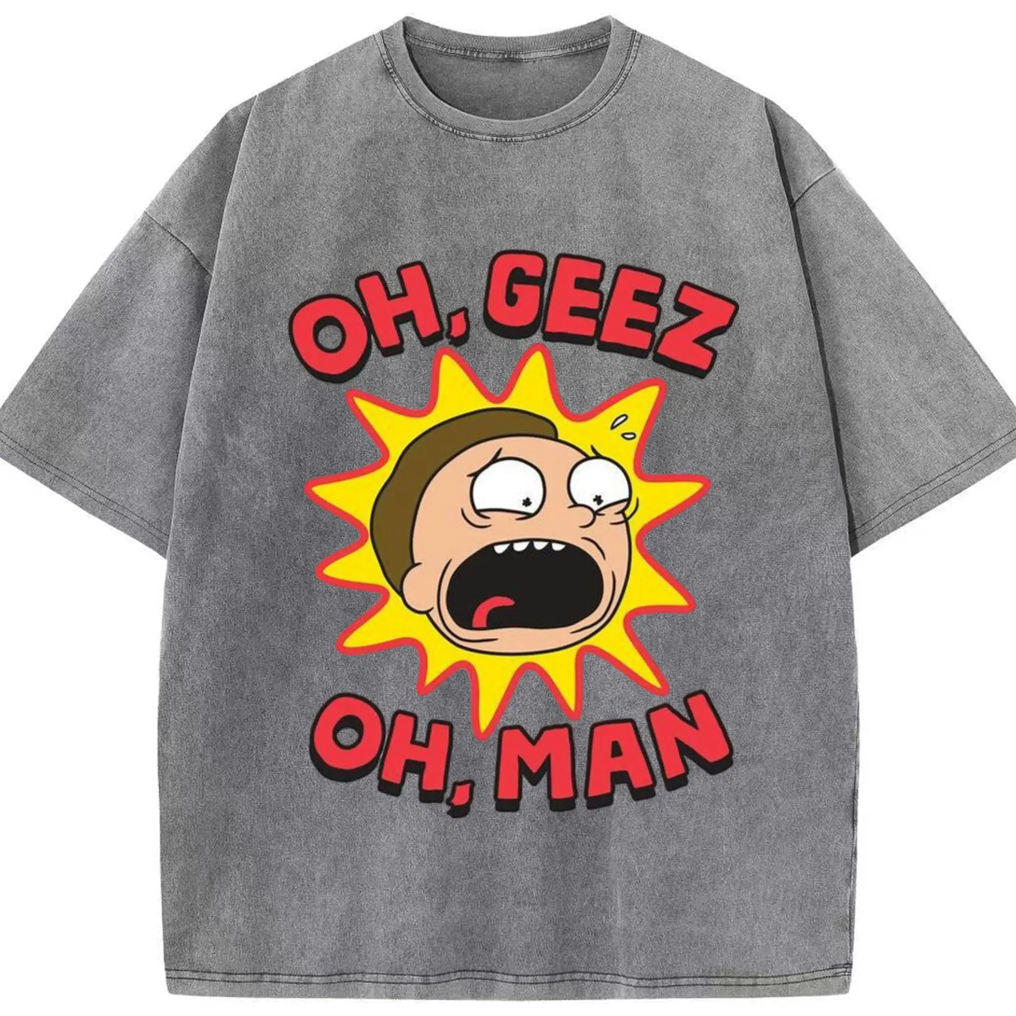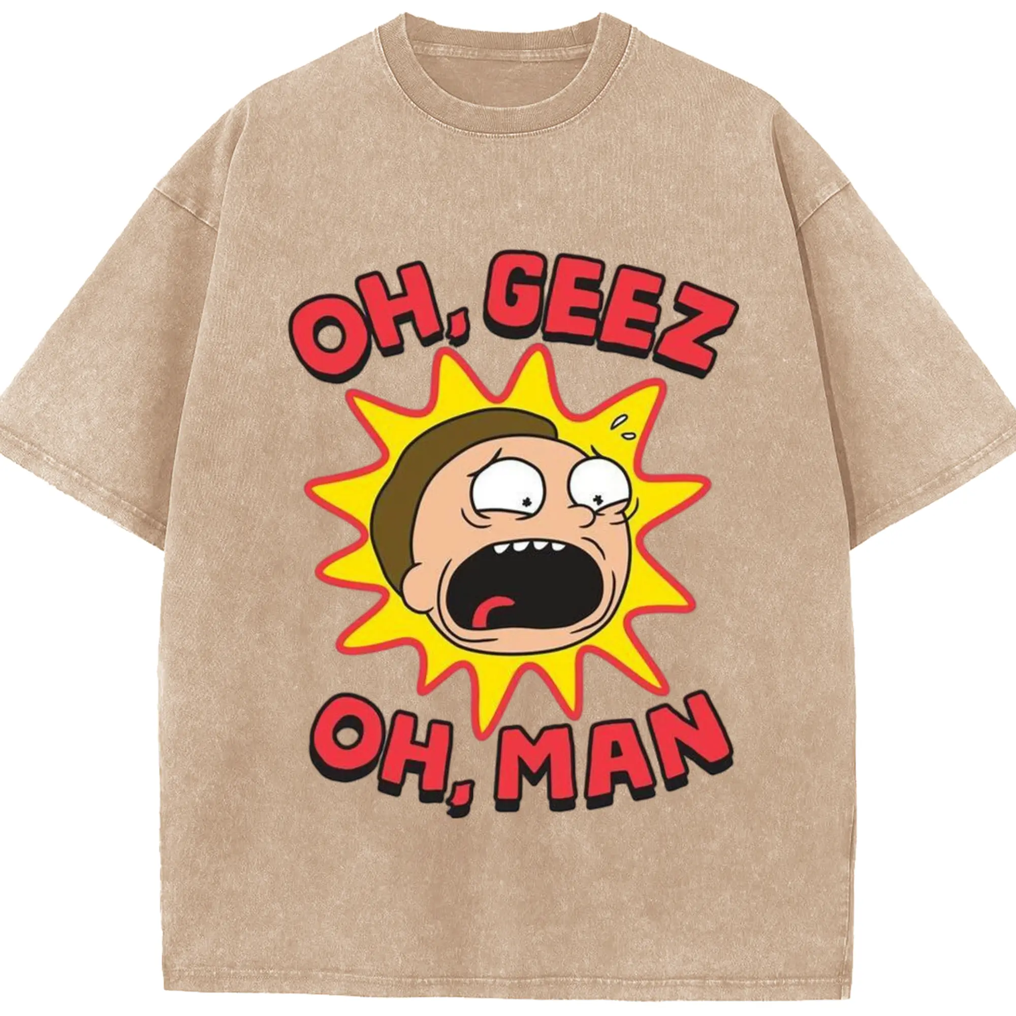 Morty smith cartoon t-shirt - Washed Vintage Look 230g Cotton Oversized T-Shirt With Front Heat Transfer Print – Soft, Lightweight, Stylish Fit – Comfortable Casual Wear For Sports & Everyday Use