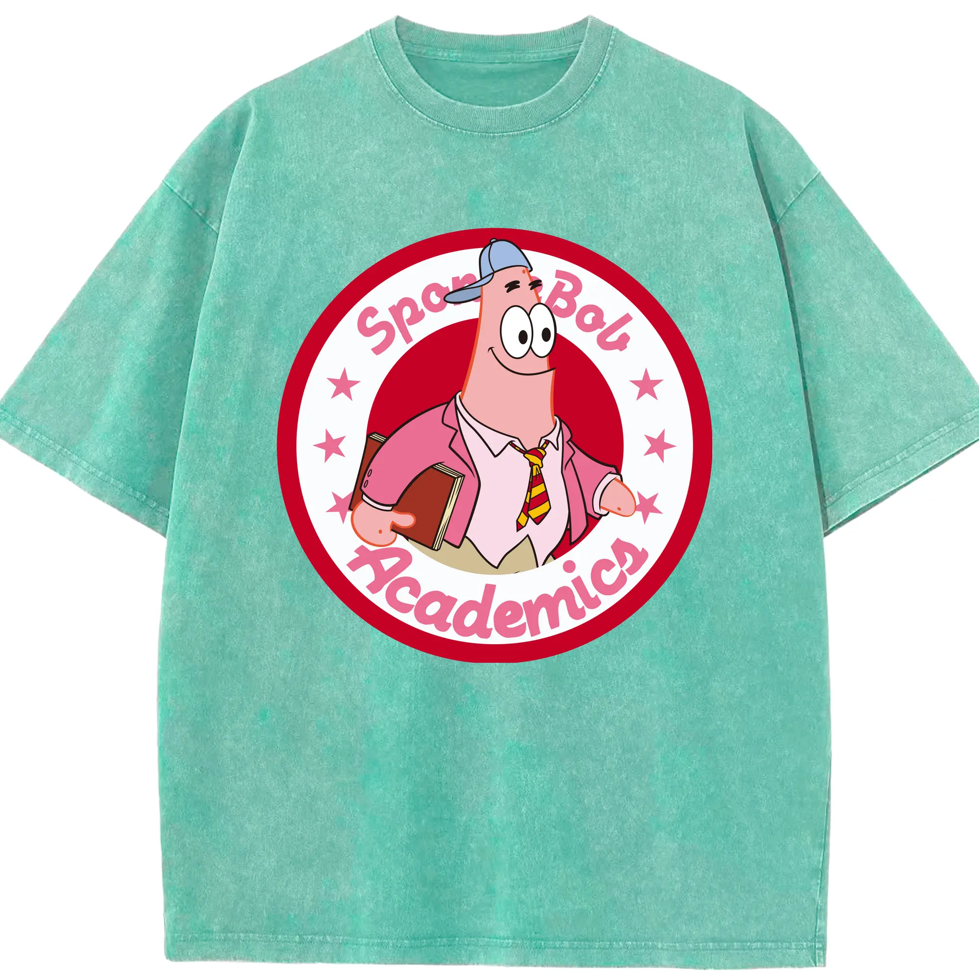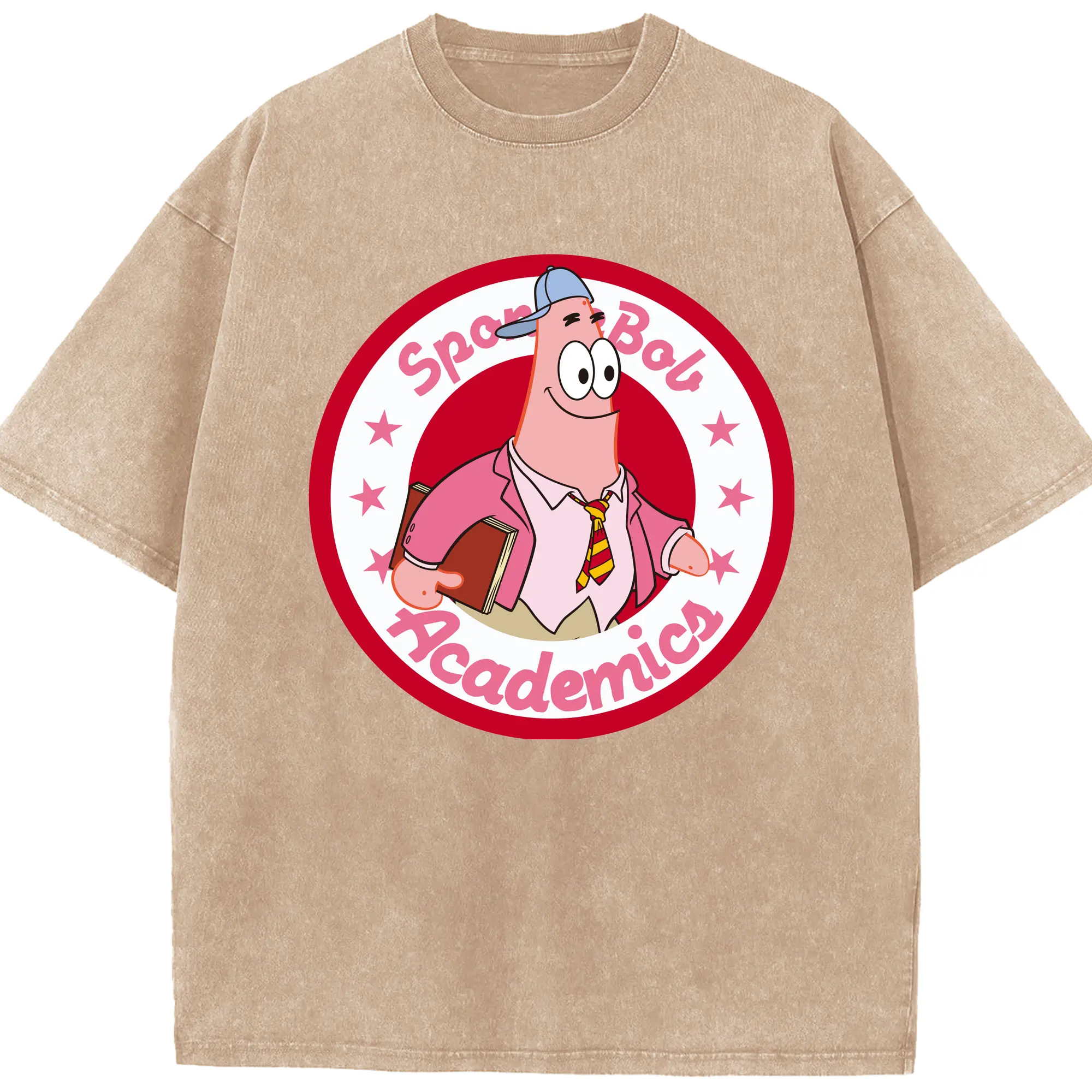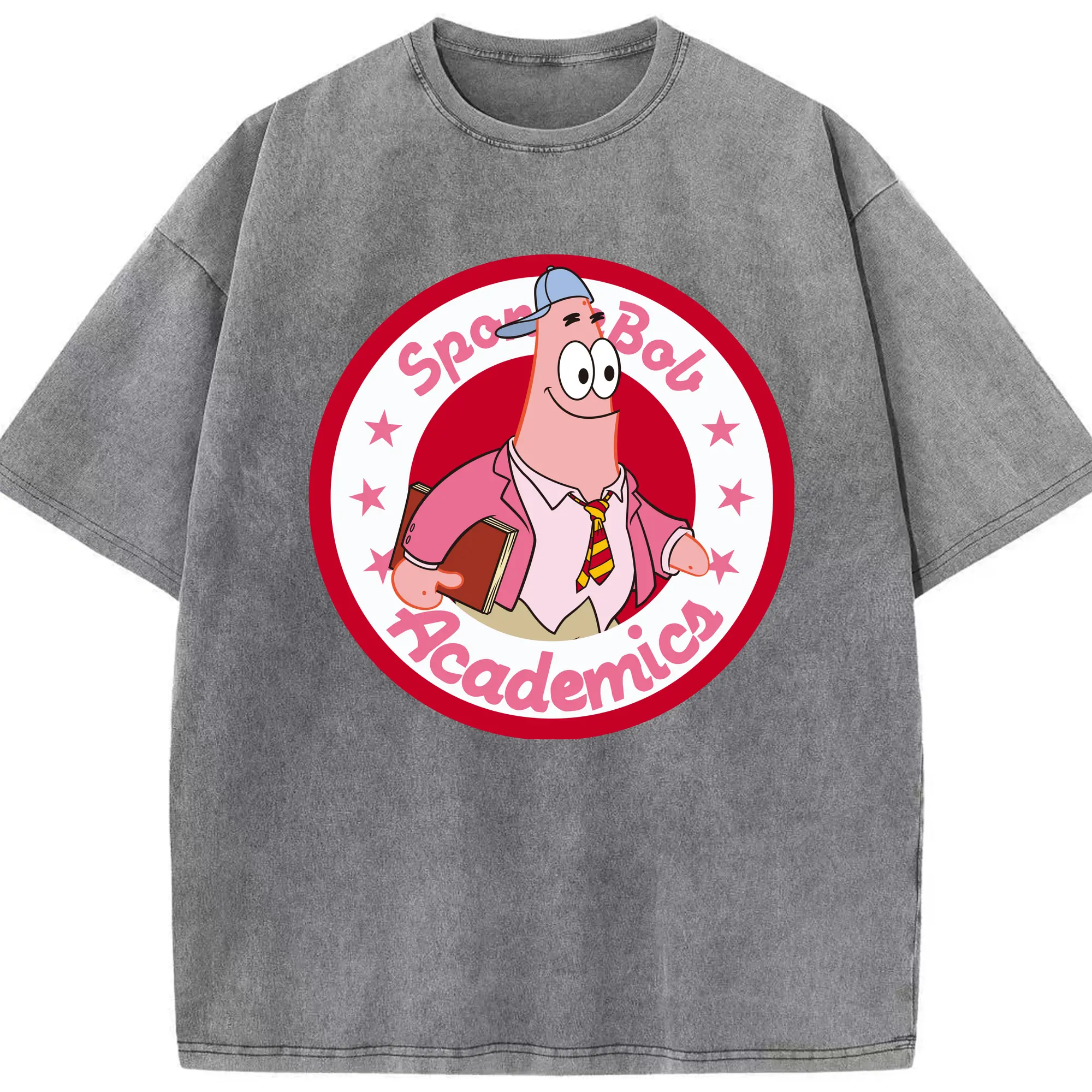 Patrick Star academic Graphic T-Shirt - Washed Vintage Look 230g Cotton Oversized T-Shirt With Front Heat Transfer Print – Soft, Lightweight, Stylish Fit – Comfortable Casual Wear For Sports & Everyday Use