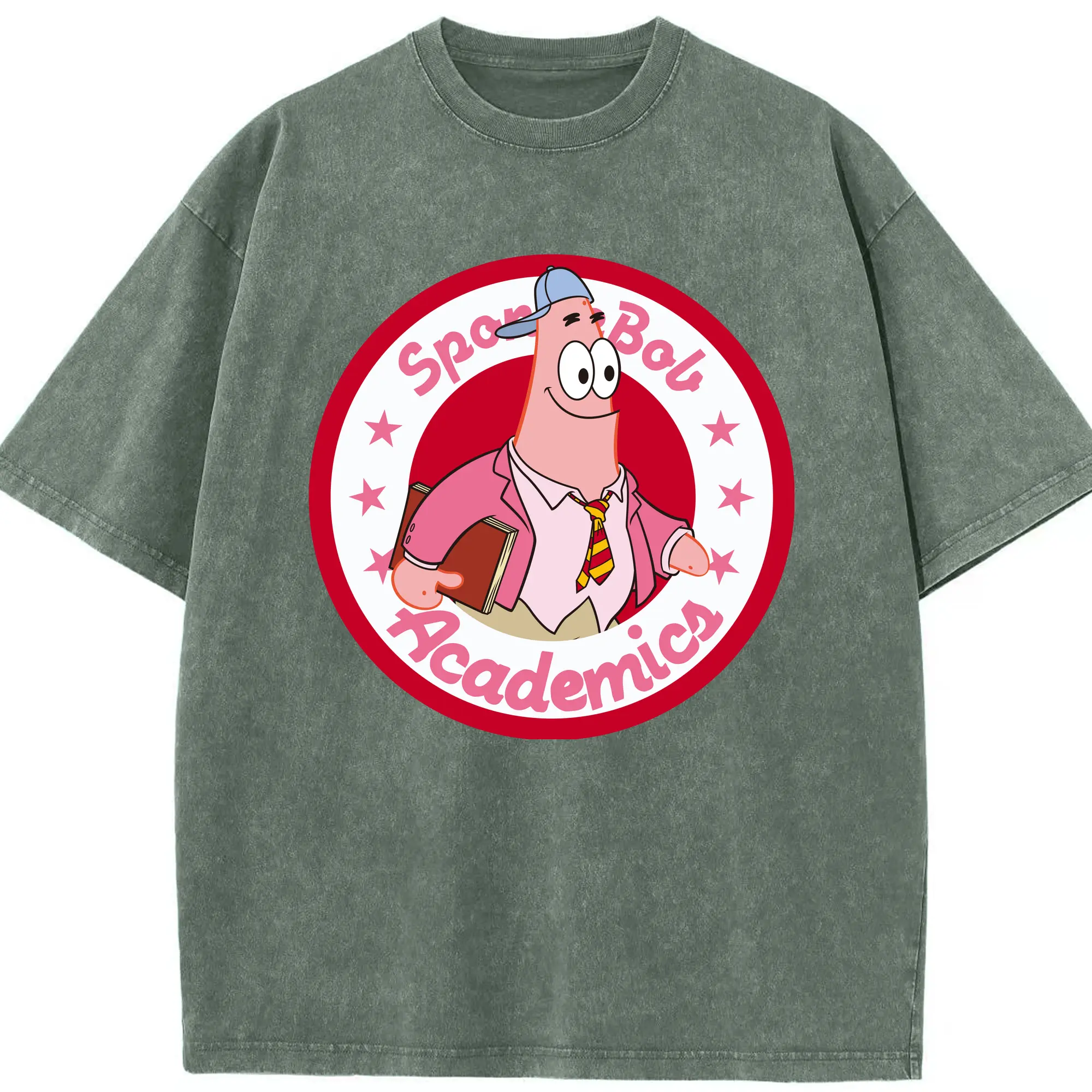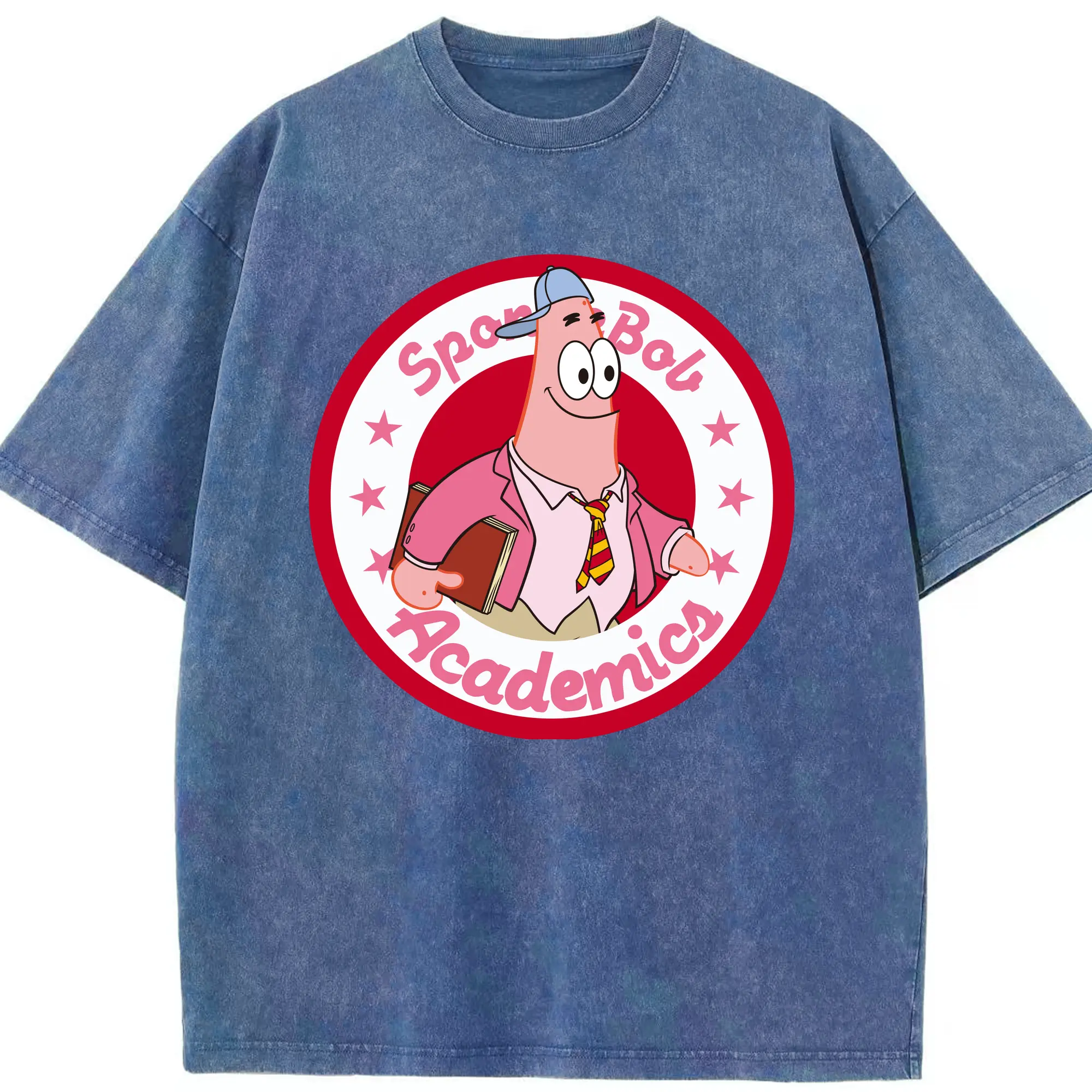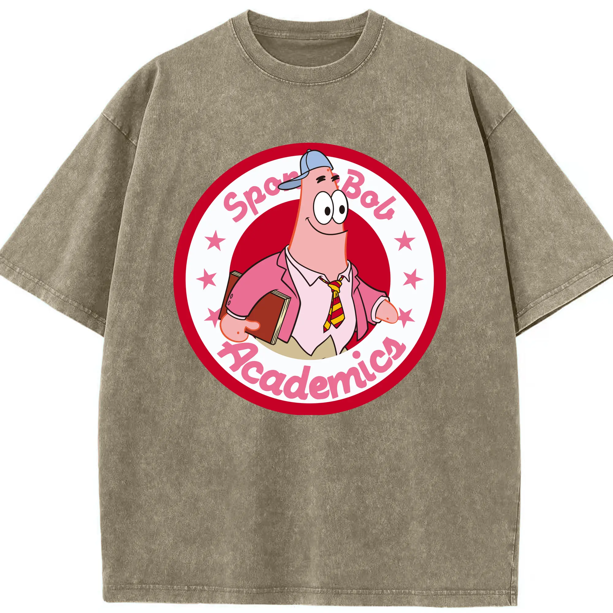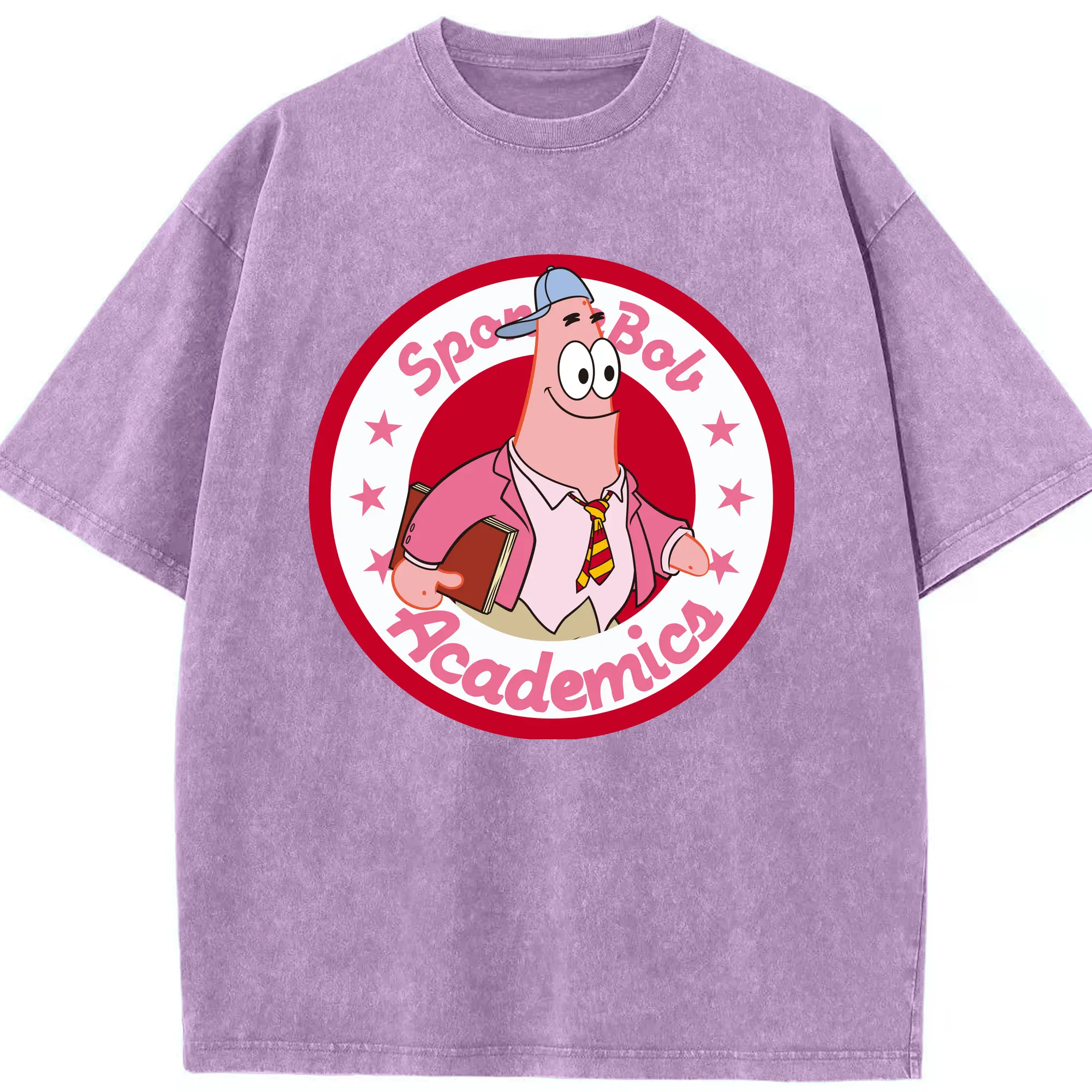Patrick Star academic Graphic T-Shirt - Washed Vintage Look 230g Cotton Oversized T-Shirt With Front Heat Transfer Print – Soft, Lightweight, Stylish Fit – Comfortable Casual Wear For Sports & Everyday Use