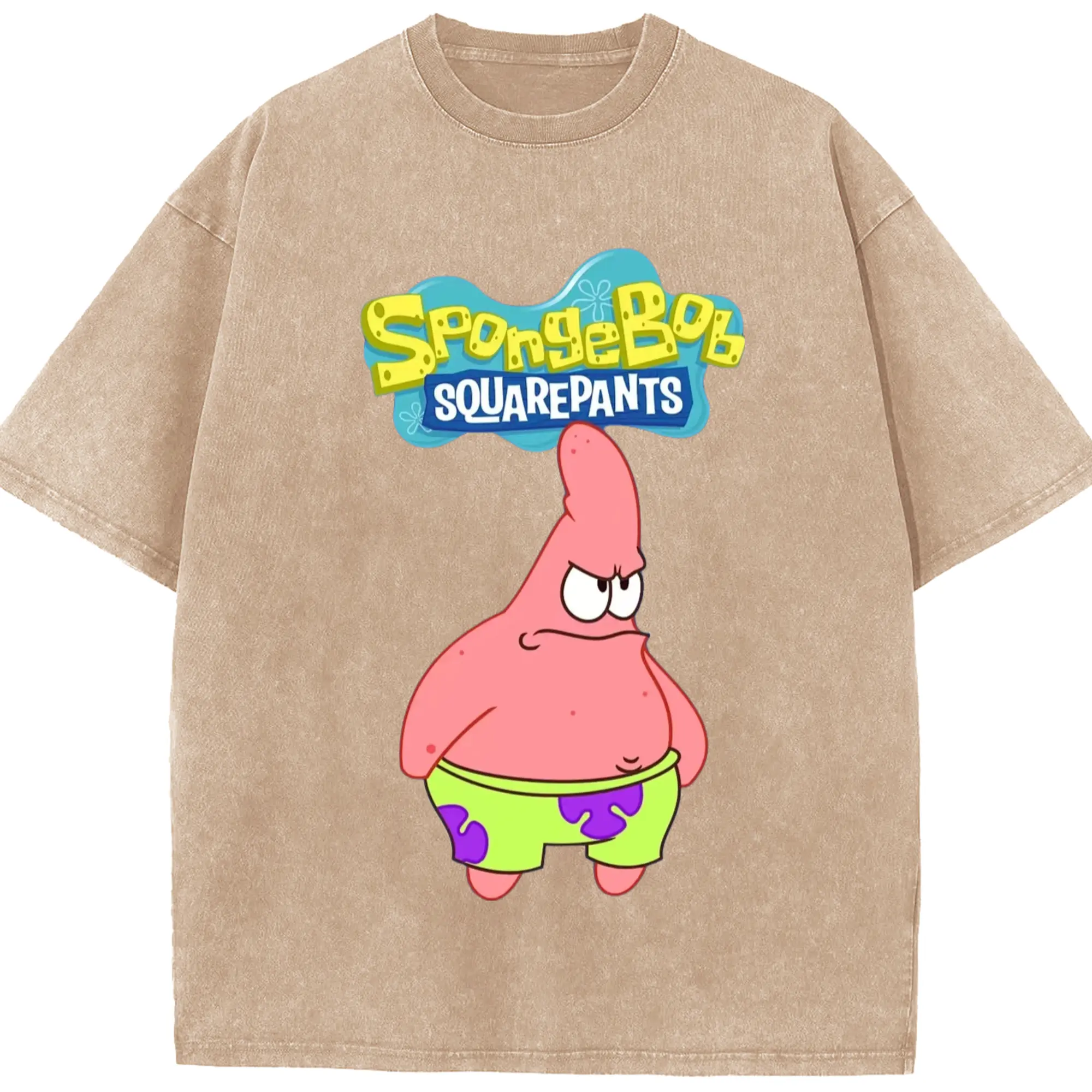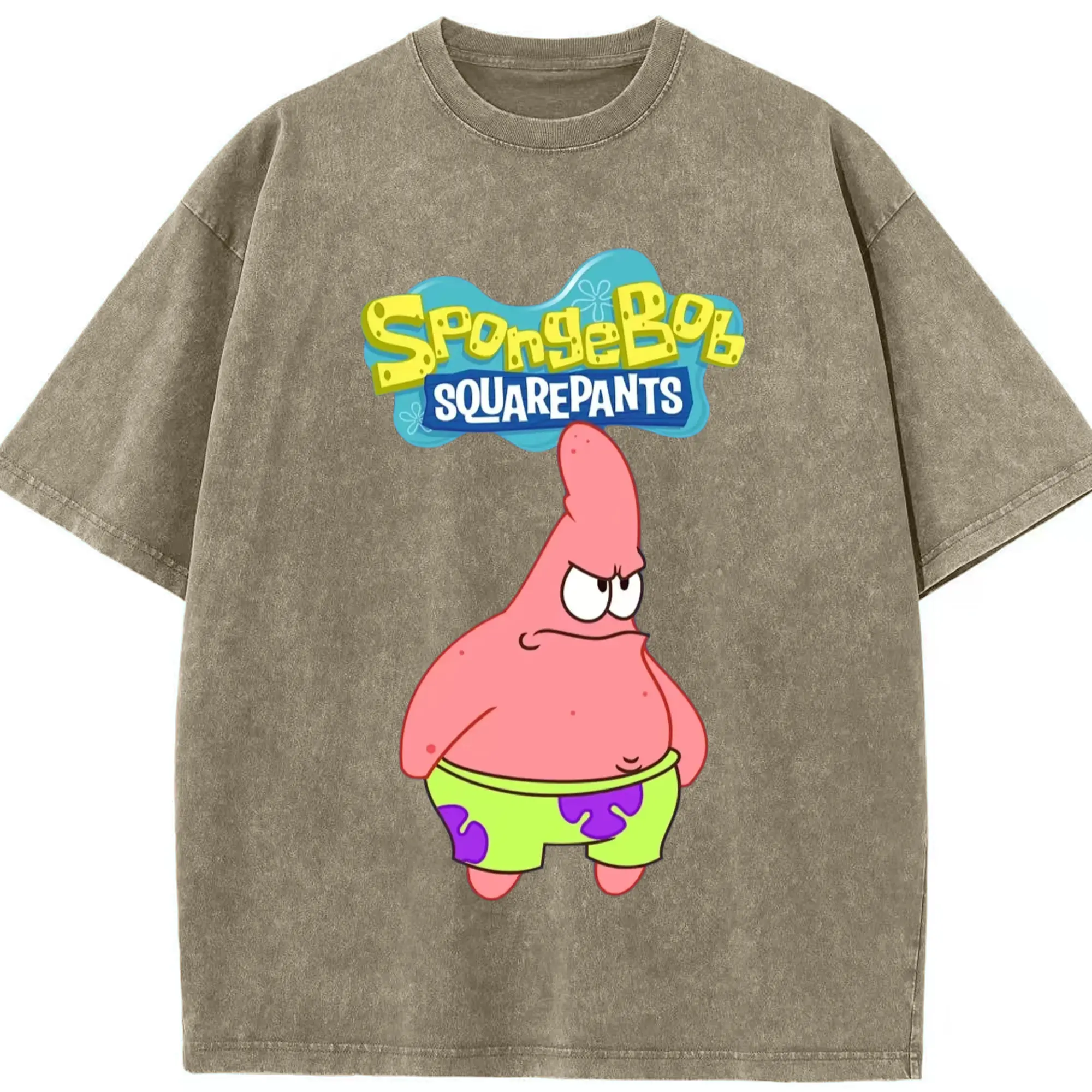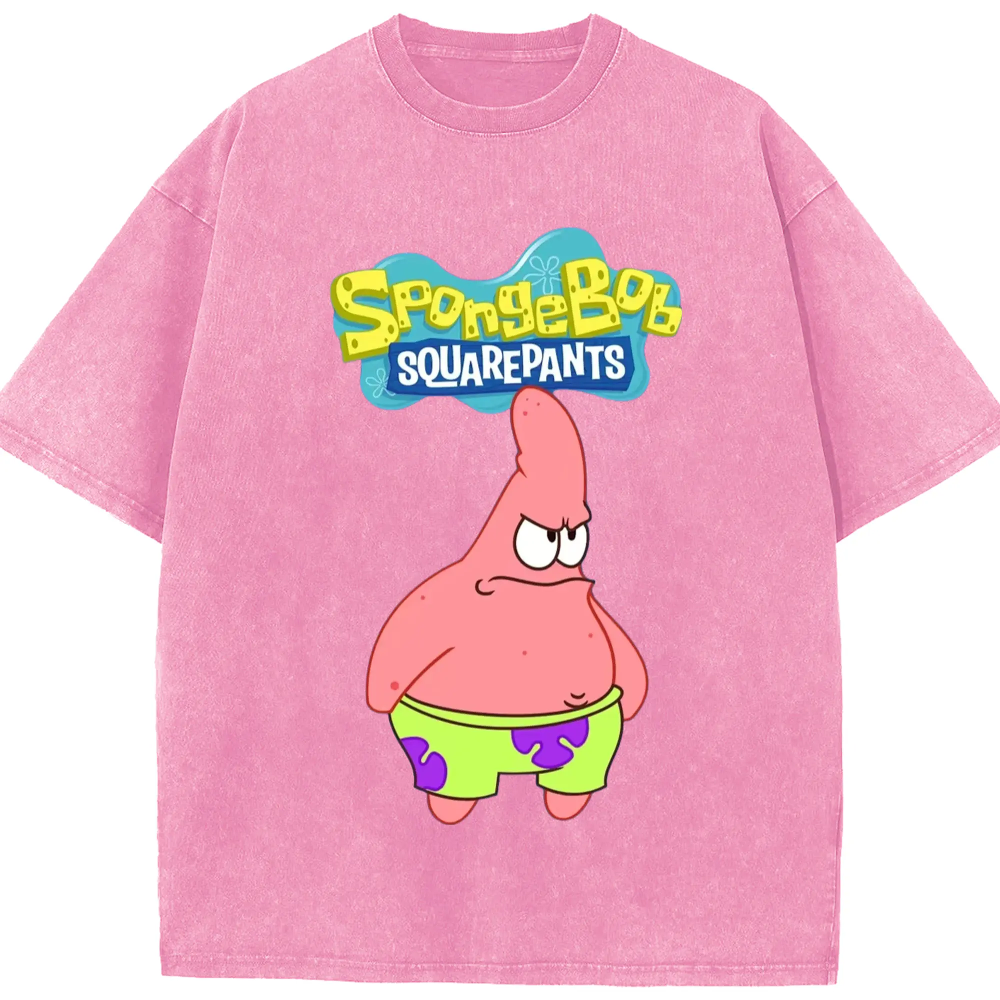 Patrick Star angry Graphic T-Shirt - Washed Vintage Look 230g Cotton Oversized T-Shirt With Front Heat Transfer Print – Soft, Lightweight, Stylish Fit – Comfortable Casual Wear For Sports & Everyday Use