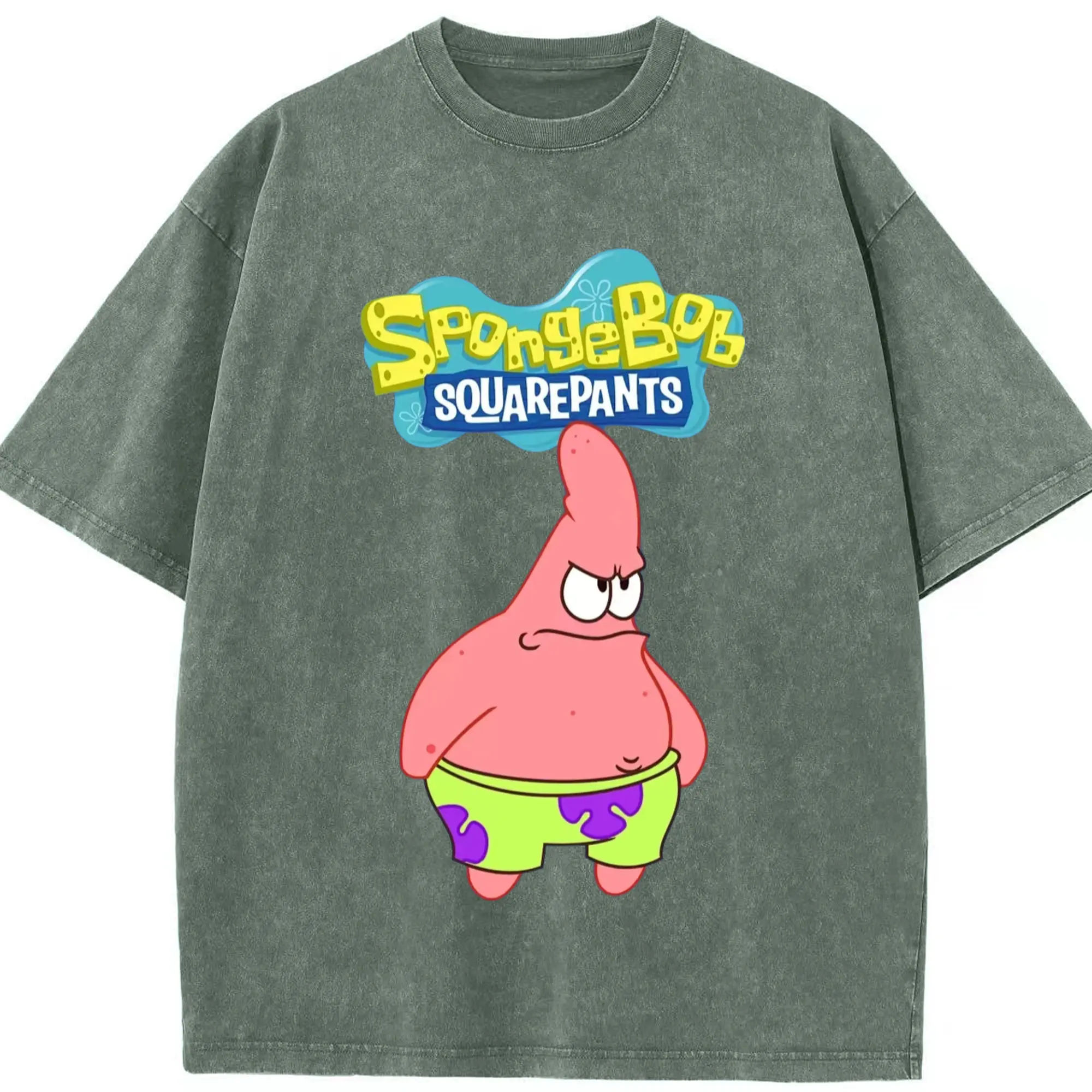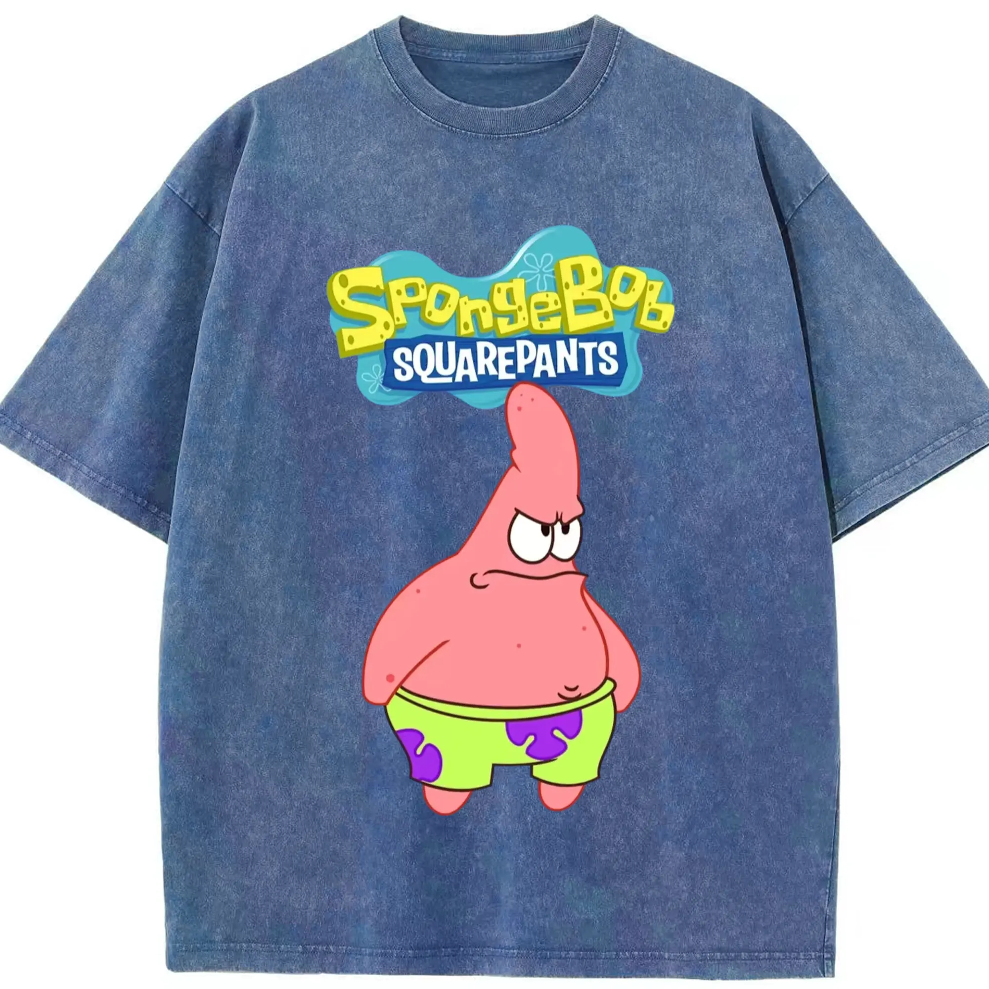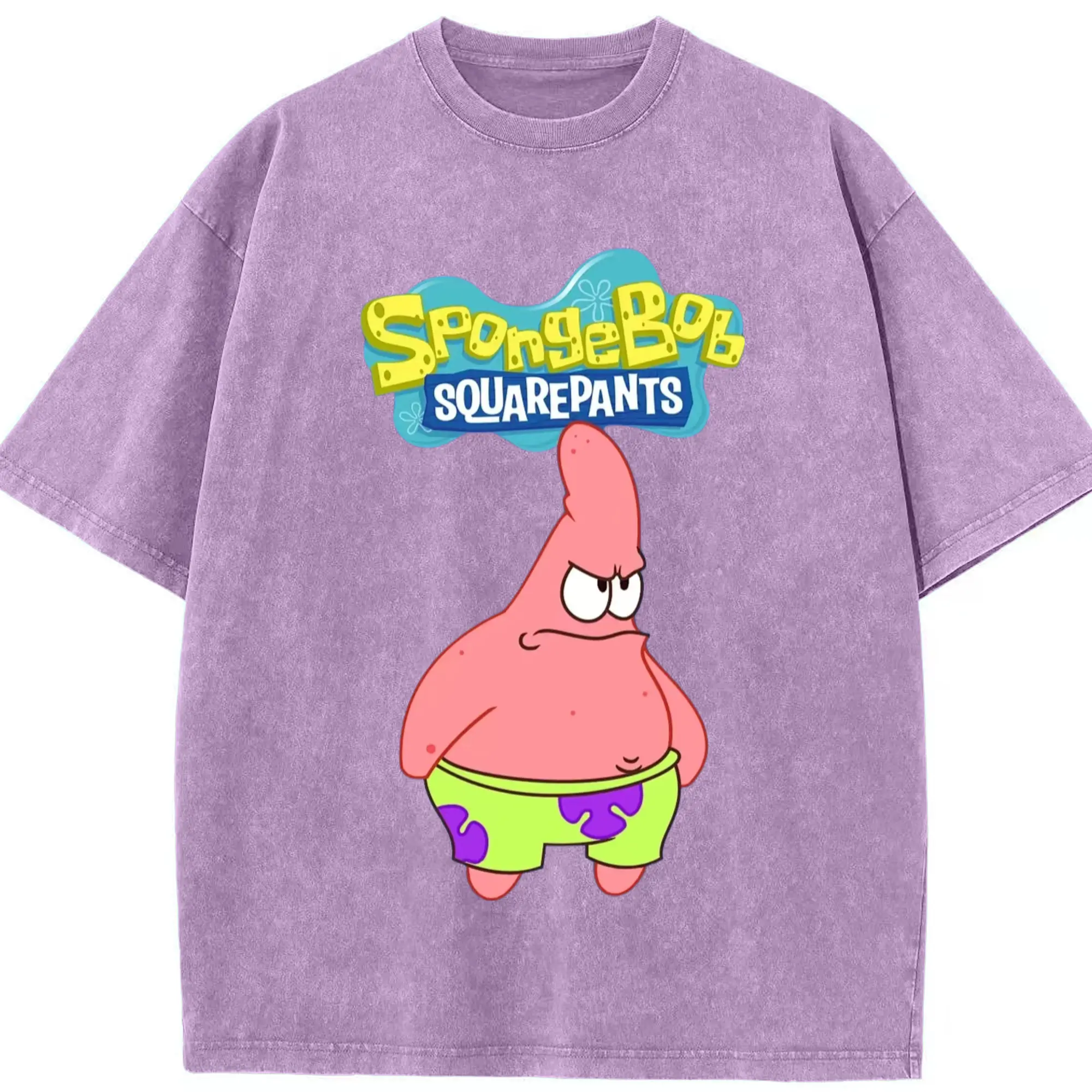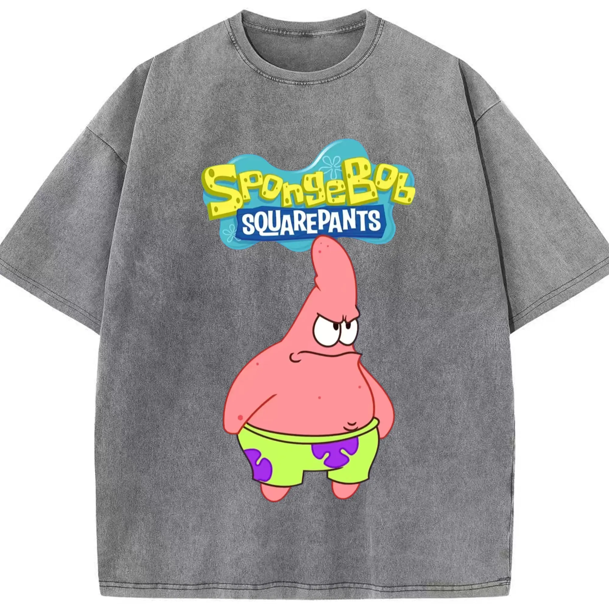 Patrick Star angry Graphic T-Shirt - Washed Vintage Look 230g Cotton Oversized T-Shirt With Front Heat Transfer Print – Soft, Lightweight, Stylish Fit – Comfortable Casual Wear For Sports & Everyday Use