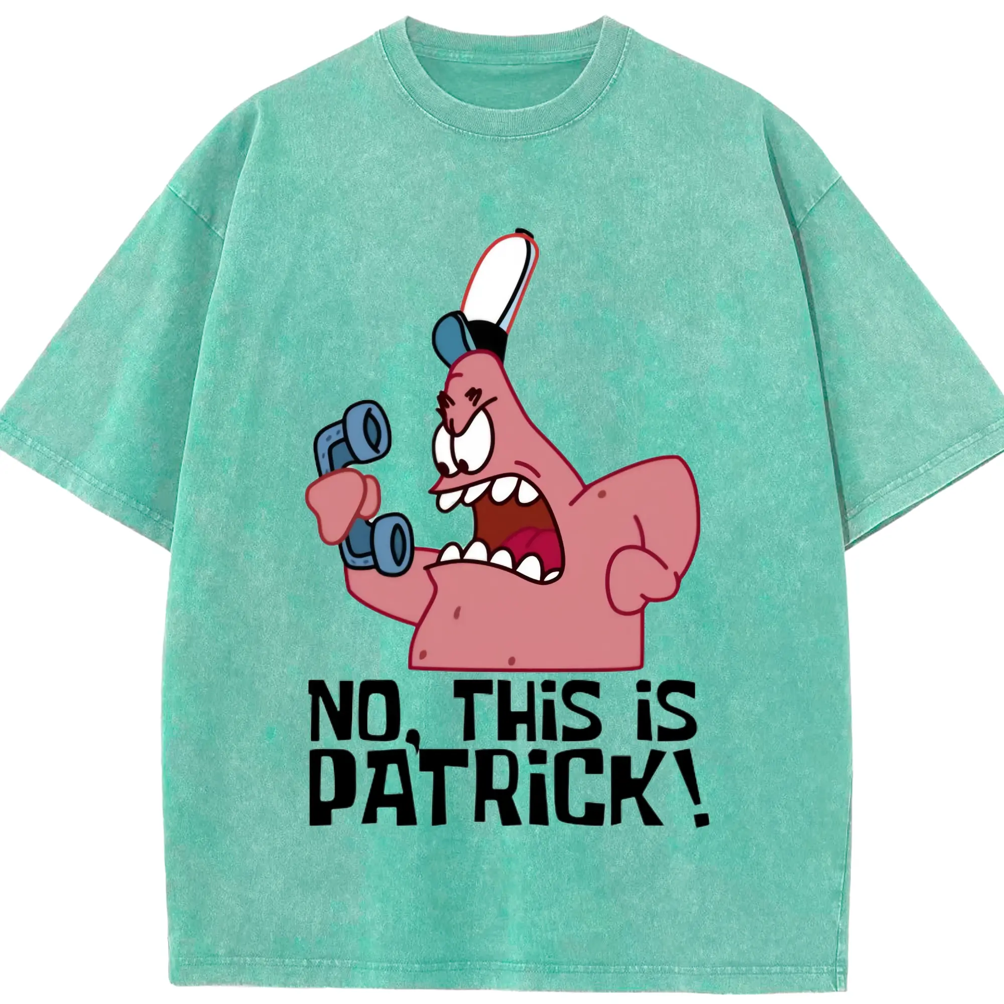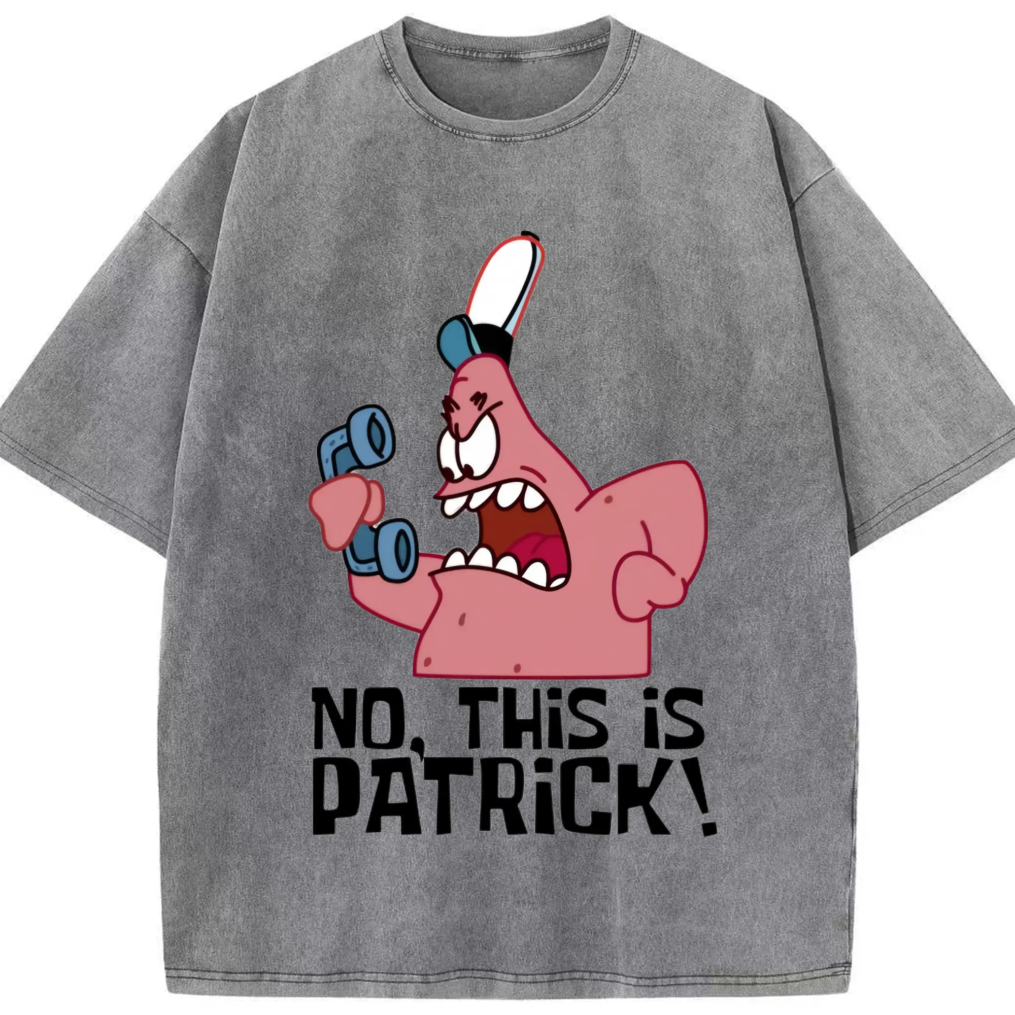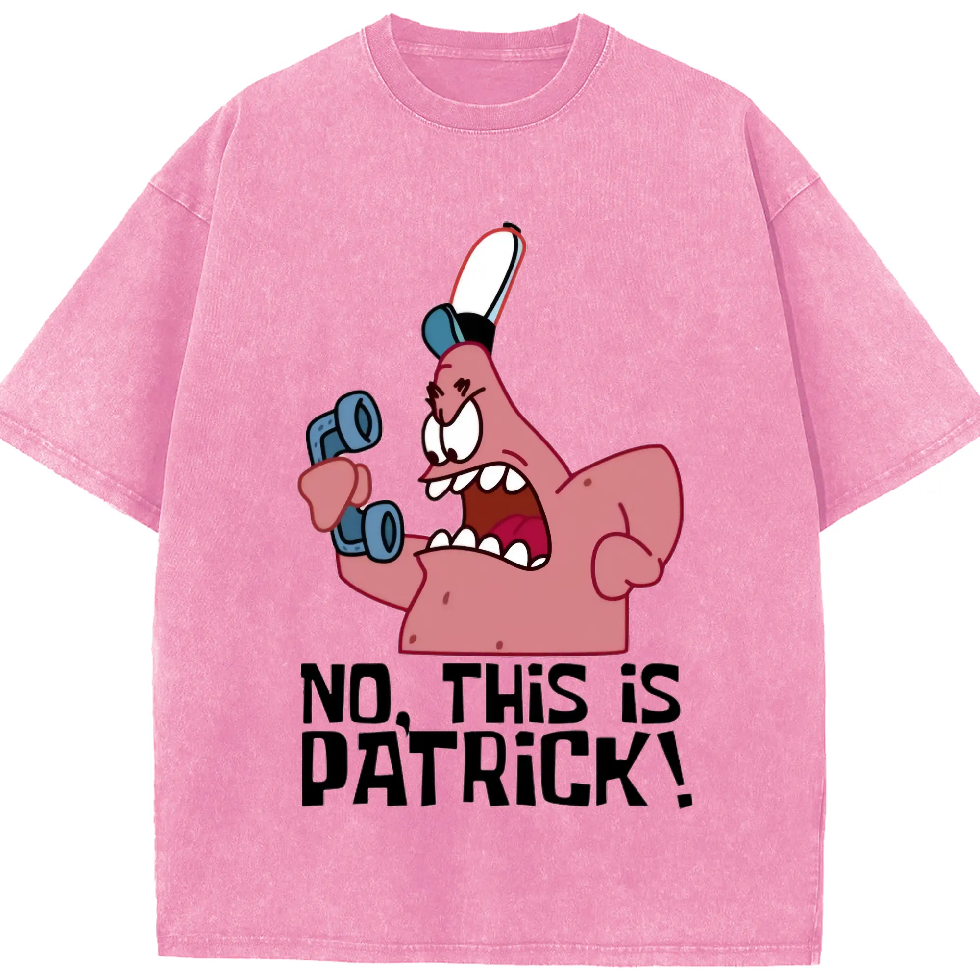 Patrick Star ‘no,this is Patrick ’Graphic T-Shirt - Washed Vintage Look 230g Cotton Oversized T-Shirt With Front Heat Transfer Print – Soft, Lightweight, Stylish Fit – Comfortable Casual Wear For Sports & Everyday Use