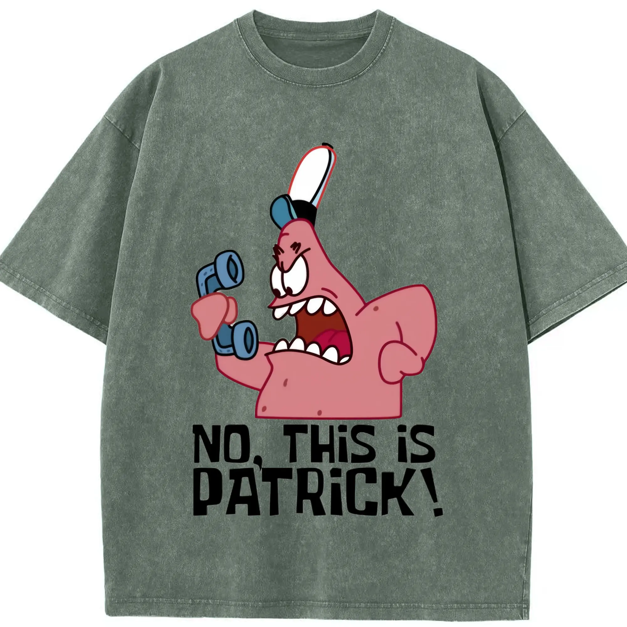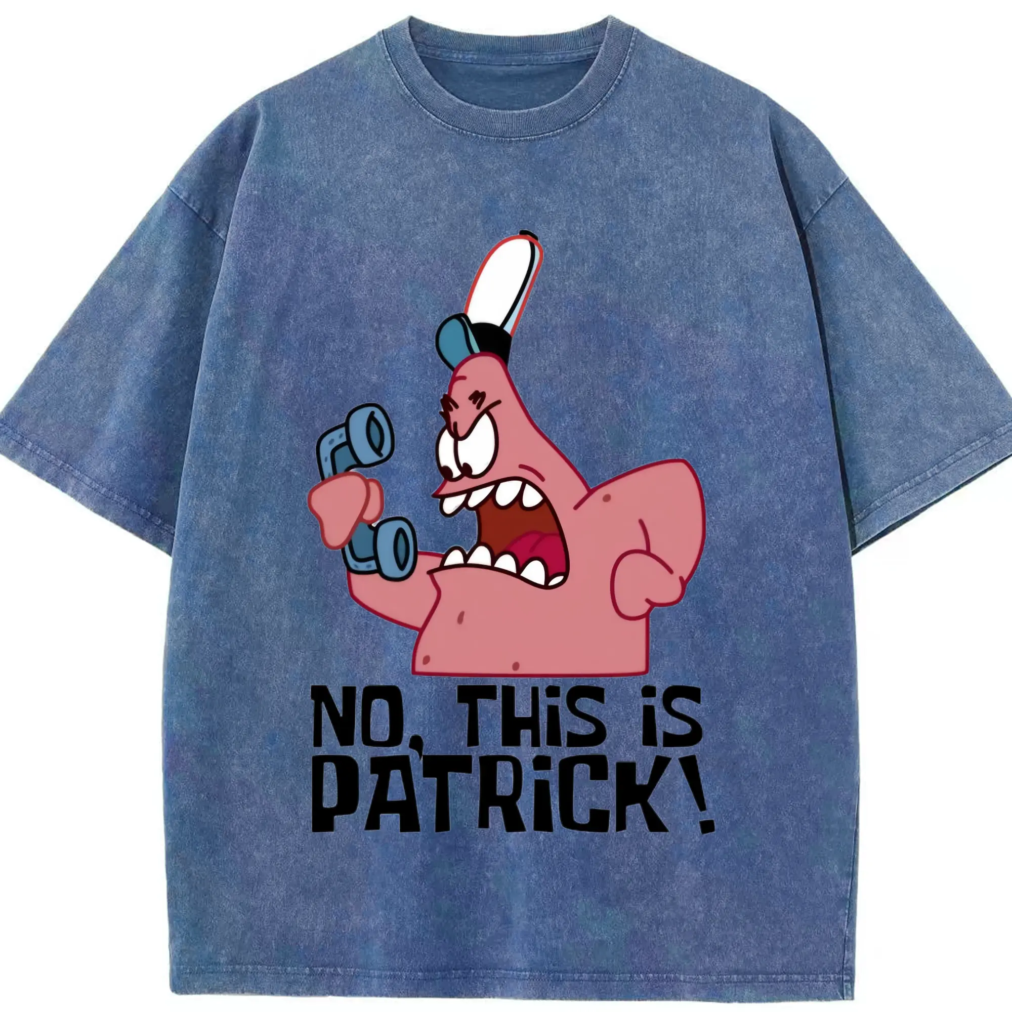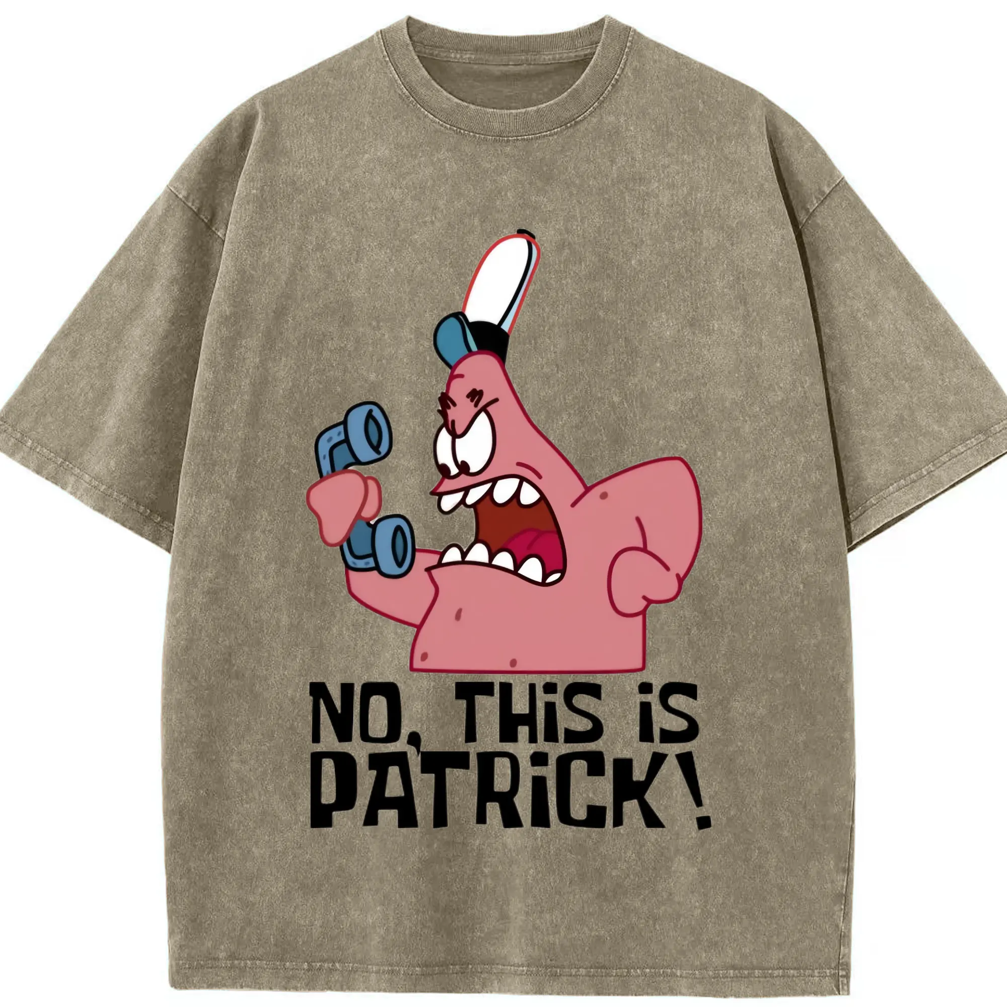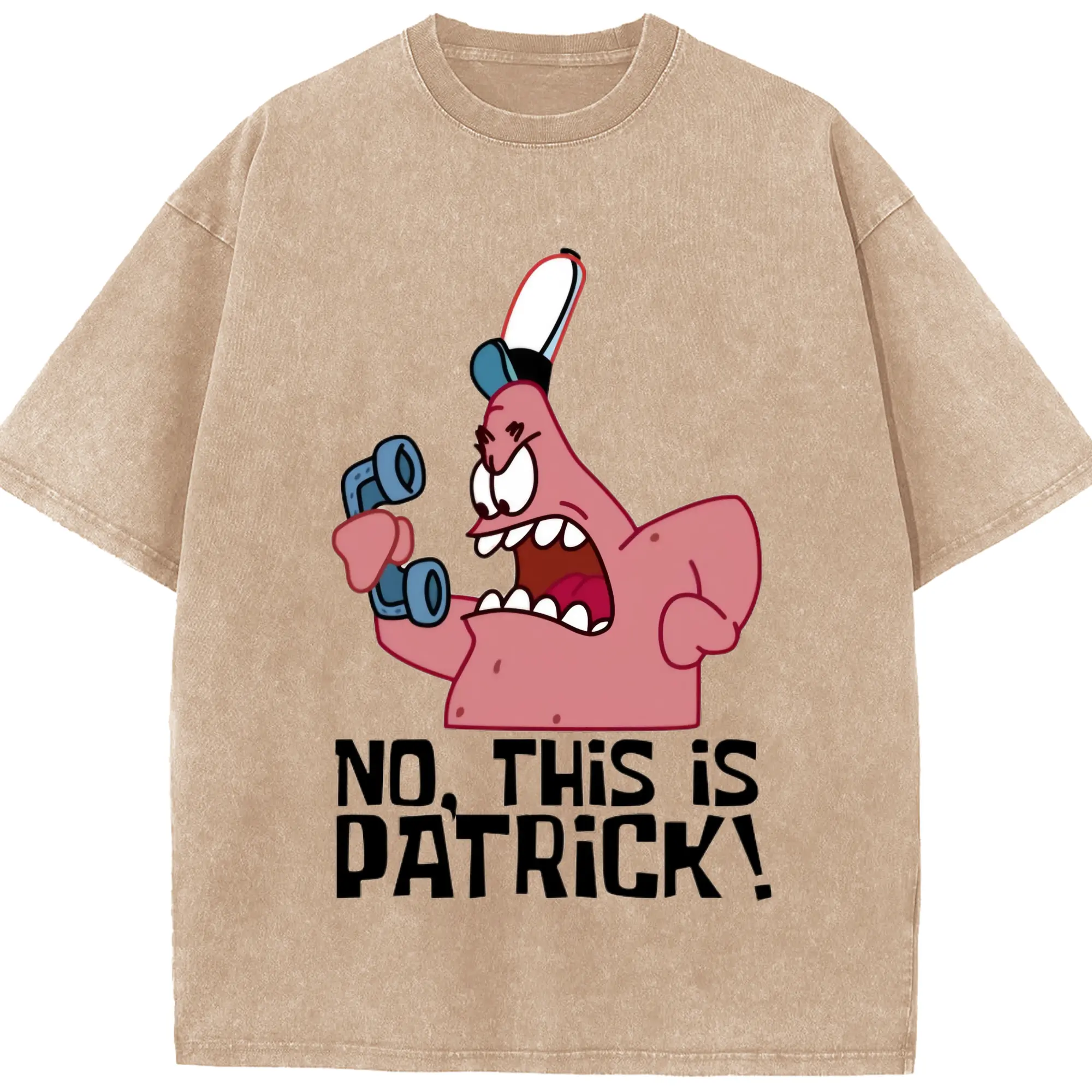 Patrick Star ‘no,this is Patrick ’Graphic T-Shirt - Washed Vintage Look 230g Cotton Oversized T-Shirt With Front Heat Transfer Print – Soft, Lightweight, Stylish Fit – Comfortable Casual Wear For Sports & Everyday Use