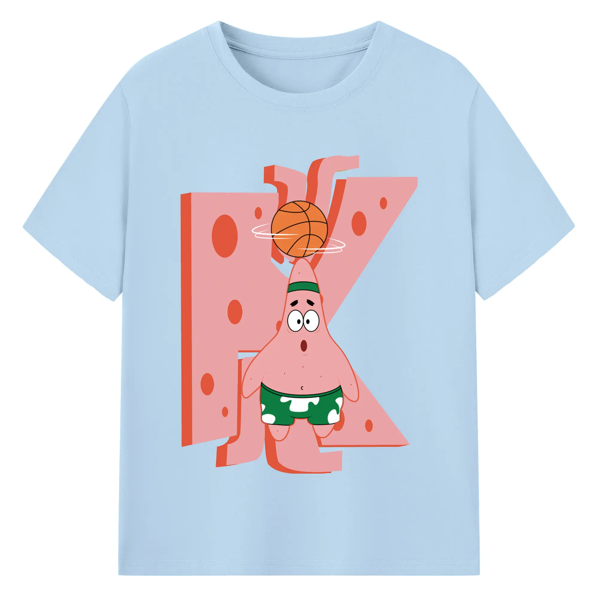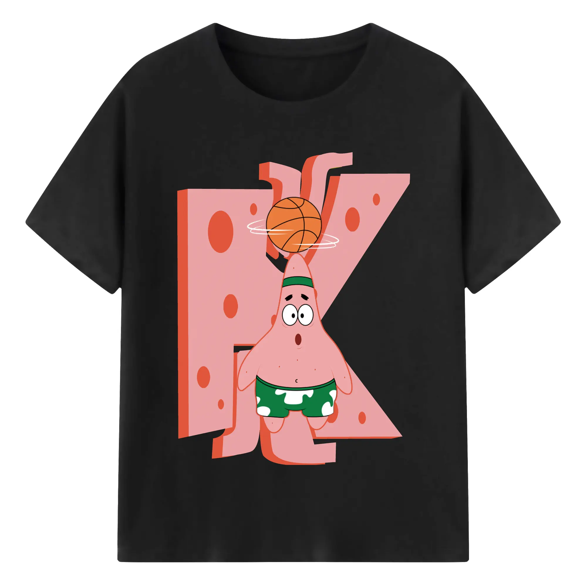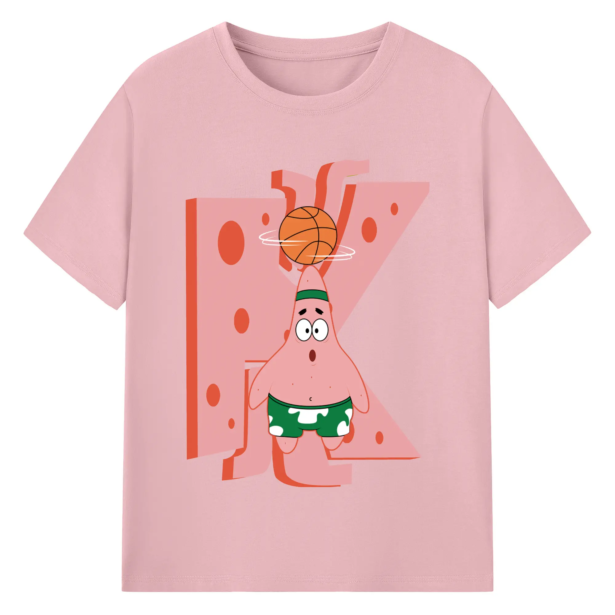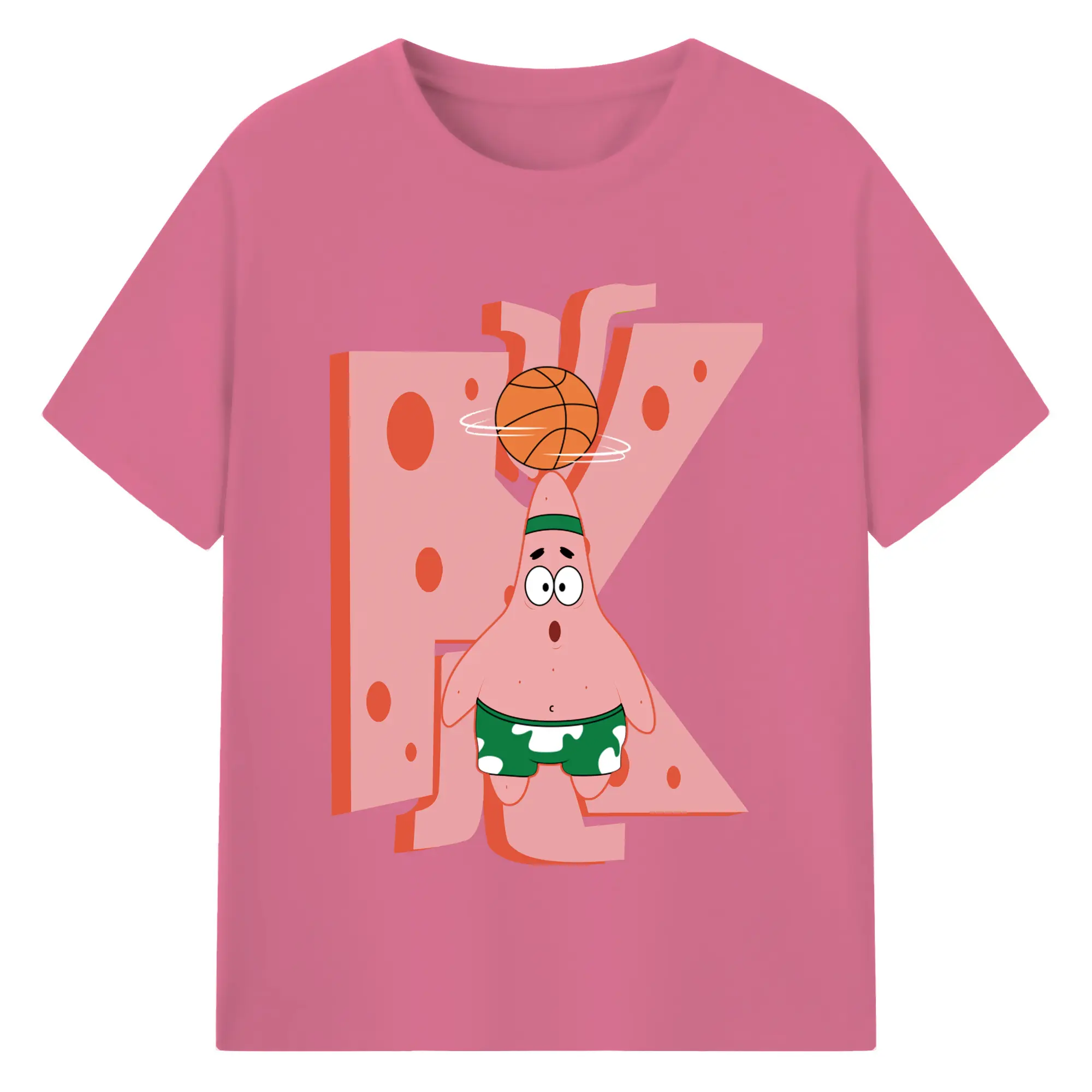 Patrick Star play basketball Graphic T-Shirt - 180g Cotton T-Shirt With Front Heat Transfer Print – Soft, Lightweight, Fitted Design – Comfortable Casual Wear For Sports & Everyday Use