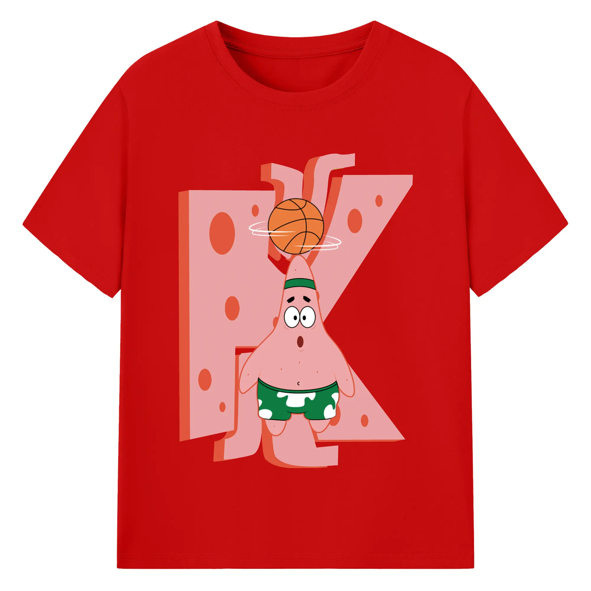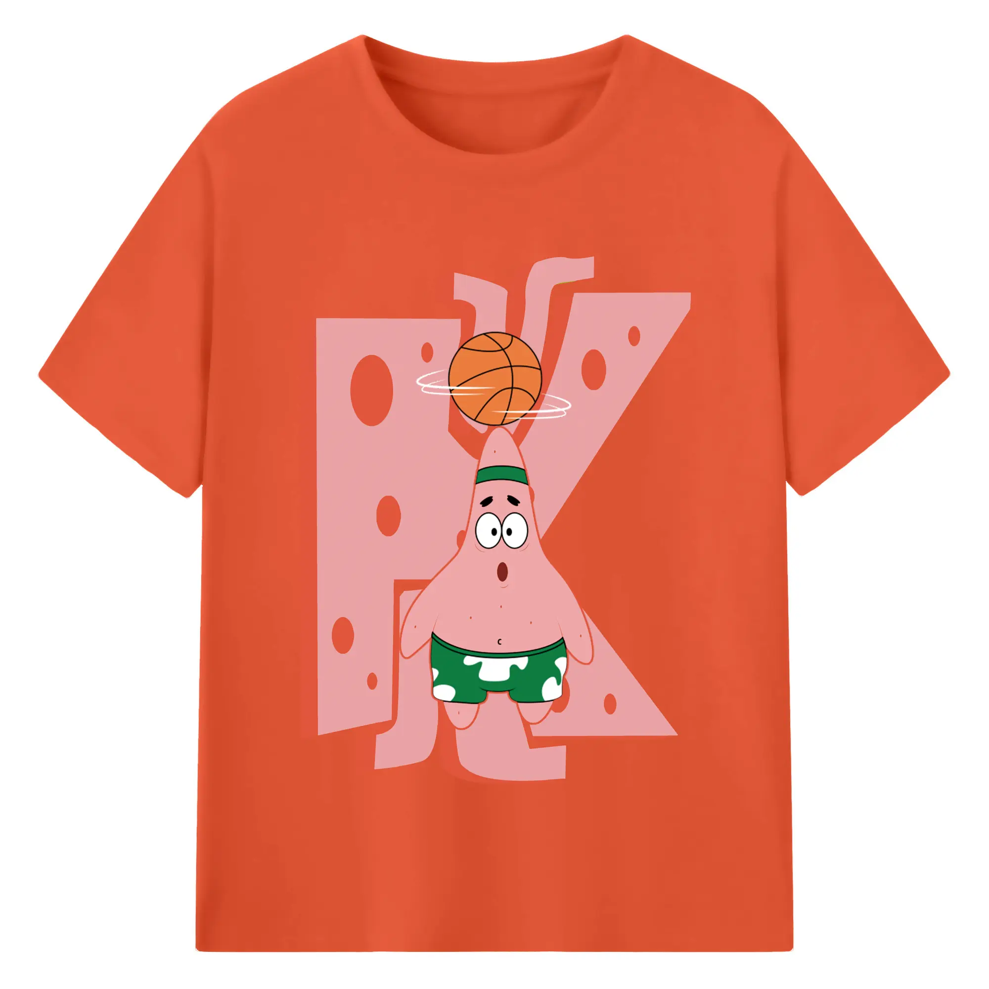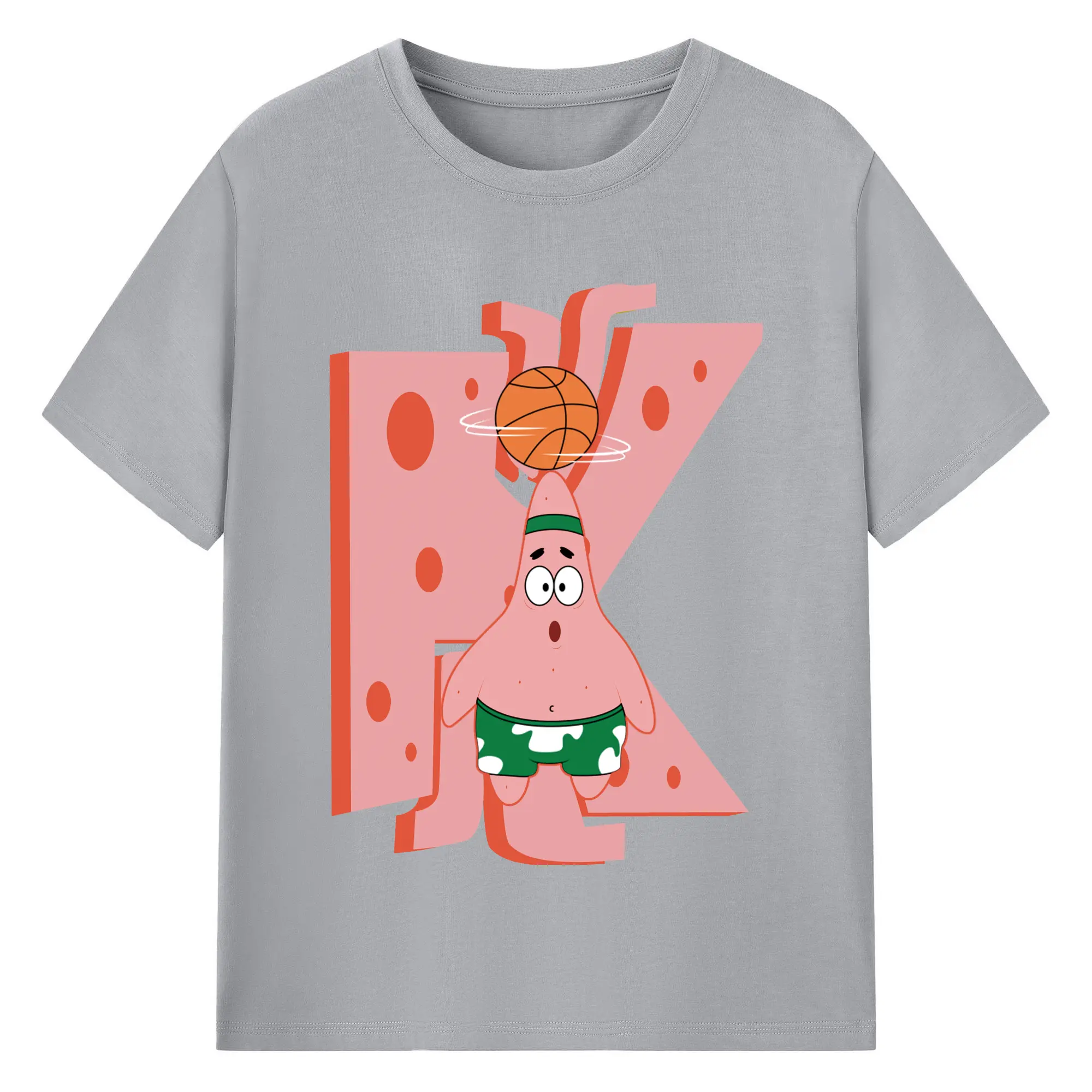Patrick Star play basketball Graphic T-Shirt - 180g Cotton T-Shirt With Front Heat Transfer Print – Soft, Lightweight, Fitted Design – Comfortable Casual Wear For Sports & Everyday Use