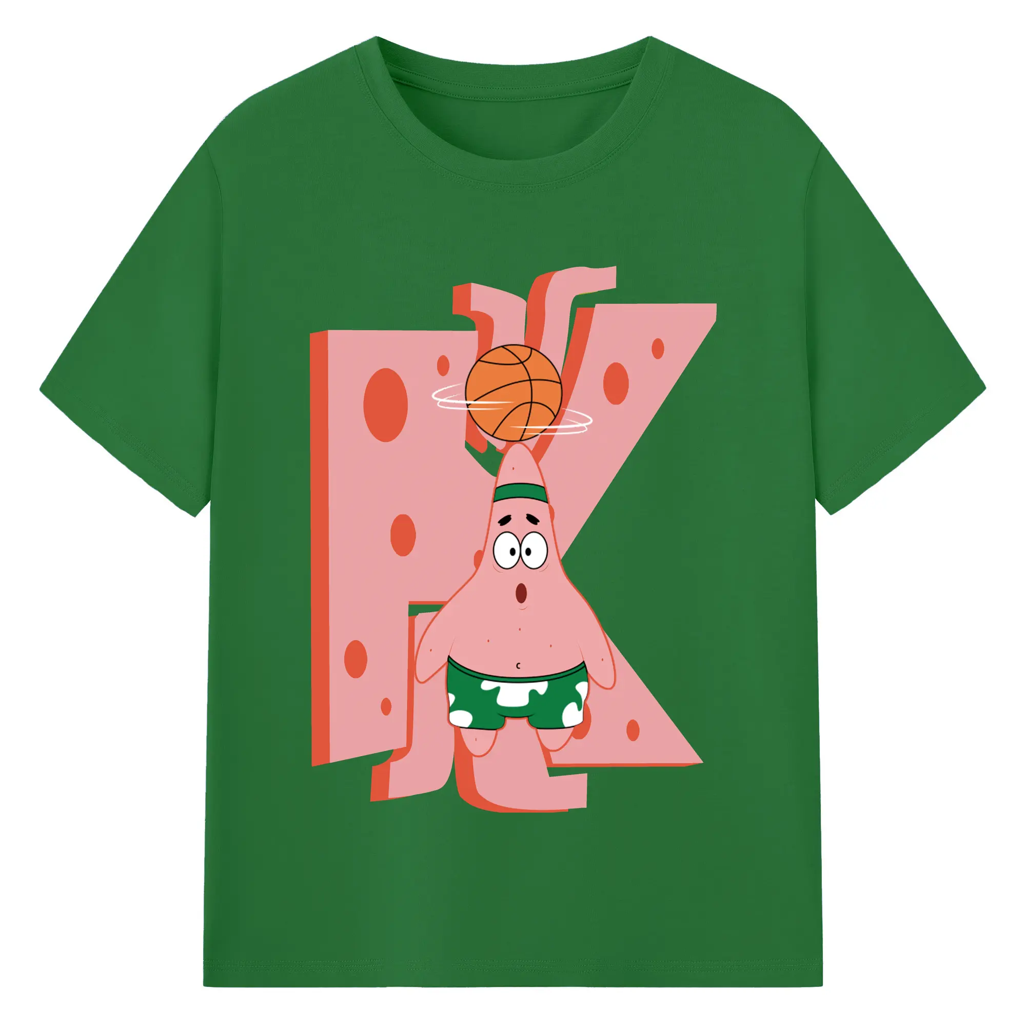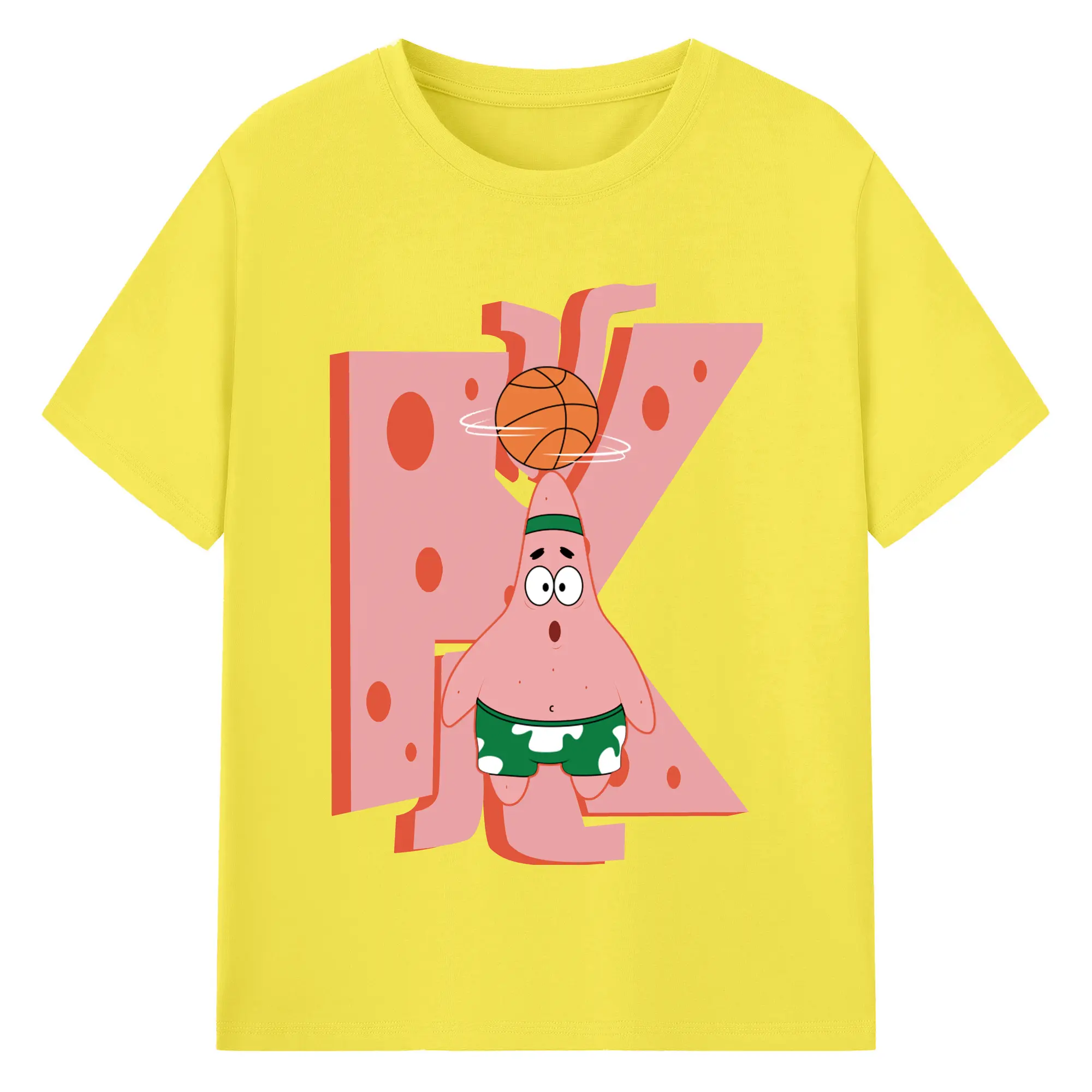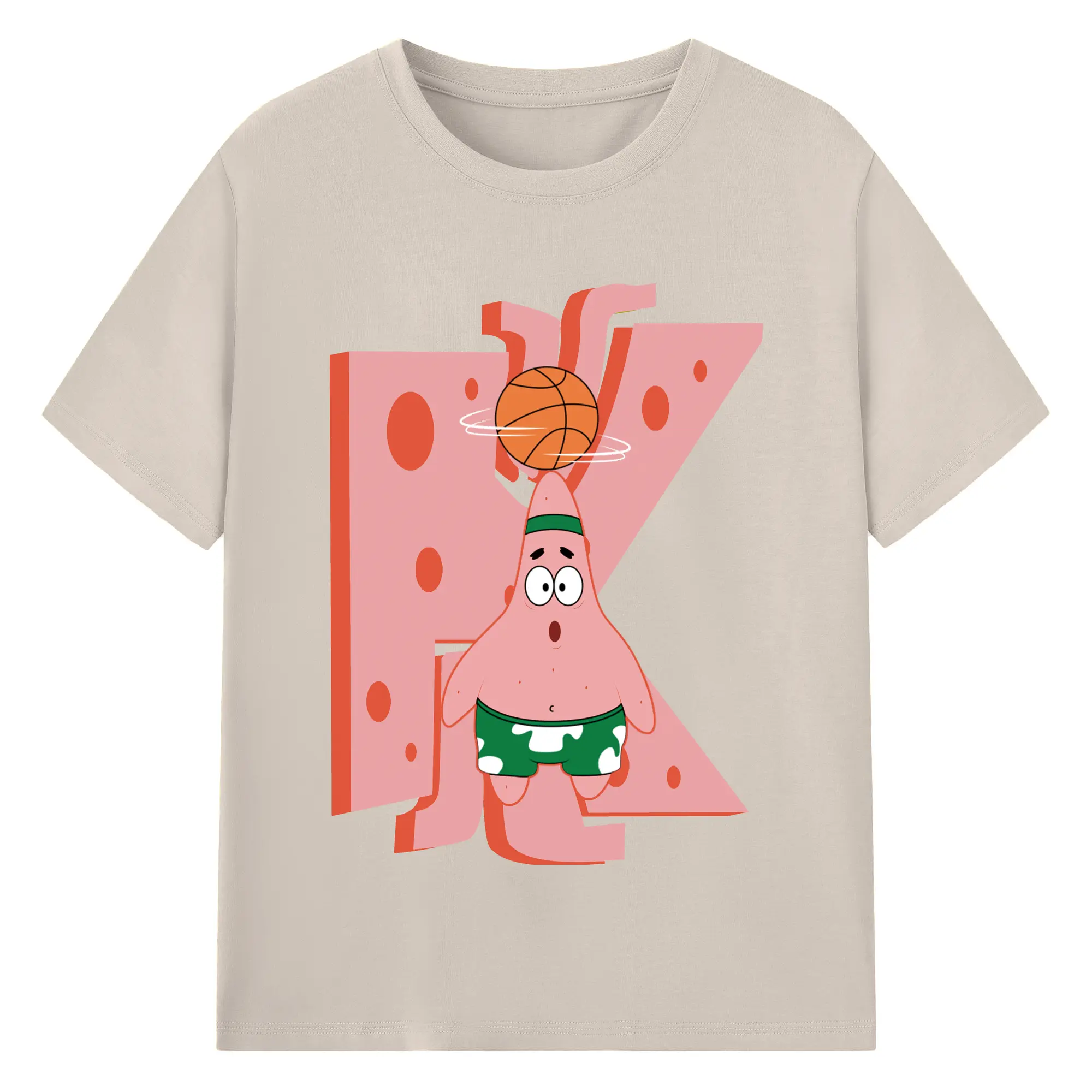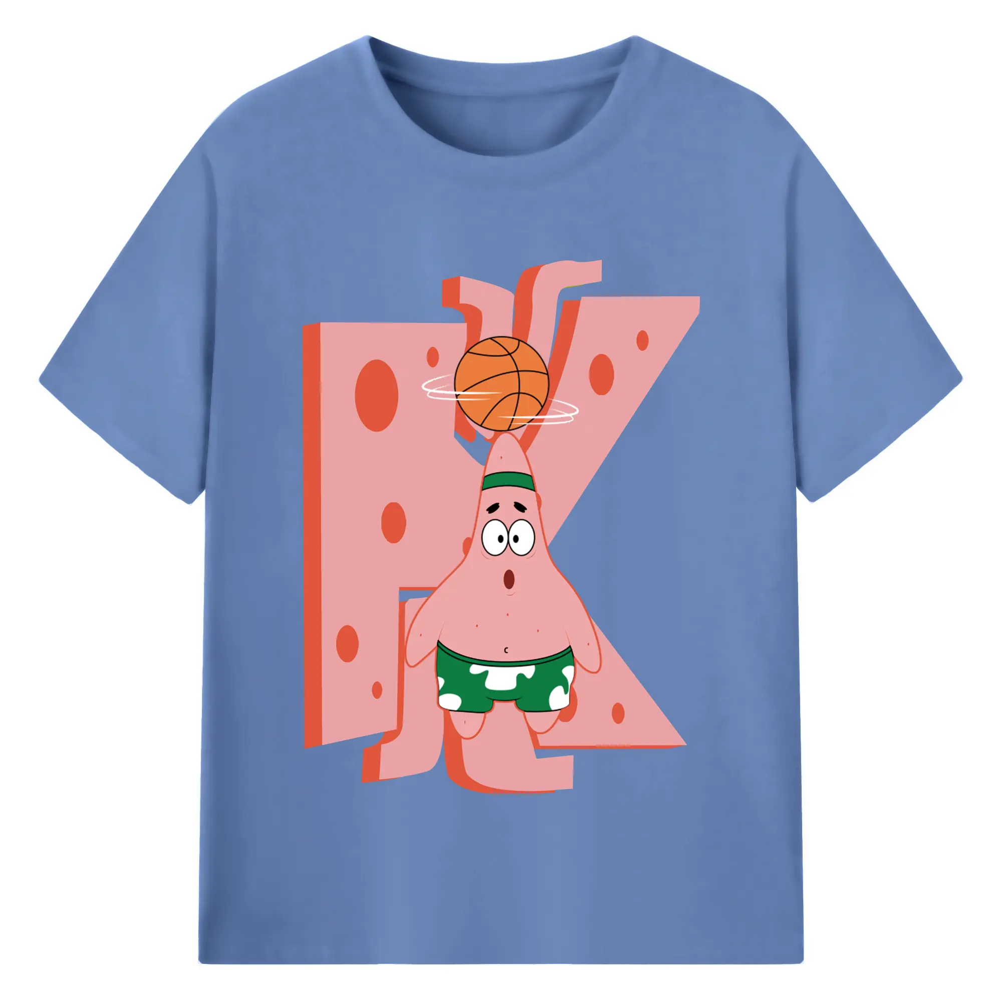 Patrick Star play basketball Graphic T-Shirt - 180g Cotton T-Shirt With Front Heat Transfer Print – Soft, Lightweight, Fitted Design – Comfortable Casual Wear For Sports & Everyday Use