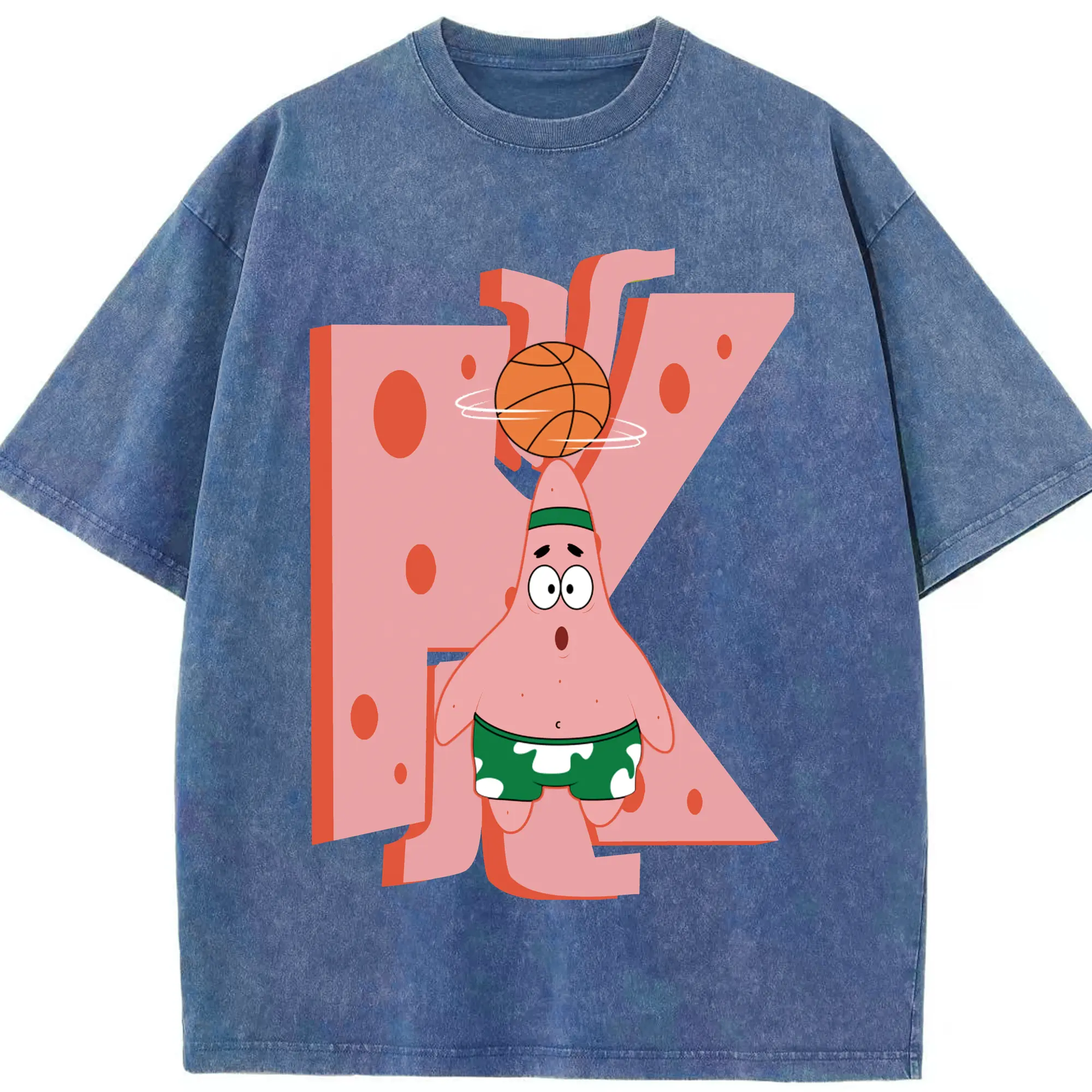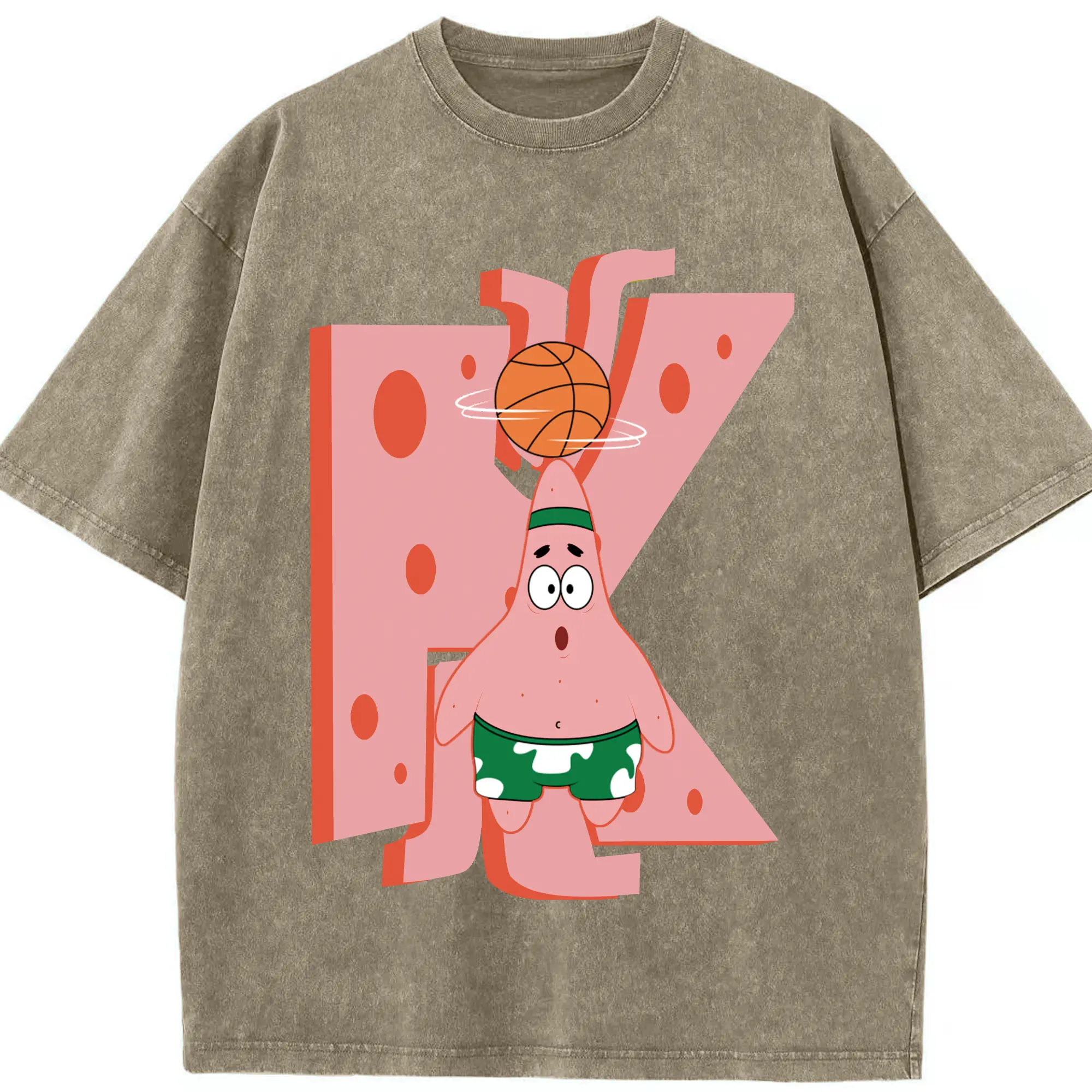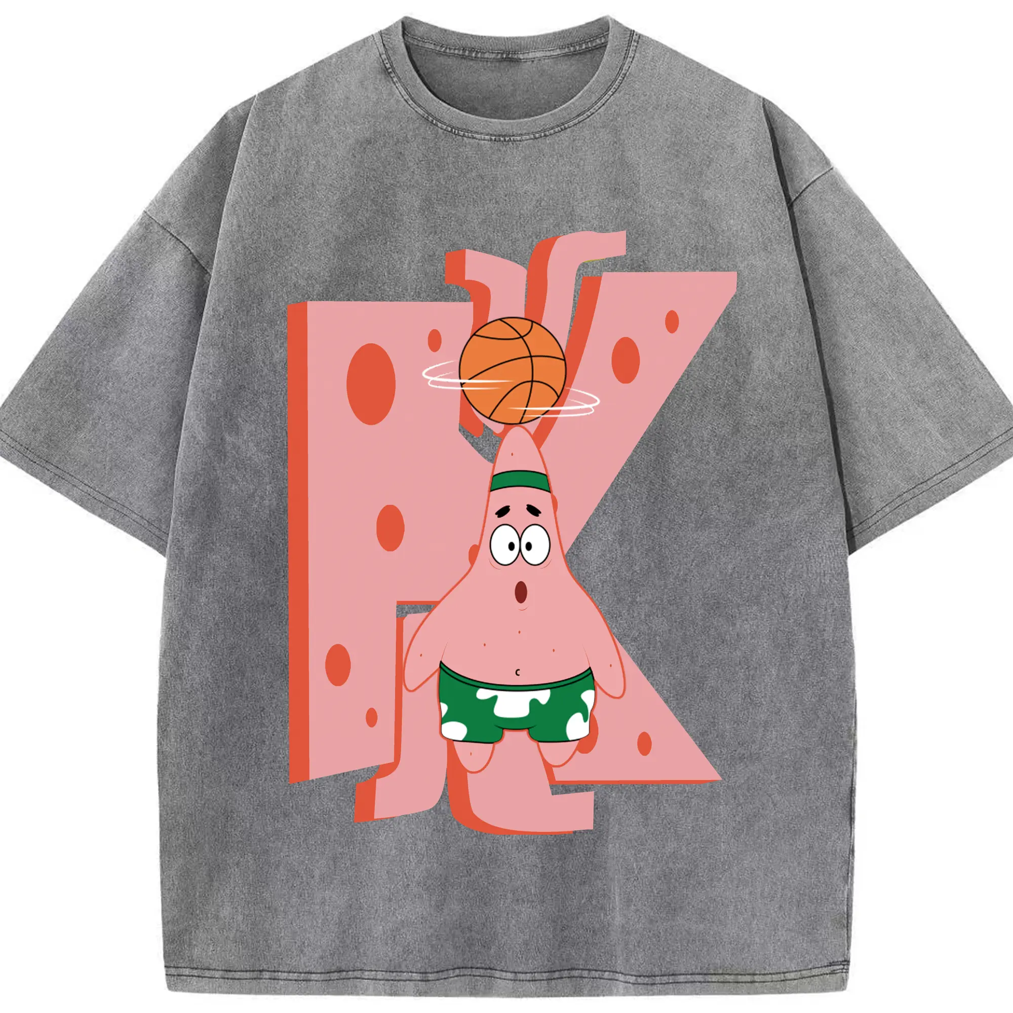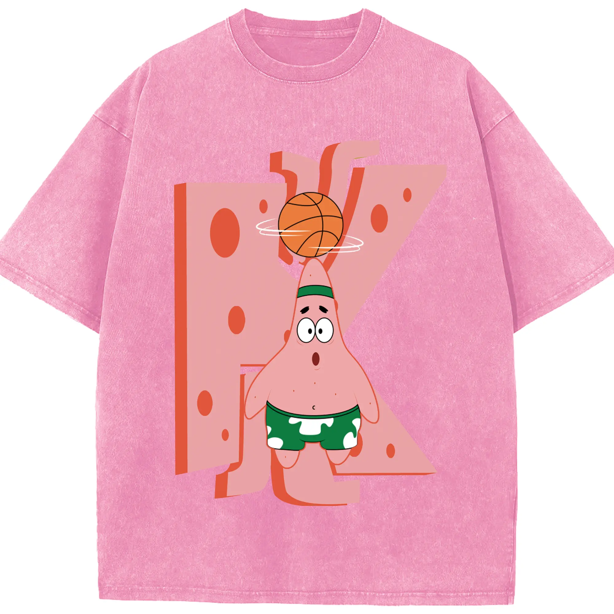 Patrick Star play basketball Graphic T-Shirt - Washed Vintage Look 230g Cotton Oversized T-Shirt With Front Heat Transfer Print – Soft, Lightweight, Stylish Fit – Comfortable Casual Wear For Sports & Everyday Use