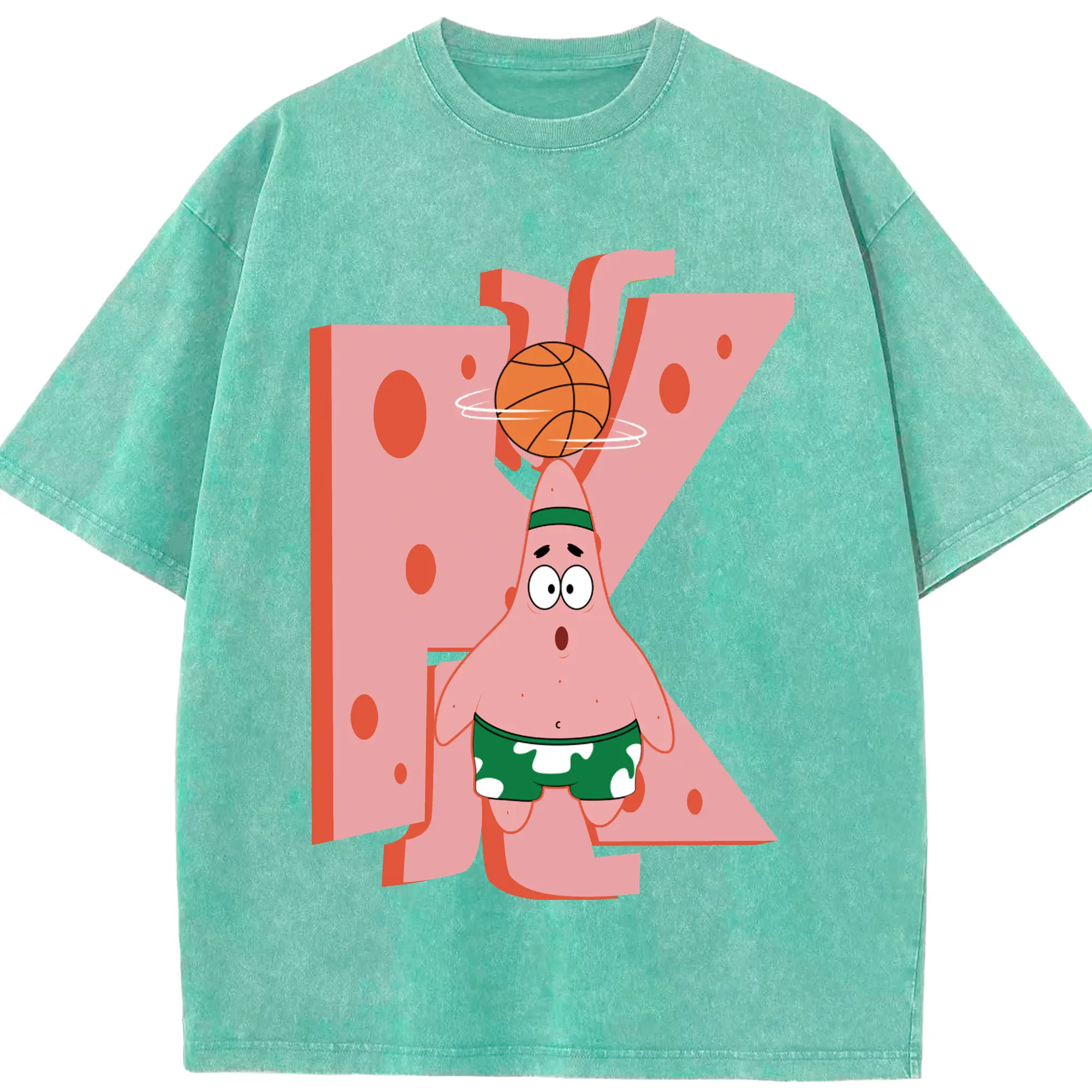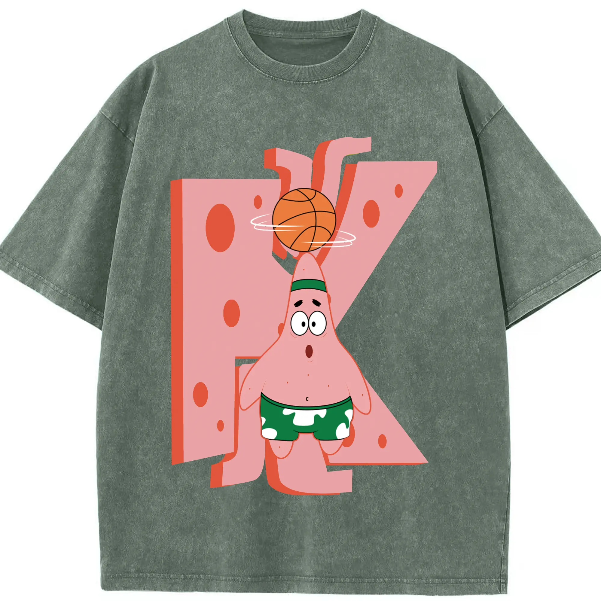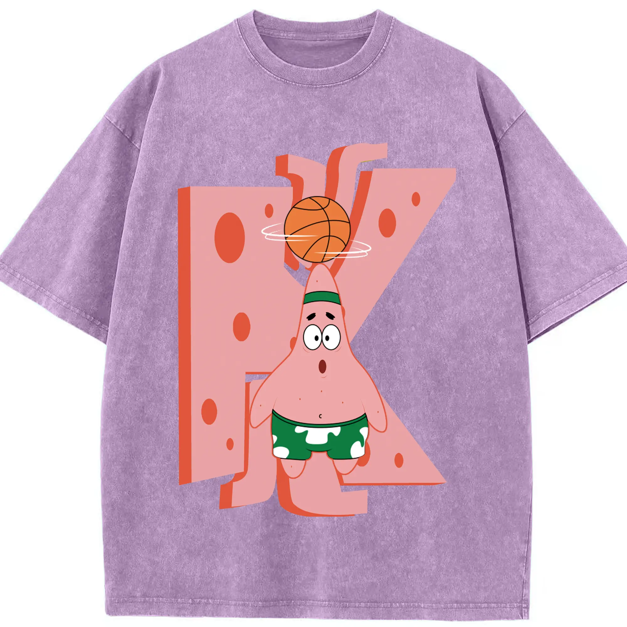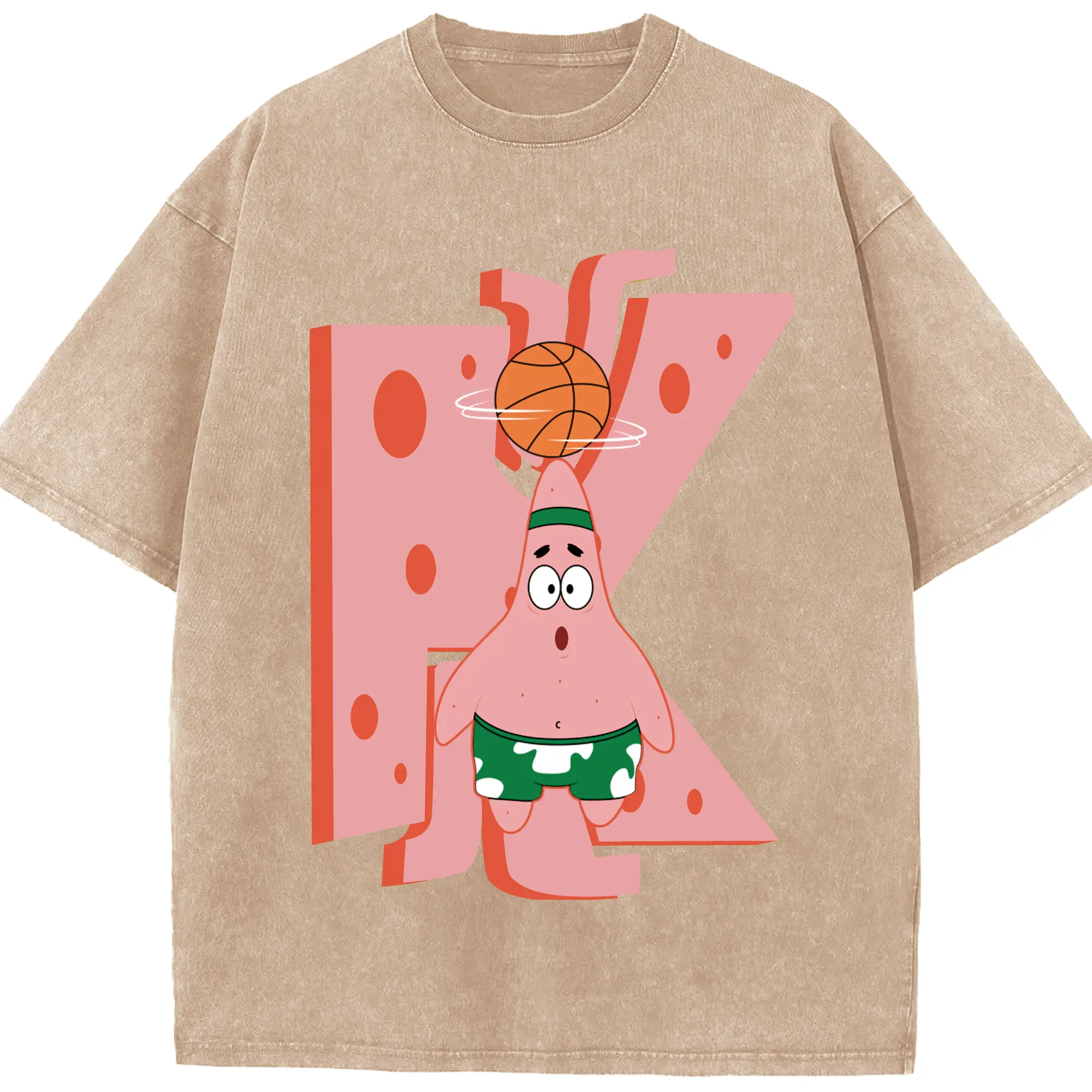 Patrick Star play basketball Graphic T-Shirt - Washed Vintage Look 230g Cotton Oversized T-Shirt With Front Heat Transfer Print – Soft, Lightweight, Stylish Fit – Comfortable Casual Wear For Sports & Everyday Use