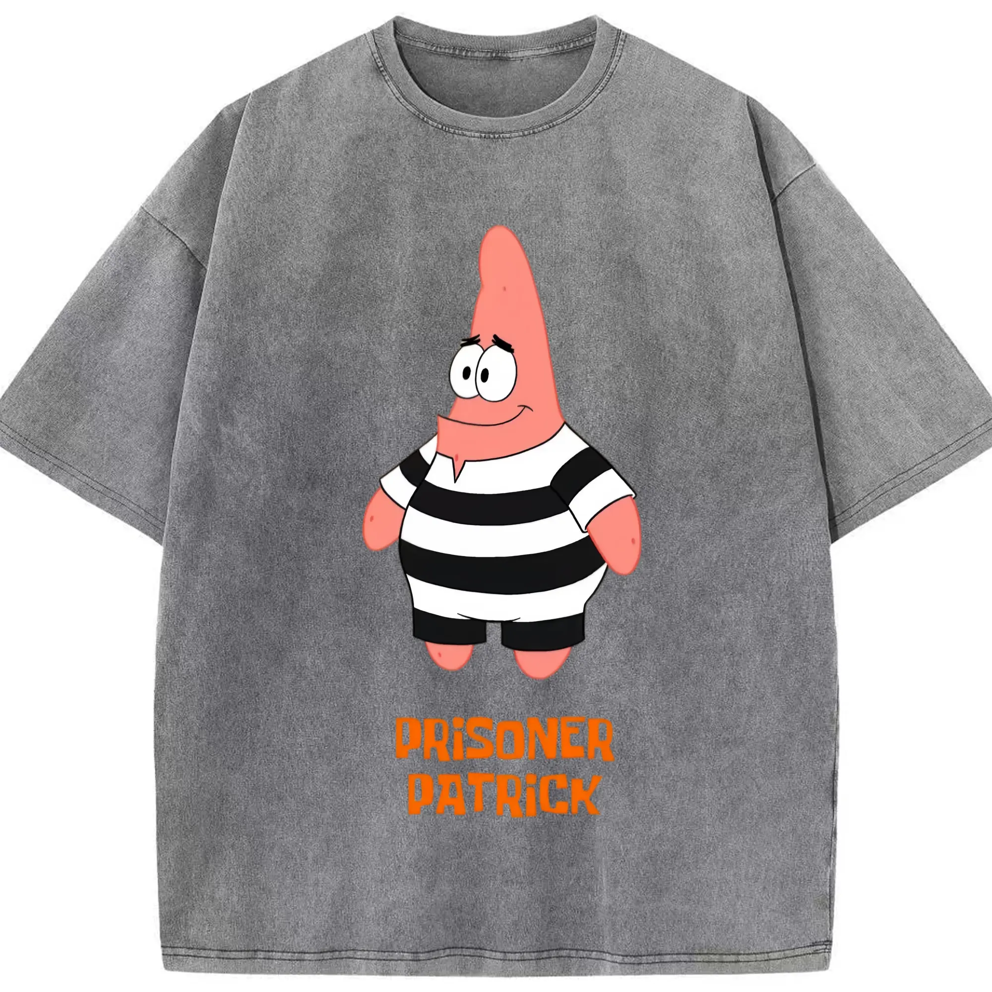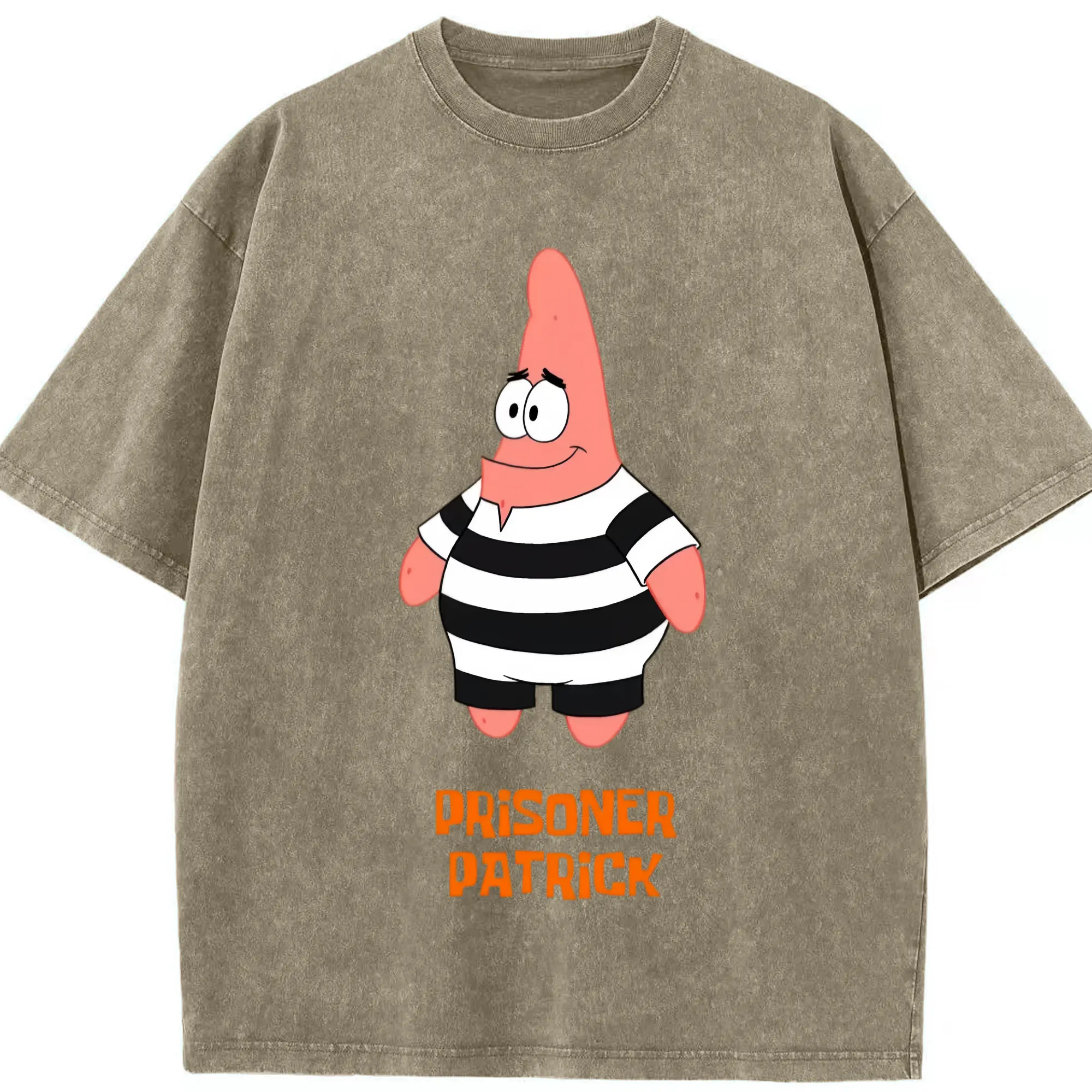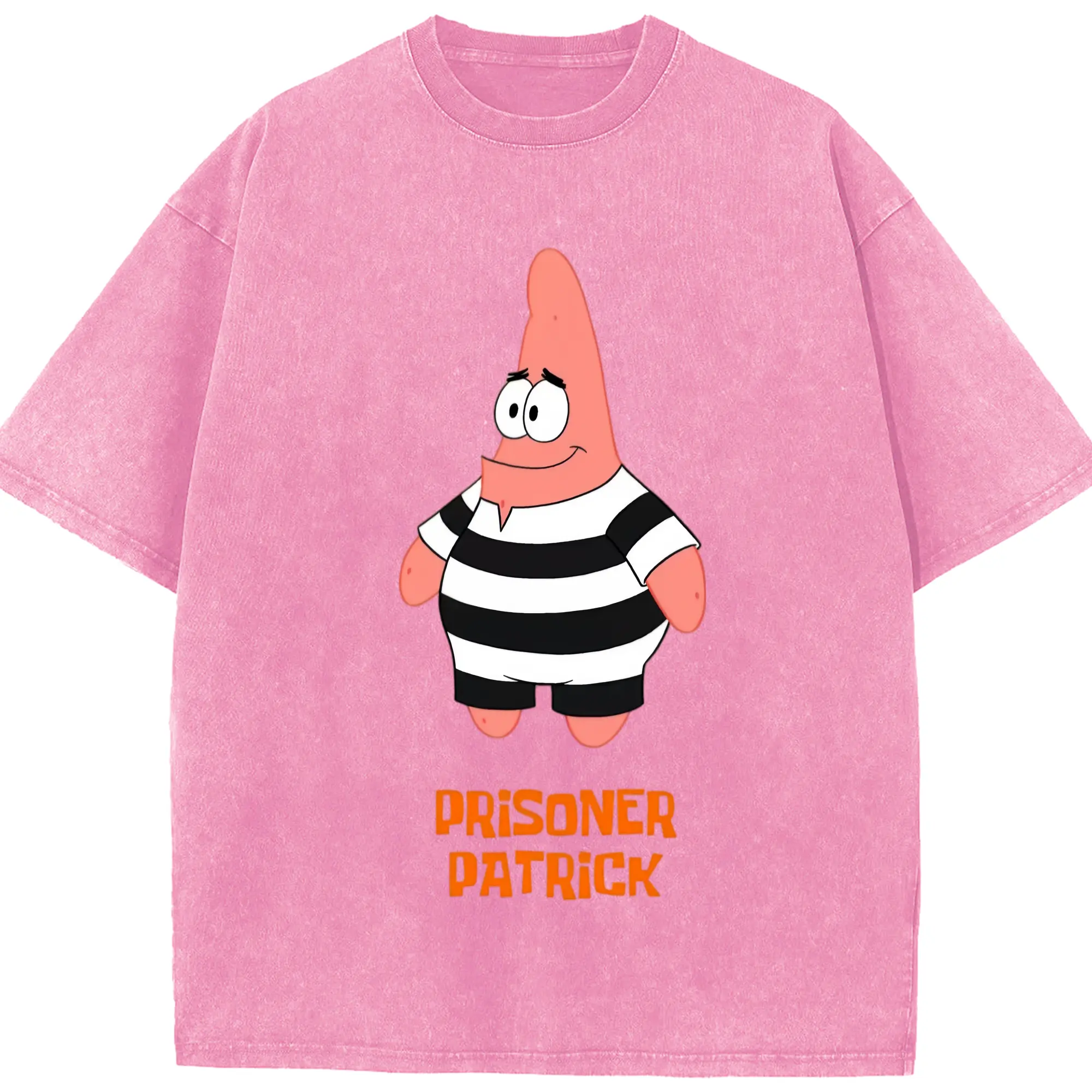 Patrick Star prisoner Graphic T-Shirt - Washed Vintage Look 230g Cotton Oversized T-Shirt With Front Heat Transfer Print – Soft, Lightweight, Stylish Fit – Comfortable Casual Wear For Sports & Everyday Use