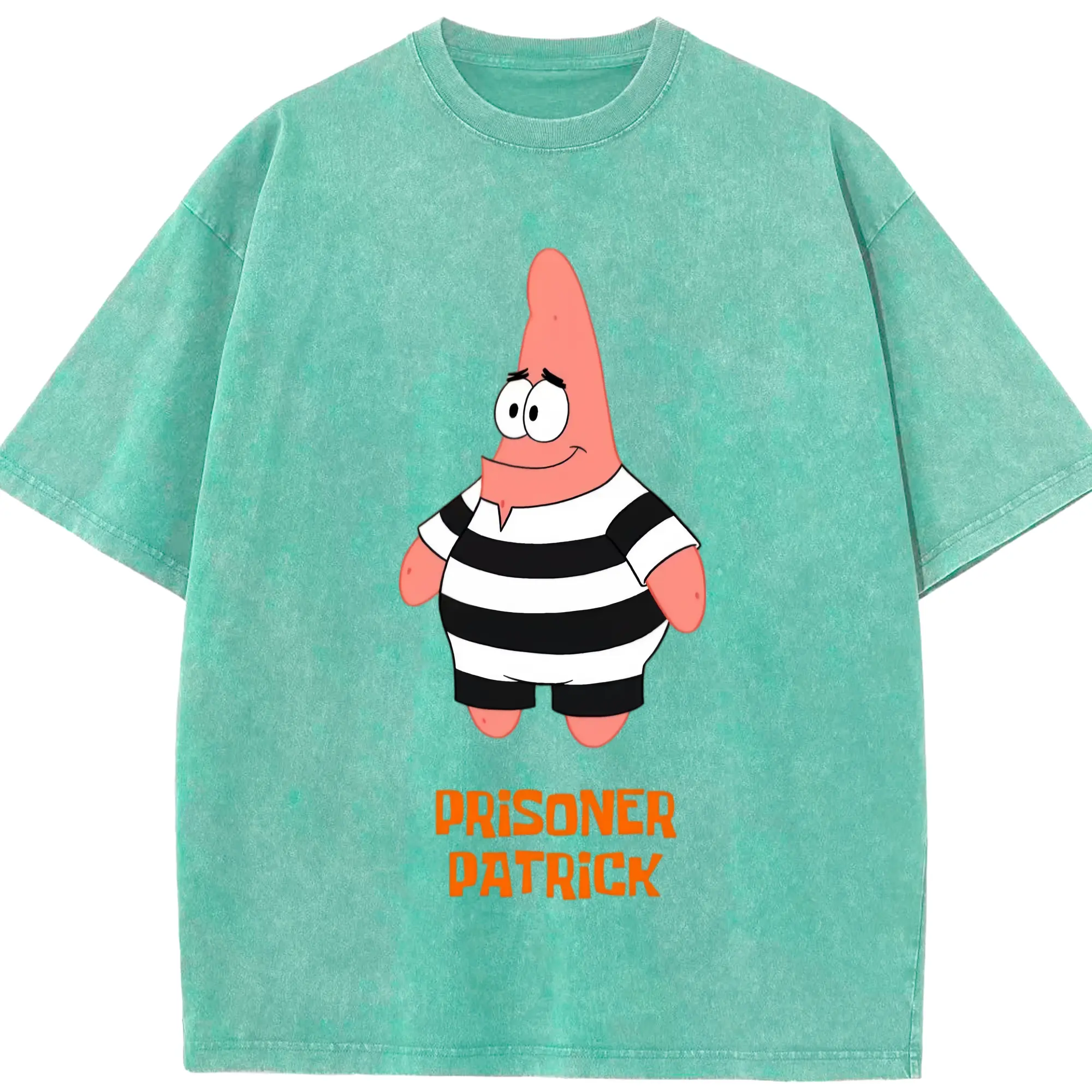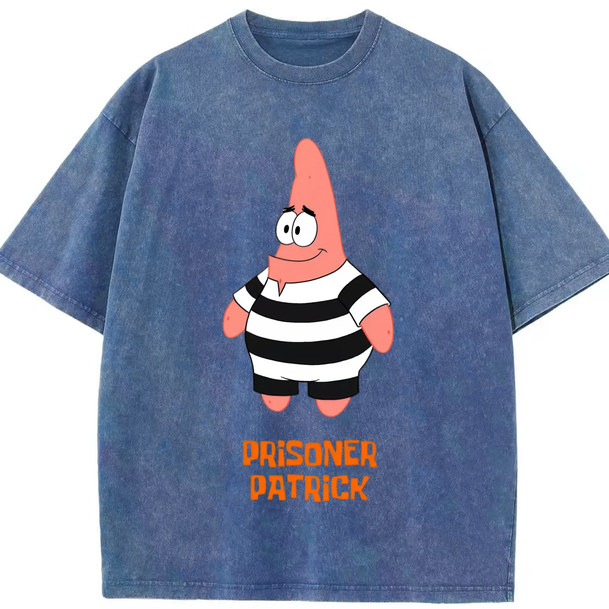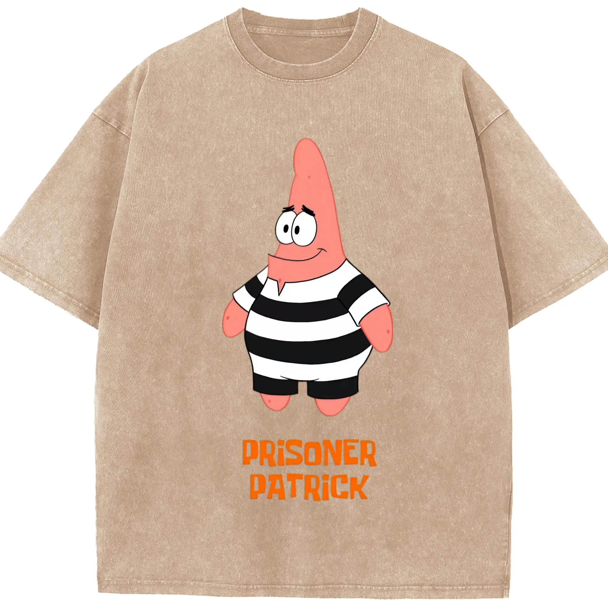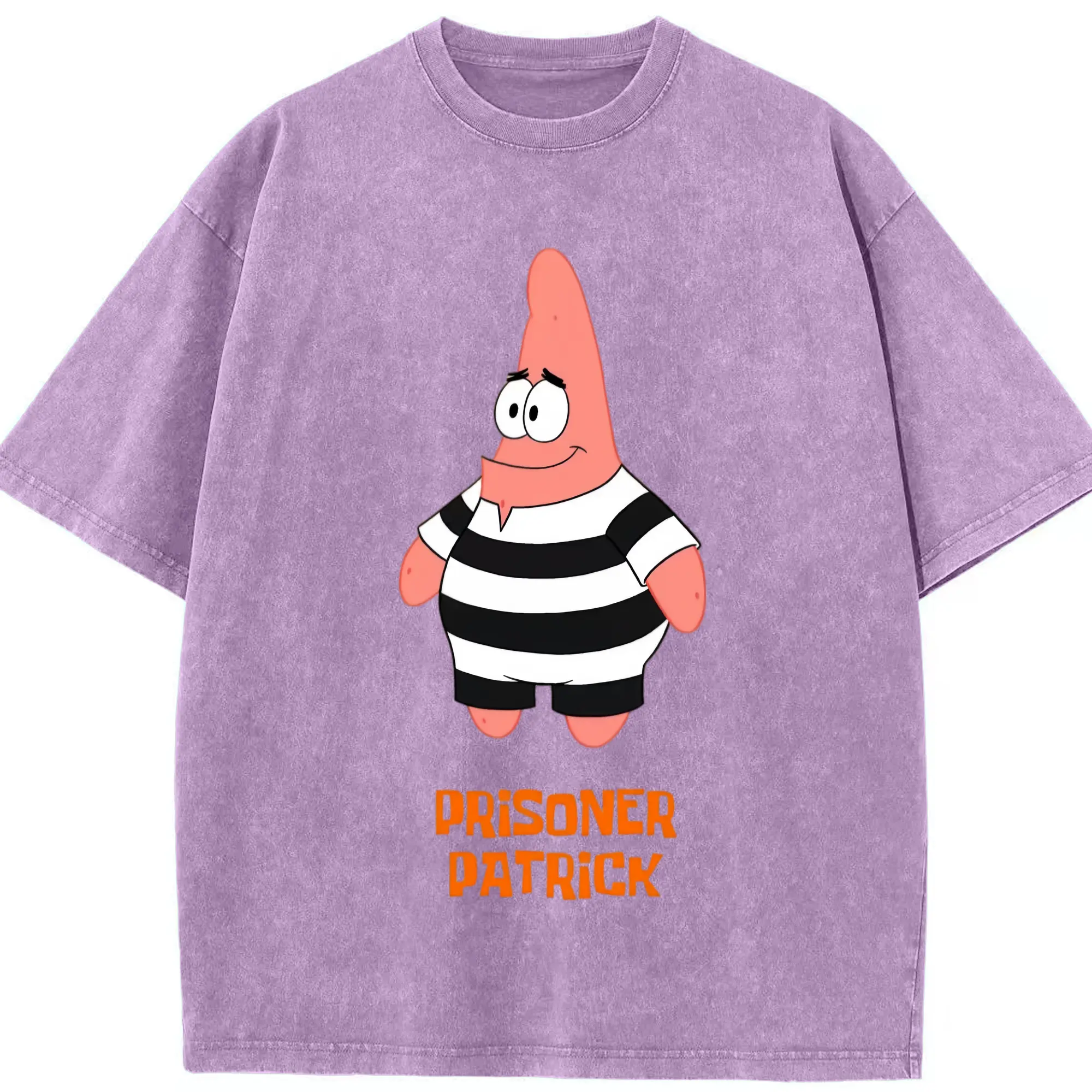 Patrick Star prisoner Graphic T-Shirt - Washed Vintage Look 230g Cotton Oversized T-Shirt With Front Heat Transfer Print – Soft, Lightweight, Stylish Fit – Comfortable Casual Wear For Sports & Everyday Use