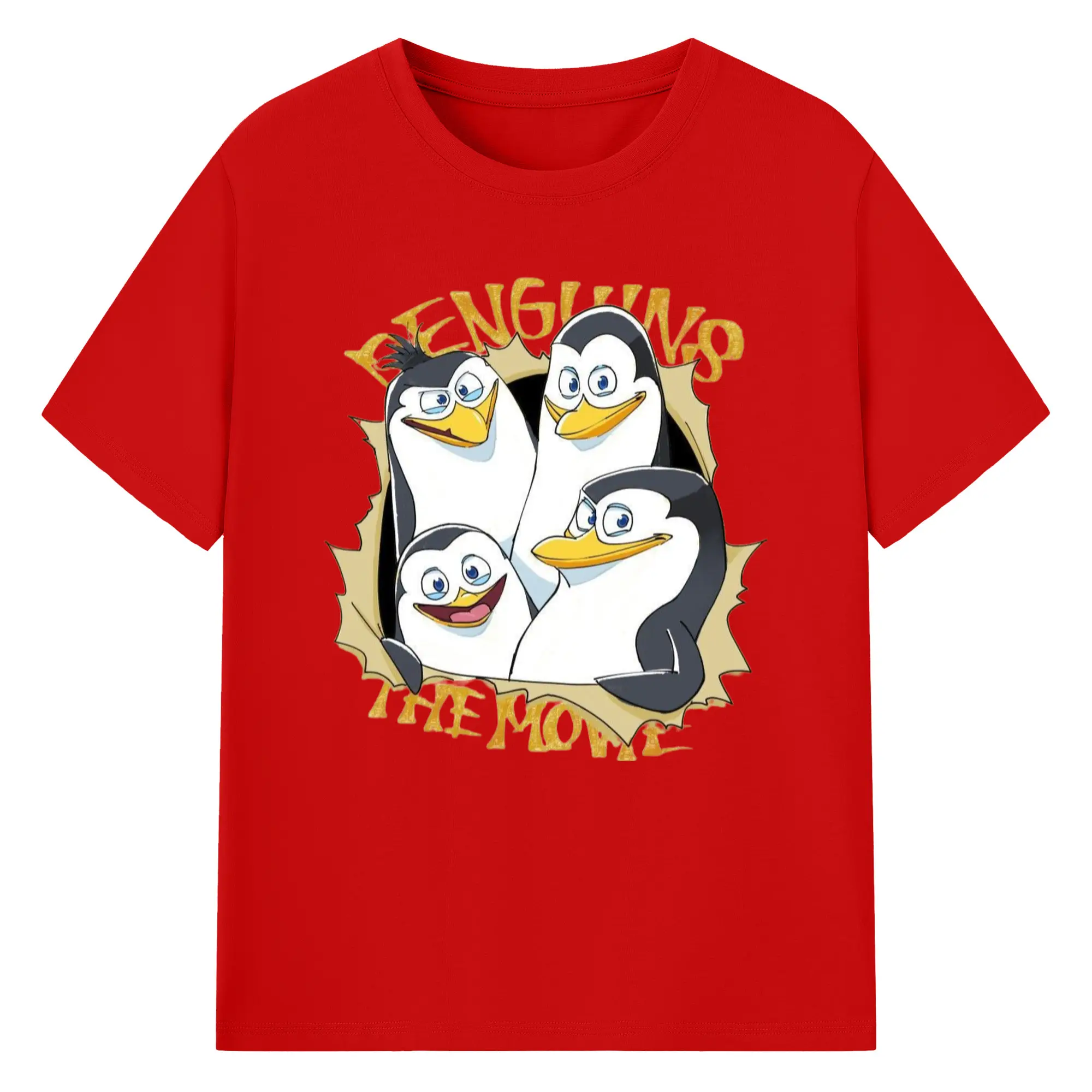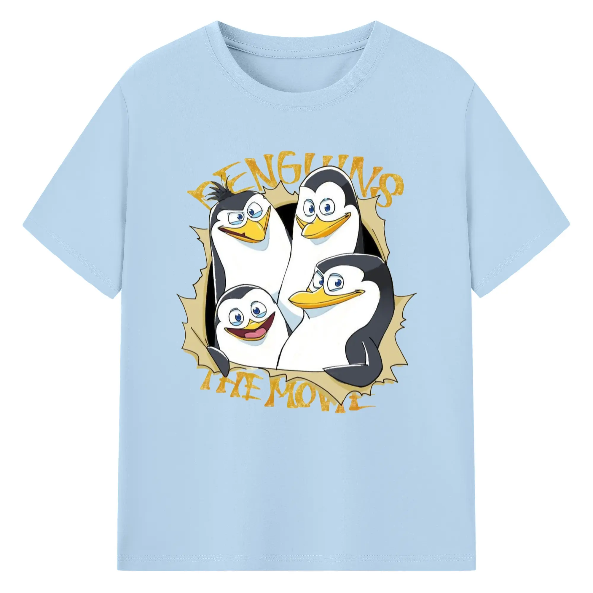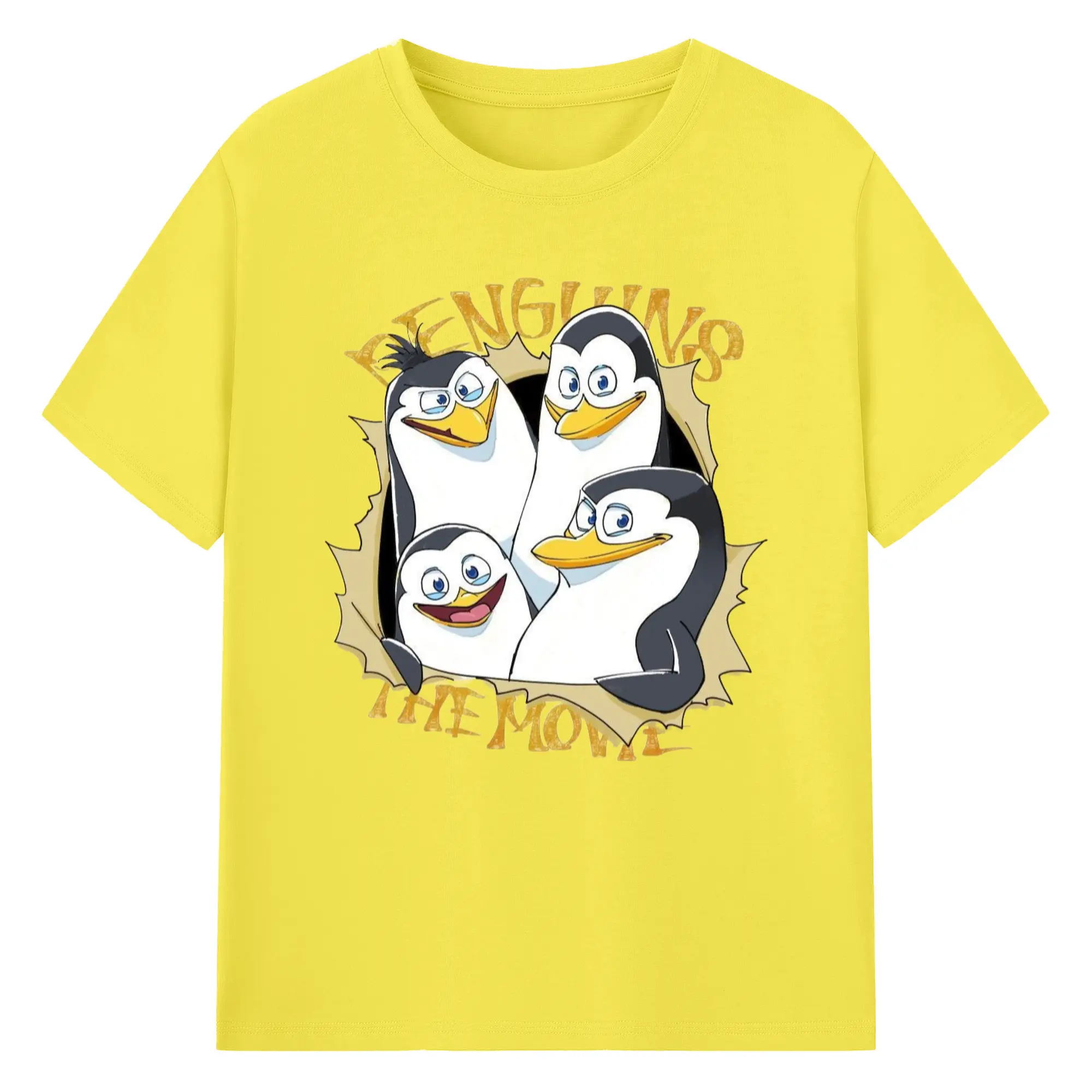 Penguins of madagascar collage t shirt​ - 180g Cotton T-Shirt With Front Heat Transfer Print – Soft, Lightweight, Fitted Design – Comfortable Casual Wear For Sports & Everyday Use