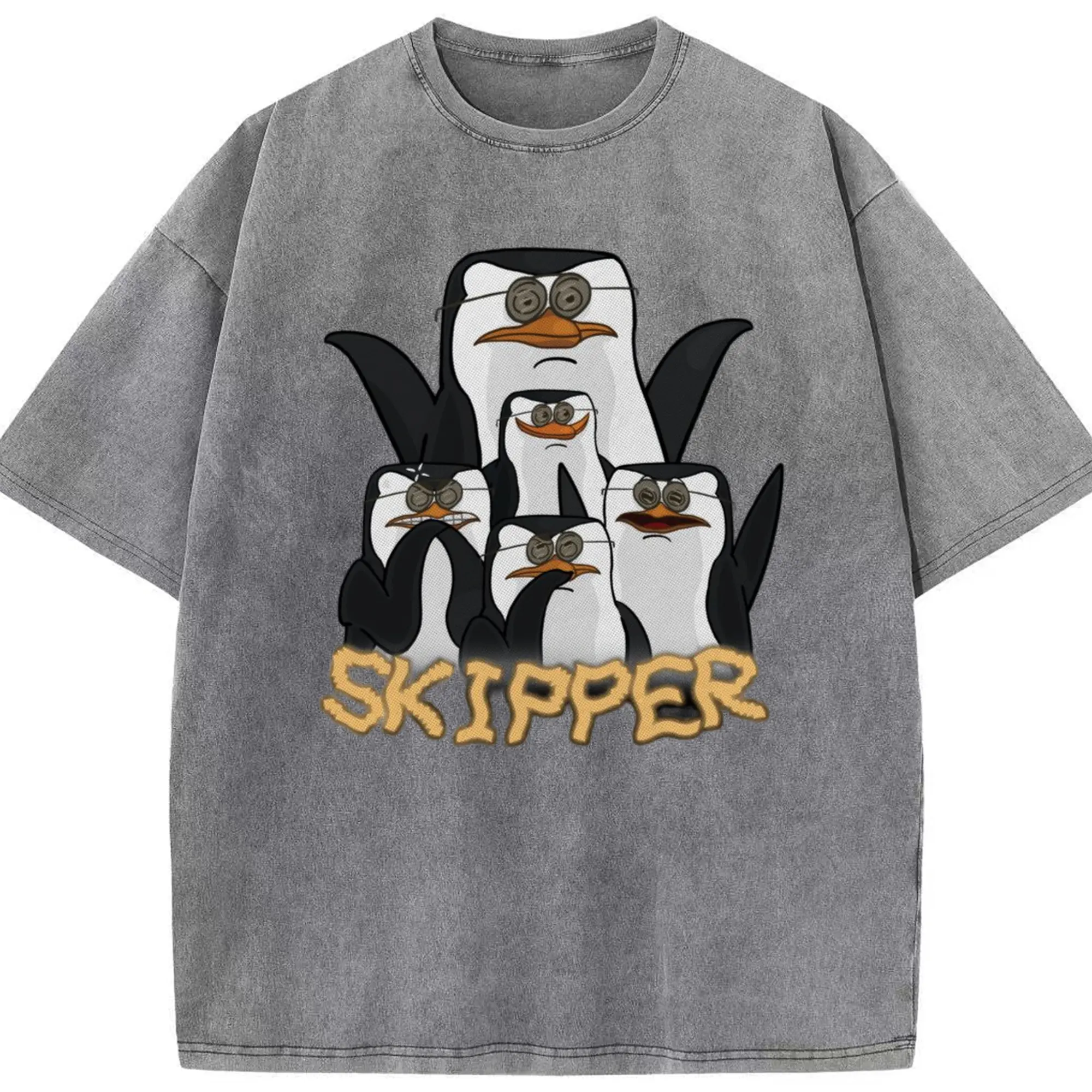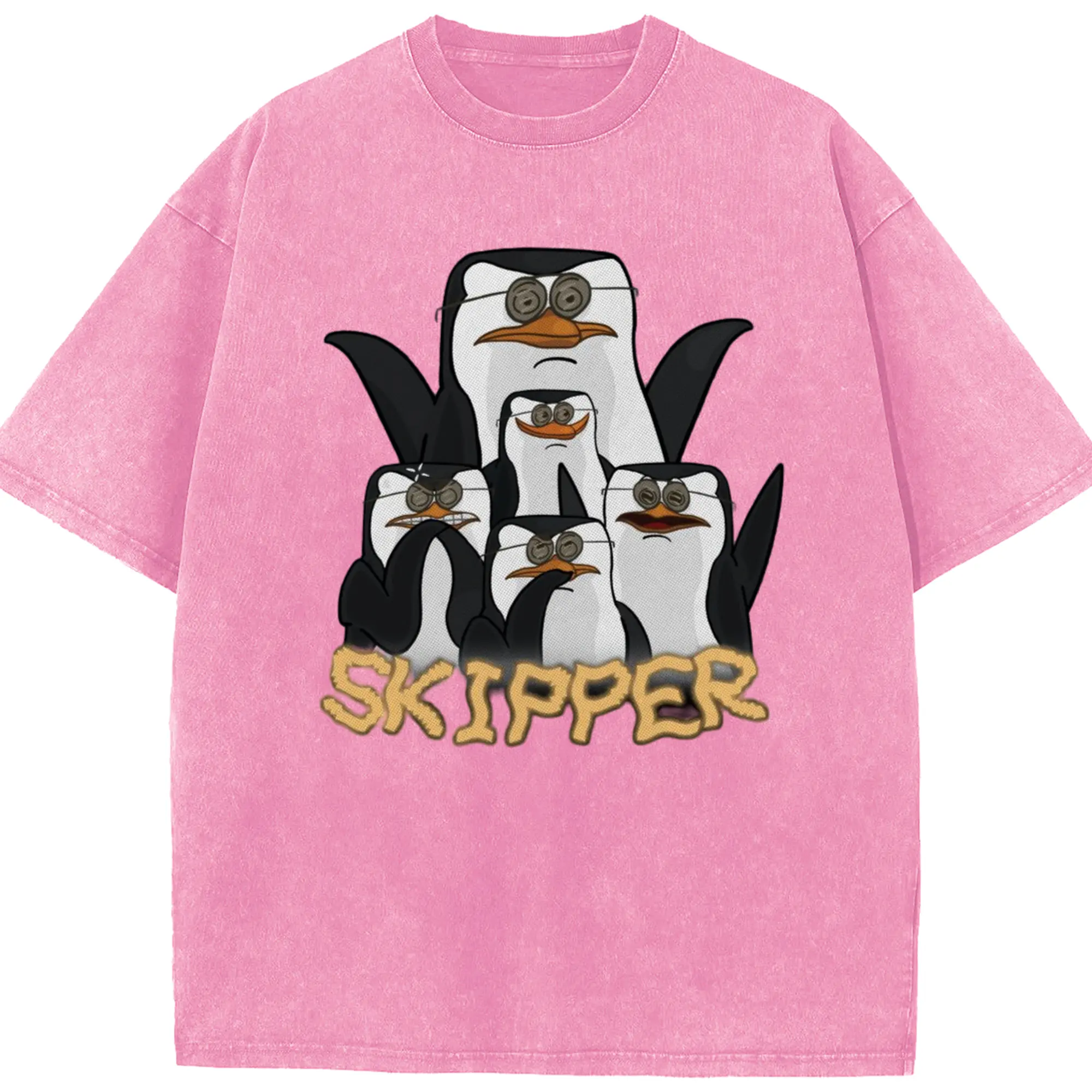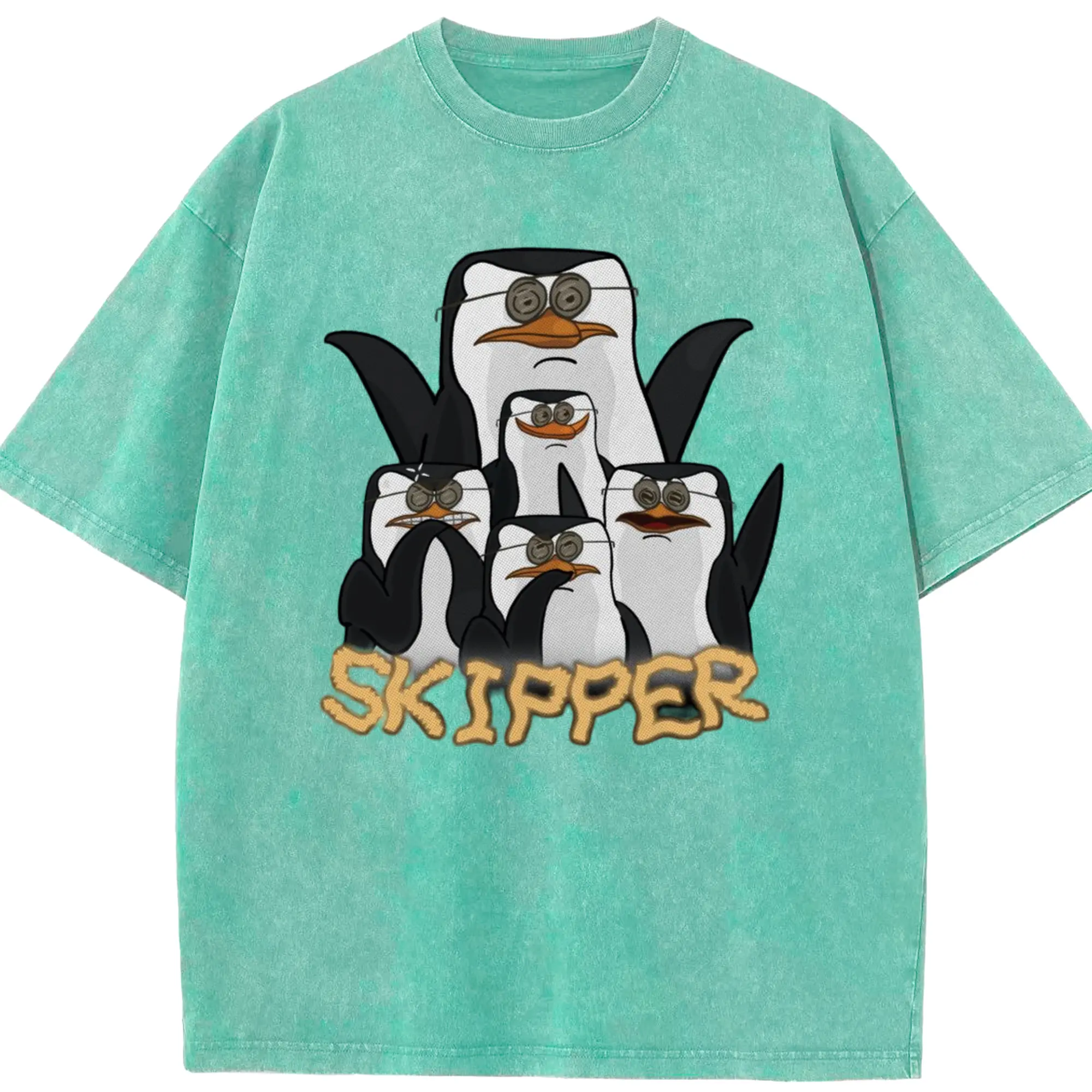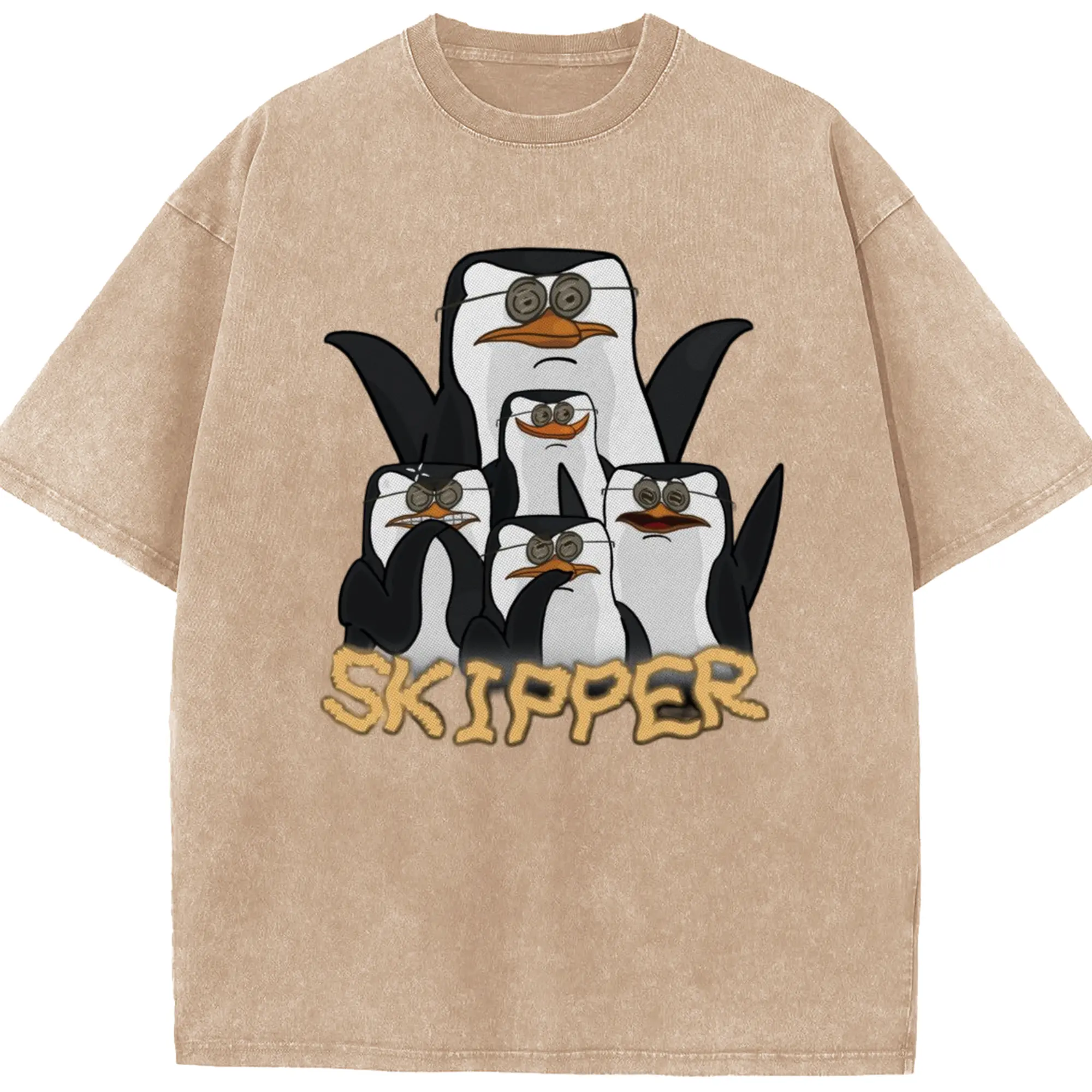 Penguins of madagascar tee shirts​ - Washed Vintage Look 230g Cotton Oversized T-Shirt With Front Heat Transfer Print – Soft, Lightweight, Stylish Fit – Comfortable Casual Wear For Sports & Everyday Use