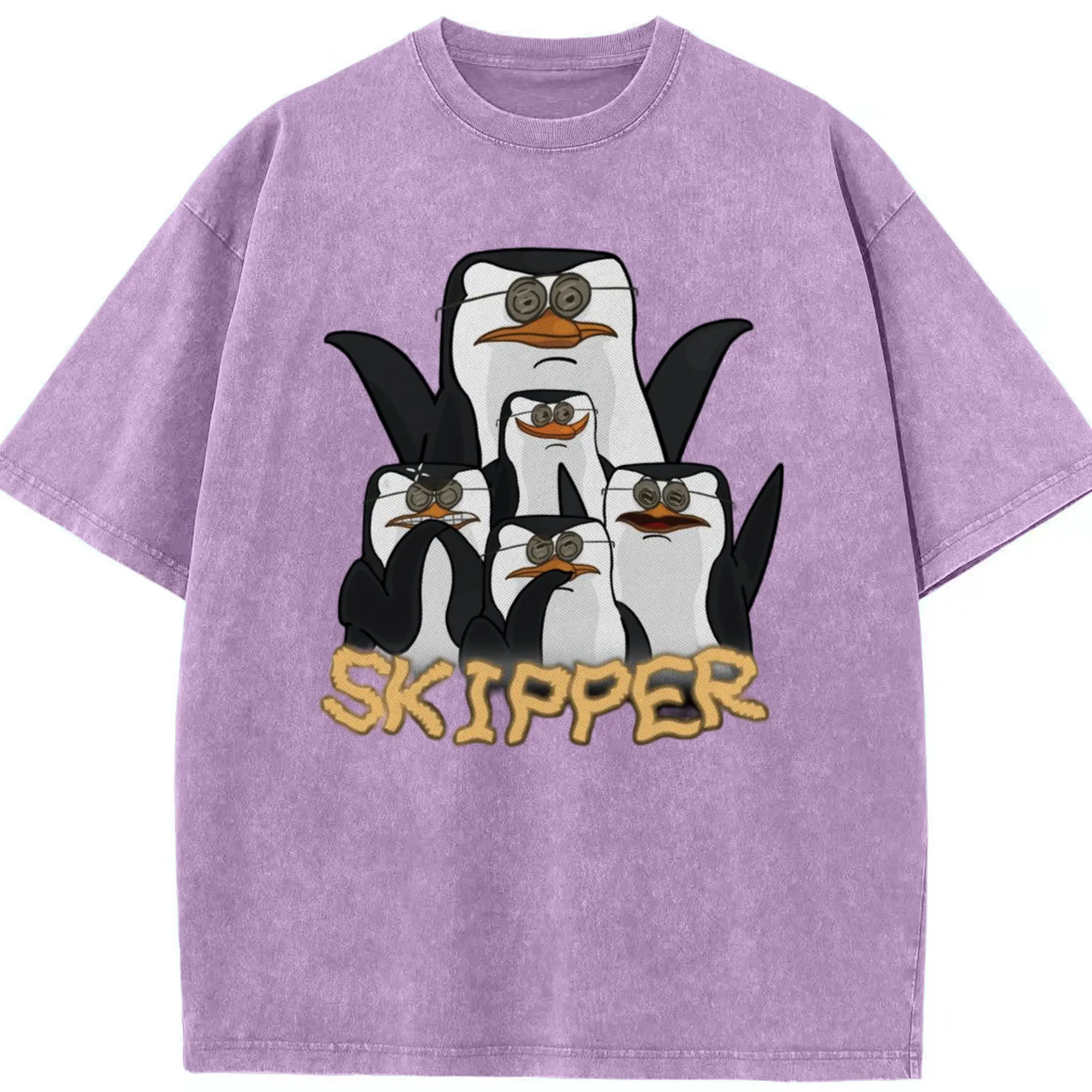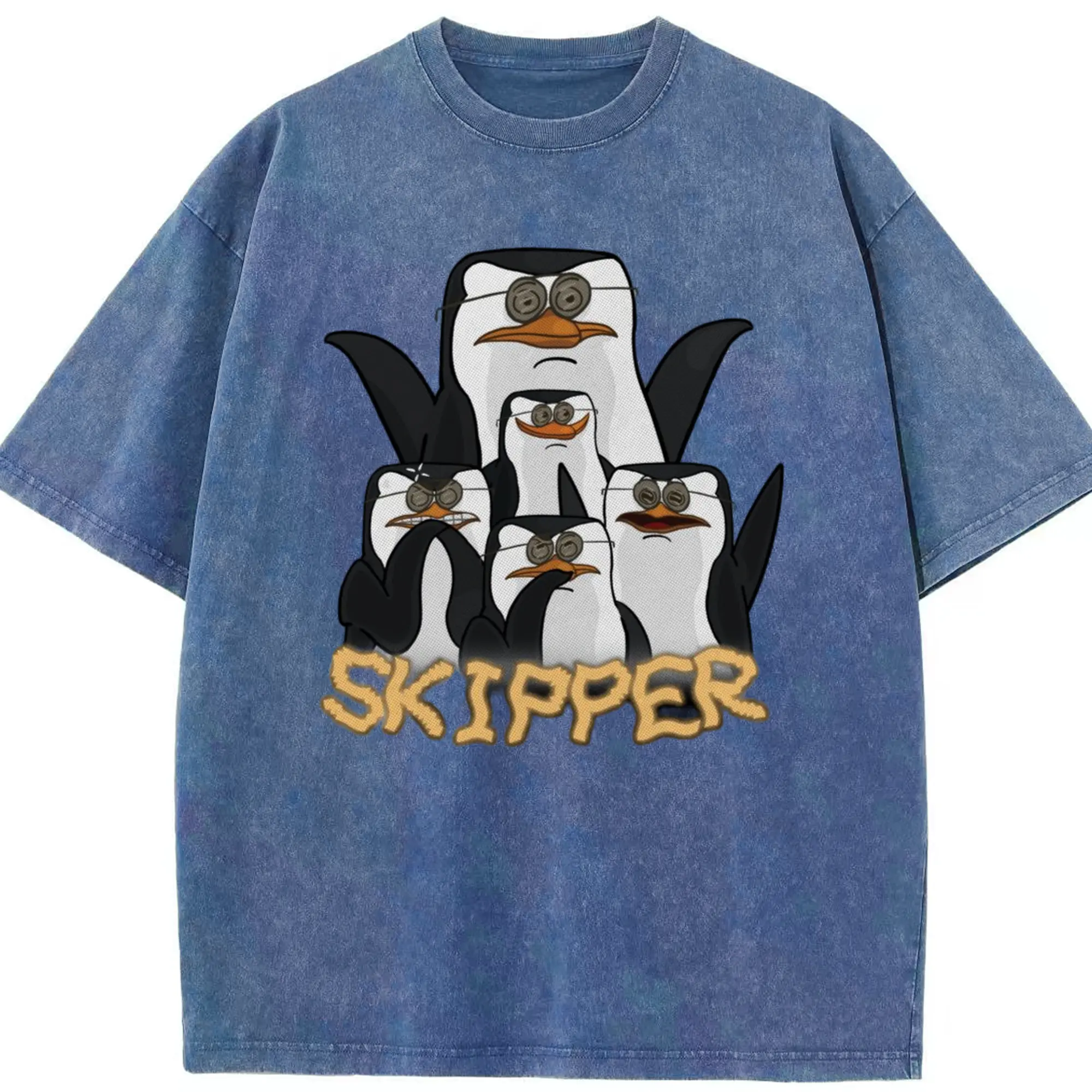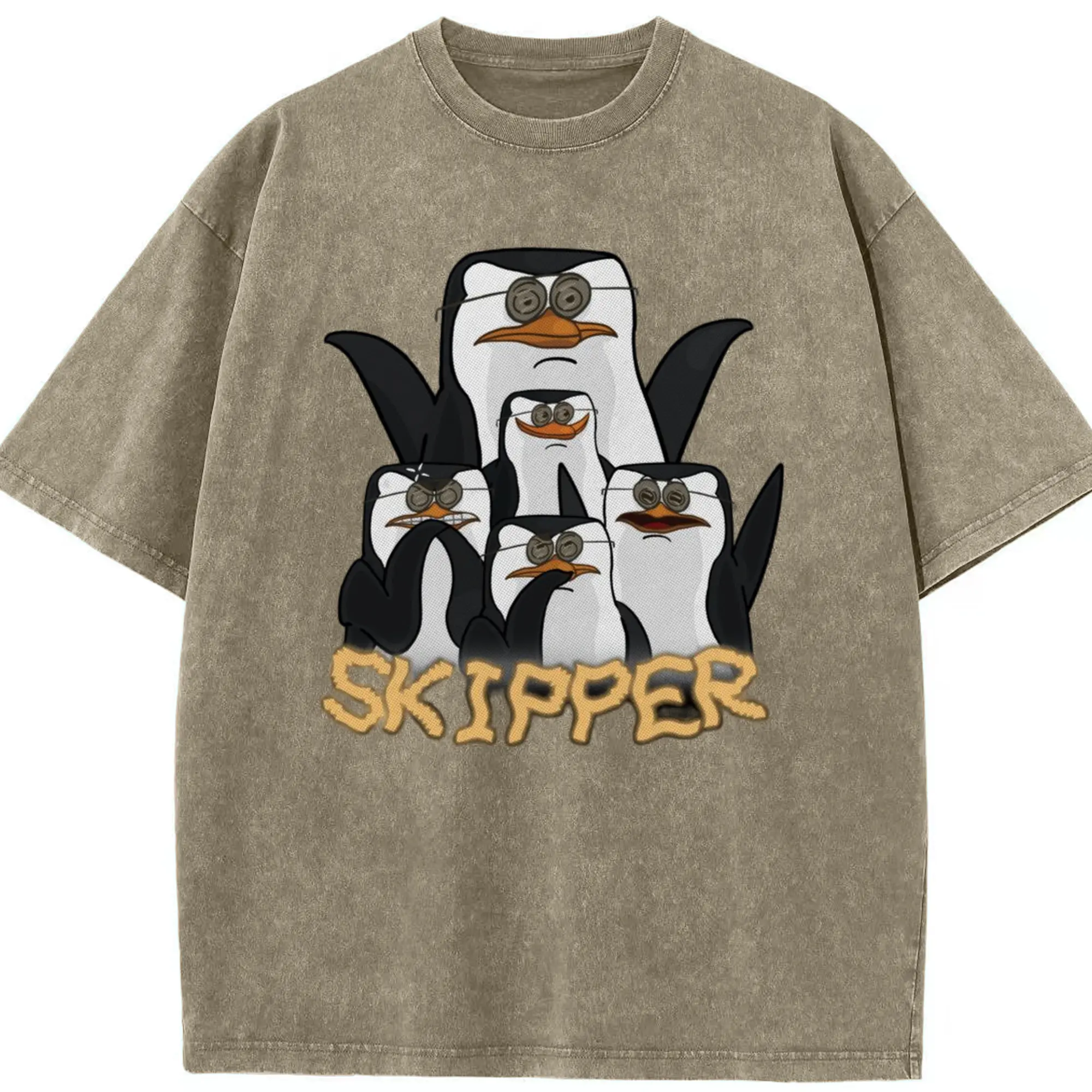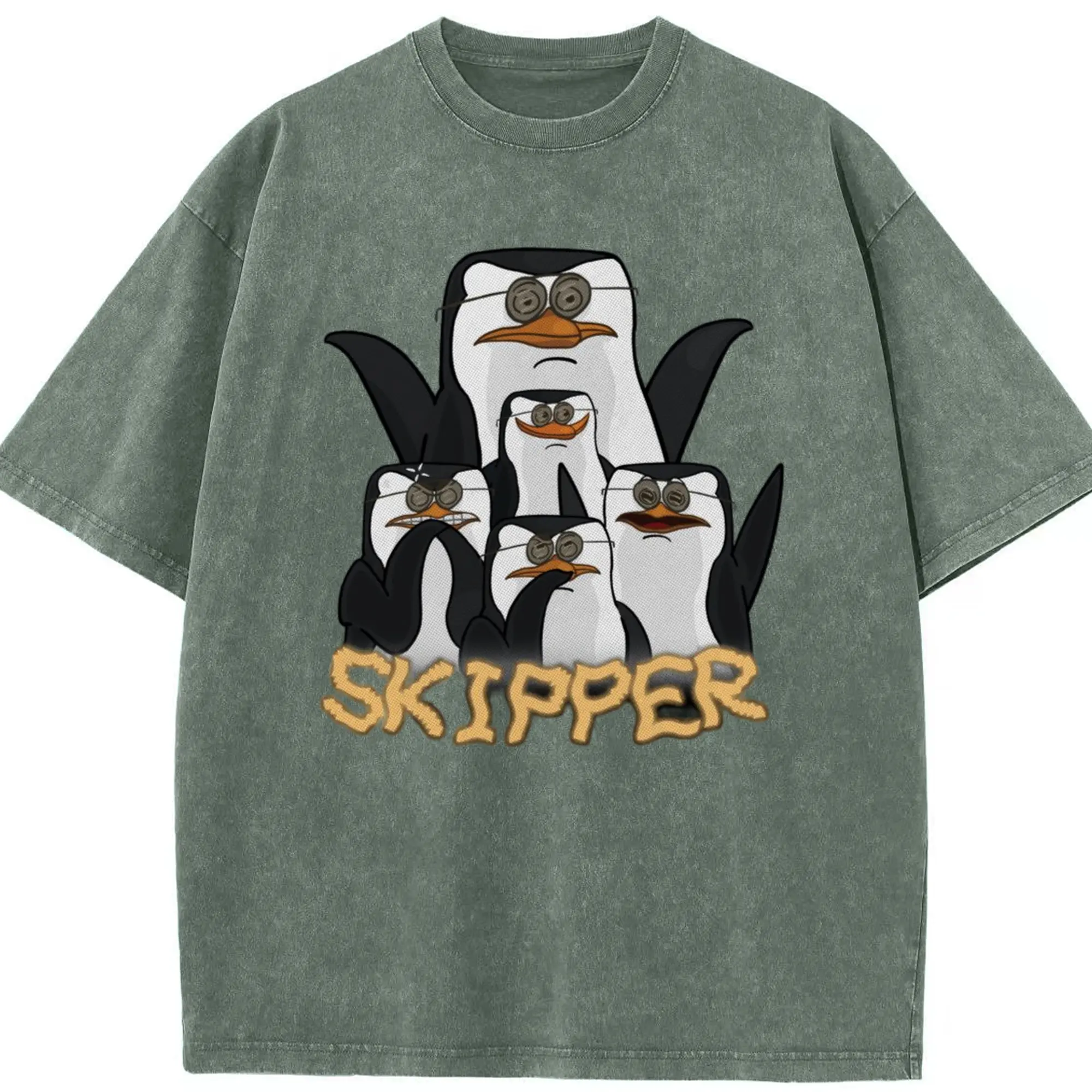 Penguins of madagascar tee shirts​ - Washed Vintage Look 230g Cotton Oversized T-Shirt With Front Heat Transfer Print – Soft, Lightweight, Stylish Fit – Comfortable Casual Wear For Sports & Everyday Use
