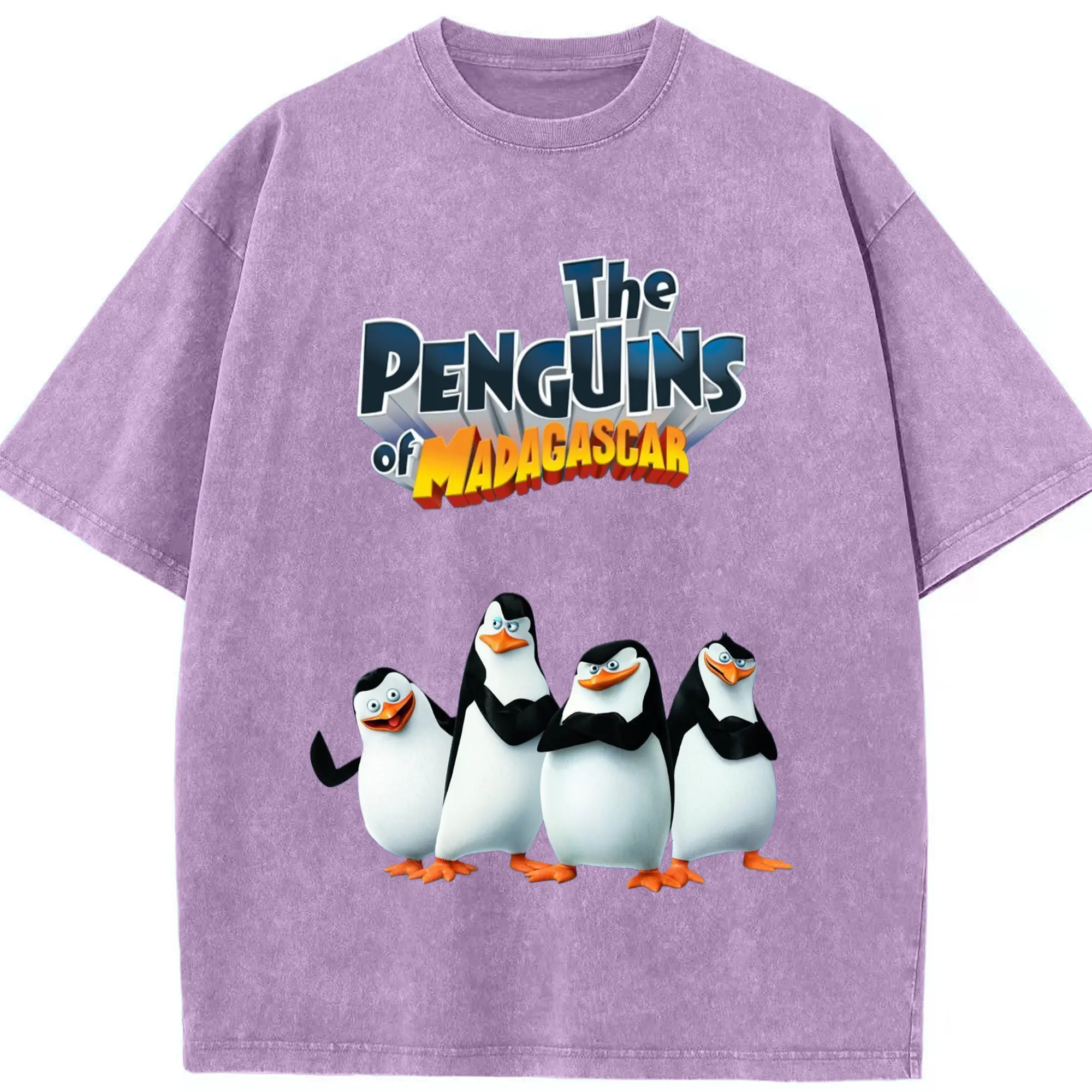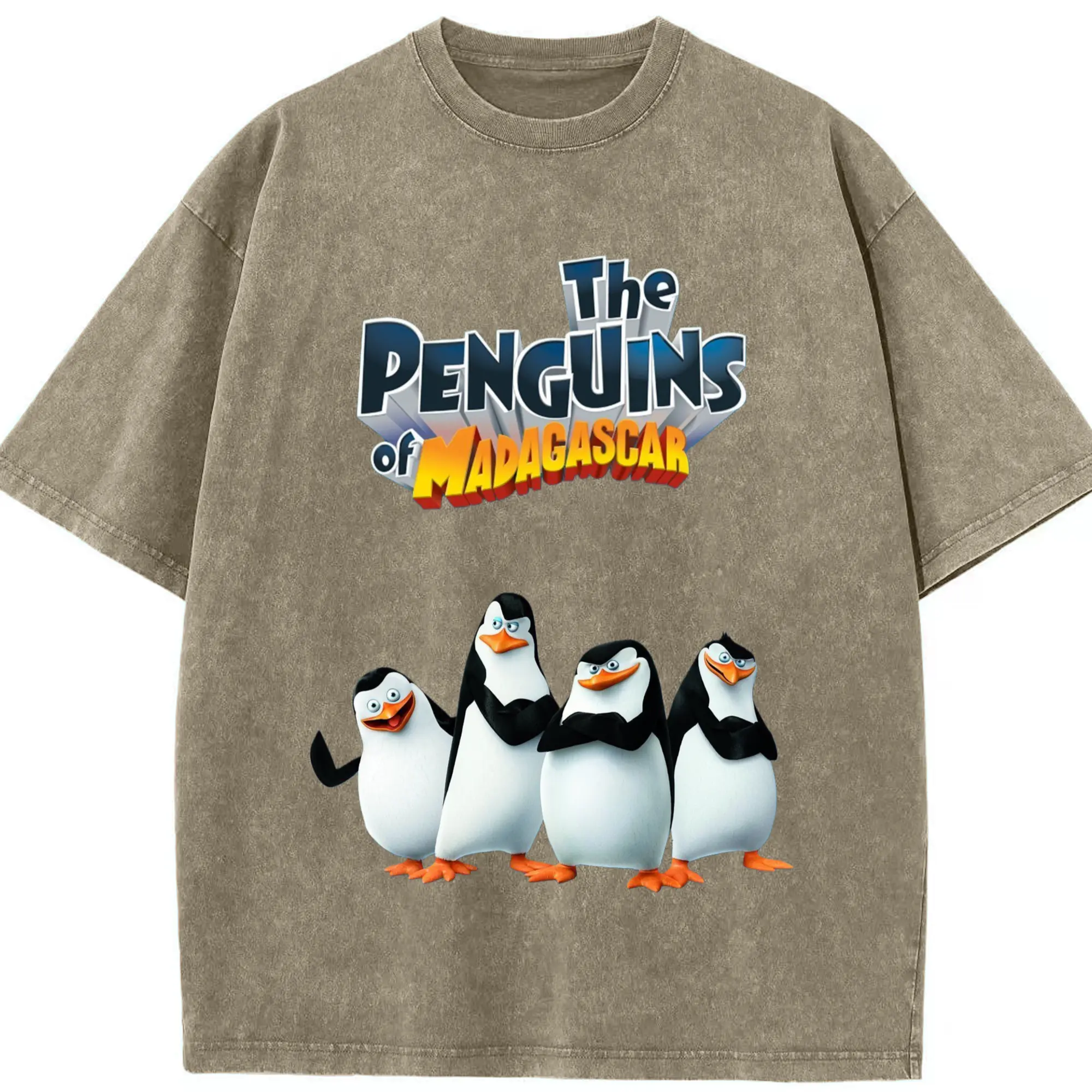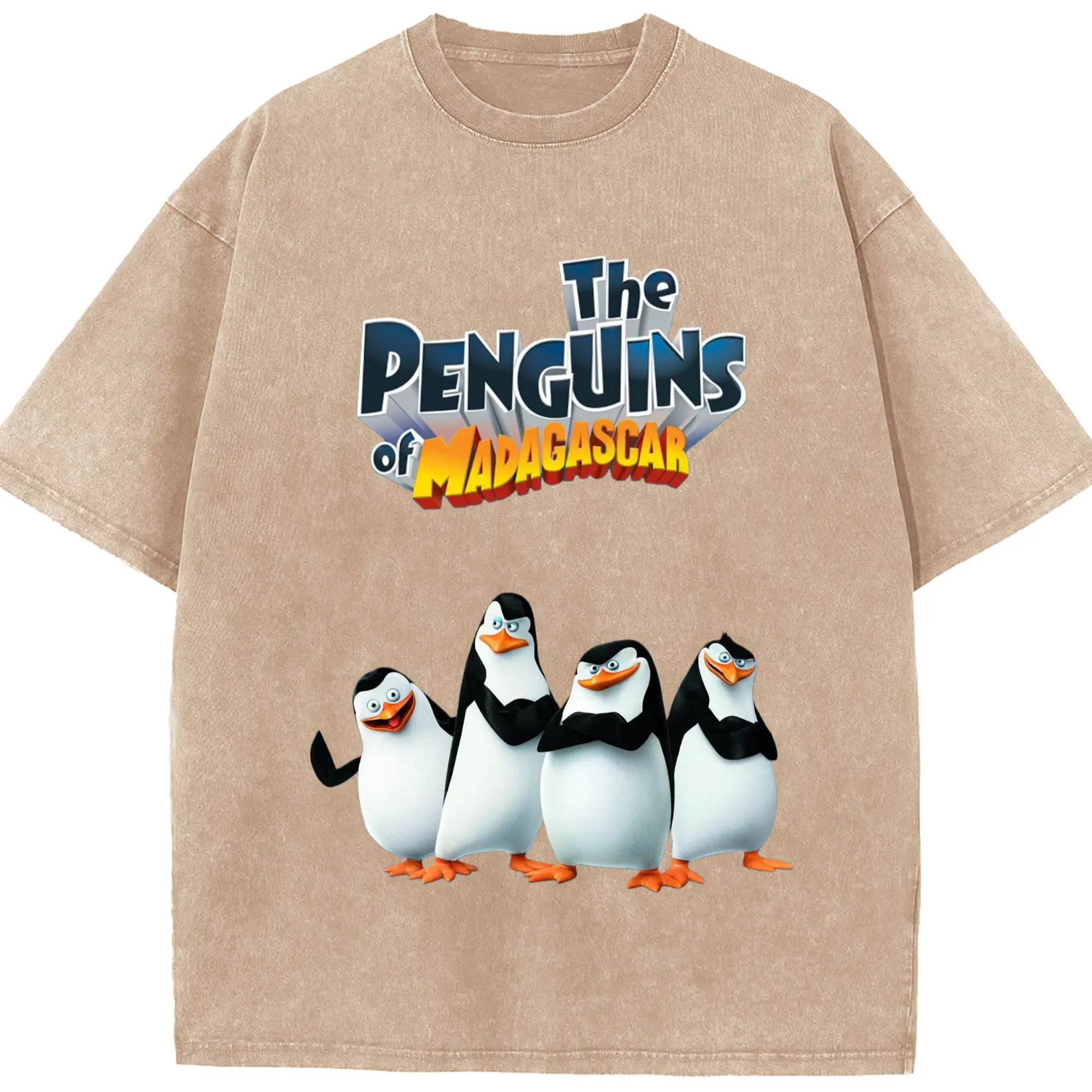 Penguins of madagascar vintage t shirt - Washed Vintage Look 230g Cotton Oversized T-Shirt With Front Heat Transfer Print – Soft, Lightweight, Stylish Fit – Comfortable Casual Wear For Sports & Everyday Use