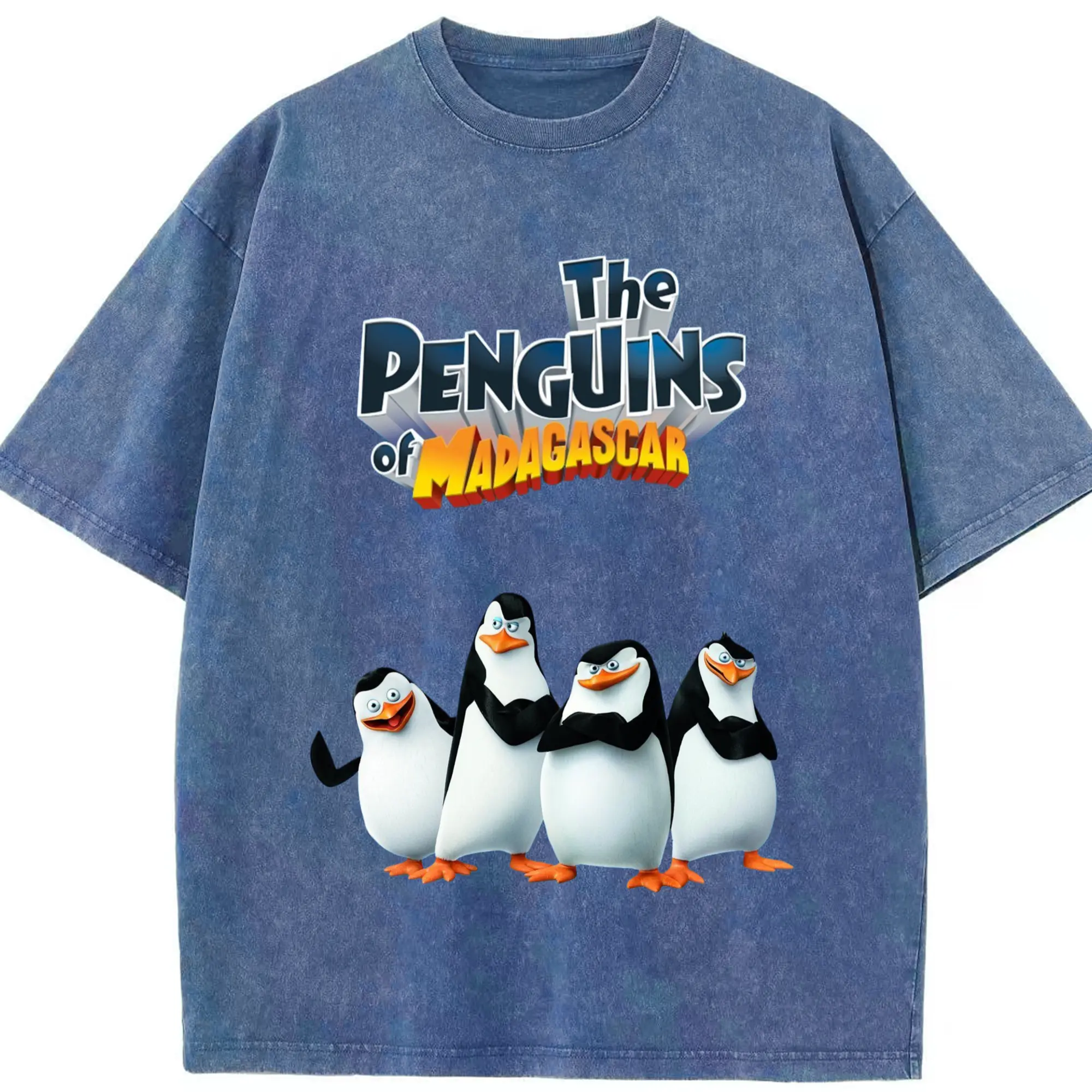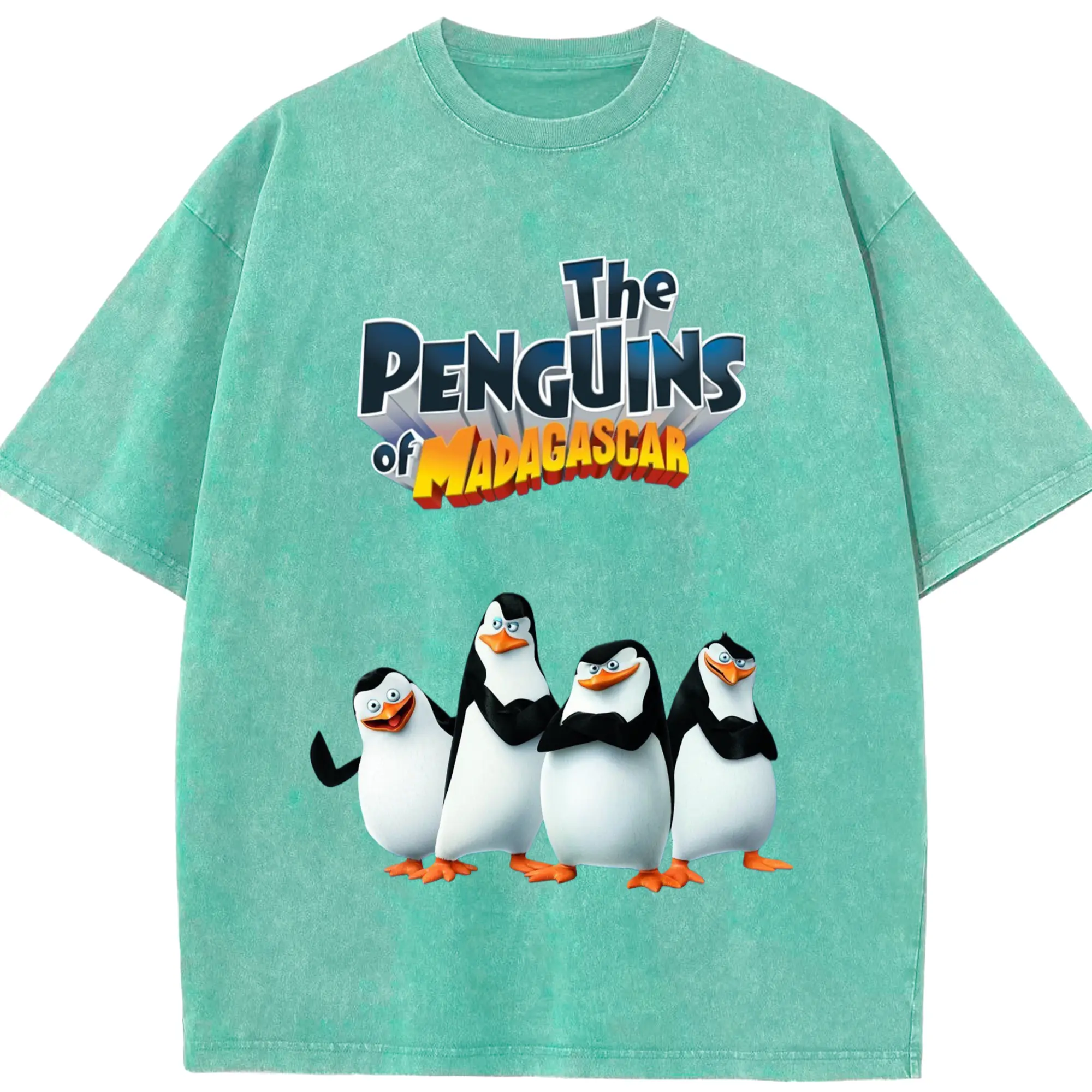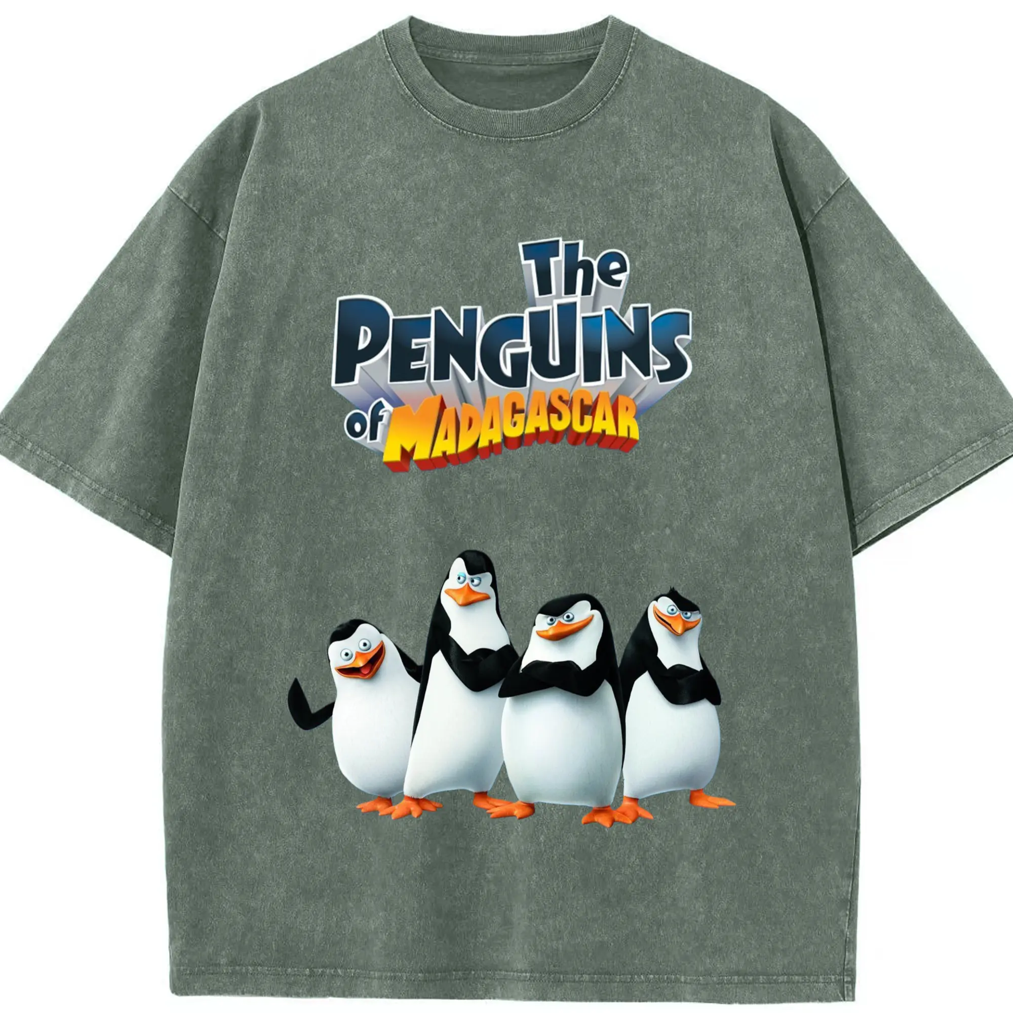 Penguins of madagascar vintage t shirt - Washed Vintage Look 230g Cotton Oversized T-Shirt With Front Heat Transfer Print – Soft, Lightweight, Stylish Fit – Comfortable Casual Wear For Sports & Everyday Use