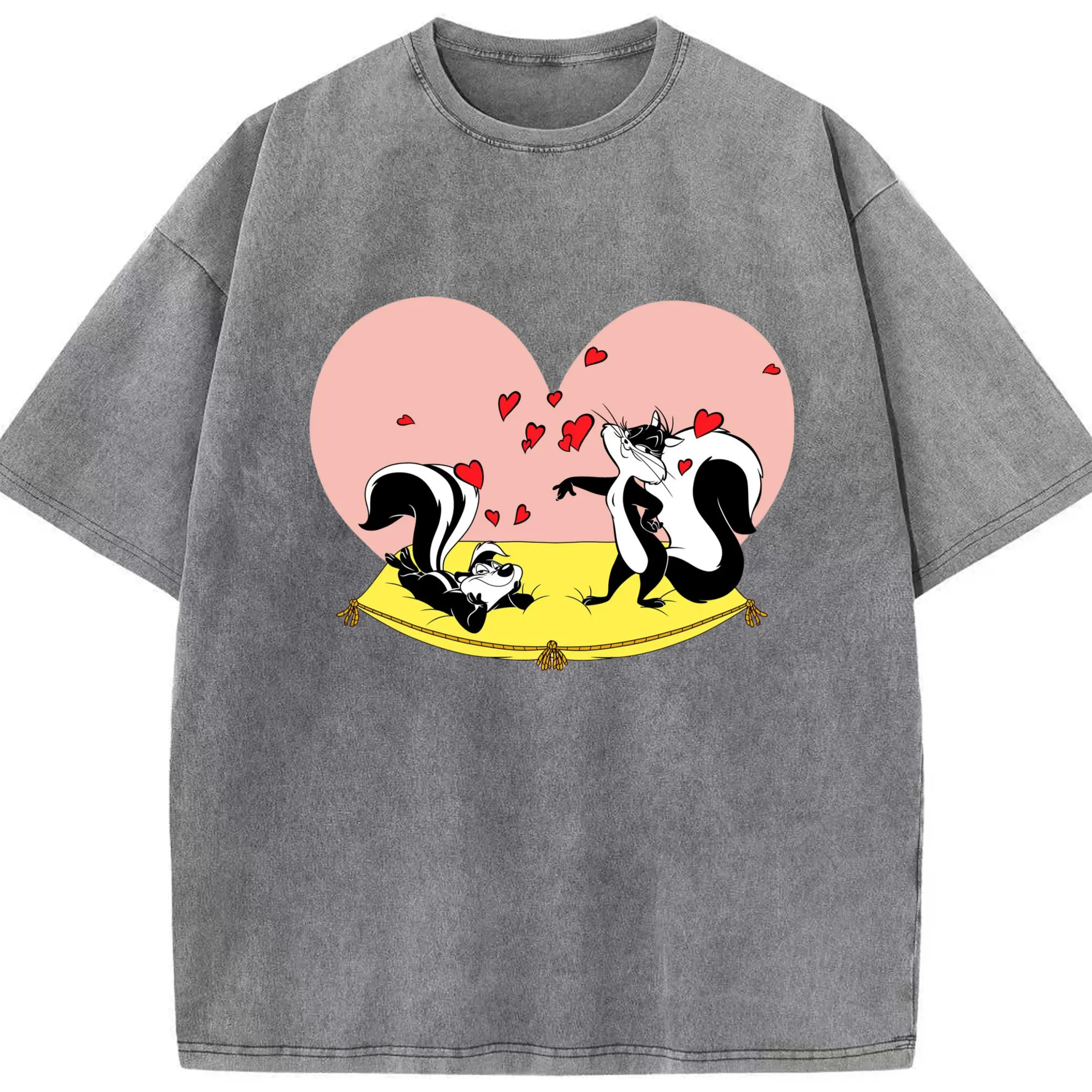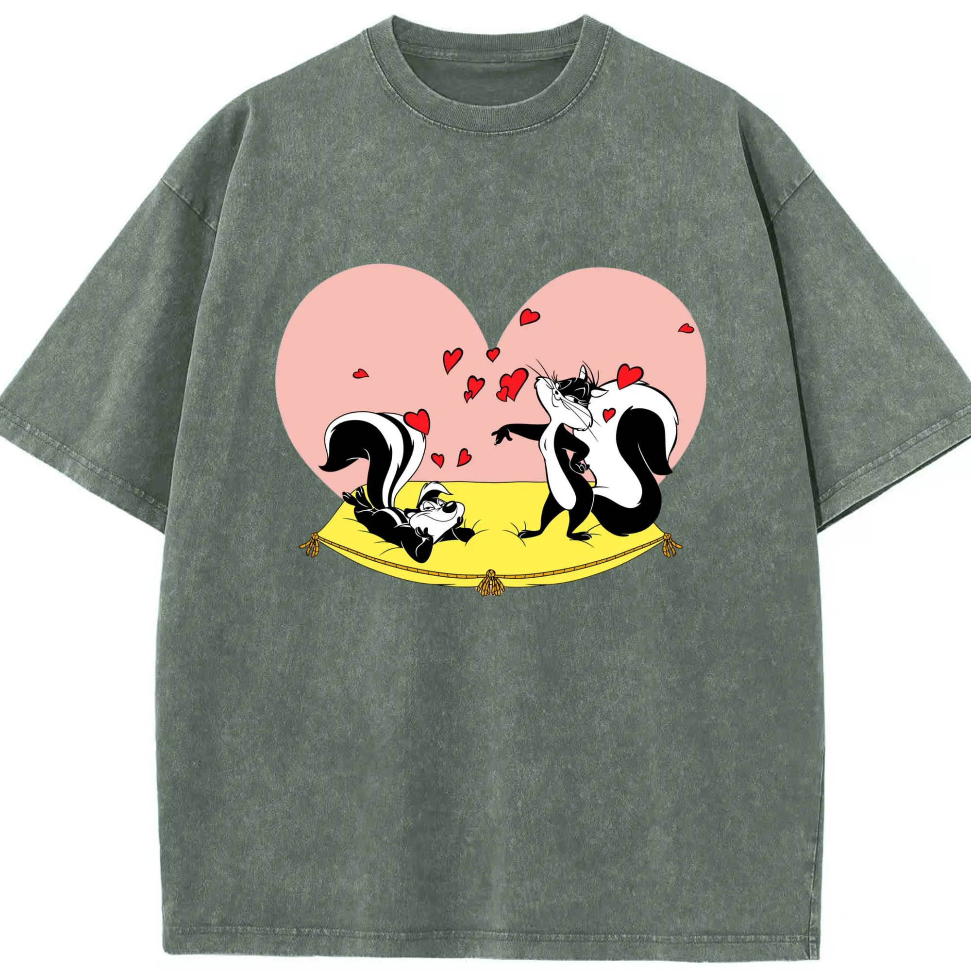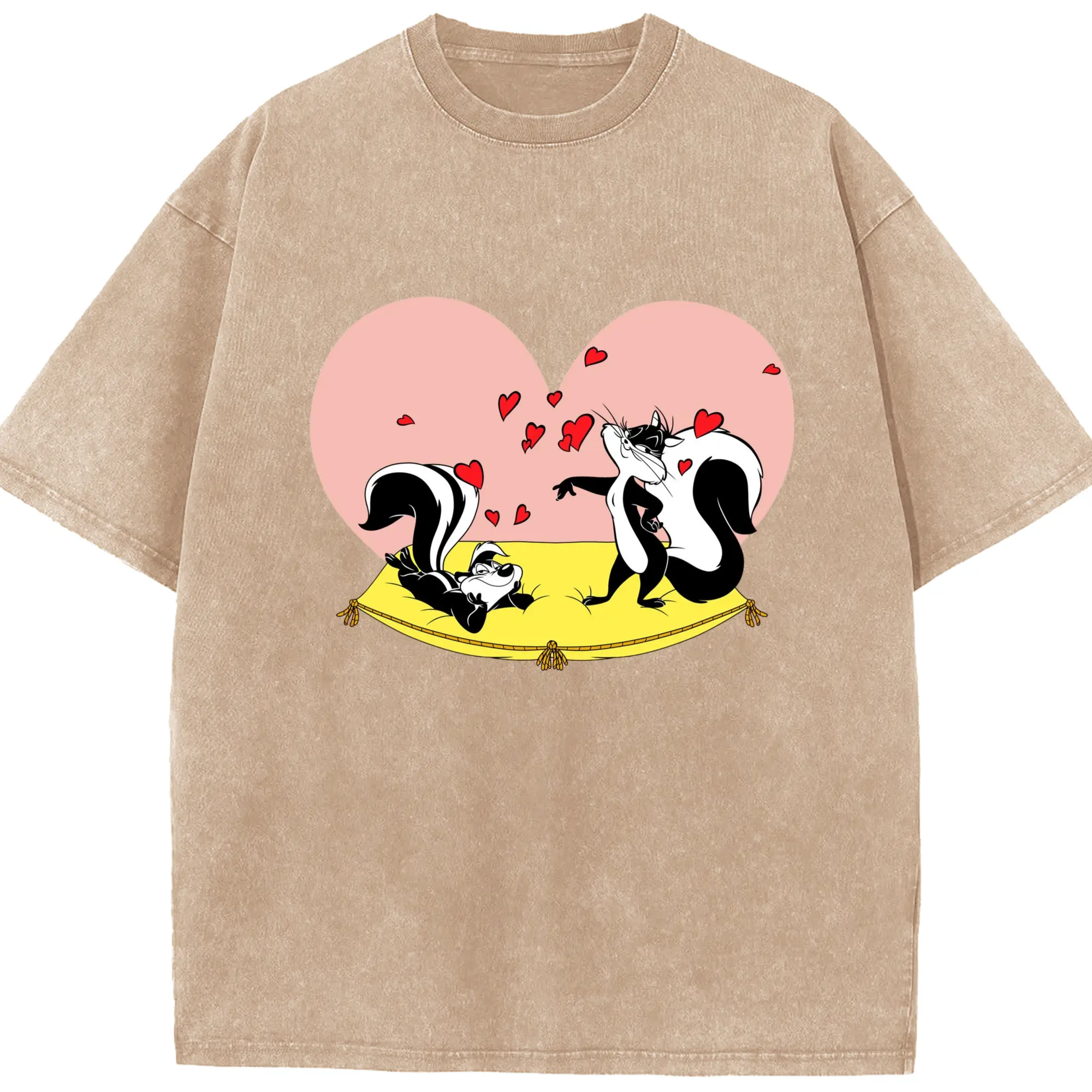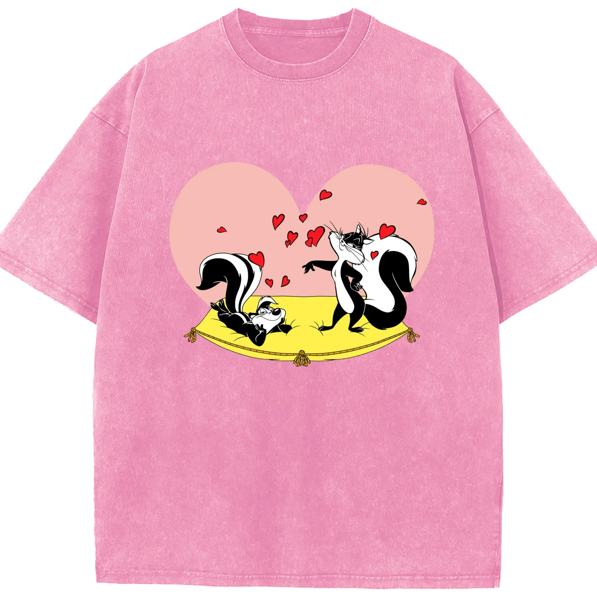 Pepé Le Pew tee - Washed Vintage Look 230g Cotton Oversized T-Shirt With Front Heat Transfer Print – Soft, Lightweight, Stylish Fit – Comfortable Casual Wear For Sports & Everyday Use