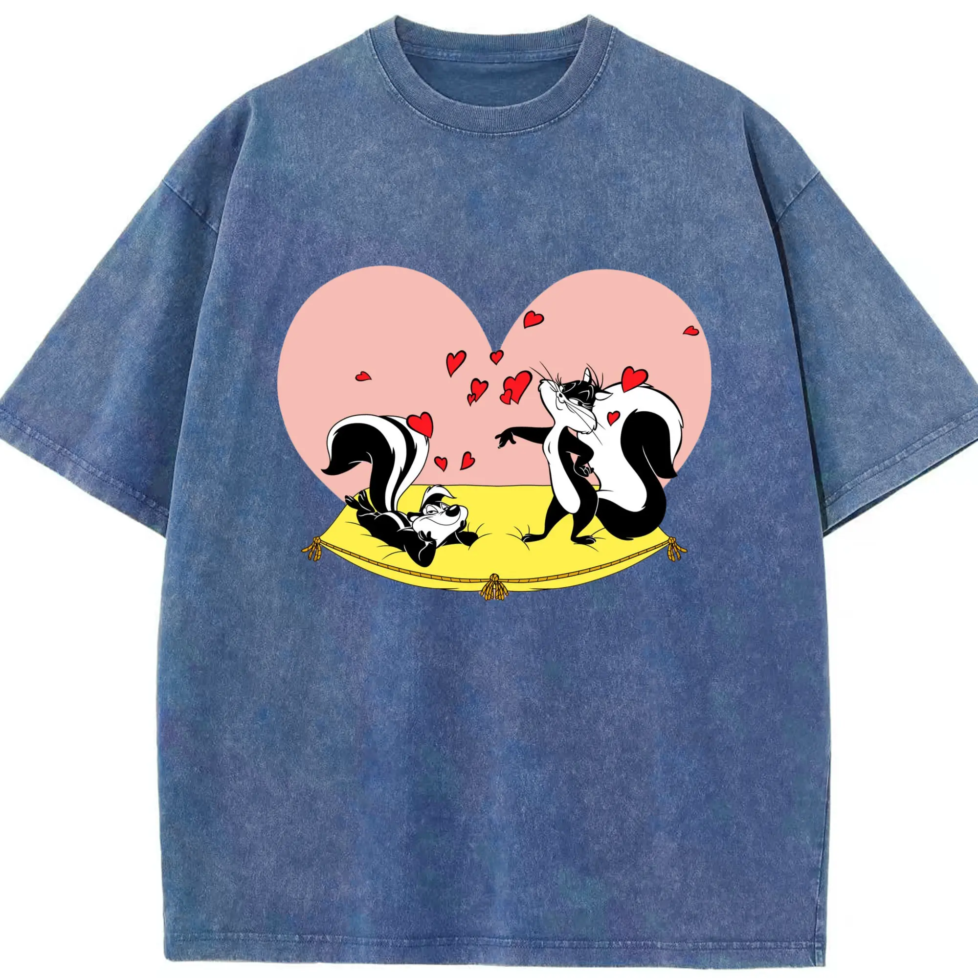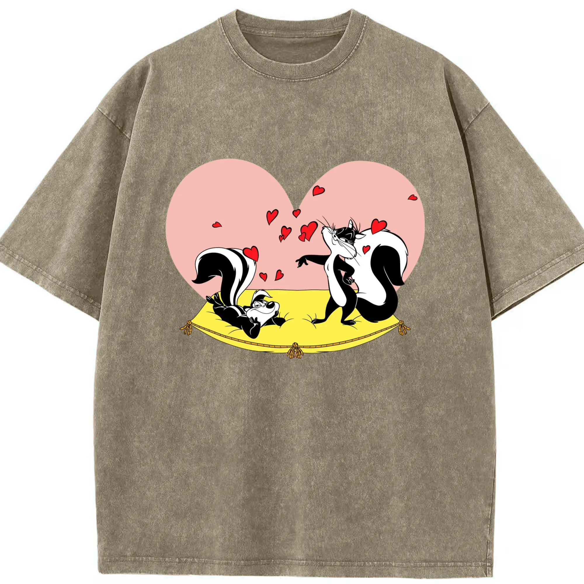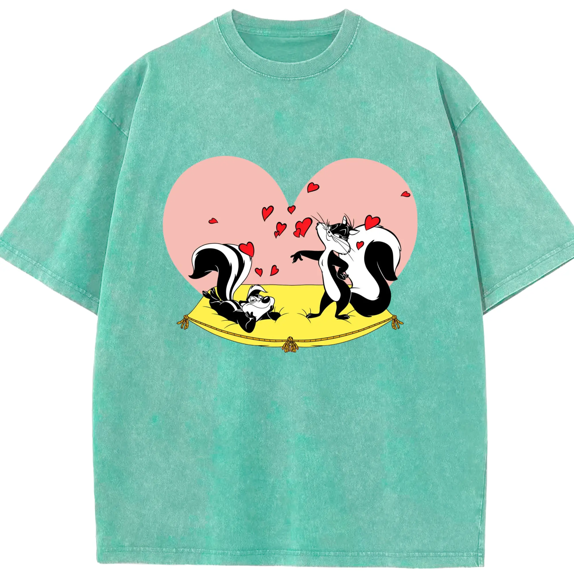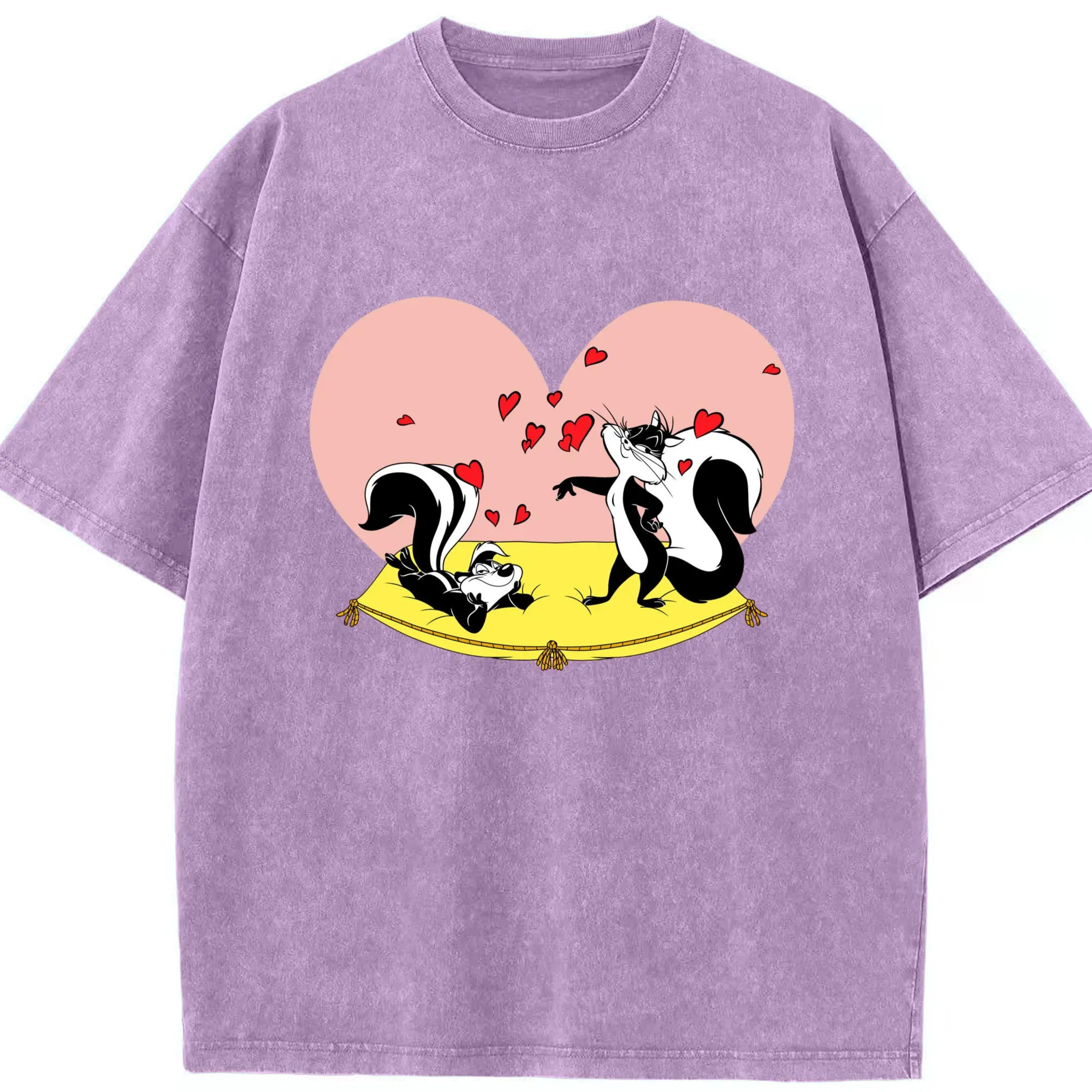 Pepé Le Pew tee - Washed Vintage Look 230g Cotton Oversized T-Shirt With Front Heat Transfer Print – Soft, Lightweight, Stylish Fit – Comfortable Casual Wear For Sports & Everyday Use