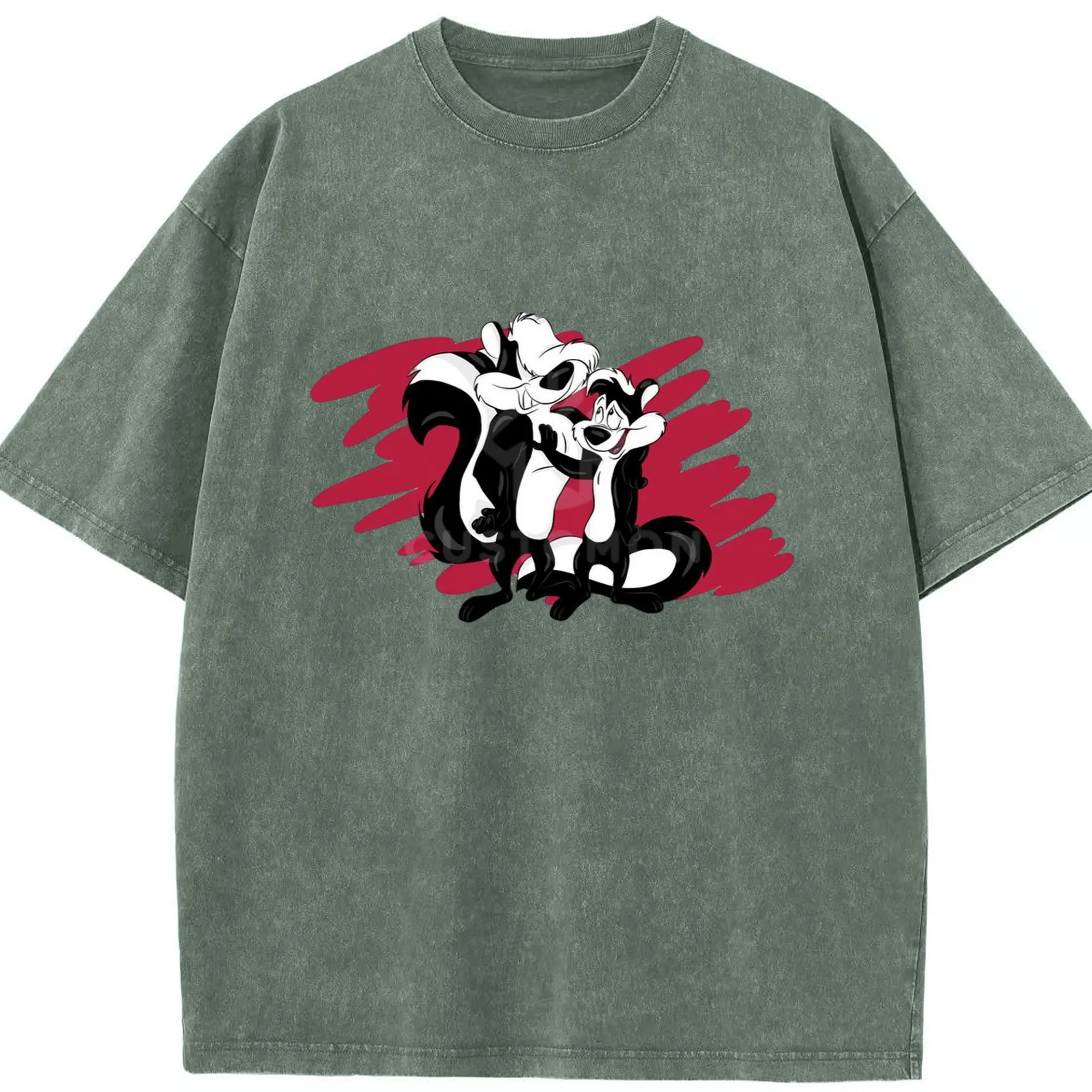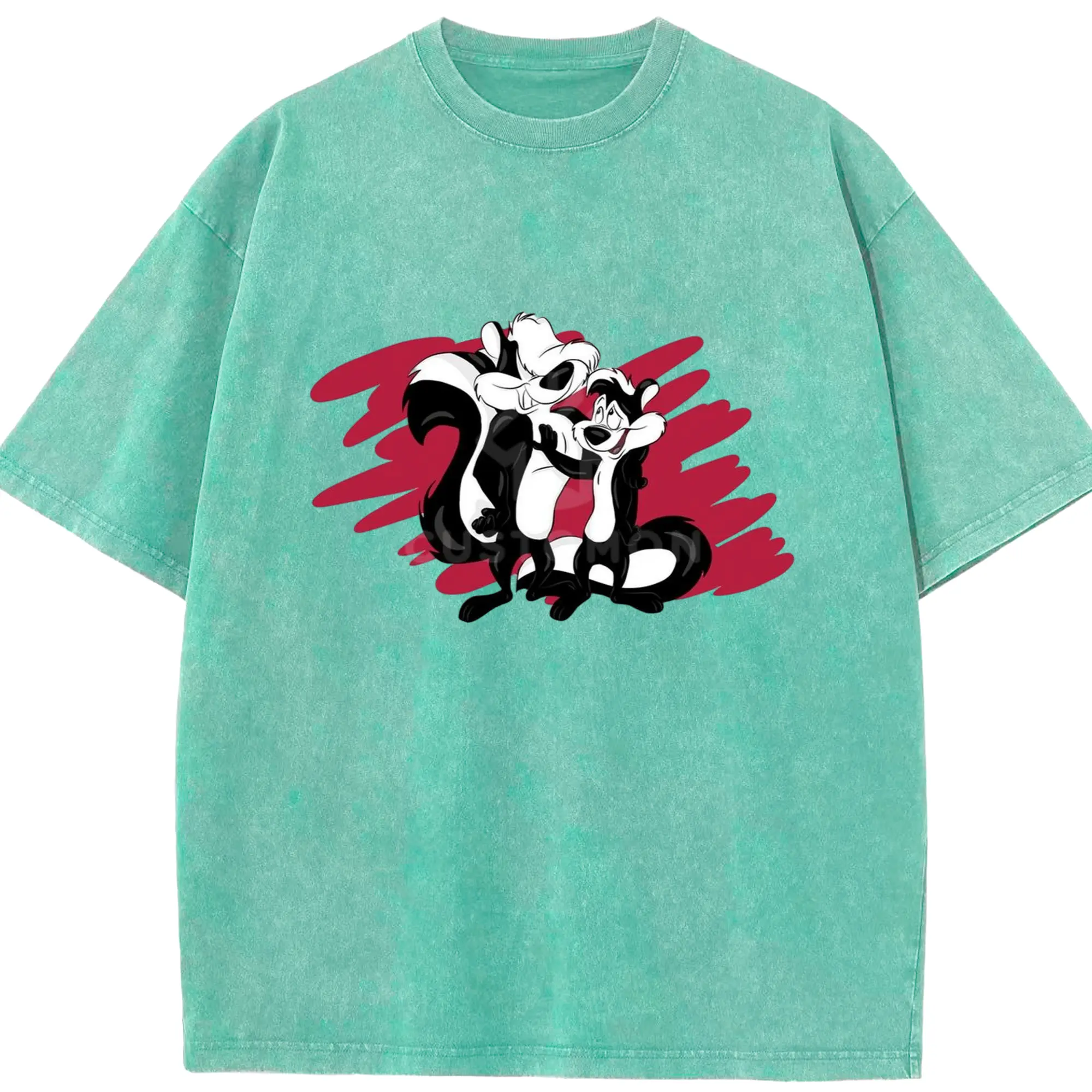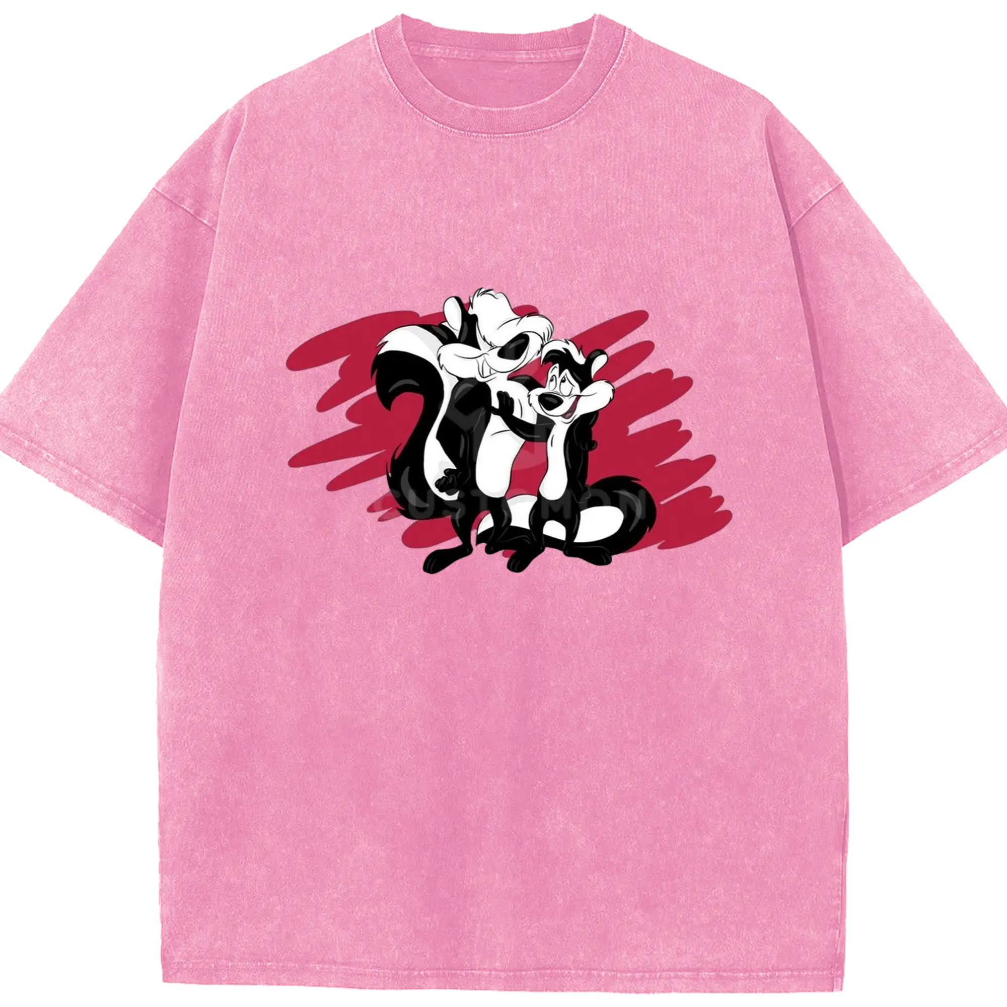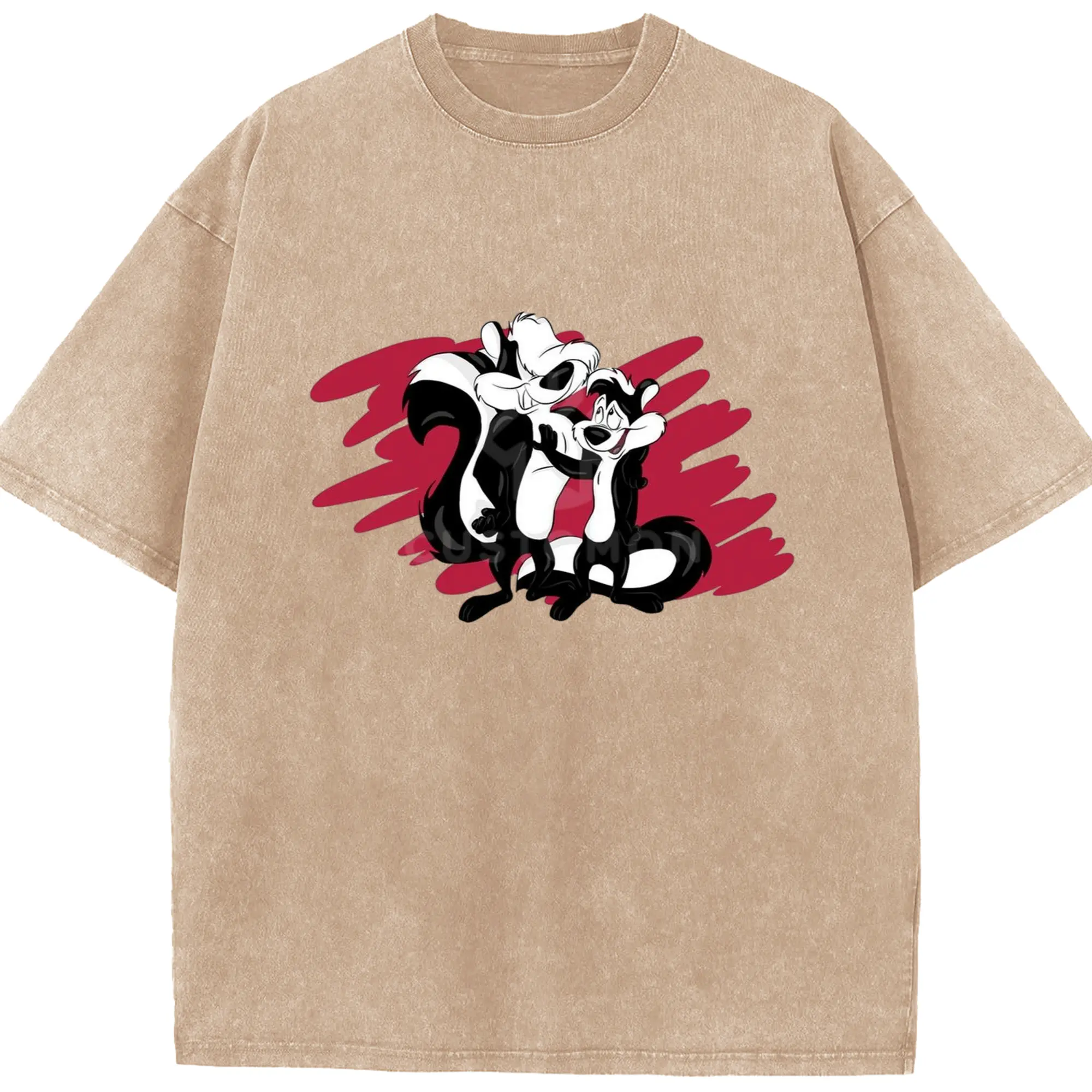 Pepe le pew brother tee shirts - Washed Vintage Look 230g Cotton Oversized T-Shirt With Front Heat Transfer Print – Soft, Lightweight, Stylish Fit – Comfortable Casual Wear For Sports & Everyday Use