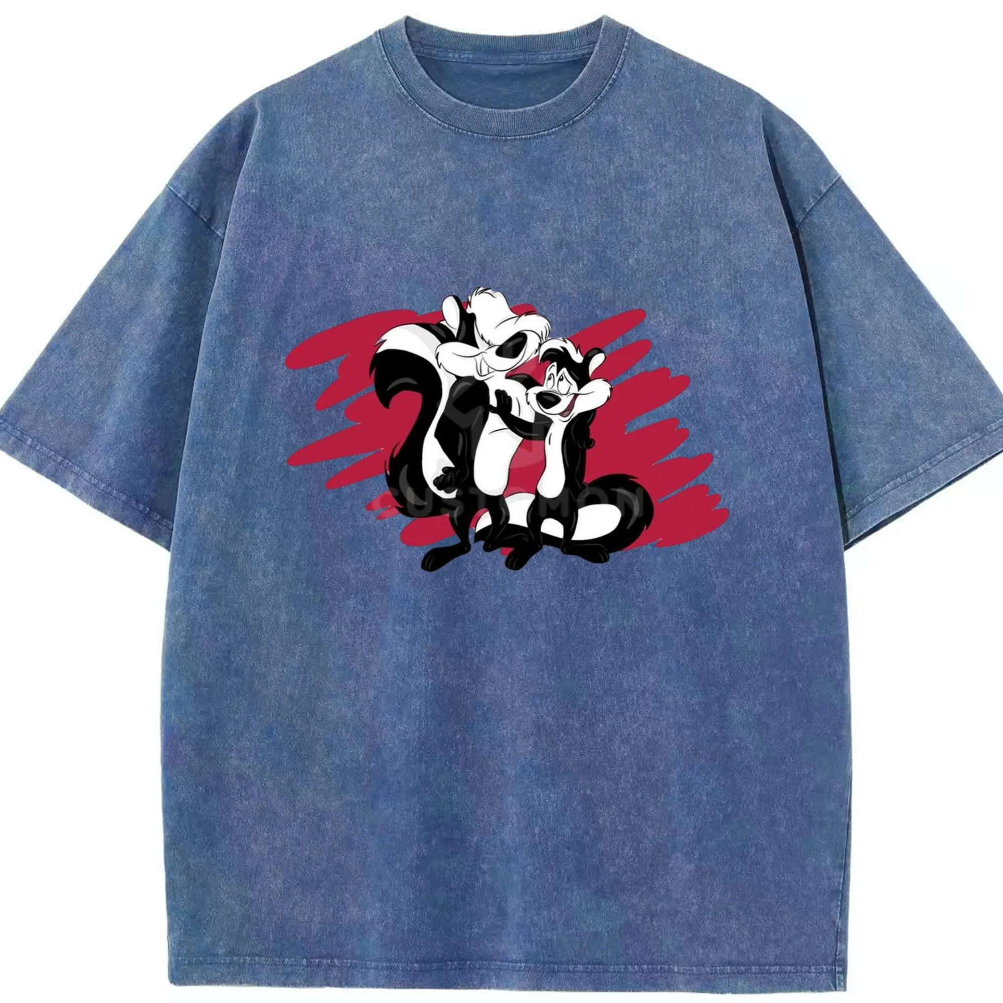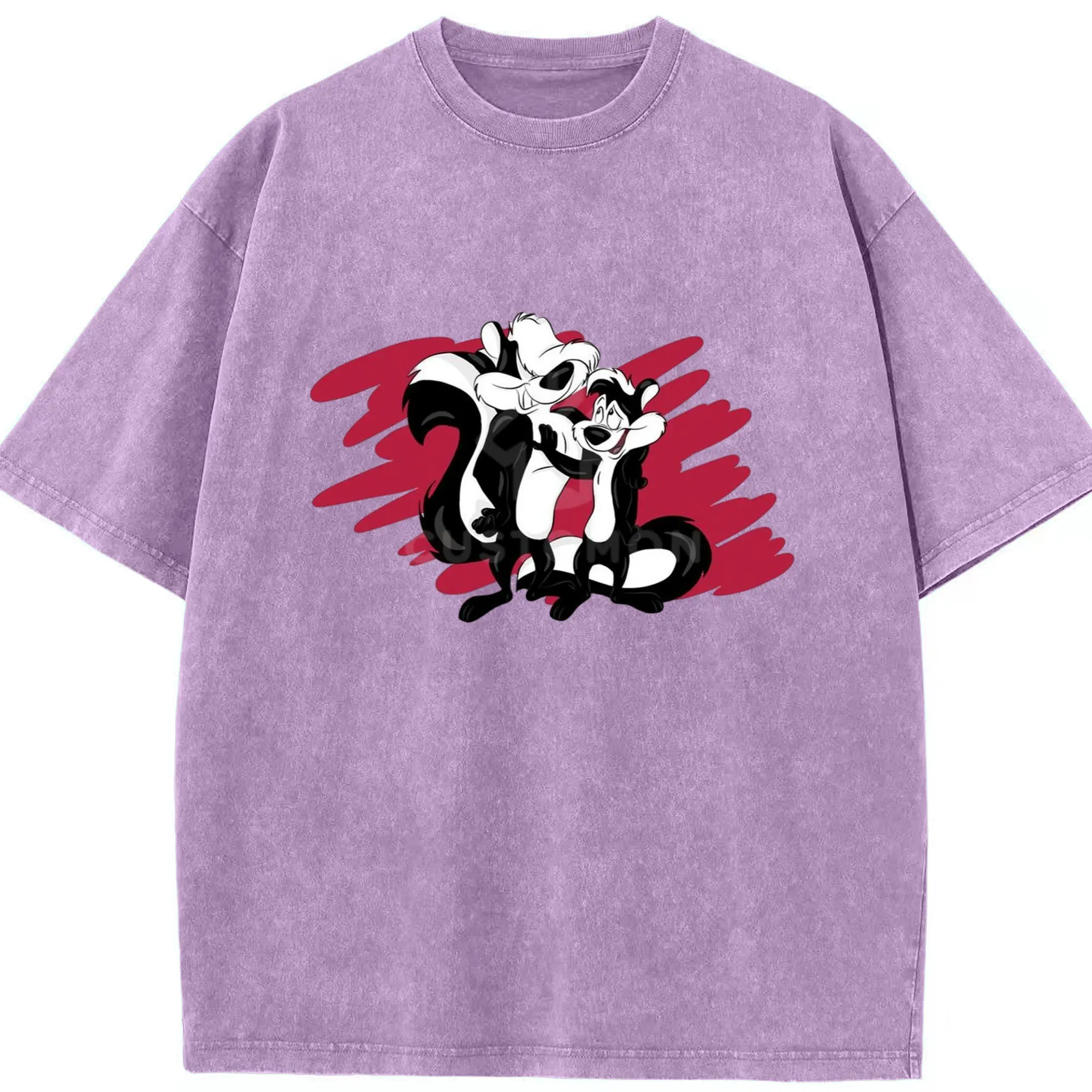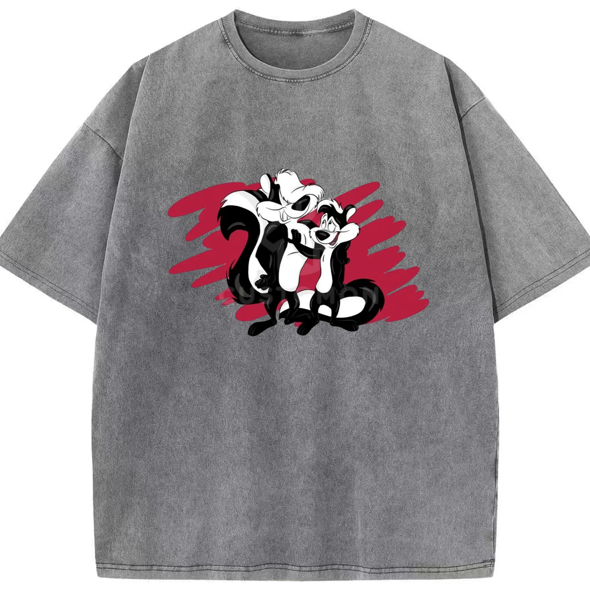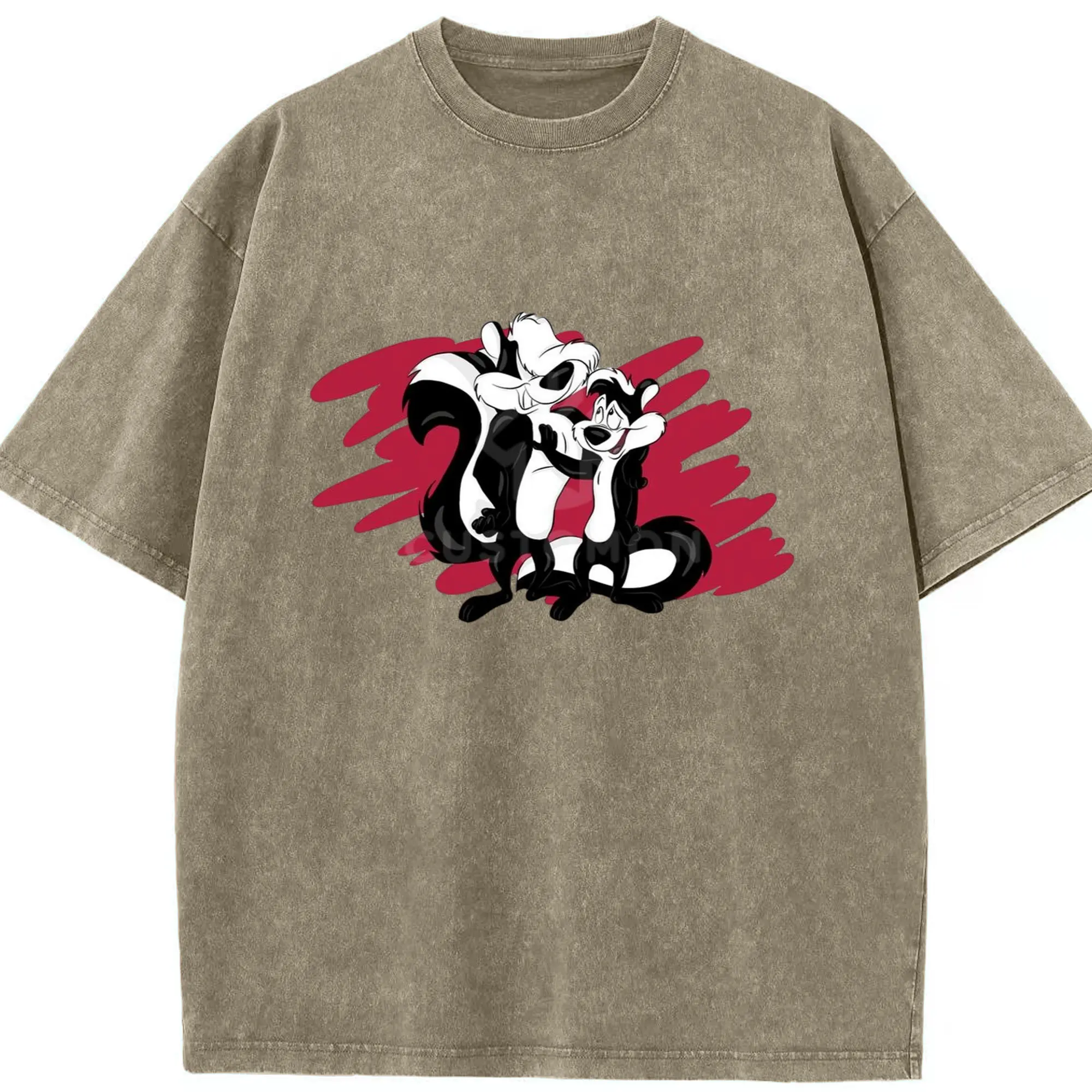 Pepe le pew brother tee shirts - Washed Vintage Look 230g Cotton Oversized T-Shirt With Front Heat Transfer Print – Soft, Lightweight, Stylish Fit – Comfortable Casual Wear For Sports & Everyday Use