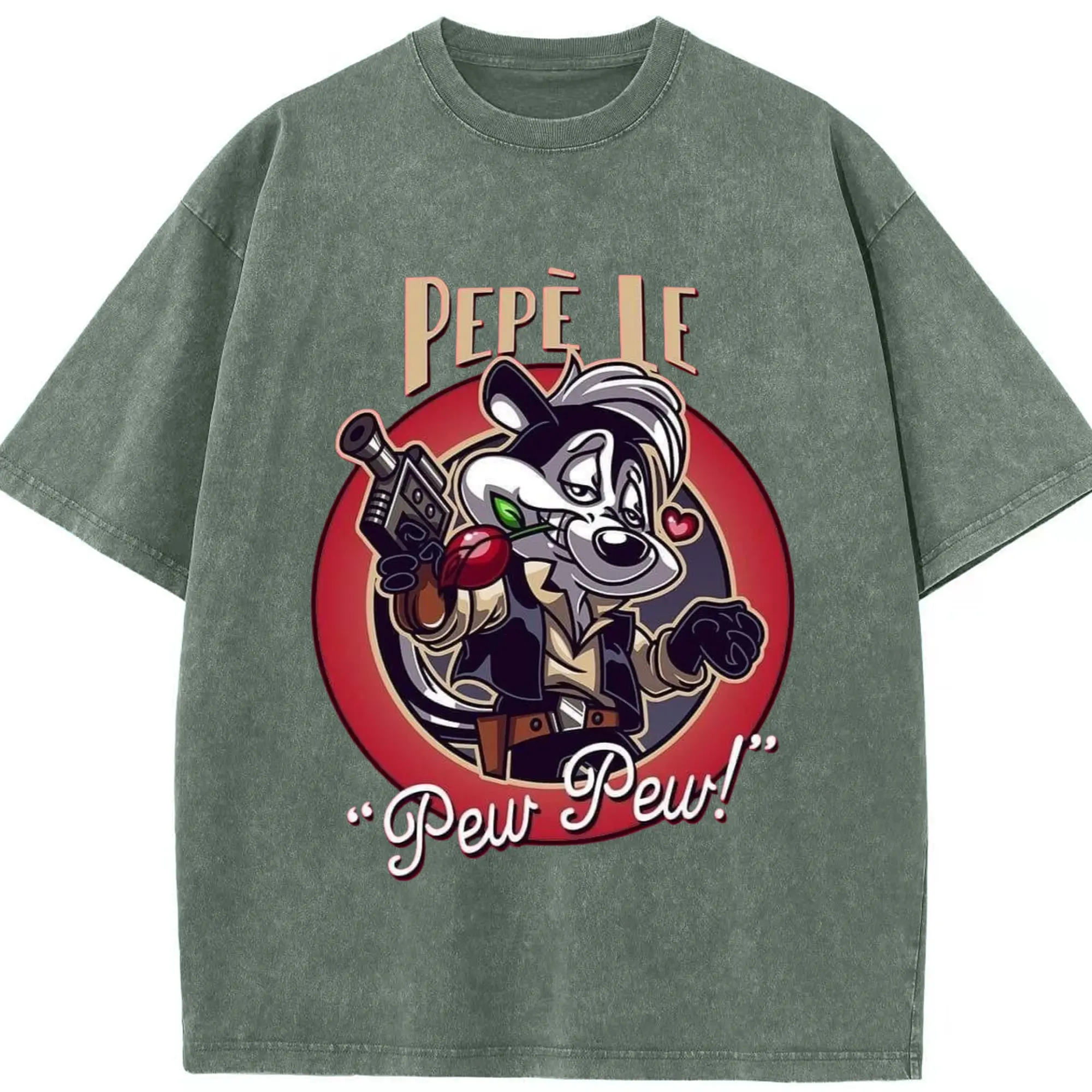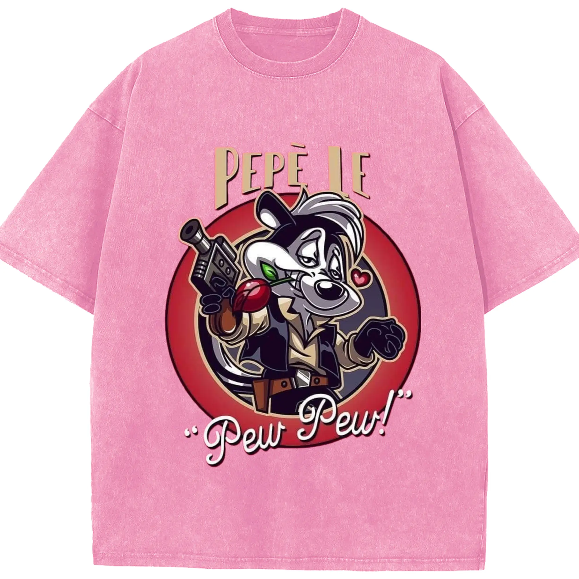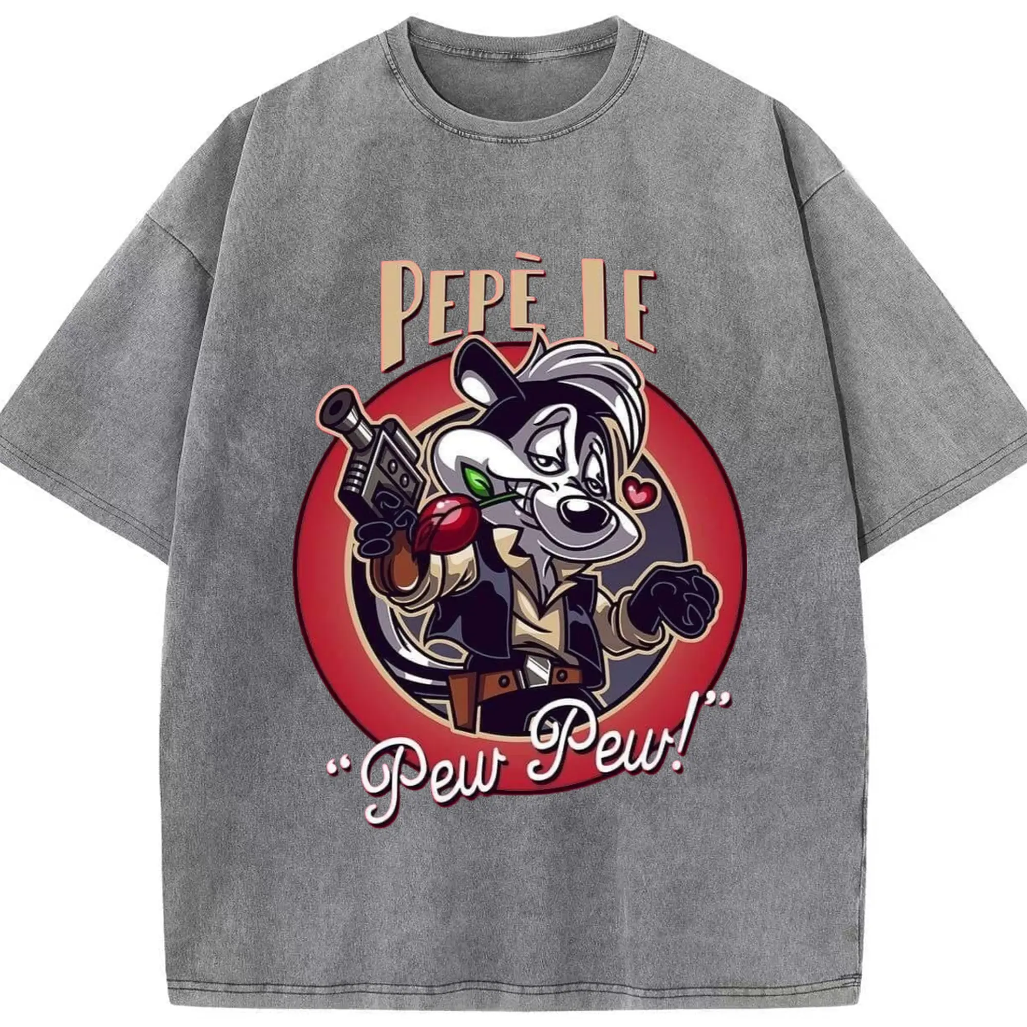 Pepe le pew cowboy tee shirts - Washed Vintage Look 230g Cotton Oversized T-Shirt With Front Heat Transfer Print – Soft, Lightweight, Stylish Fit – Comfortable Casual Wear For Sports & Everyday Use