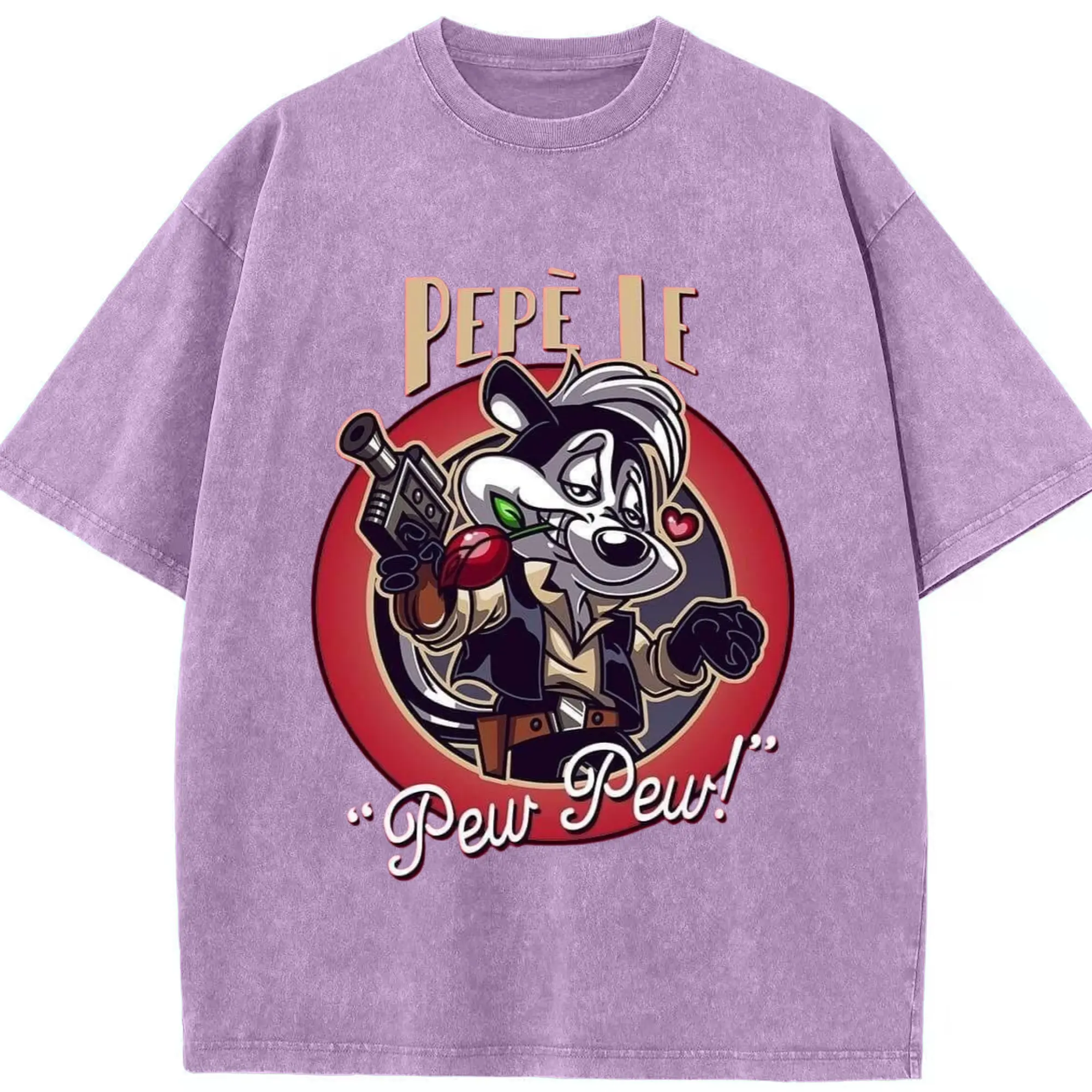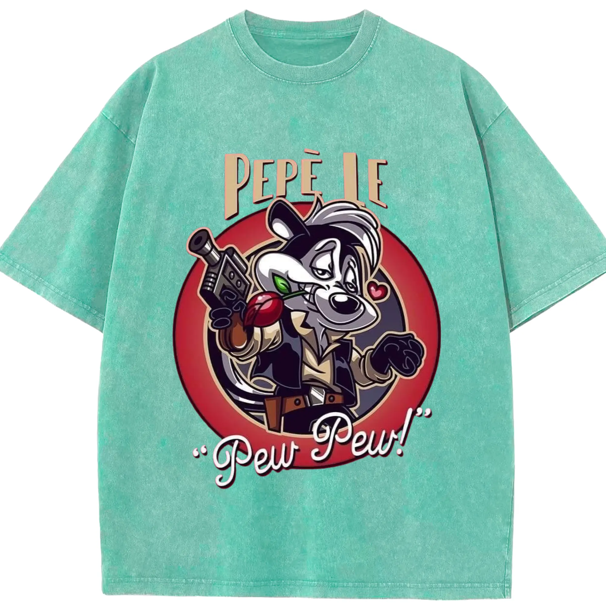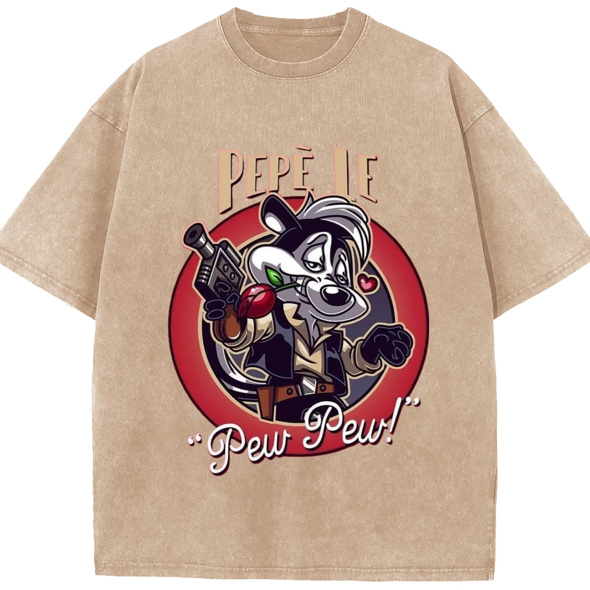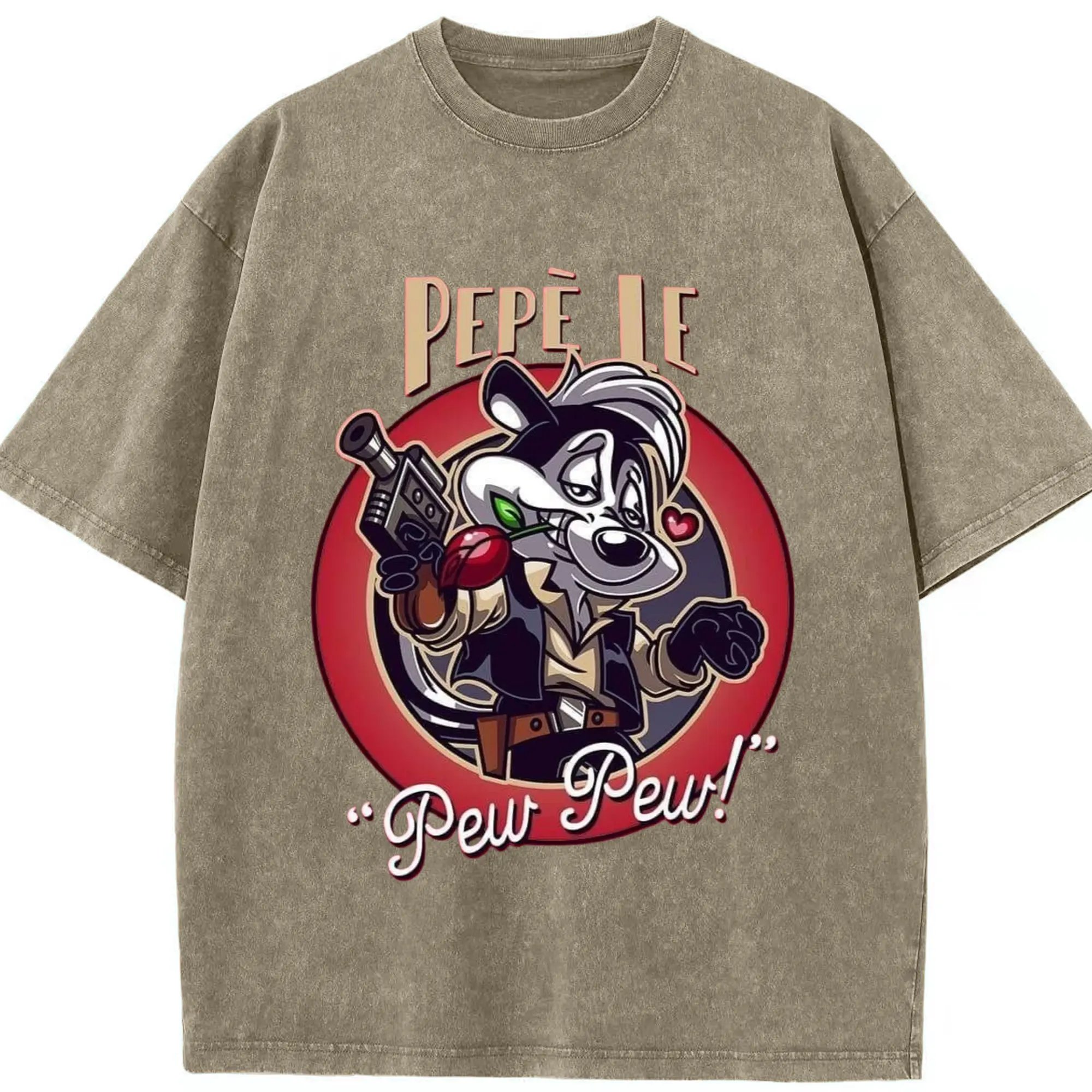 Pepe le pew cowboy tee shirts - Washed Vintage Look 230g Cotton Oversized T-Shirt With Front Heat Transfer Print – Soft, Lightweight, Stylish Fit – Comfortable Casual Wear For Sports & Everyday Use