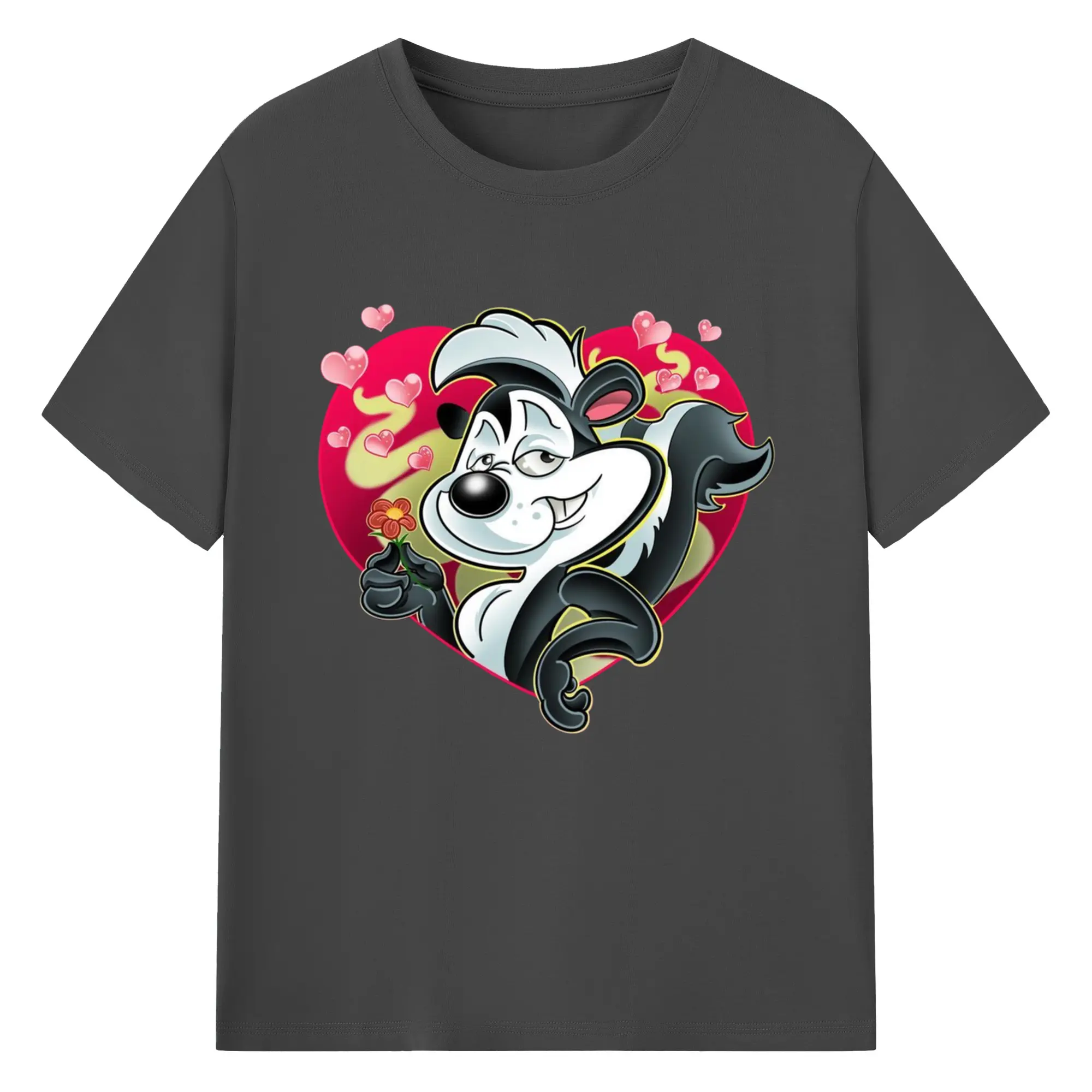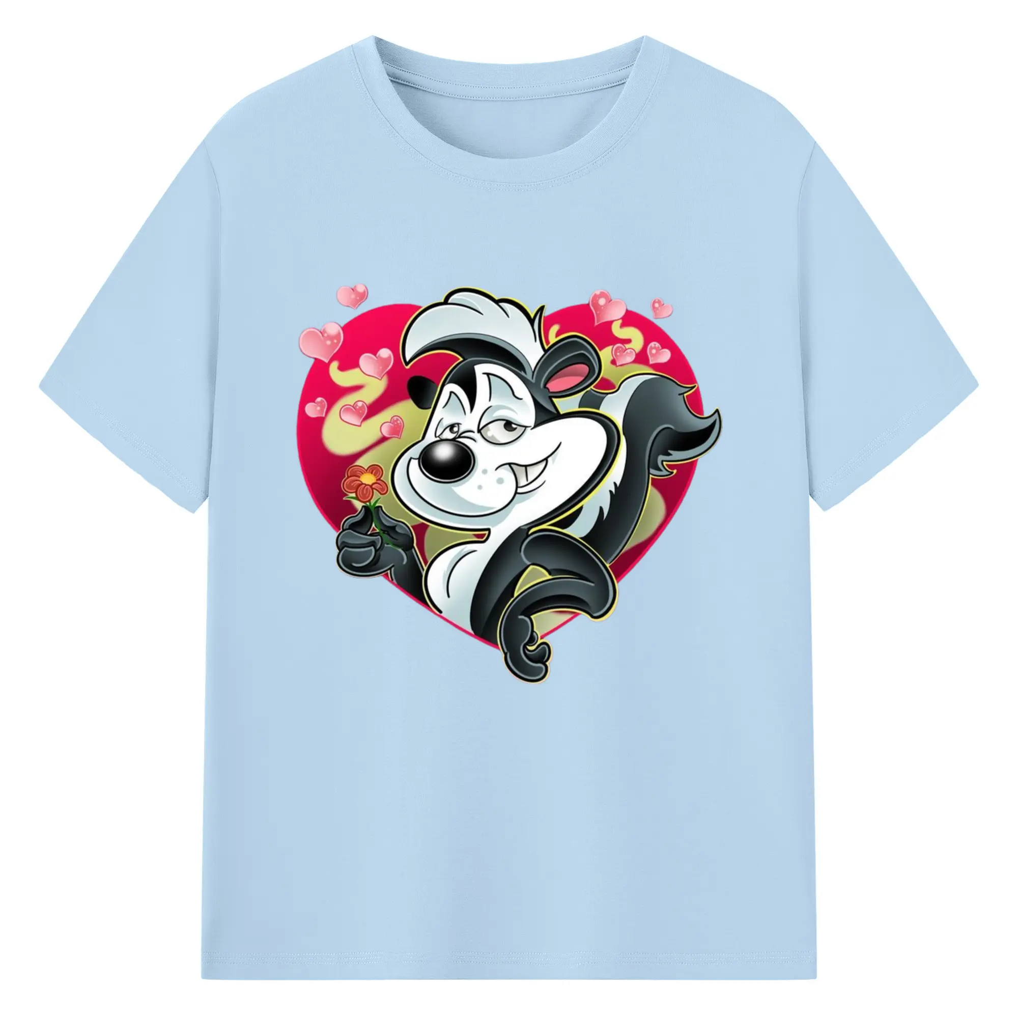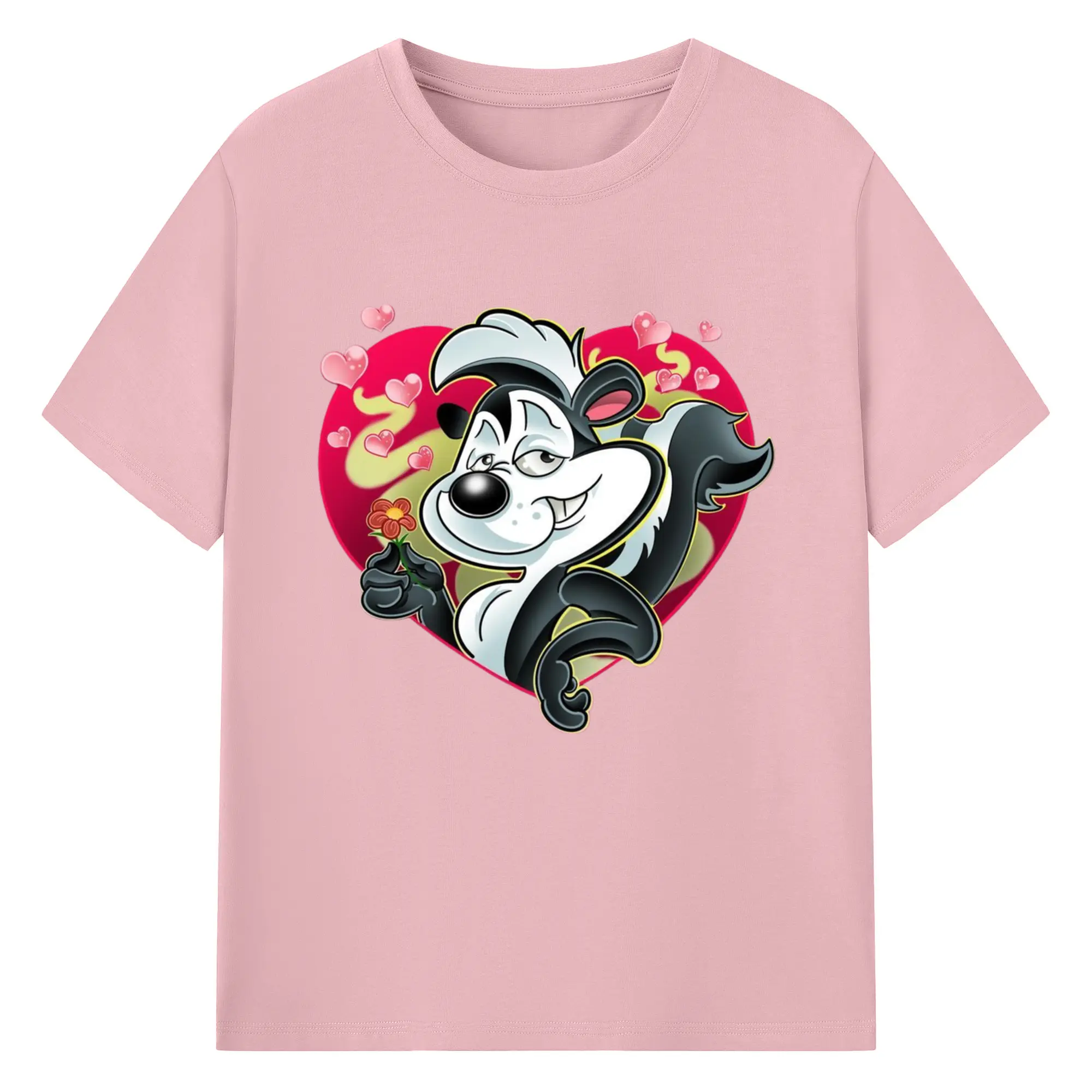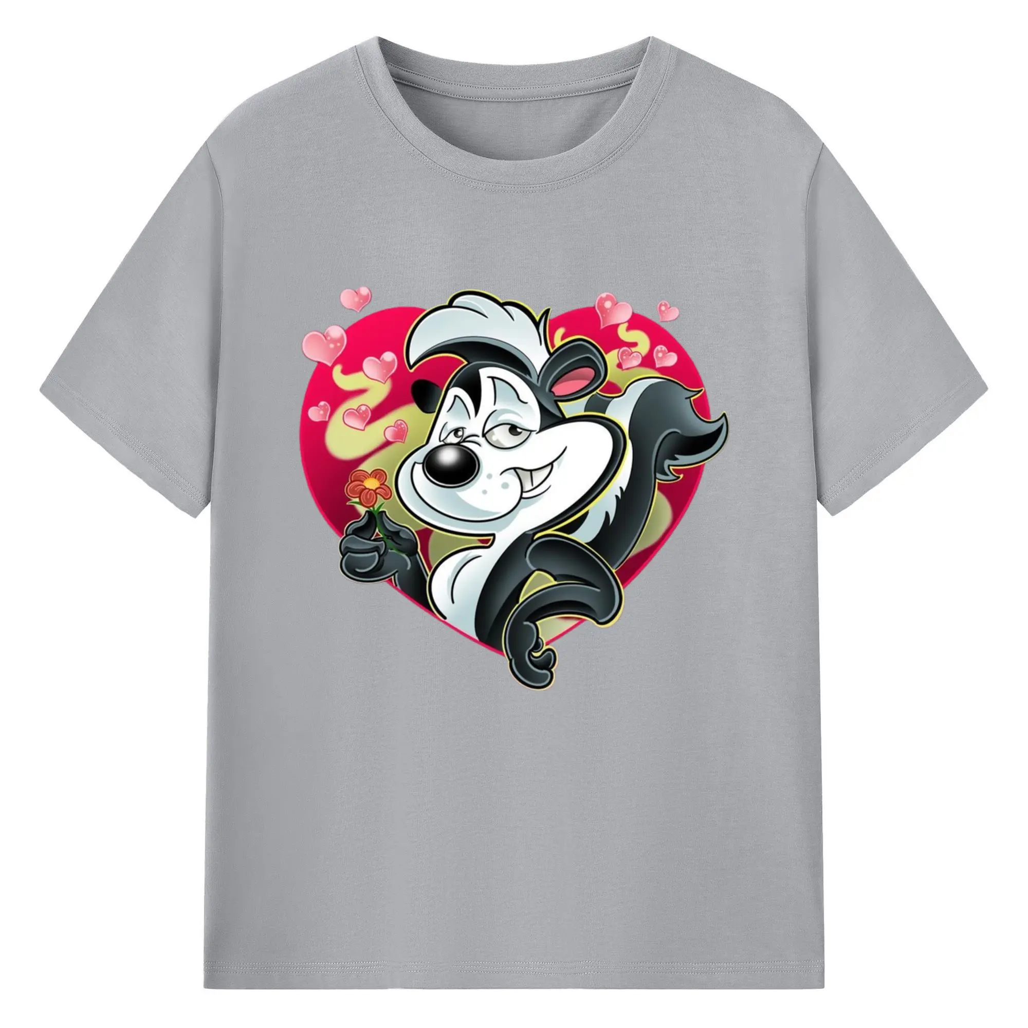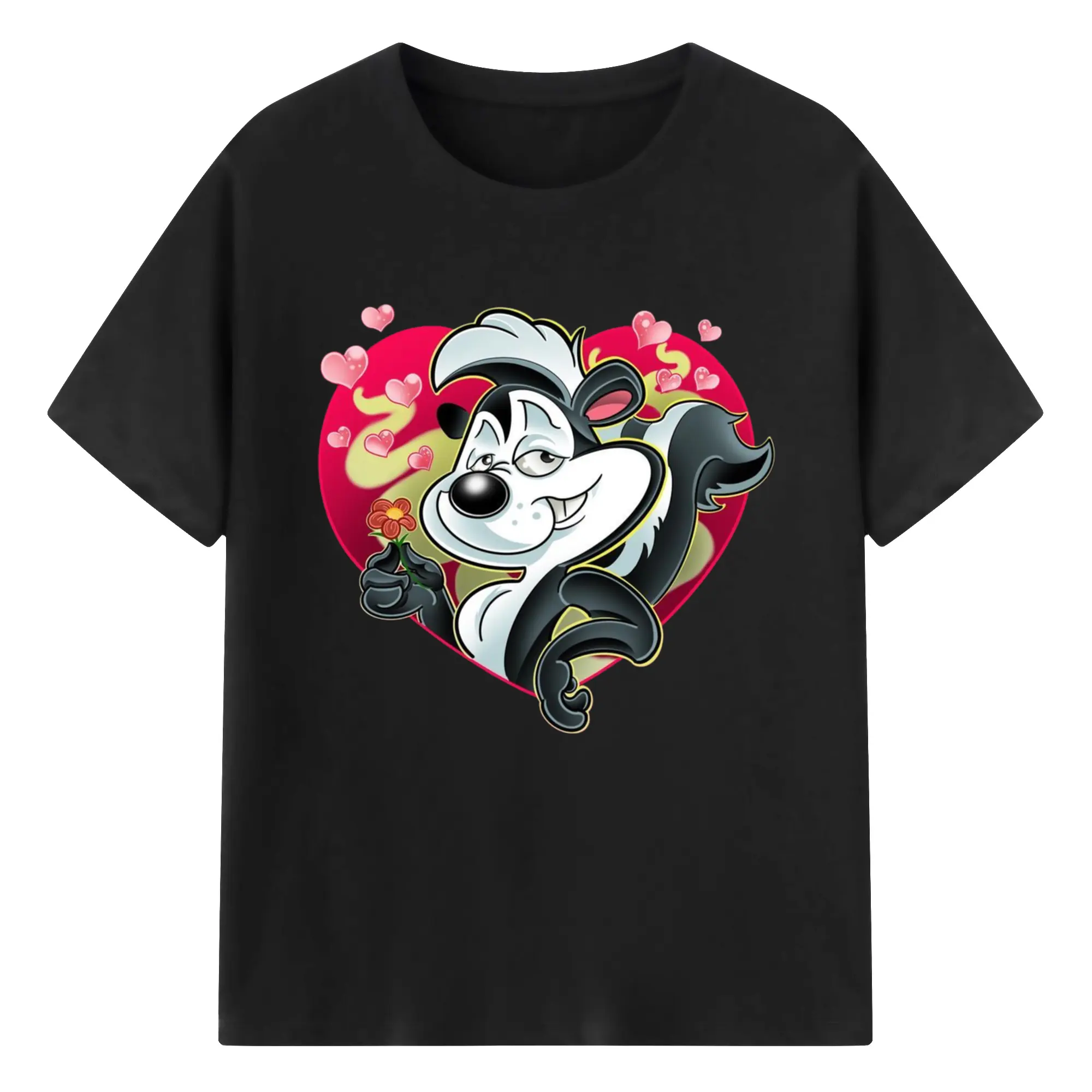 Pepe le pew love t-shirt​ - 180g Cotton T-Shirt With Front Heat Transfer Print – Soft, Lightweight, Fitted Design – Comfortable Casual Wear For Sports & Everyday Use