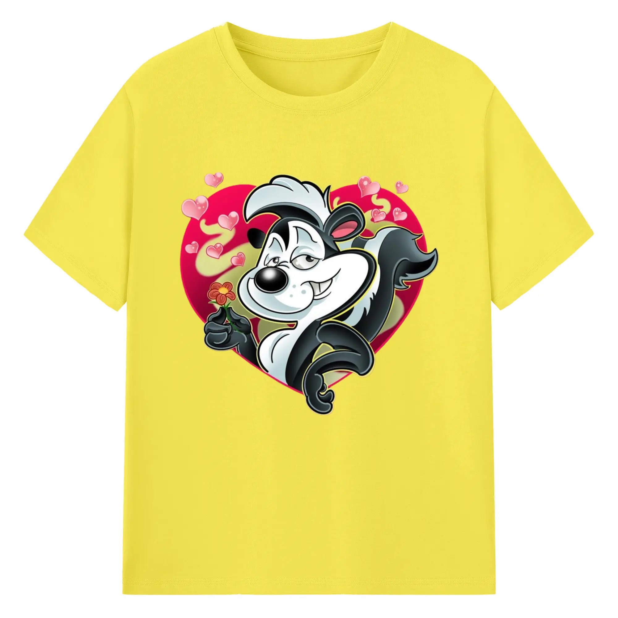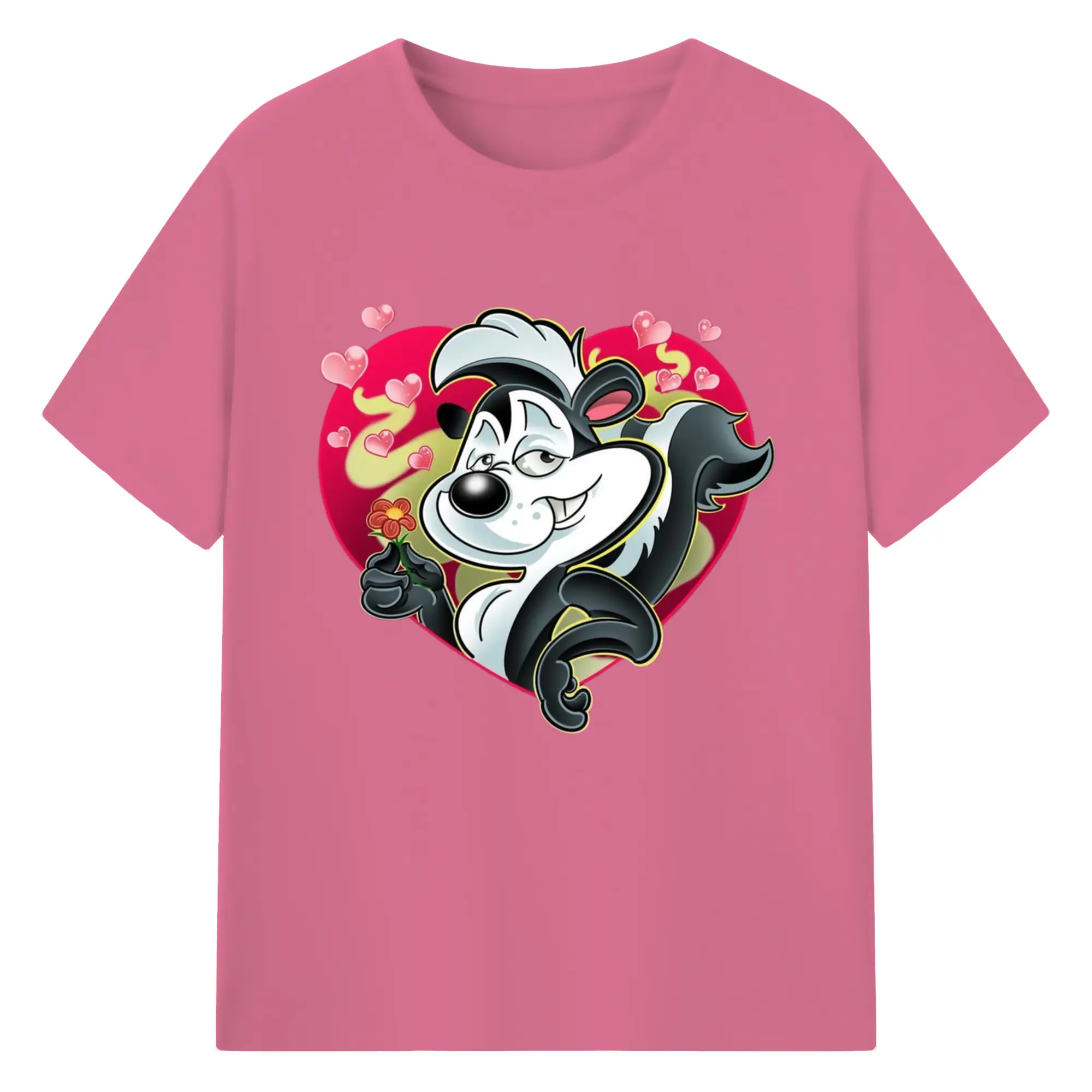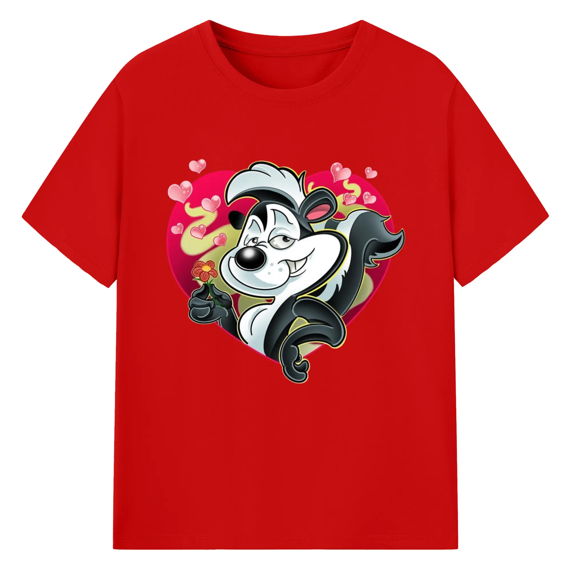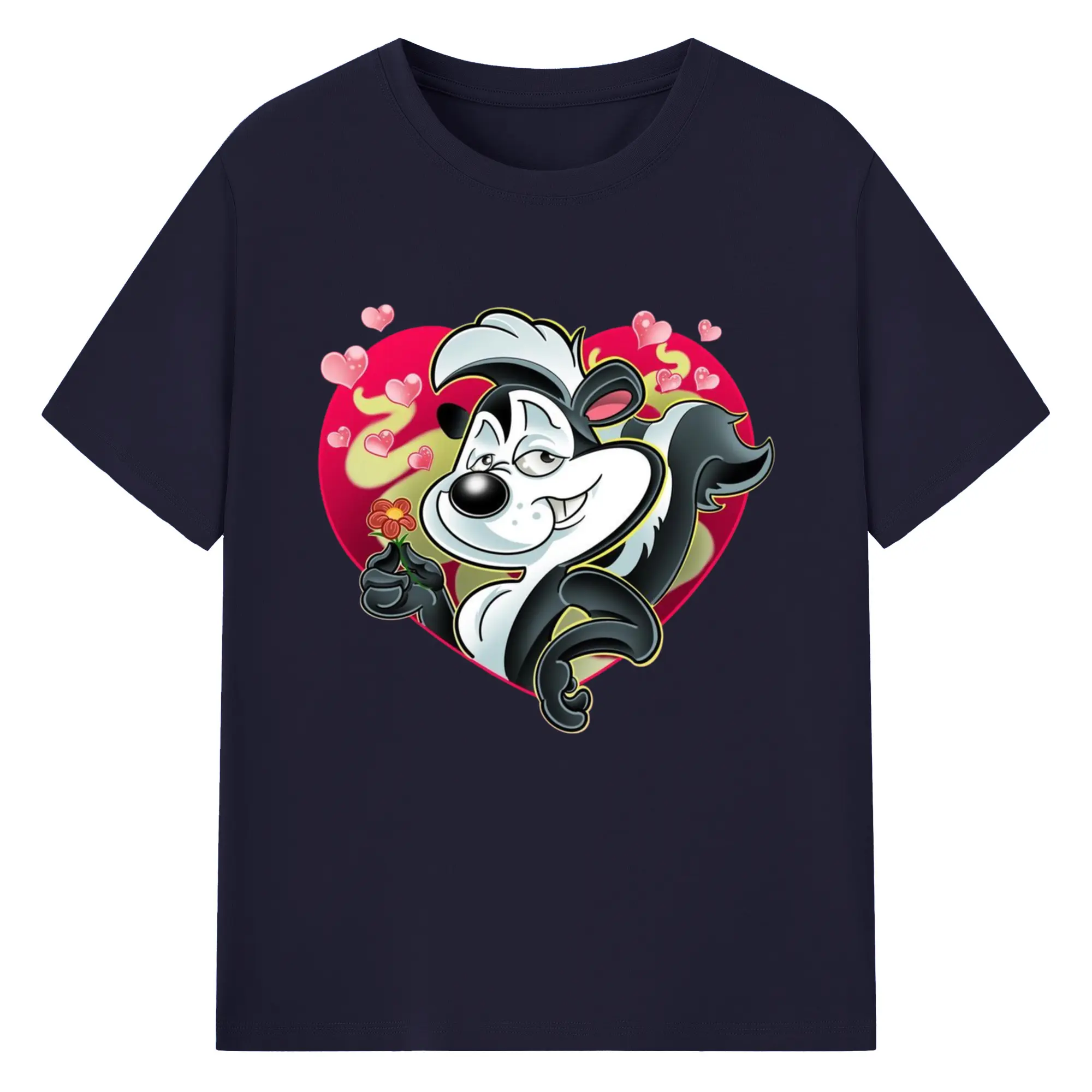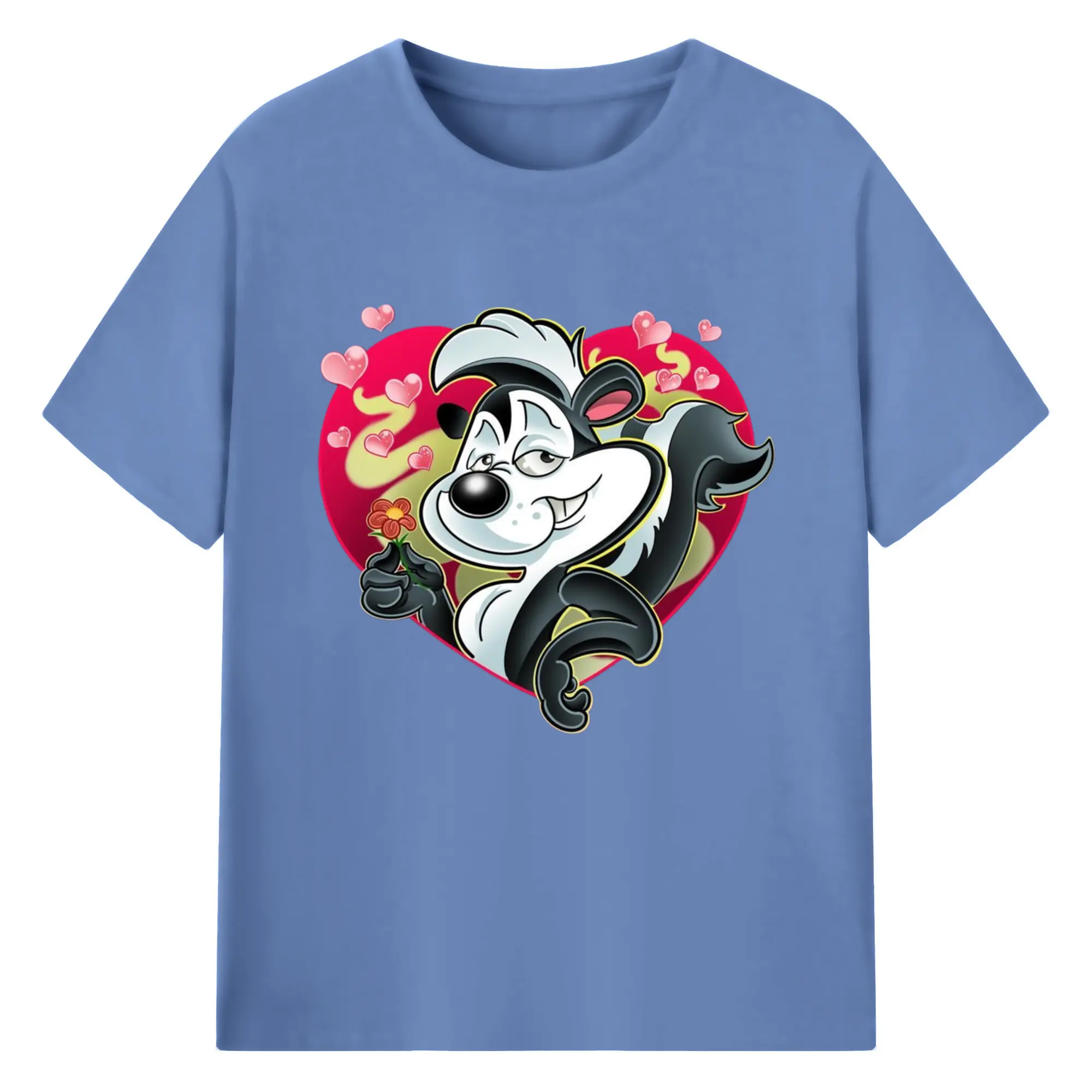 Pepe le pew love t-shirt​ - 180g Cotton T-Shirt With Front Heat Transfer Print – Soft, Lightweight, Fitted Design – Comfortable Casual Wear For Sports & Everyday Use