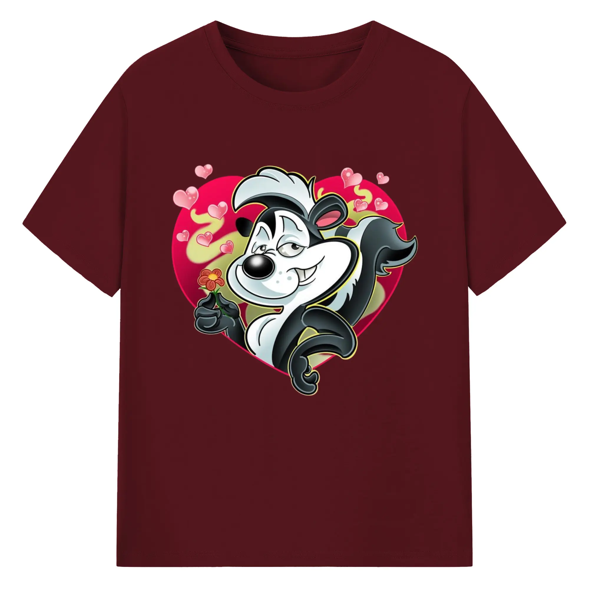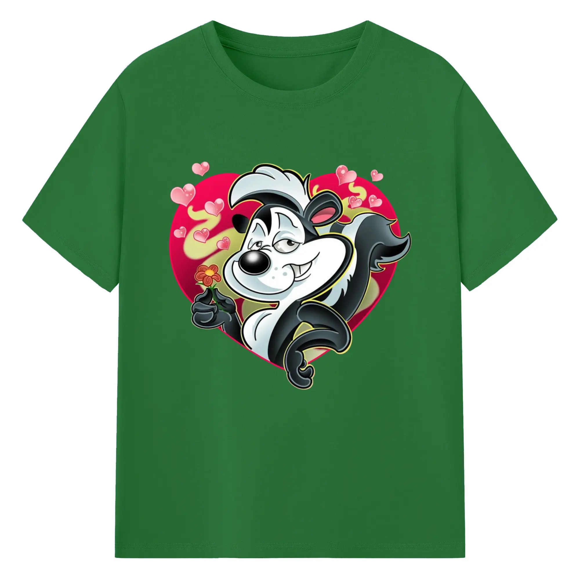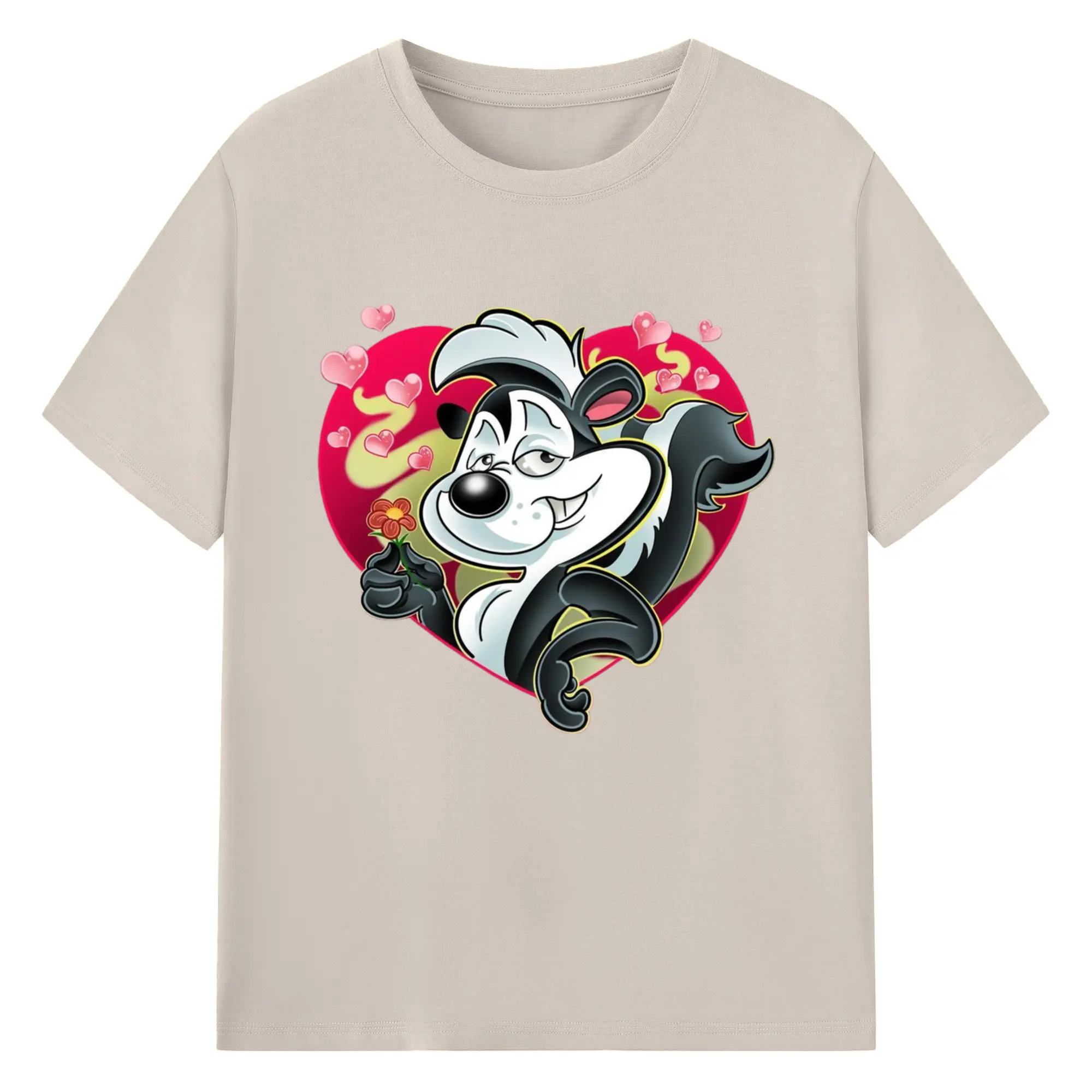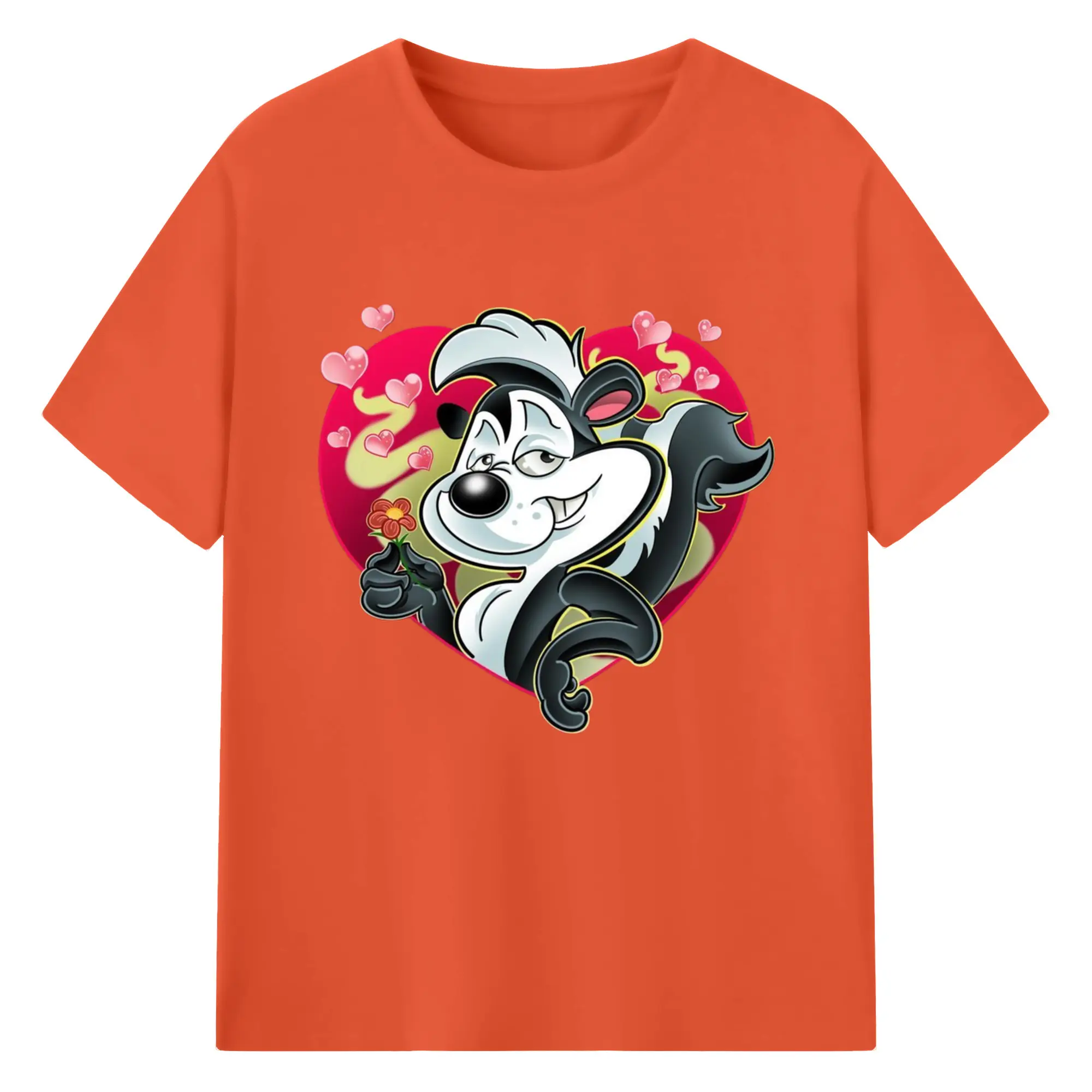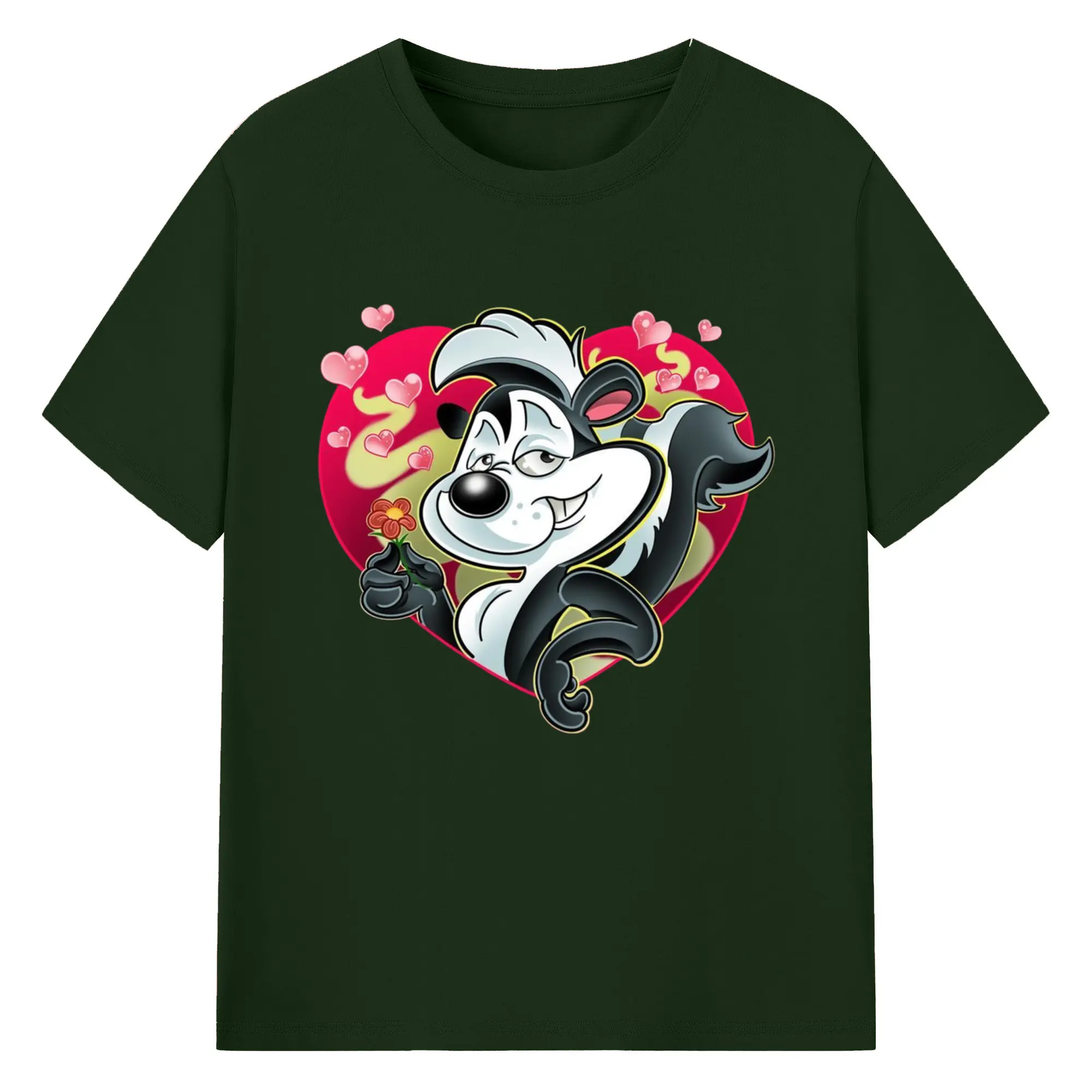 Pepe le pew love t-shirt​ - 180g Cotton T-Shirt With Front Heat Transfer Print – Soft, Lightweight, Fitted Design – Comfortable Casual Wear For Sports & Everyday Use