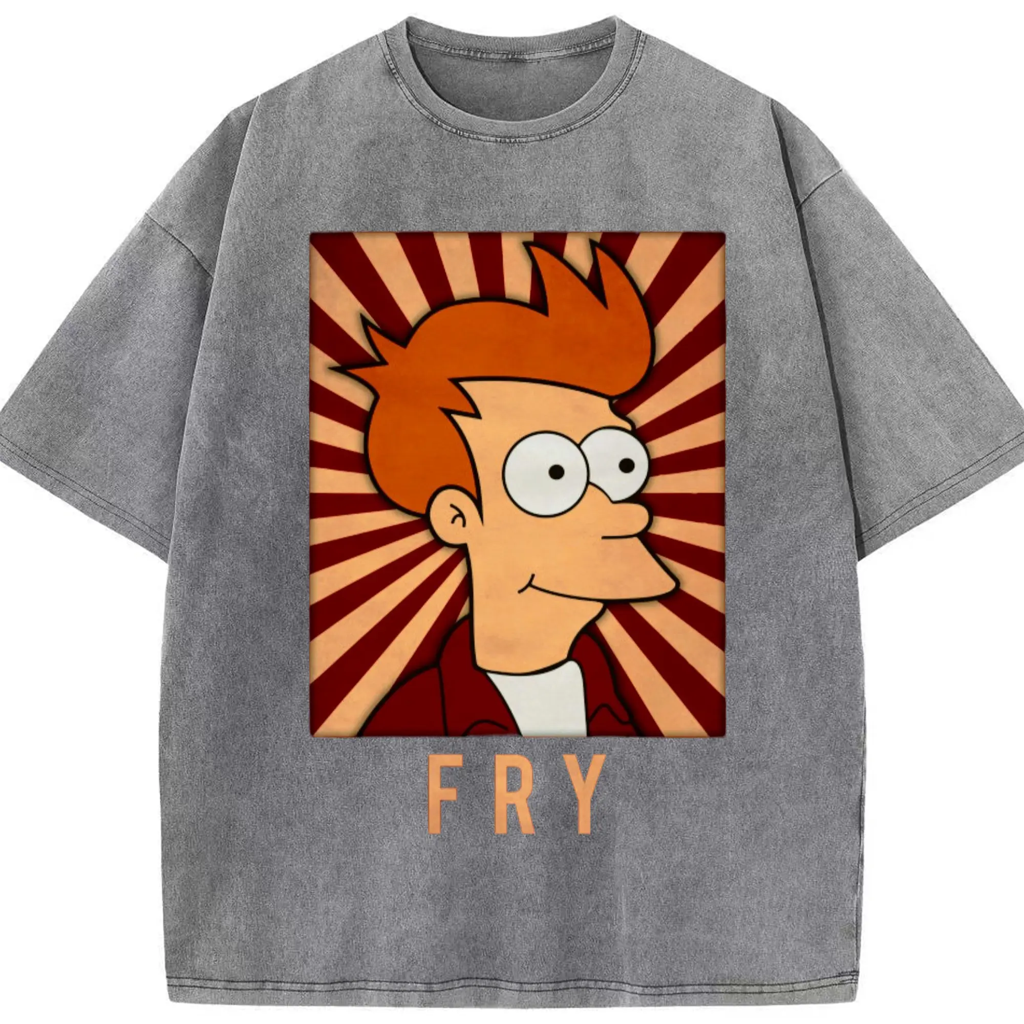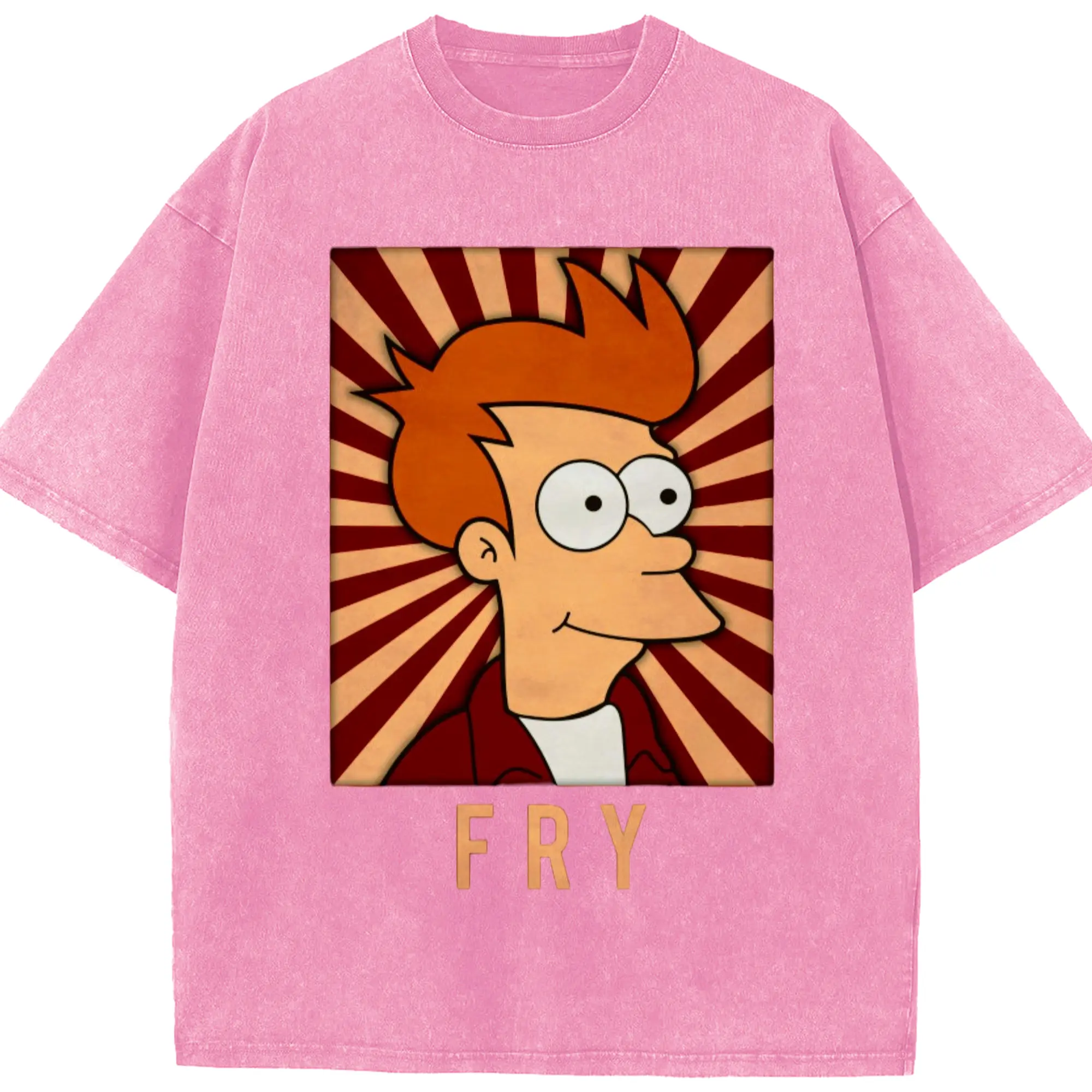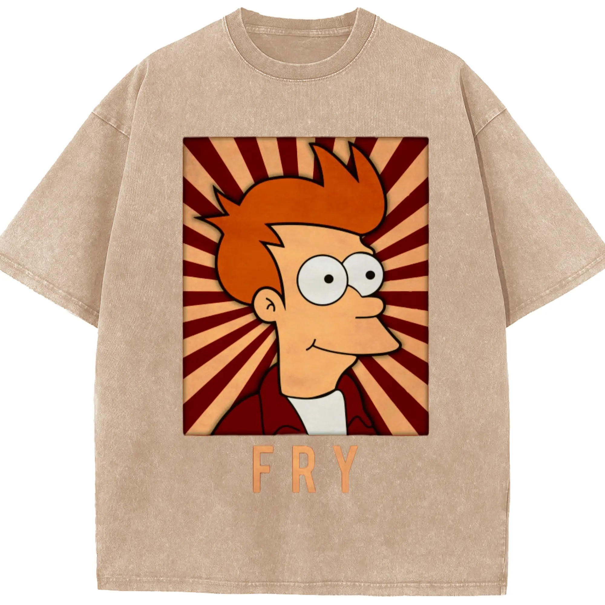 Philip j. fry graphic tee - Washed Vintage Look 230g Cotton Oversized T-Shirt With Front Heat Transfer Print – Soft, Lightweight, Stylish Fit – Comfortable Casual Wear For Sports & Everyday Use