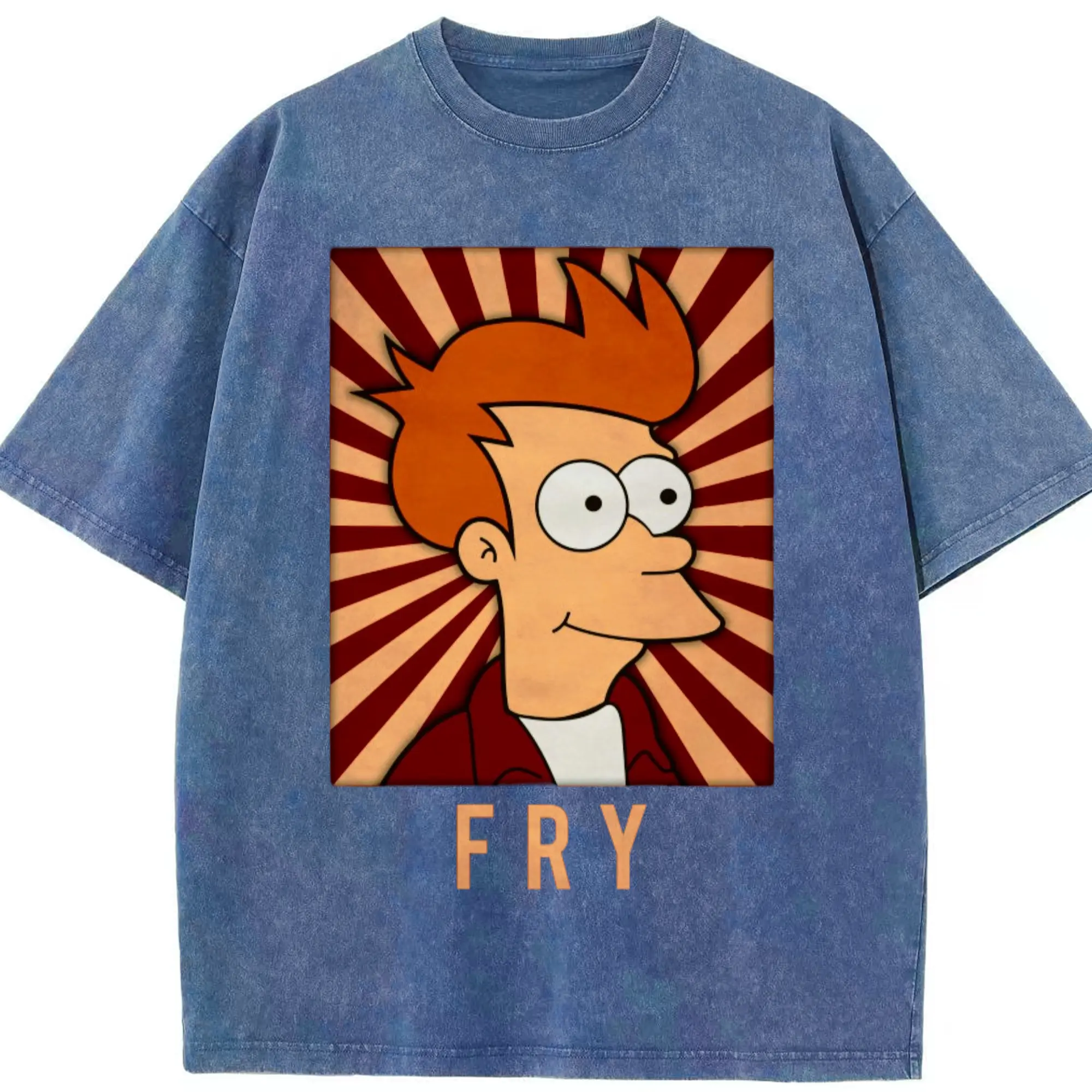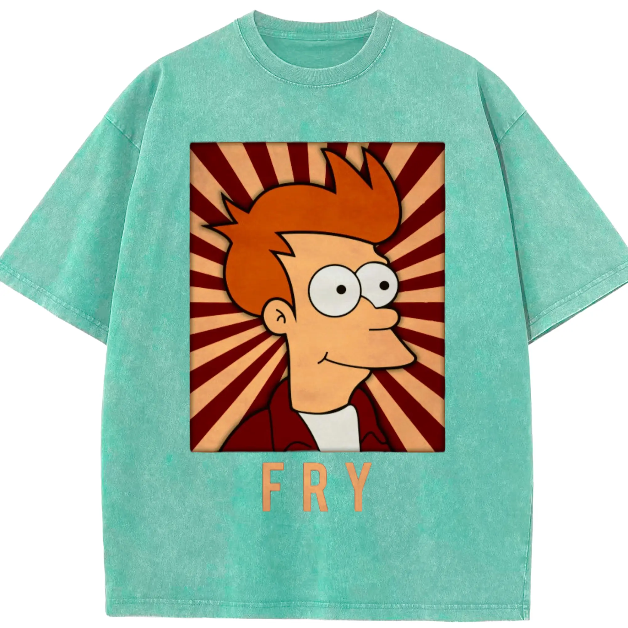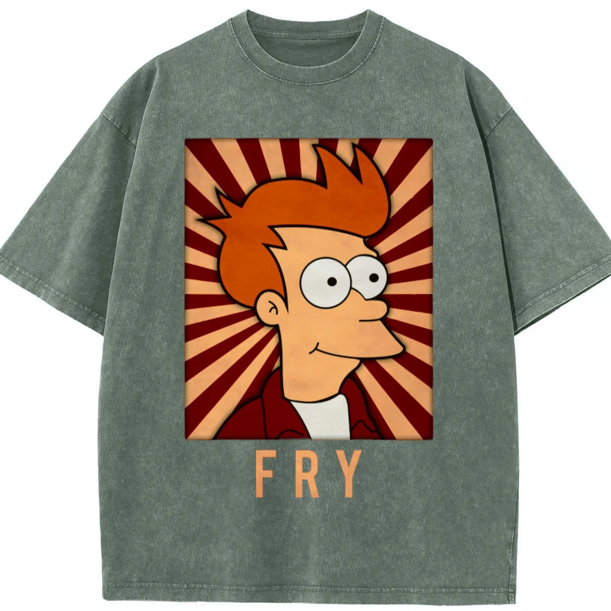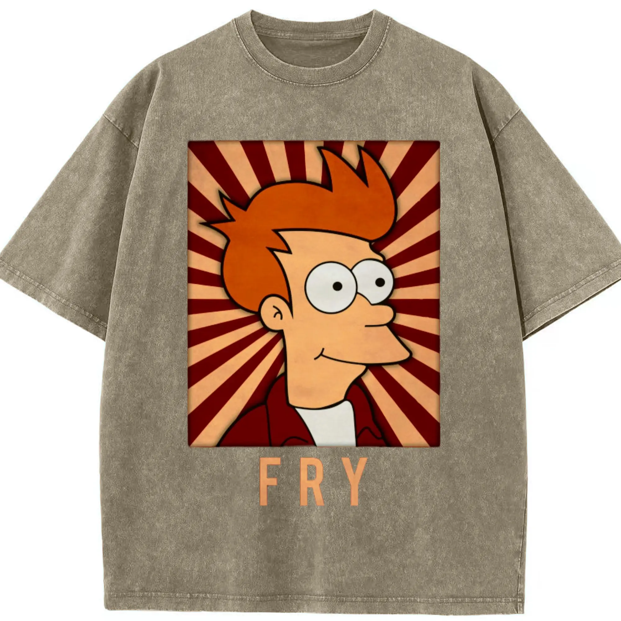 Philip j. fry graphic tee - Washed Vintage Look 230g Cotton Oversized T-Shirt With Front Heat Transfer Print – Soft, Lightweight, Stylish Fit – Comfortable Casual Wear For Sports & Everyday Use