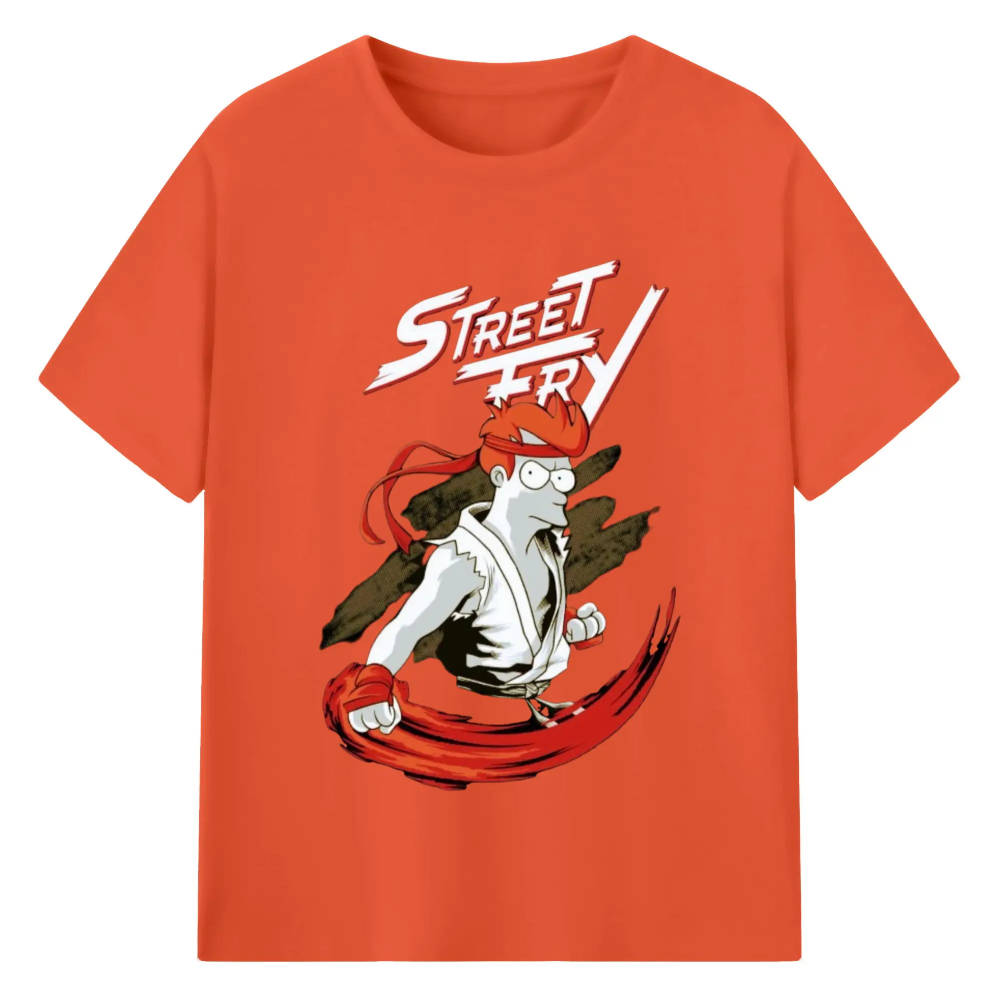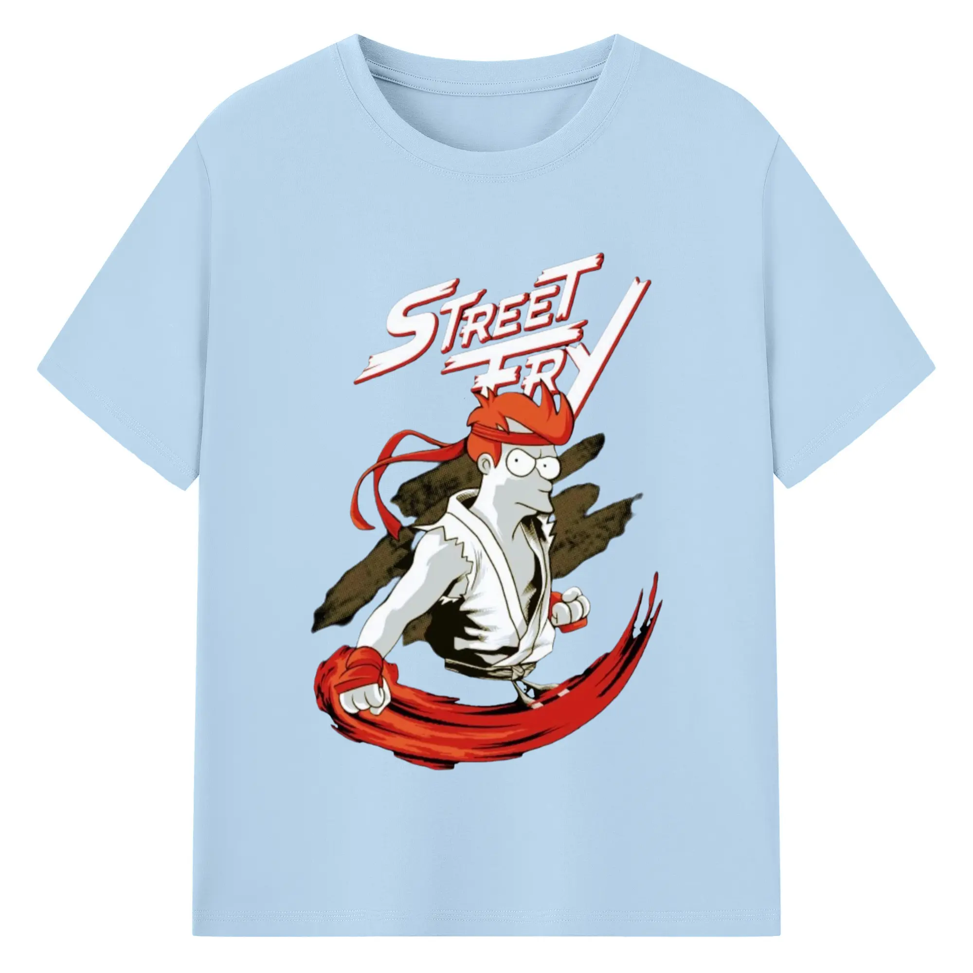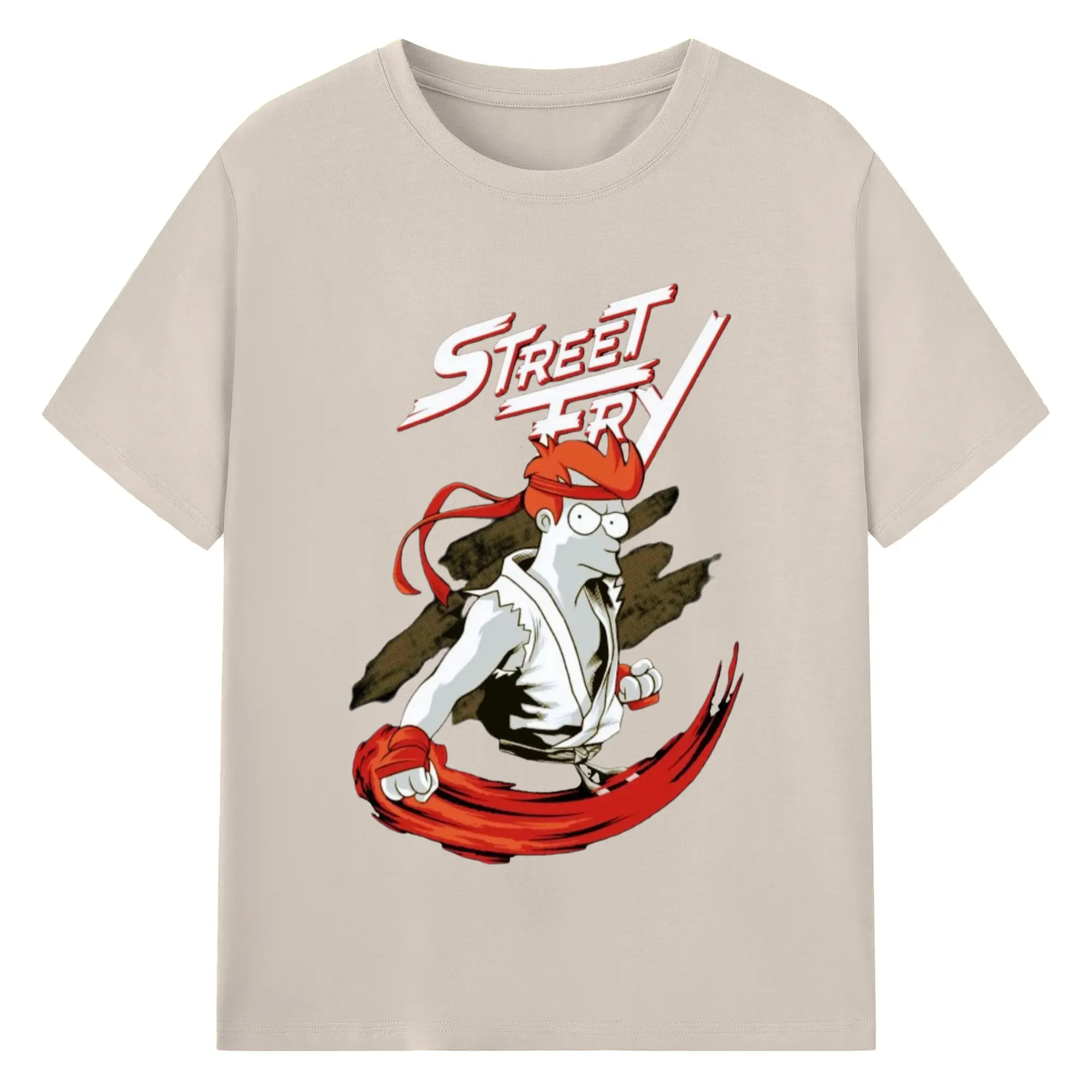 Philip j. fry street fight graphic tee - 180g Cotton T-Shirt With Front Heat Transfer Print – Soft, Lightweight, Fitted Design – Comfortable Casual Wear For Sports & Everyday Use