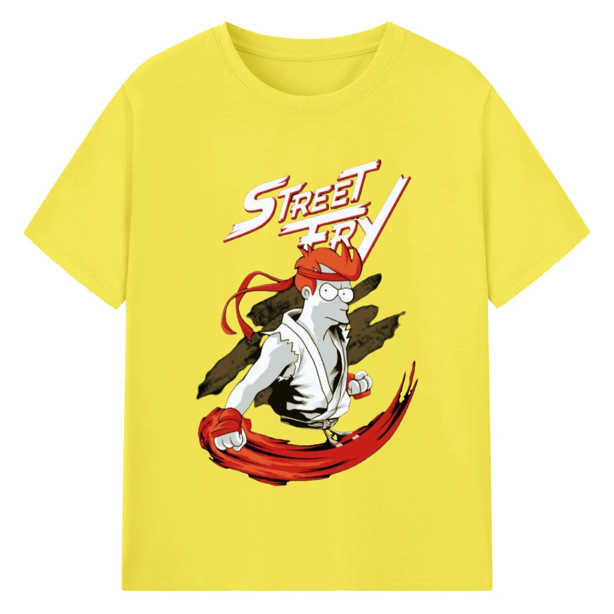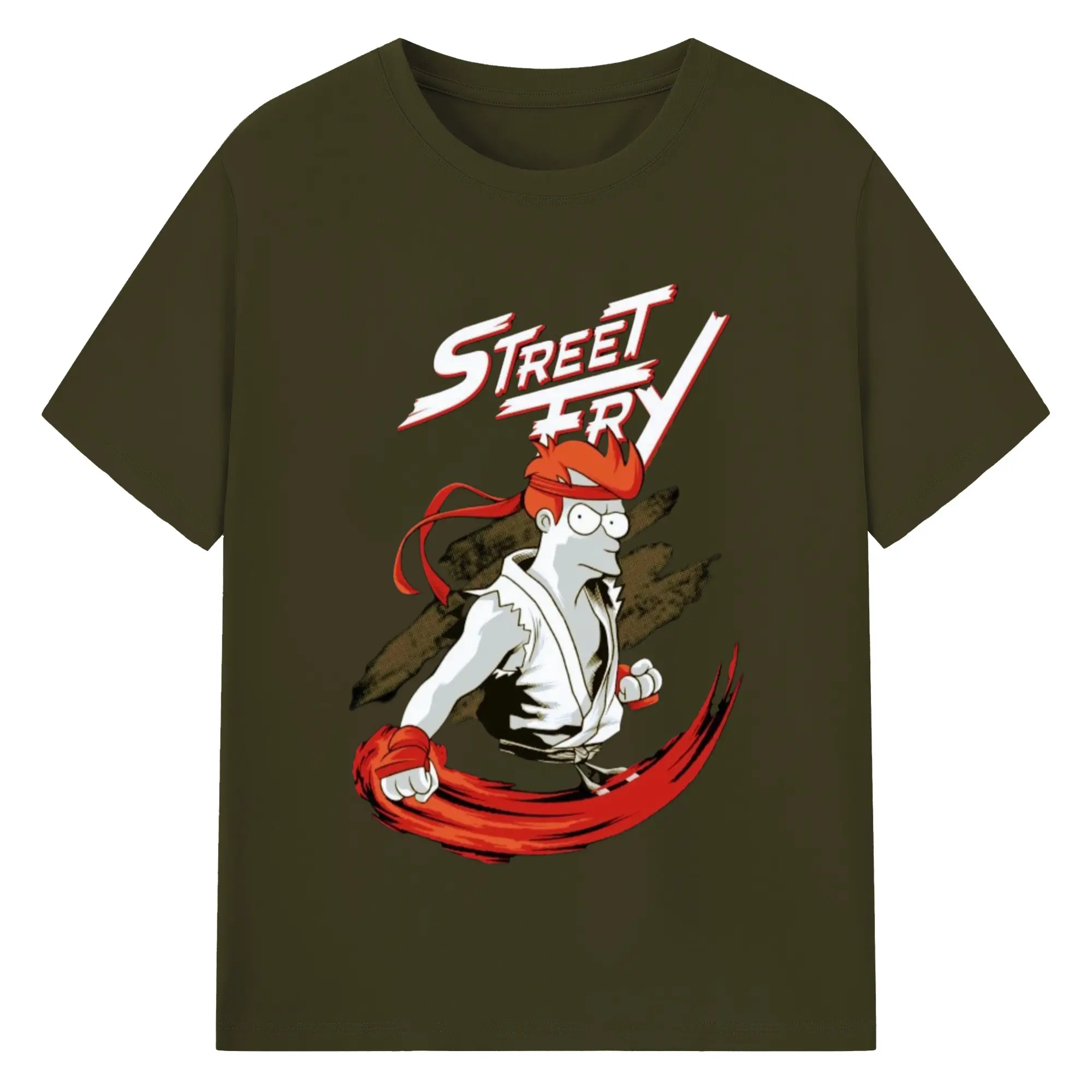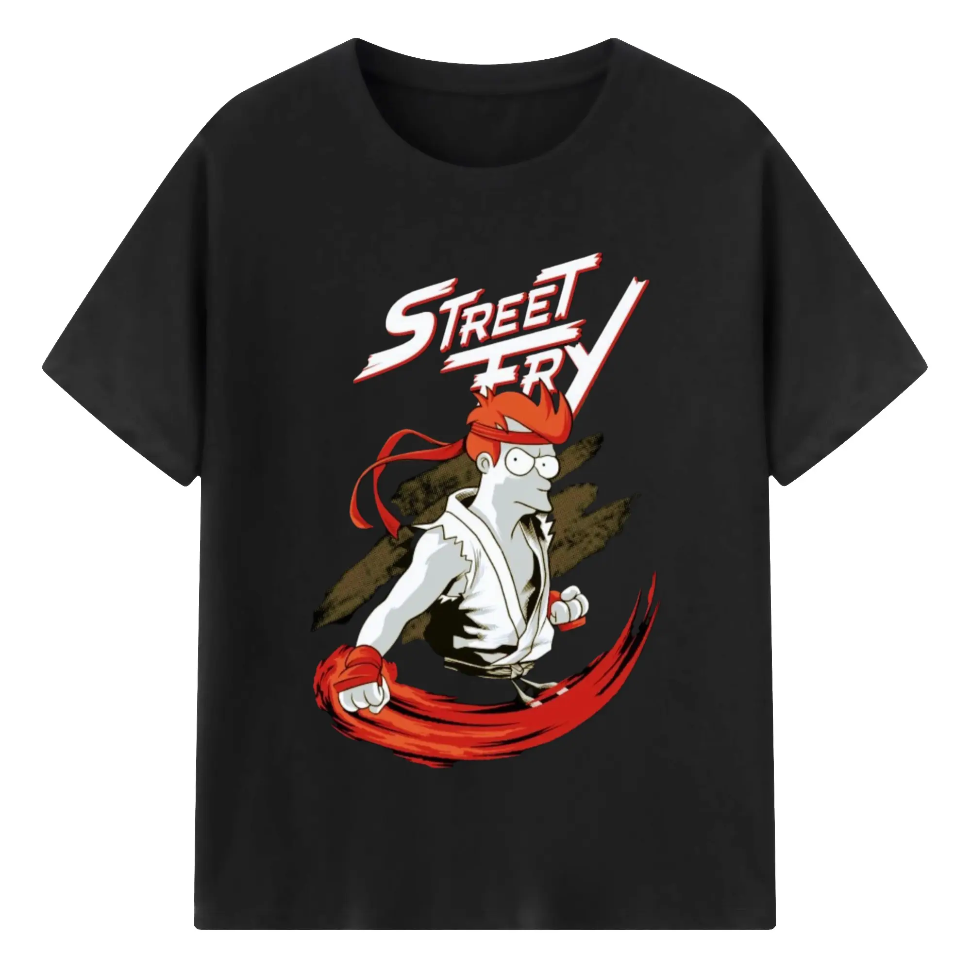 Philip j. fry street fight graphic tee - 180g Cotton T-Shirt With Front Heat Transfer Print – Soft, Lightweight, Fitted Design – Comfortable Casual Wear For Sports & Everyday Use