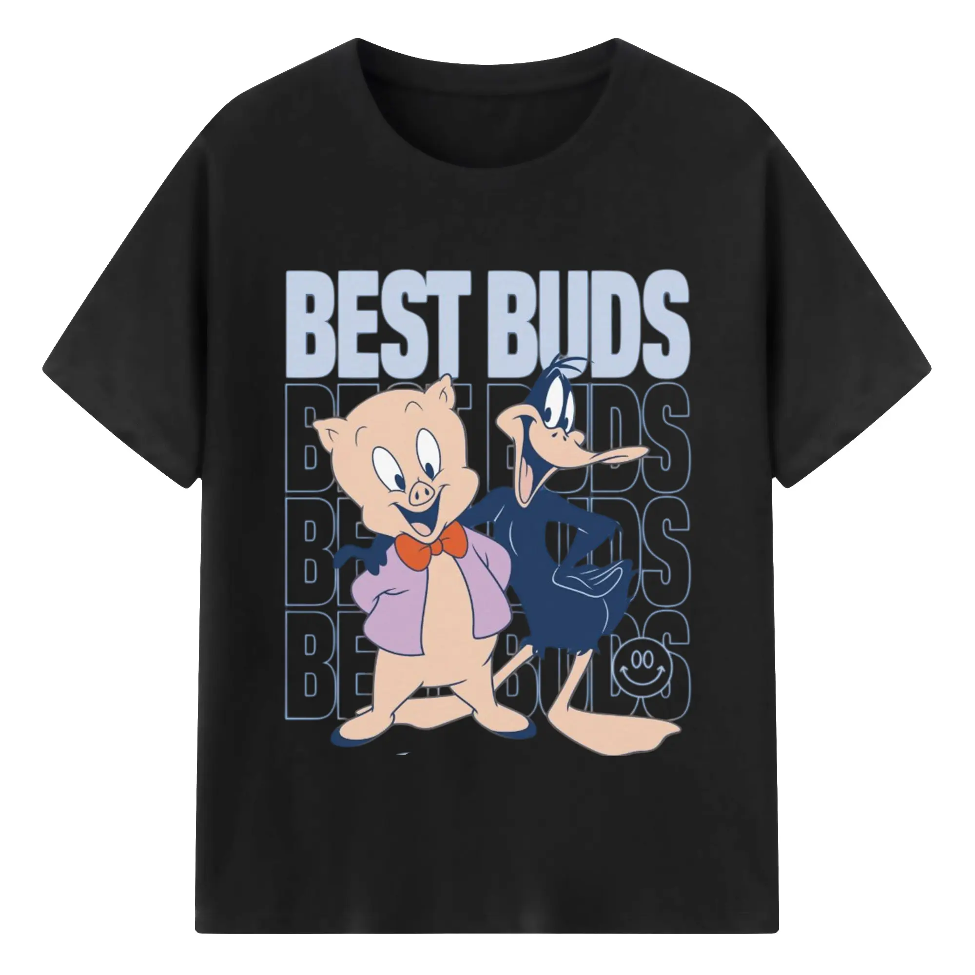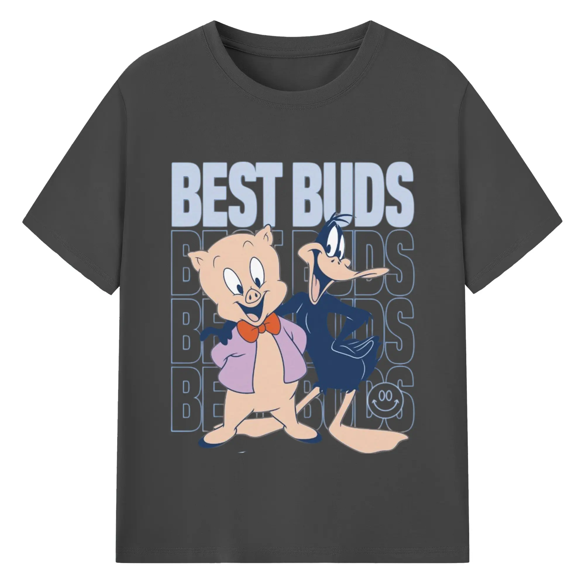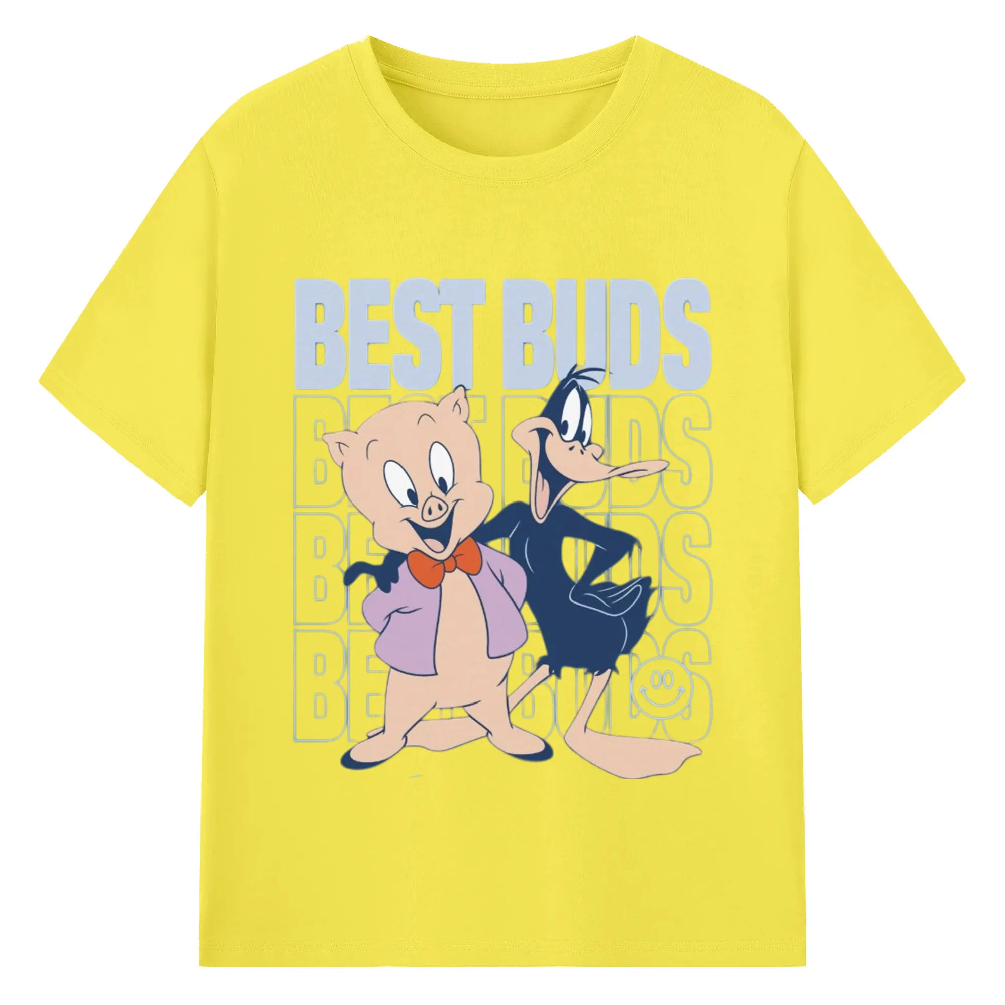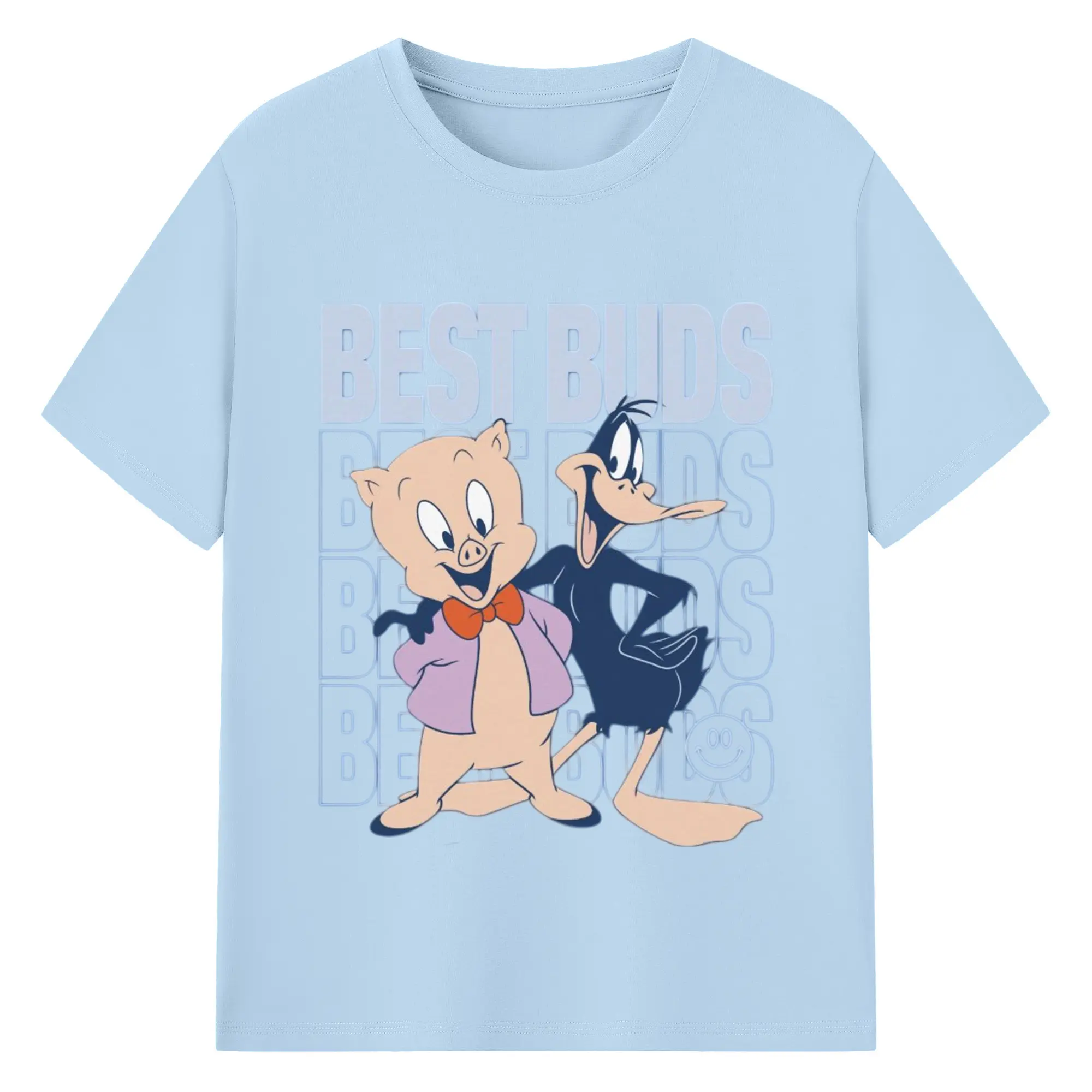Porky Pig and Daffy Duck t-shirt - 180g Cotton T-Shirt With Front Heat Transfer Print – Soft, Lightweight, Fitted Design – Comfortable Casual Wear For Sports & Everyday Use