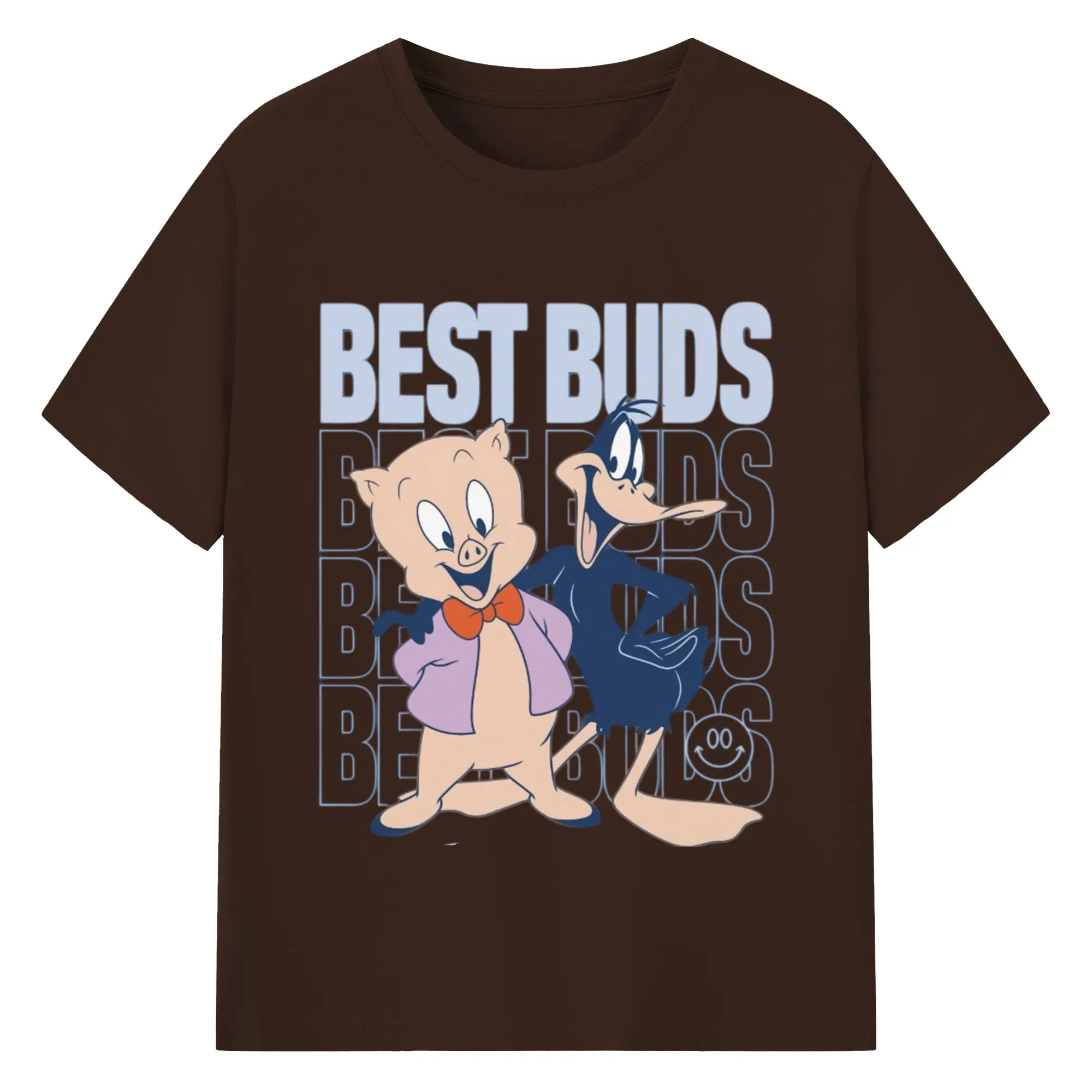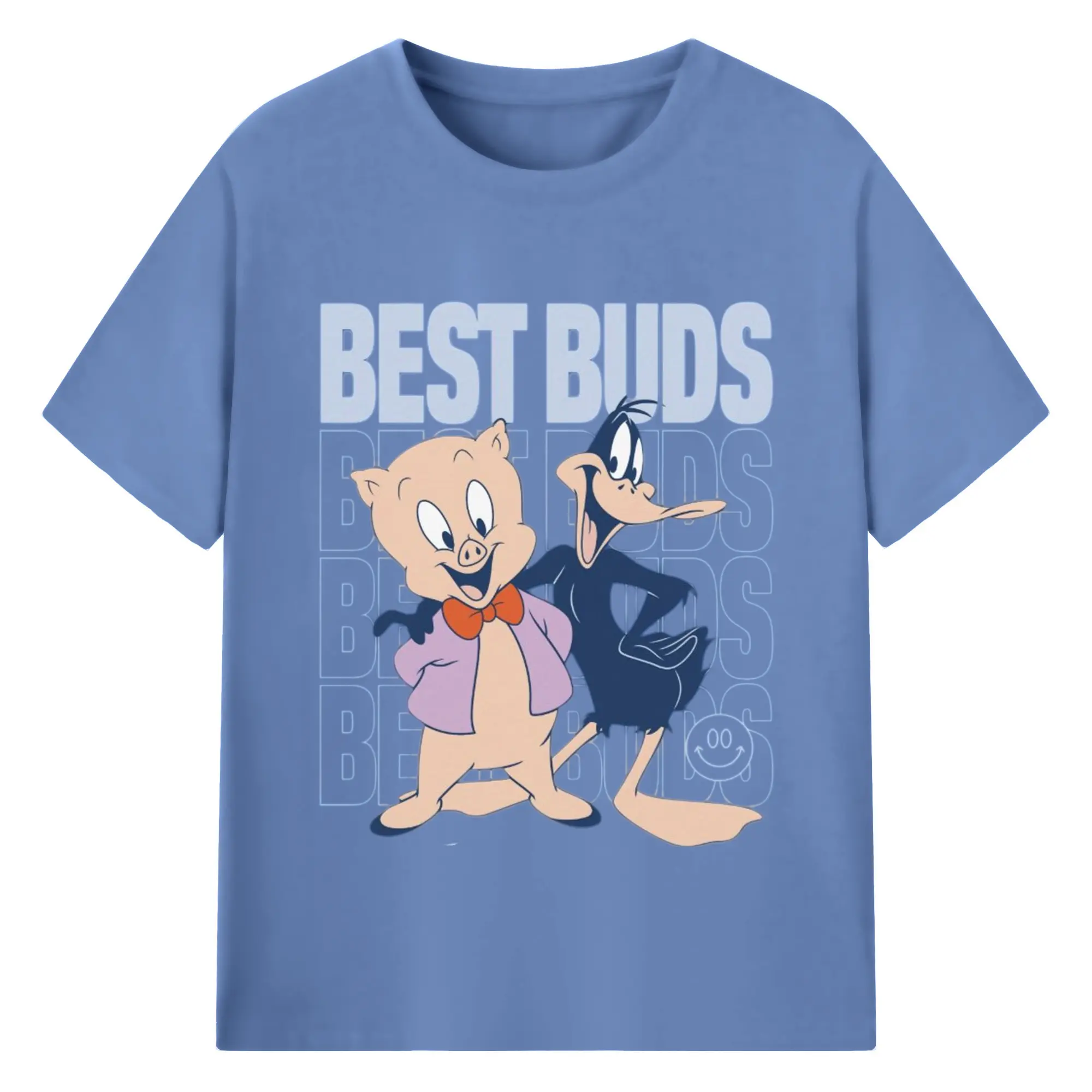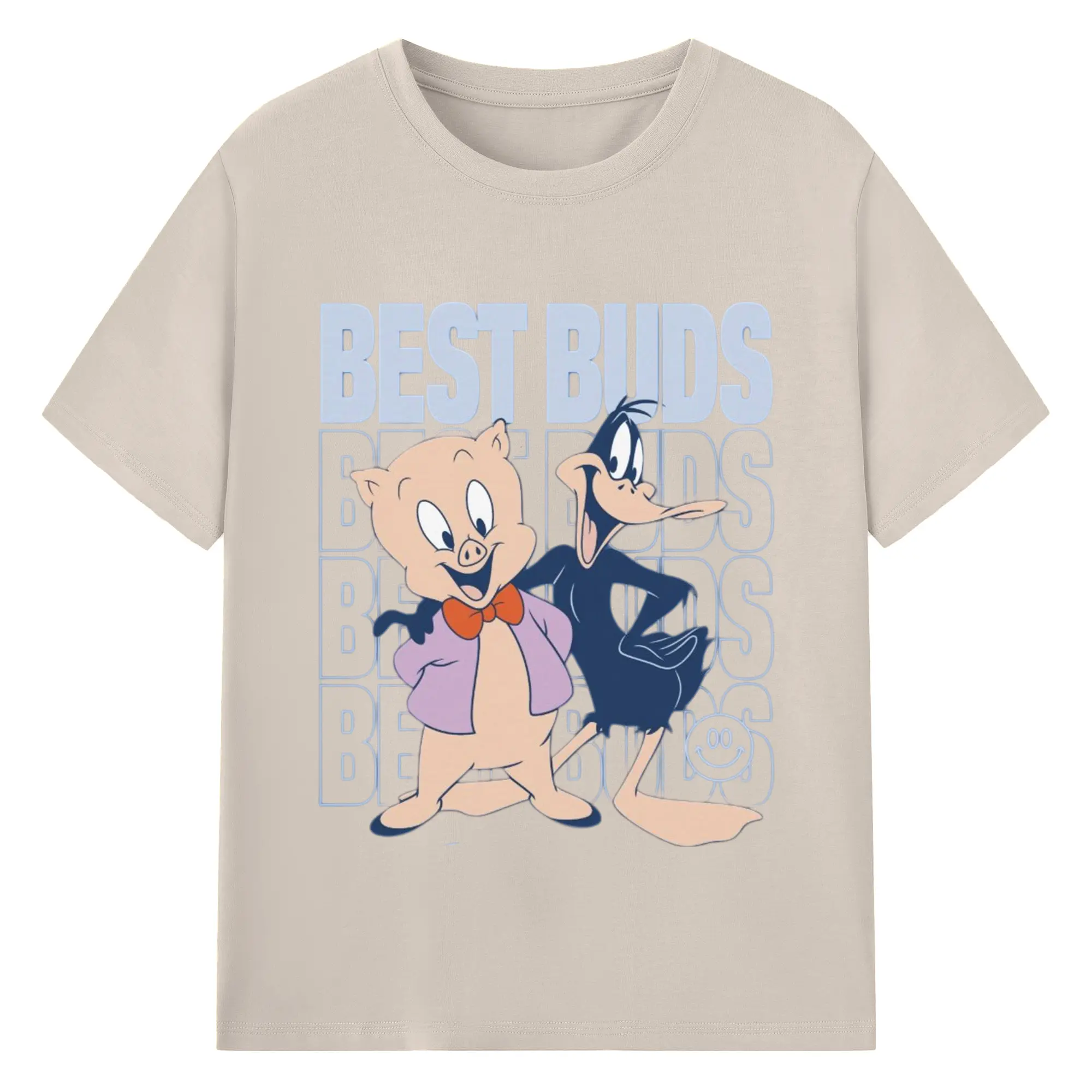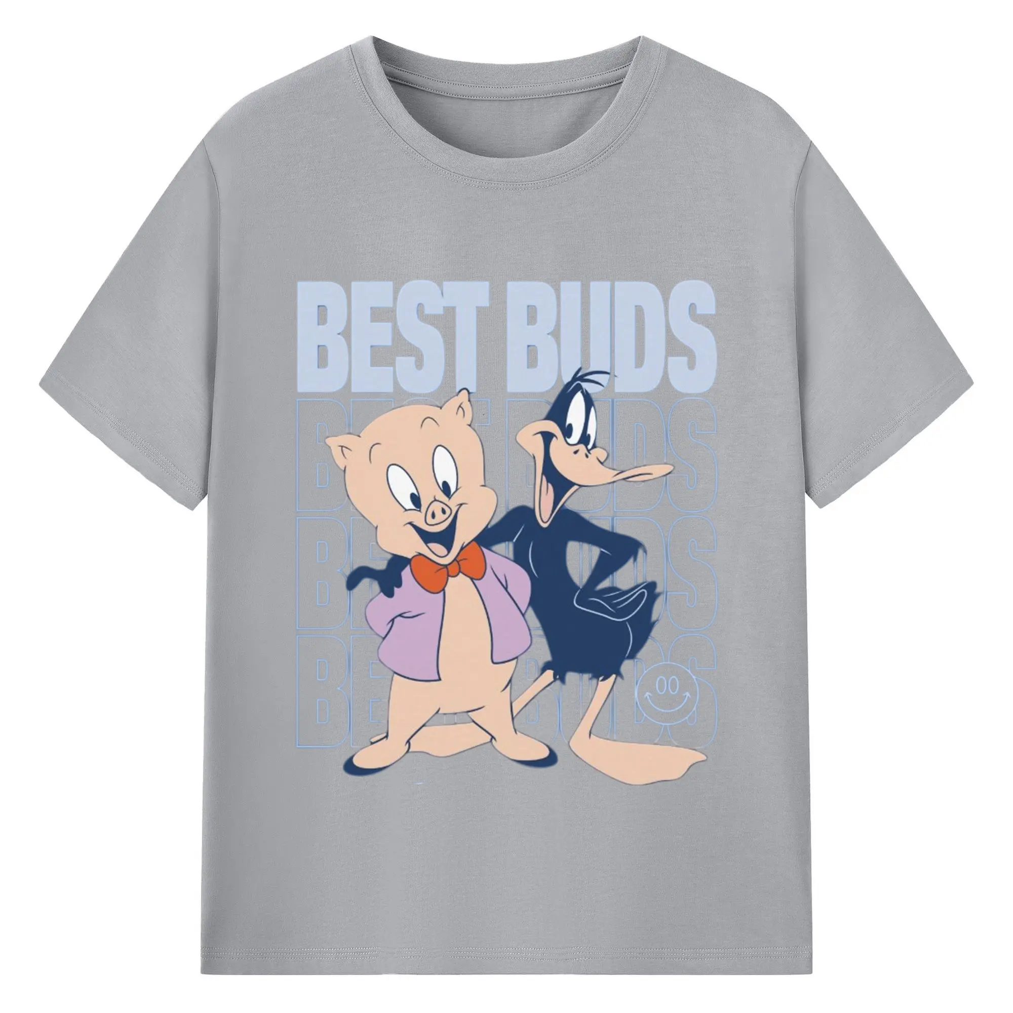 Porky Pig and Daffy Duck t-shirt - 180g Cotton T-Shirt With Front Heat Transfer Print – Soft, Lightweight, Fitted Design – Comfortable Casual Wear For Sports & Everyday Use