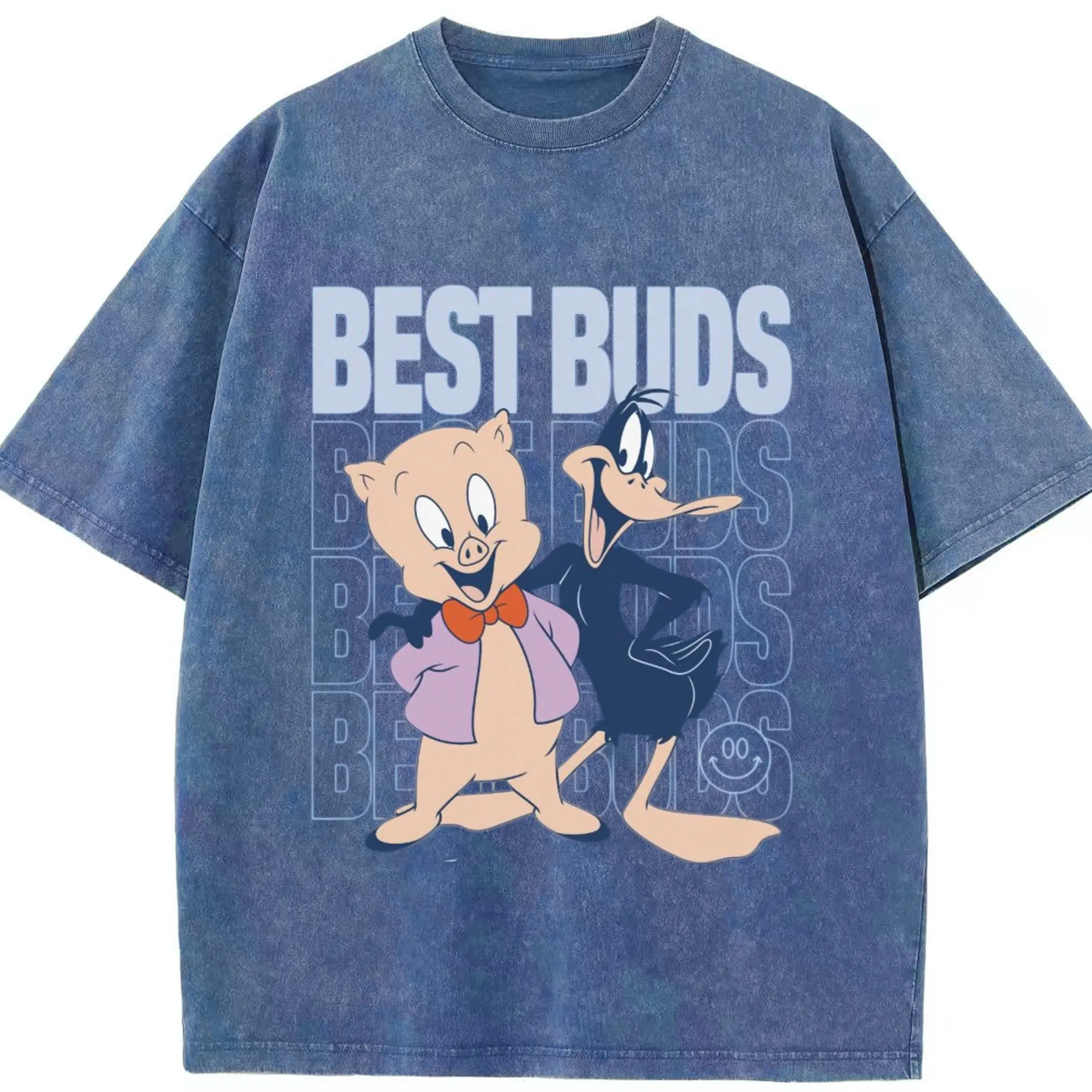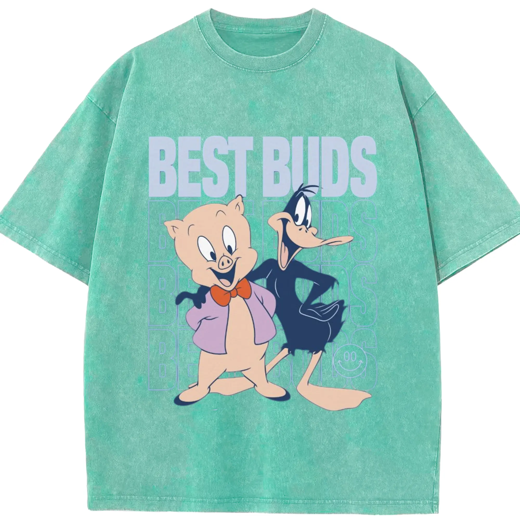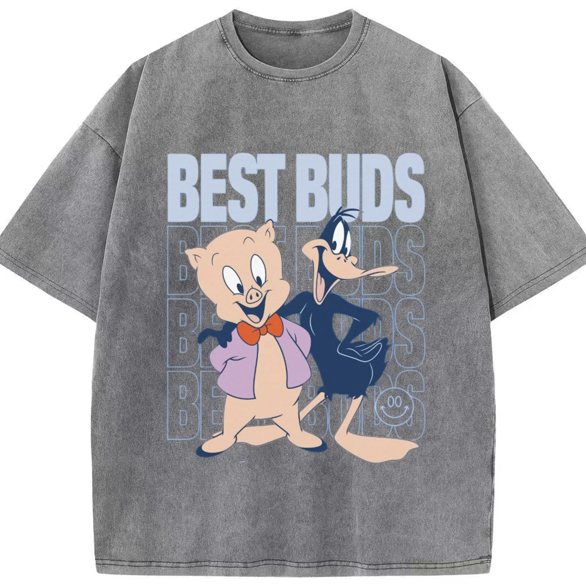 Porky Pig and Daffy Duck t-shirt - Washed Vintage Look 230g Cotton Oversized T-Shirt With Front Heat Transfer Print – Soft, Lightweight, Stylish Fit – Comfortable Casual Wear For Sports & Everyday Use