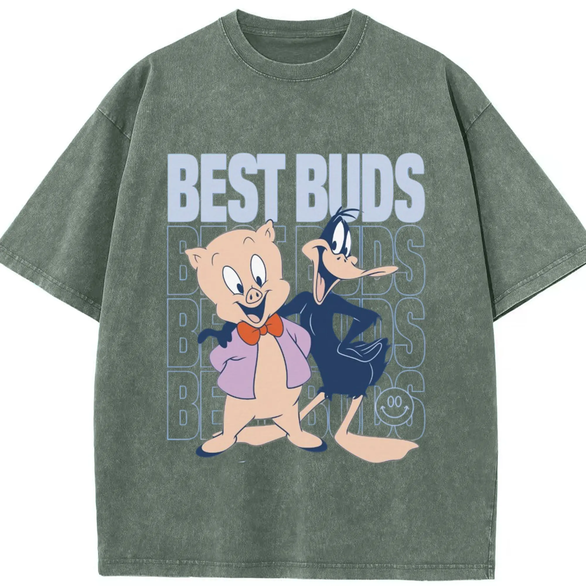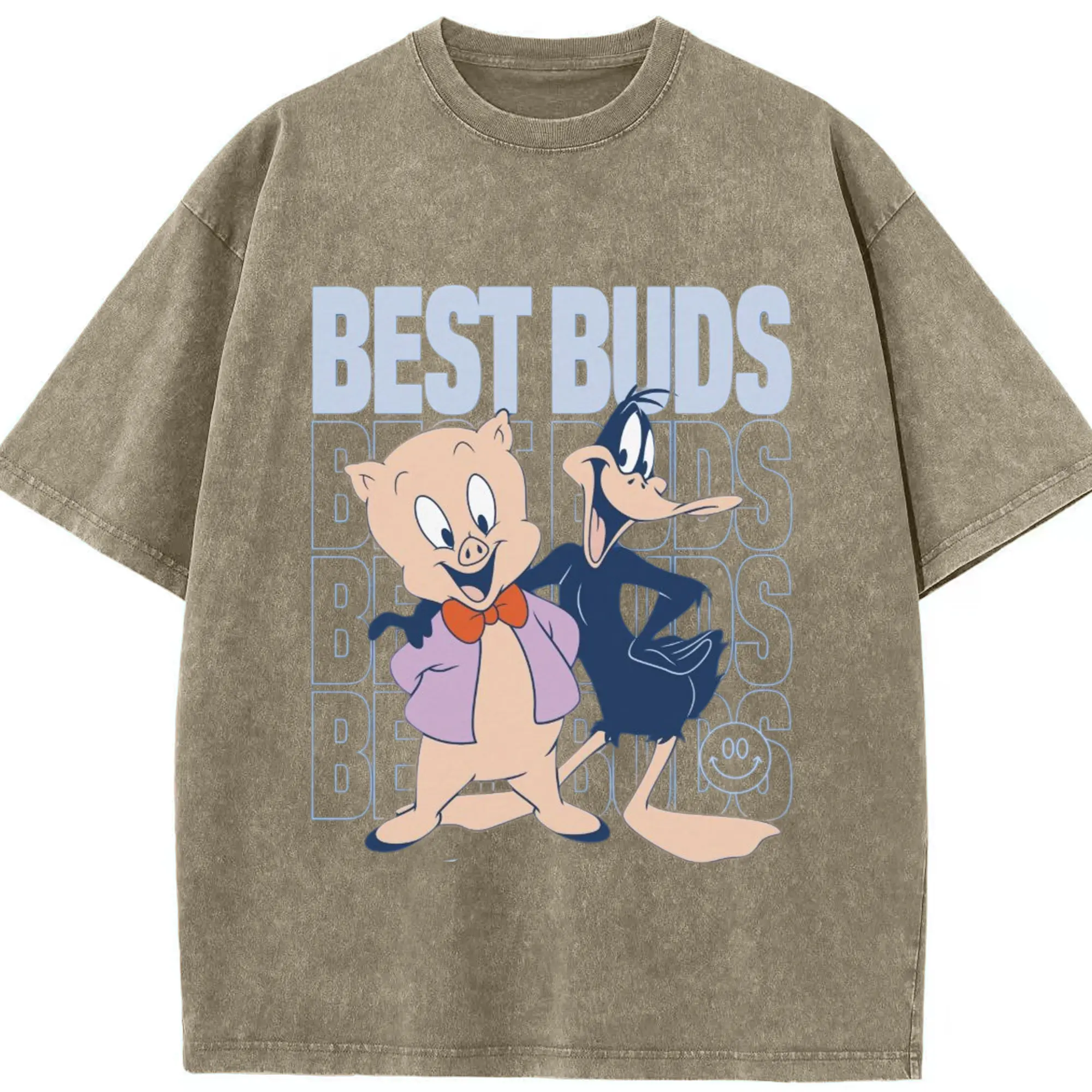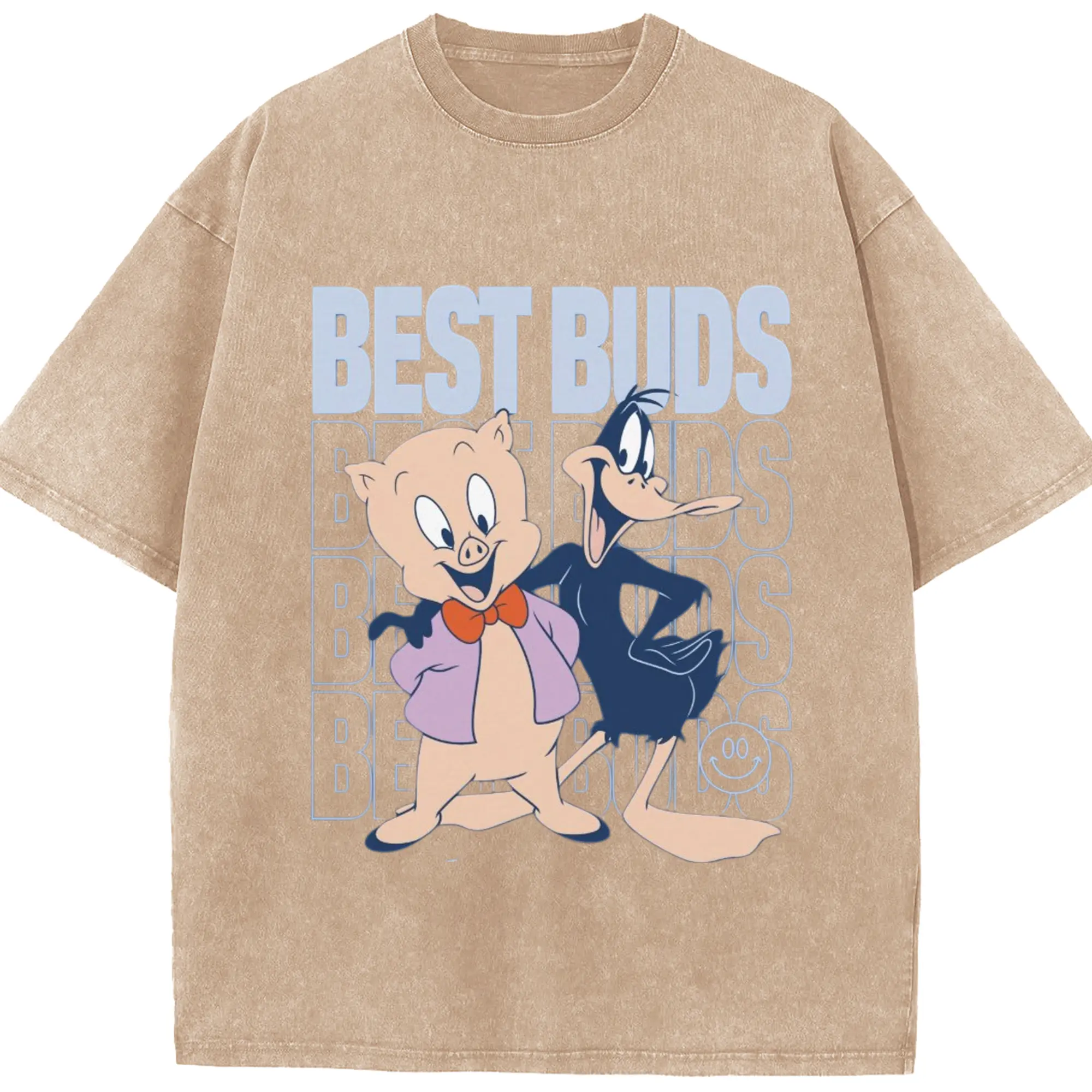 Porky Pig and Daffy Duck t-shirt - Washed Vintage Look 230g Cotton Oversized T-Shirt With Front Heat Transfer Print – Soft, Lightweight, Stylish Fit – Comfortable Casual Wear For Sports & Everyday Use