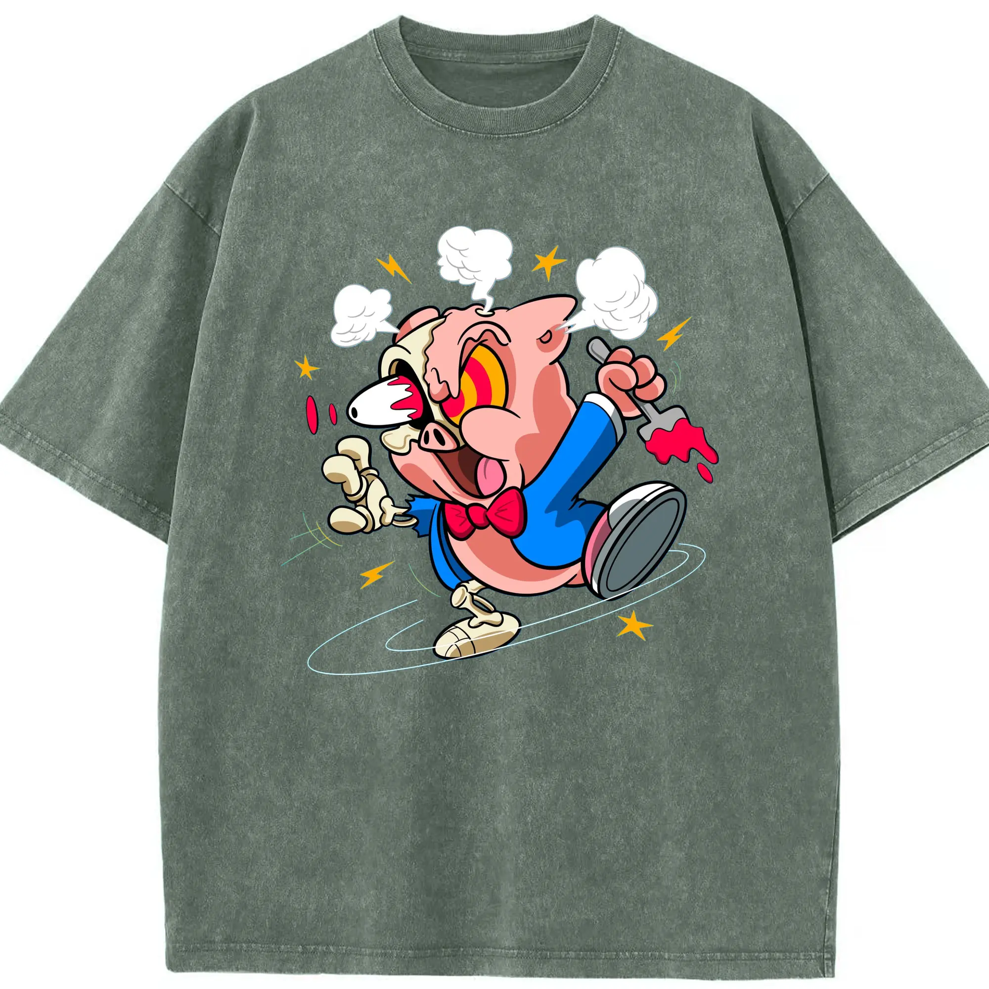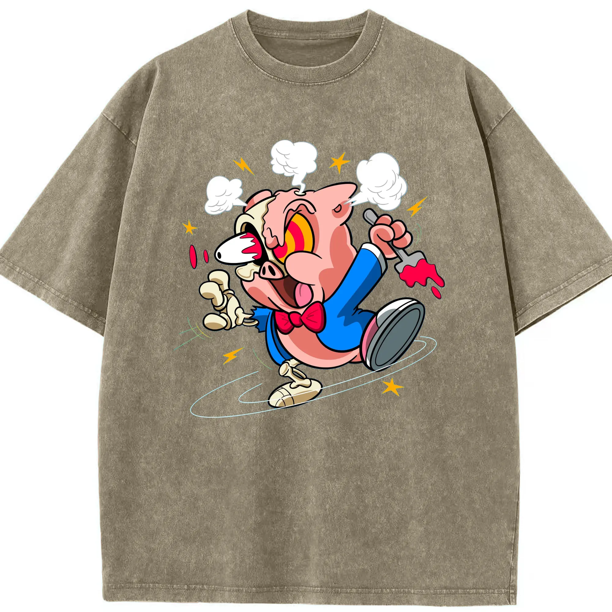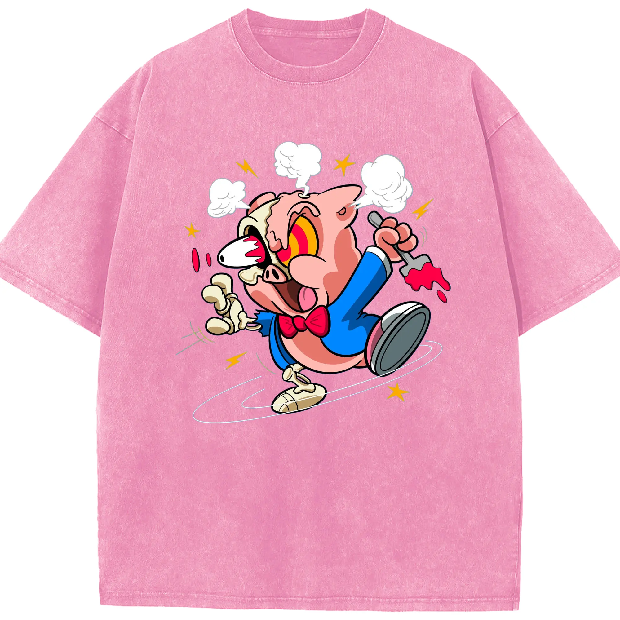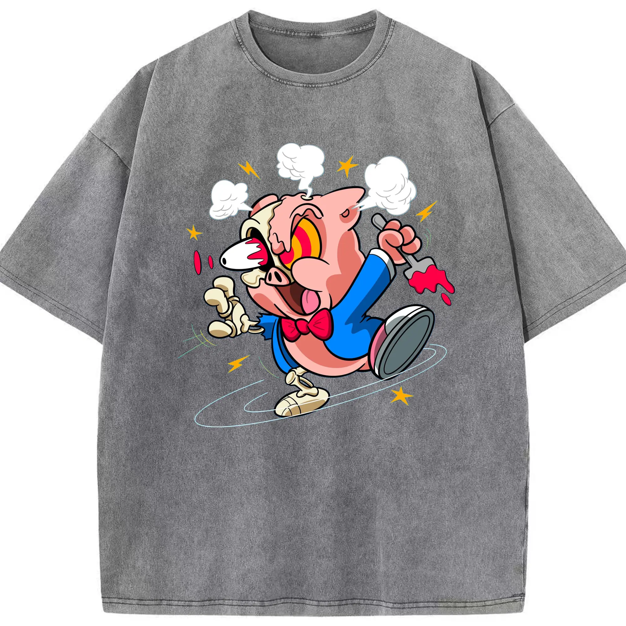 Porky Pig Cartoon graphic shirt - Washed Vintage Look 230g Cotton Oversized T-Shirt With Front Heat Transfer Print – Soft, Lightweight, Stylish Fit – Comfortable Casual Wear For Sports & Everyday Use