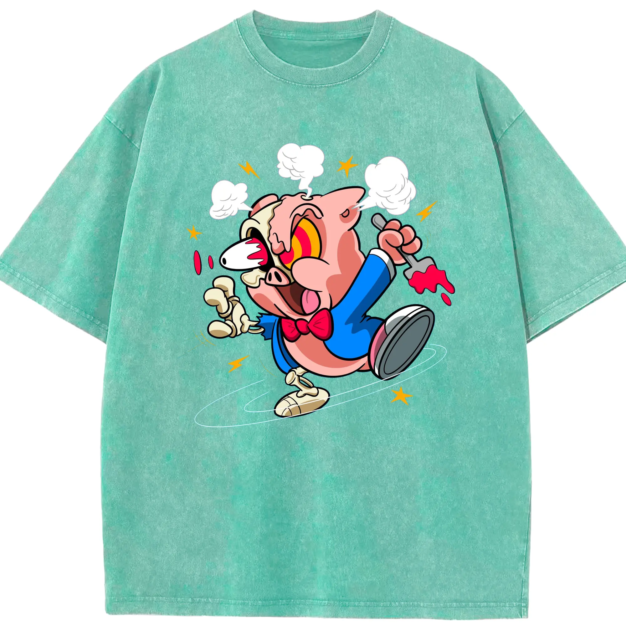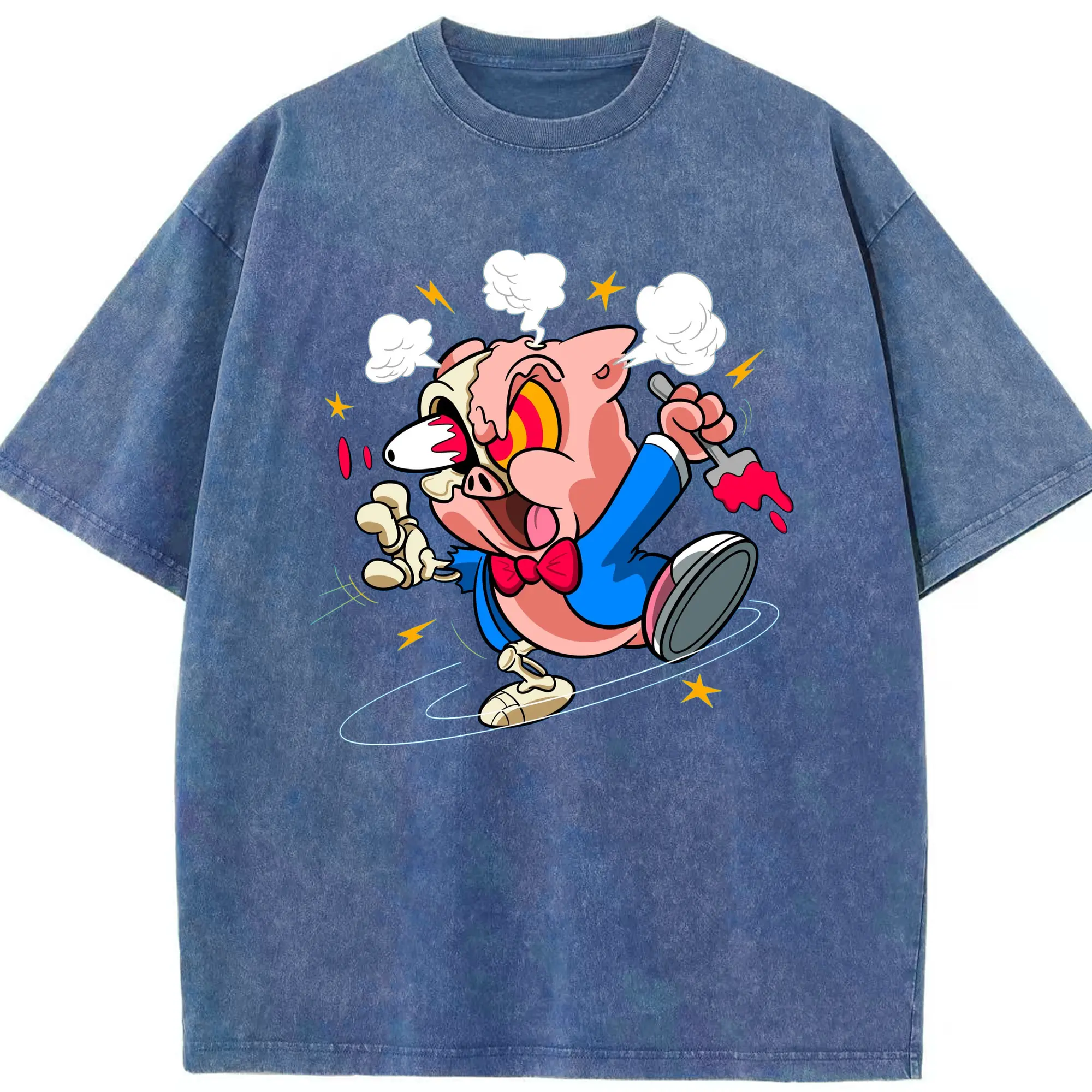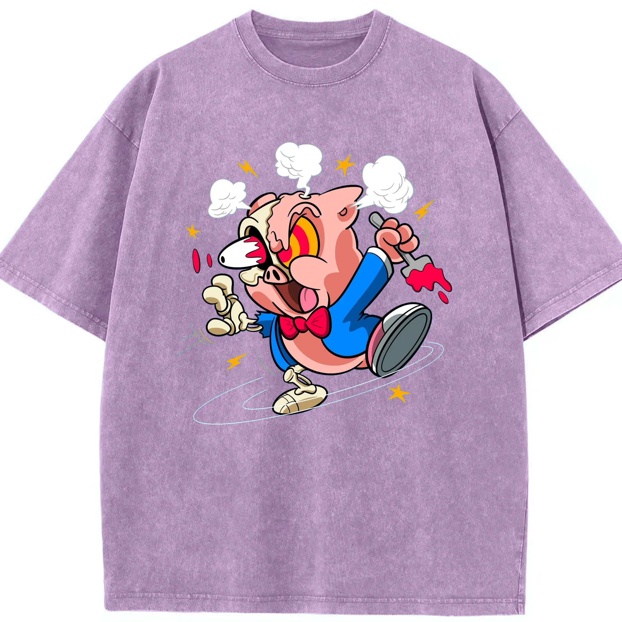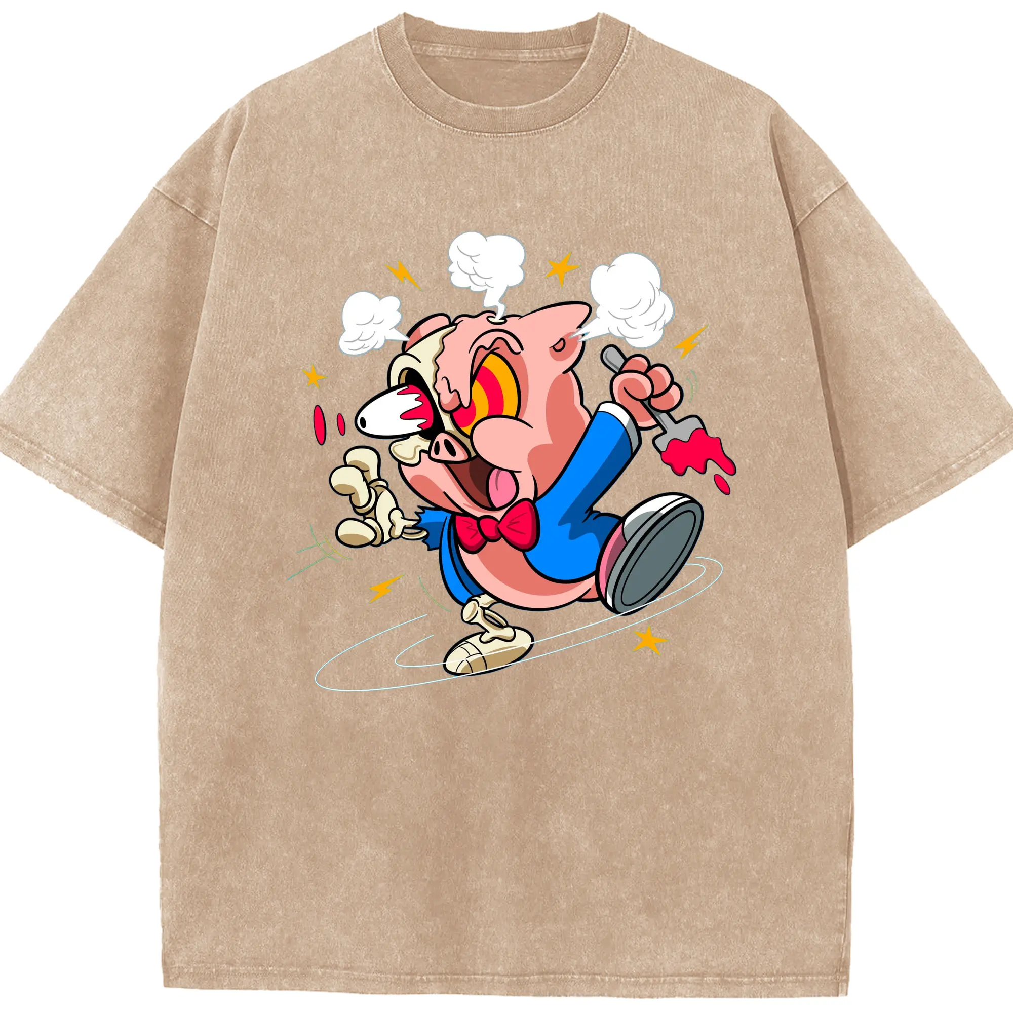 Porky Pig Cartoon graphic shirt - Washed Vintage Look 230g Cotton Oversized T-Shirt With Front Heat Transfer Print – Soft, Lightweight, Stylish Fit – Comfortable Casual Wear For Sports & Everyday Use