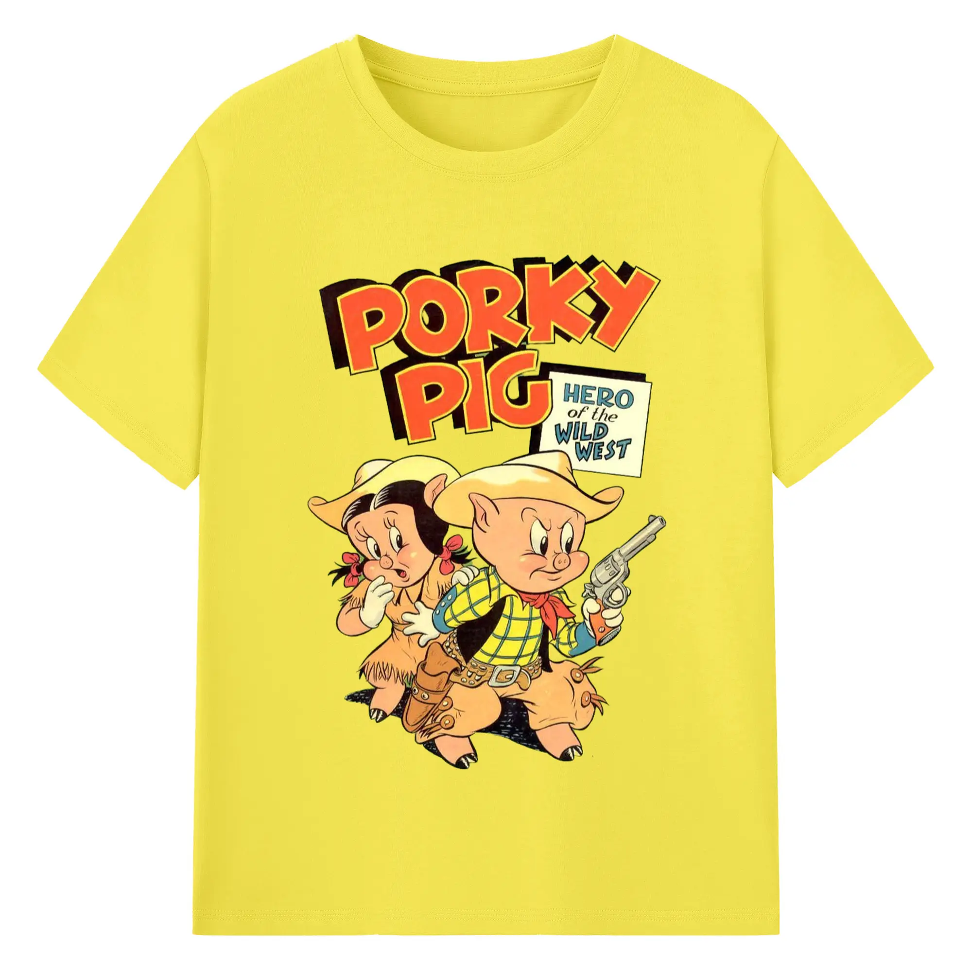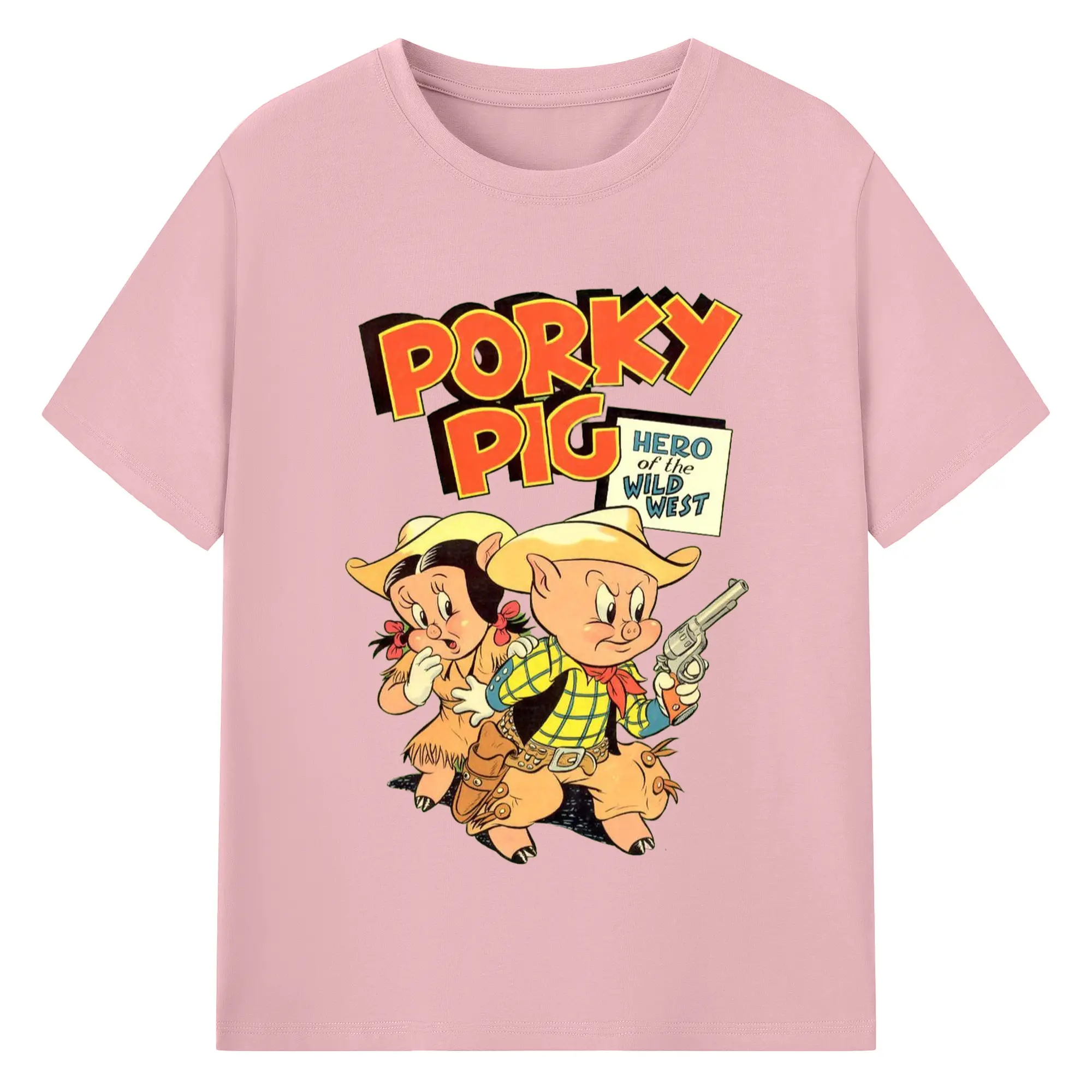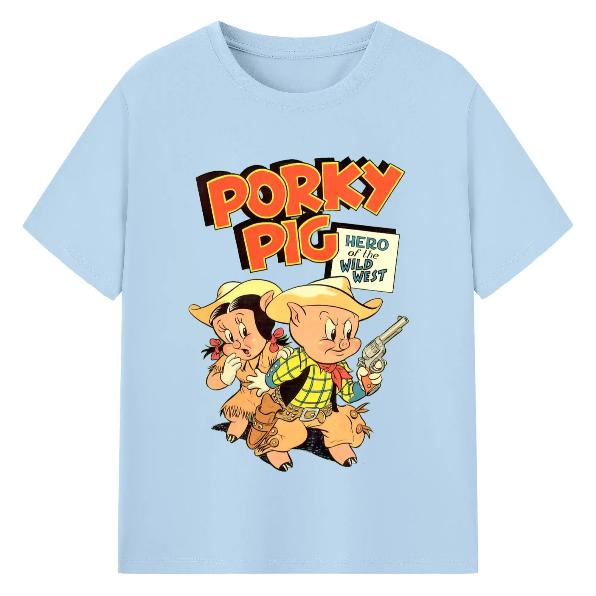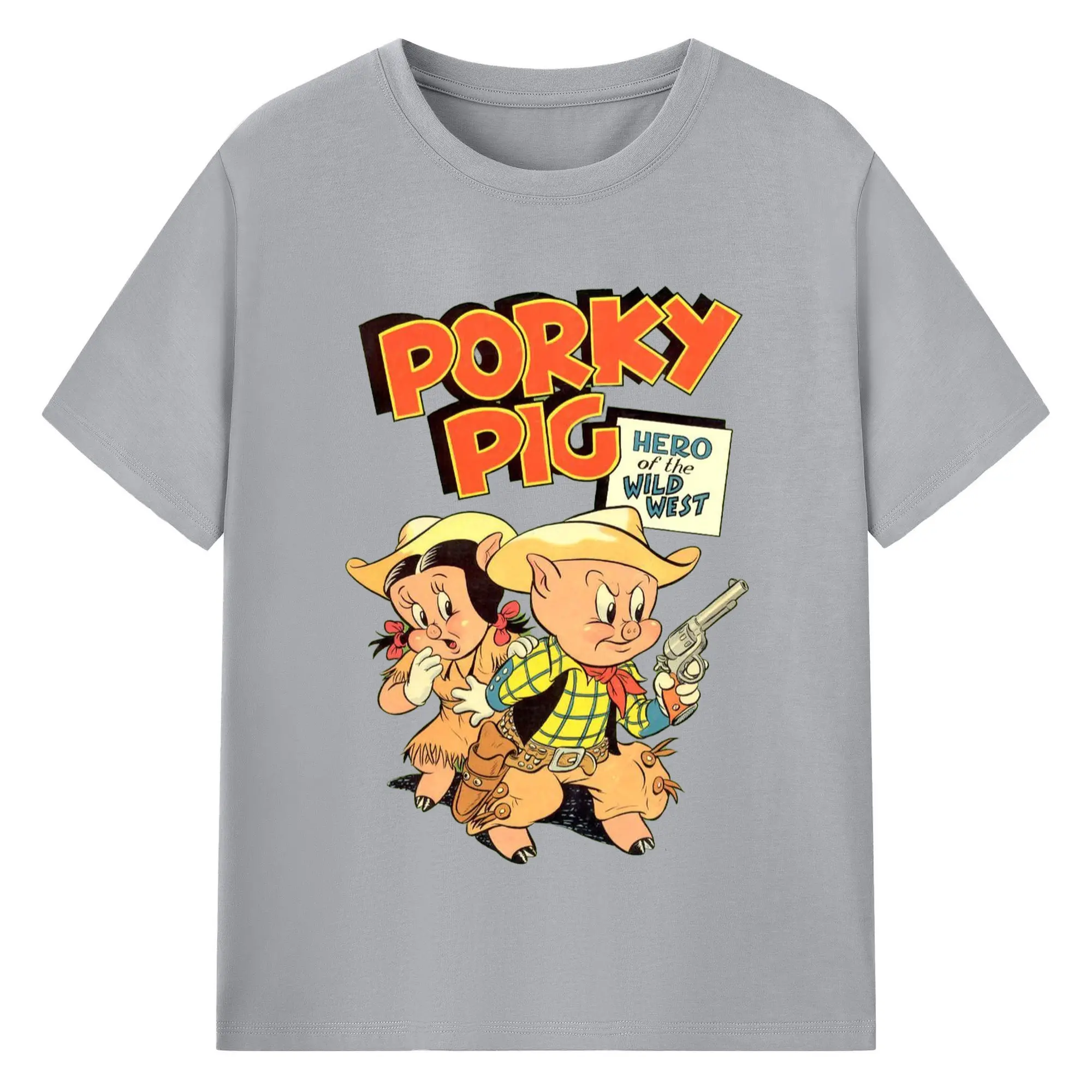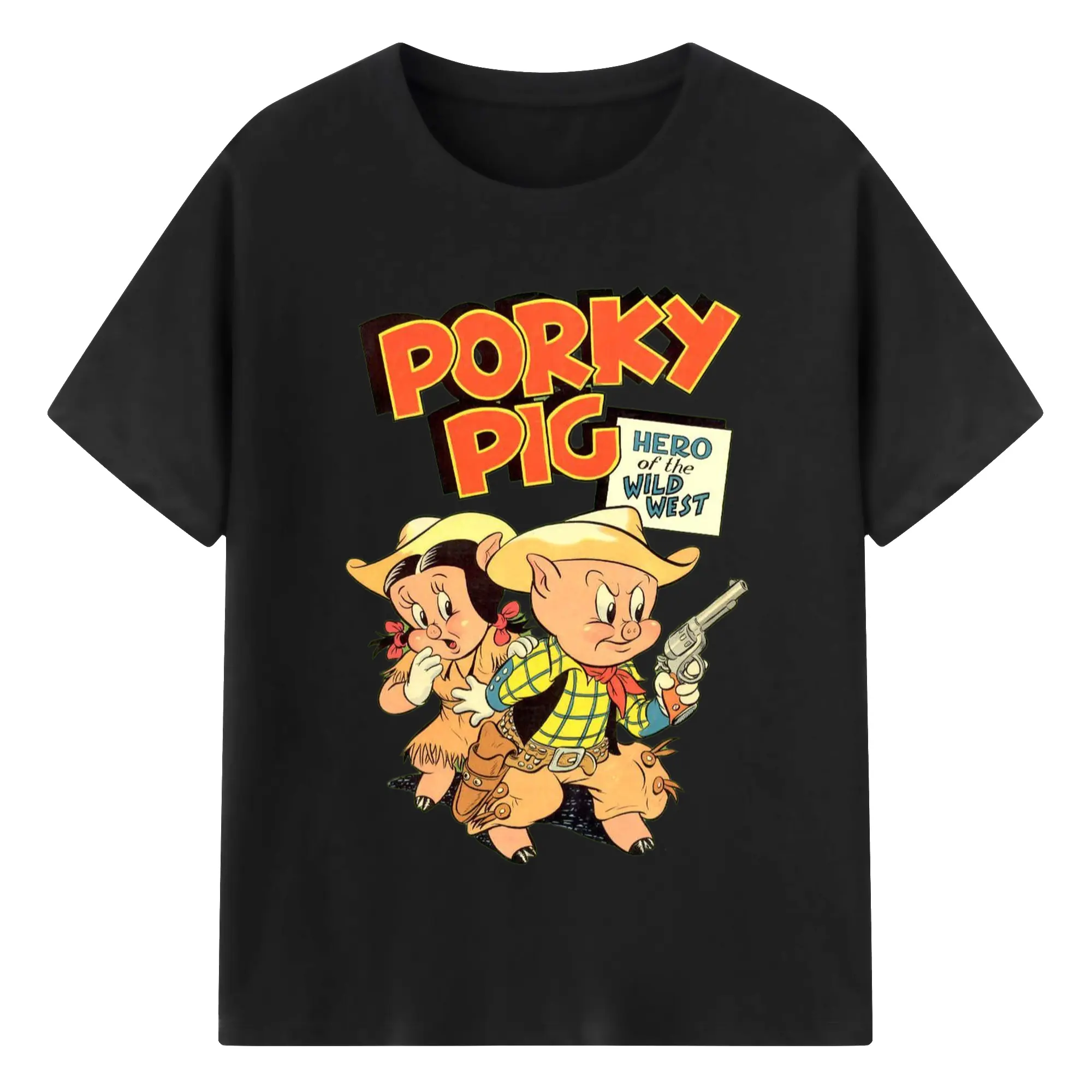 Porky Pig cowboy t-shirt - 180g Cotton T-Shirt With Front Heat Transfer Print – Soft, Lightweight, Fitted Design – Comfortable Casual Wear For Sports & Everyday Use