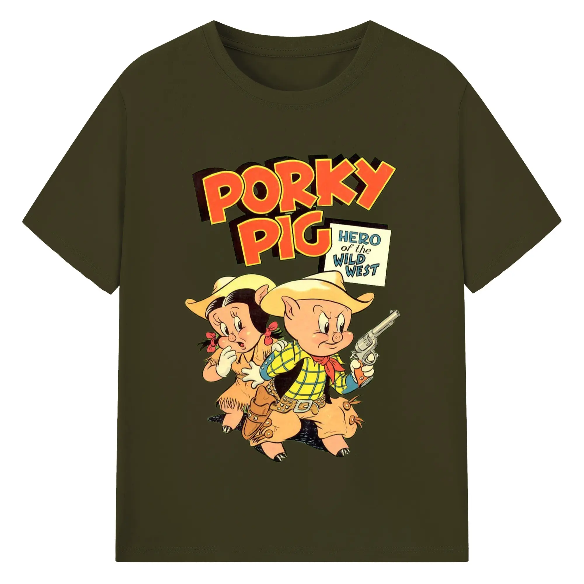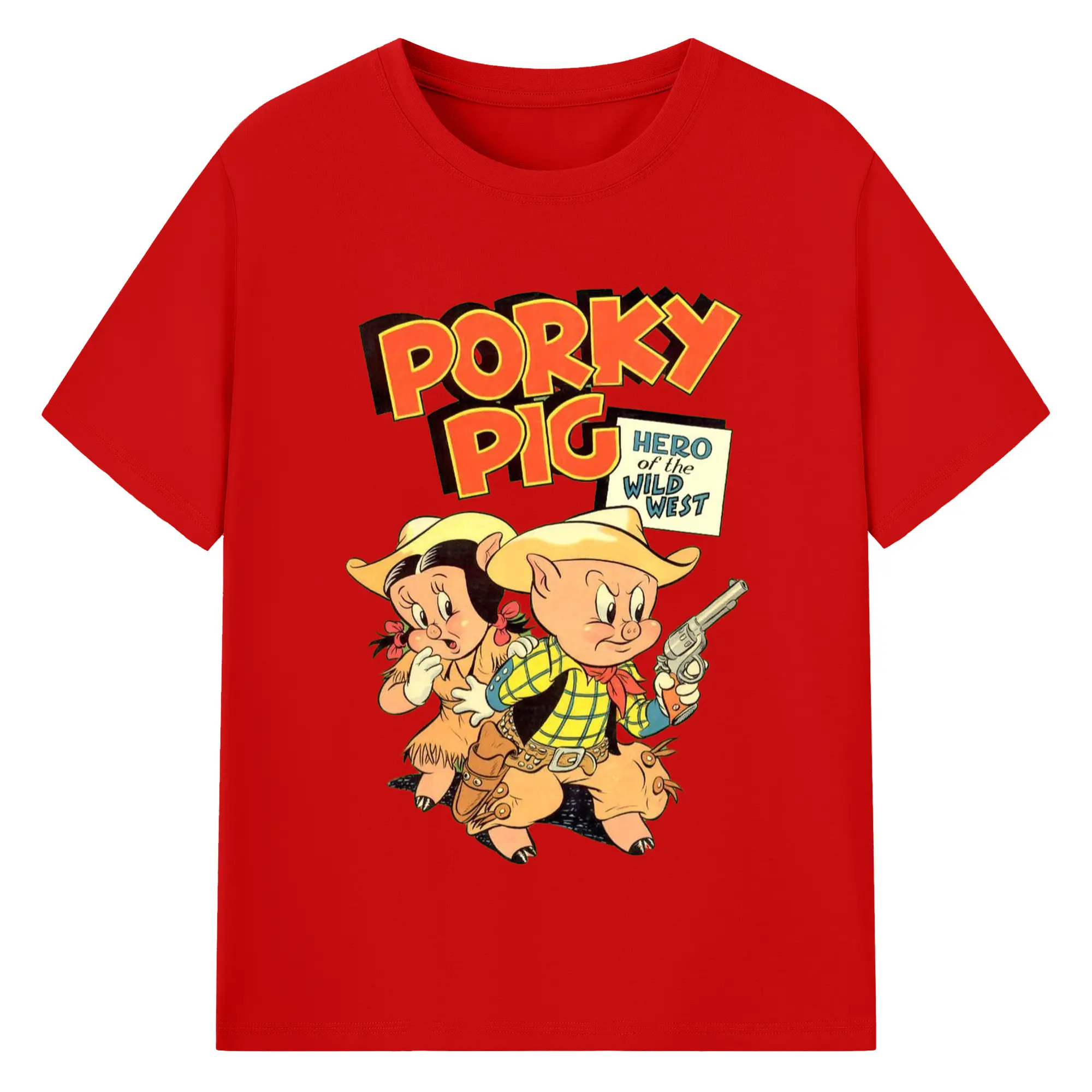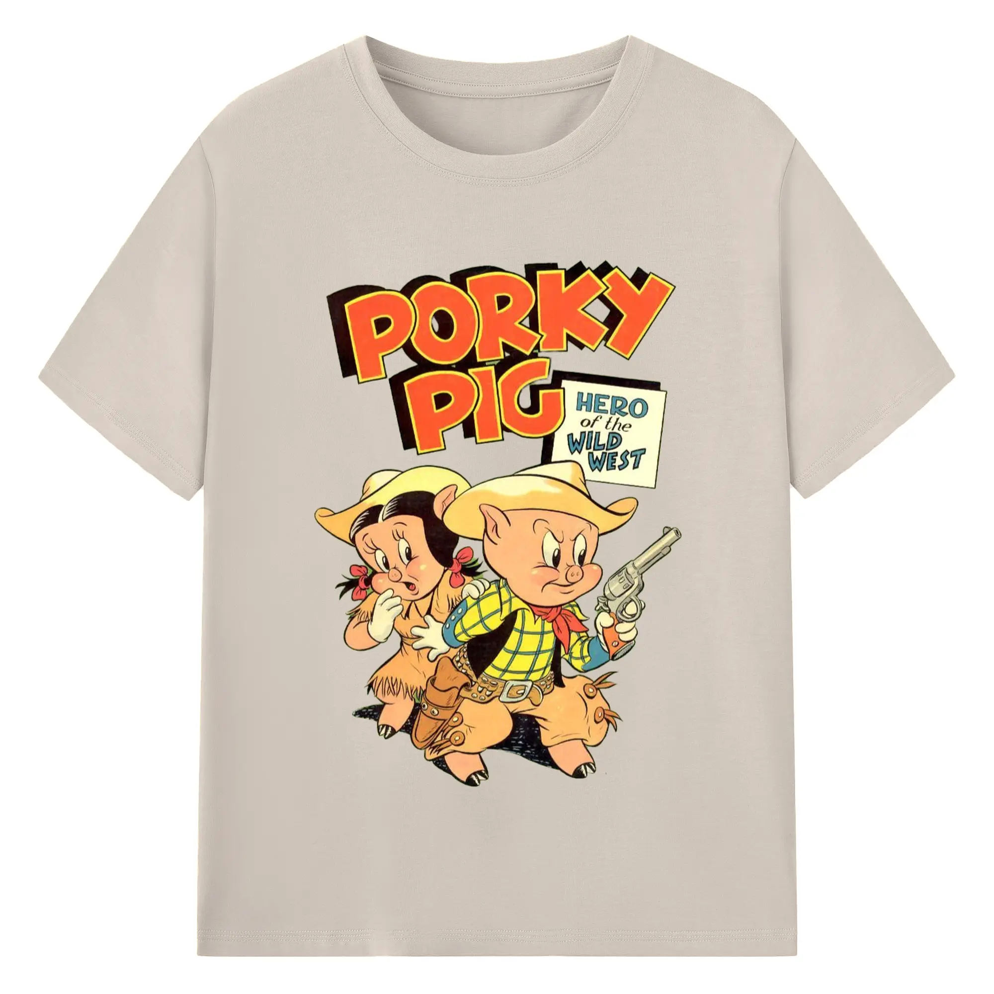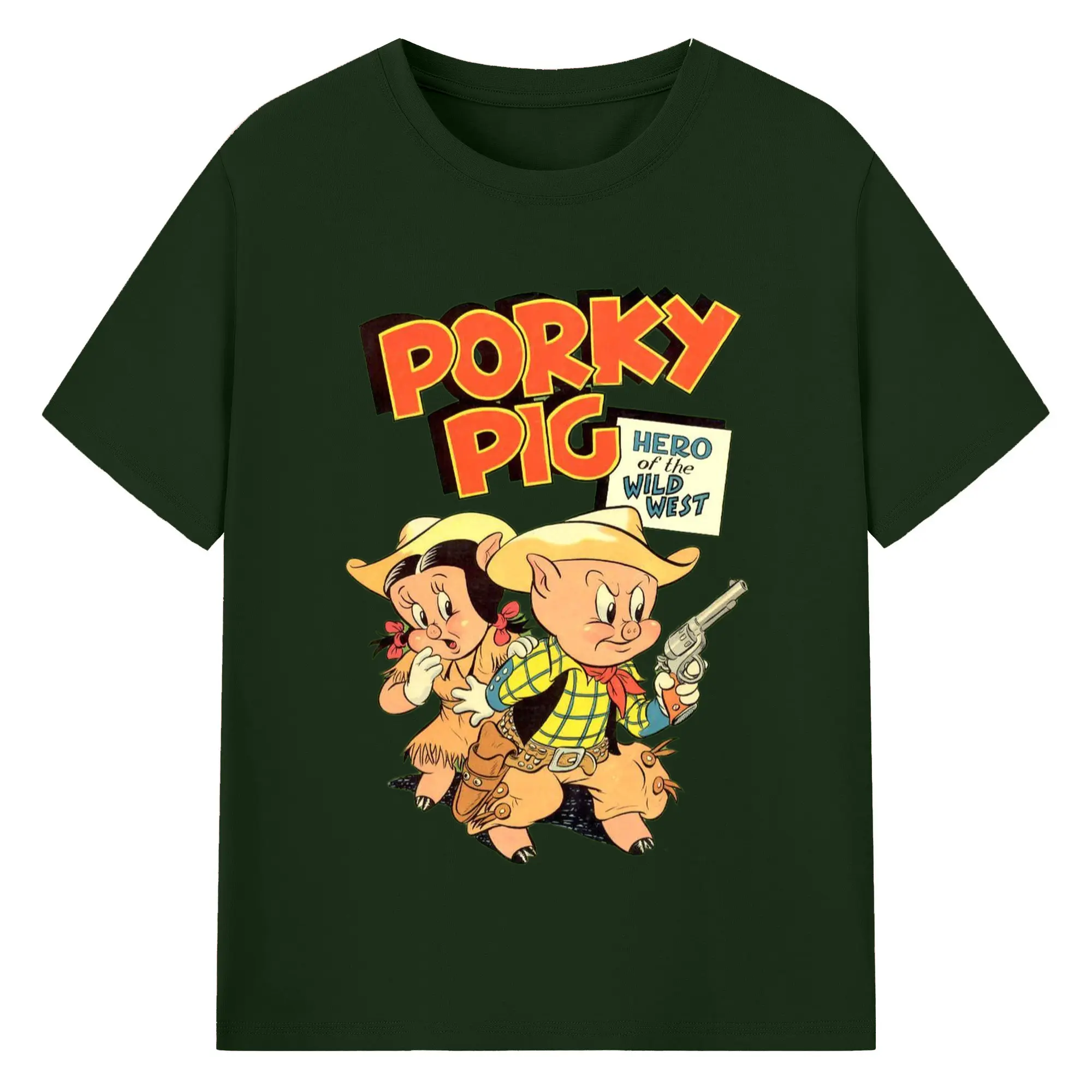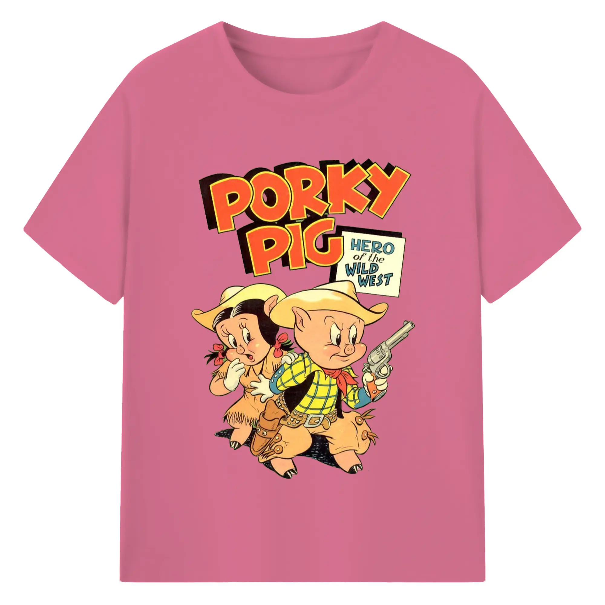 Porky Pig cowboy t-shirt - 180g Cotton T-Shirt With Front Heat Transfer Print – Soft, Lightweight, Fitted Design – Comfortable Casual Wear For Sports & Everyday Use