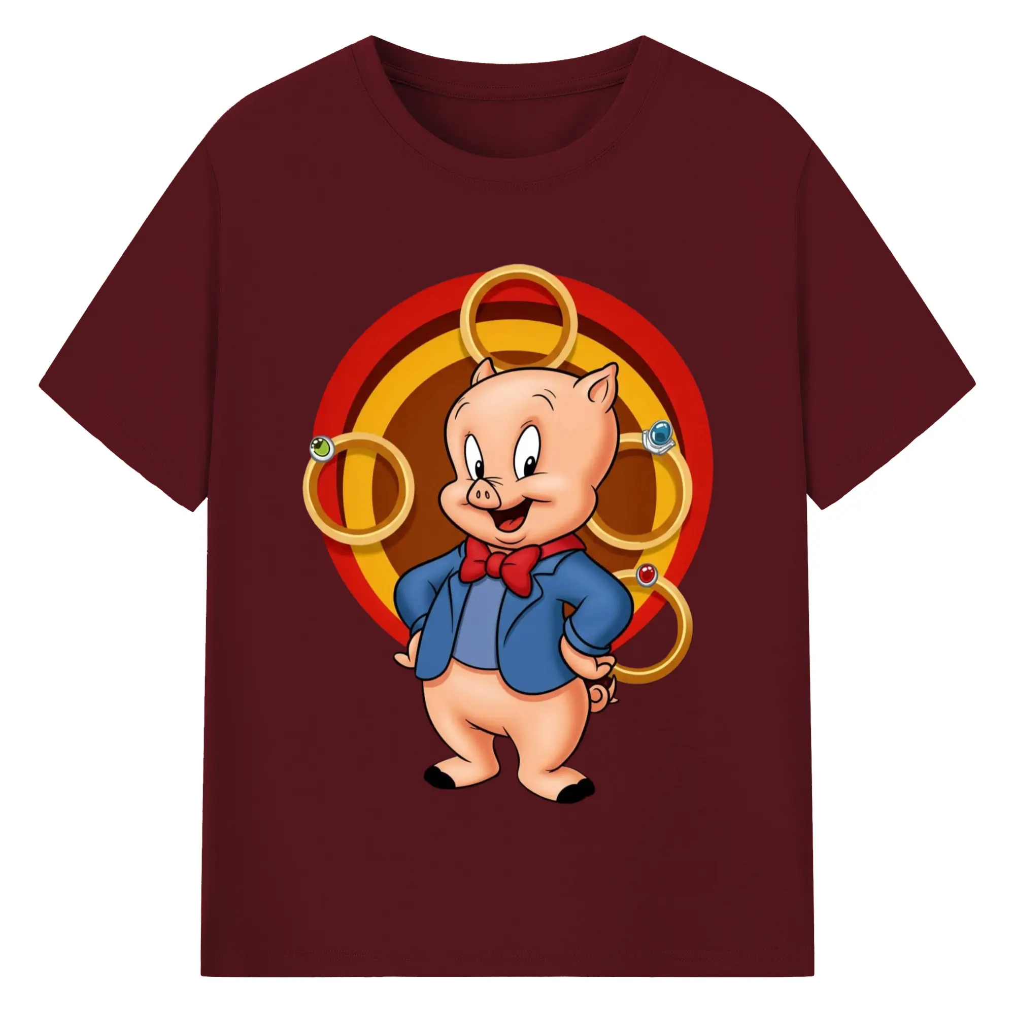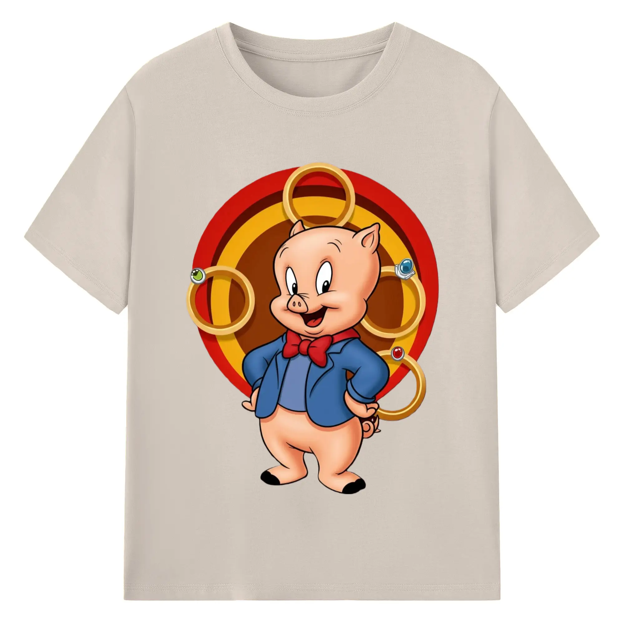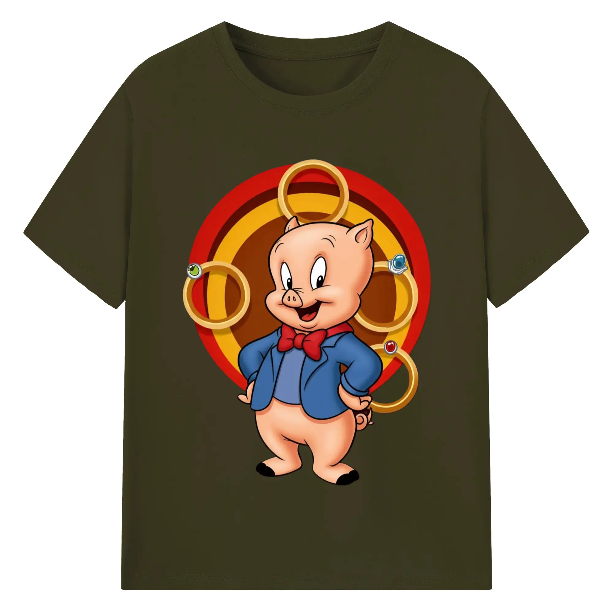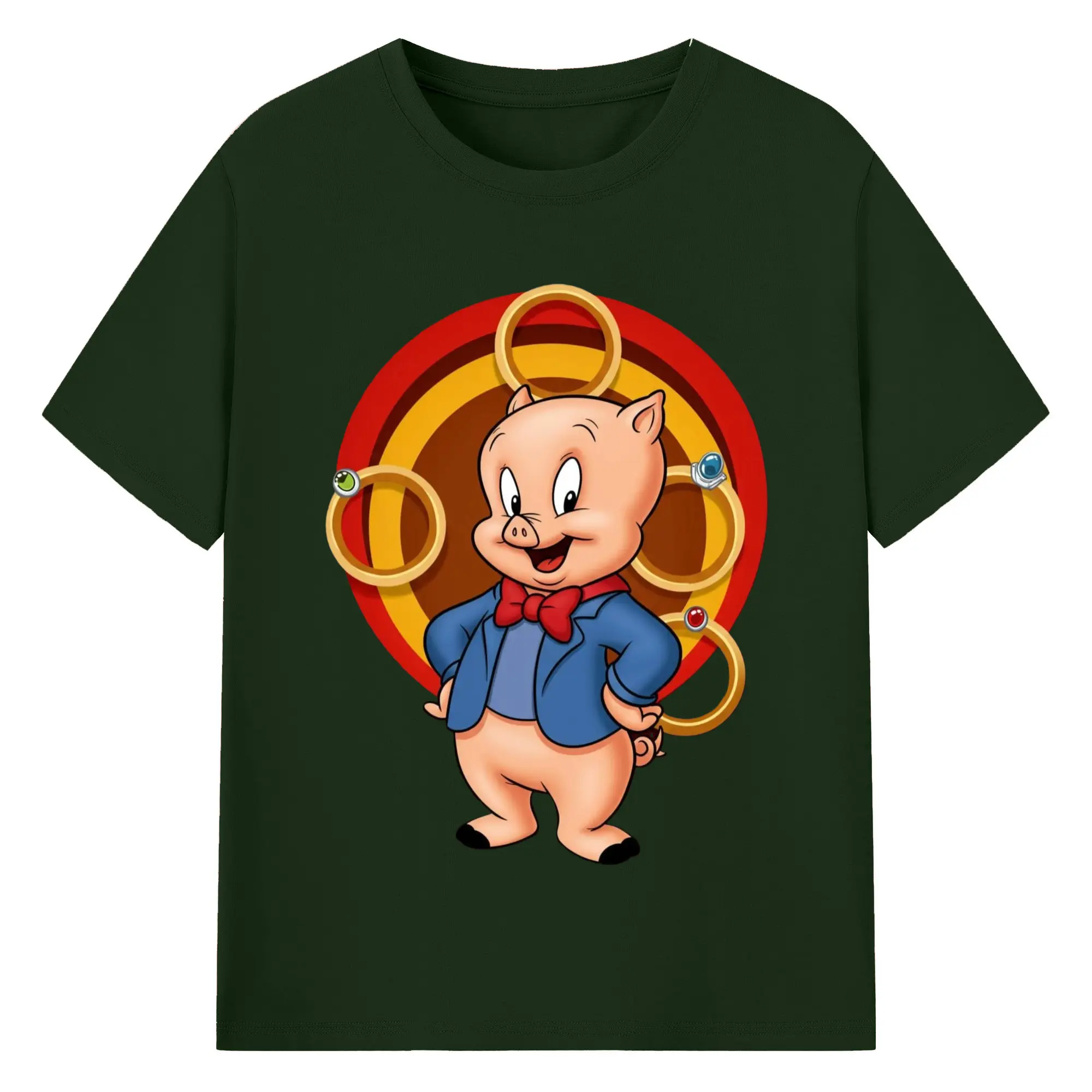 Porky Pig graphic shirt - 180g Cotton T-Shirt With Front Heat Transfer Print – Soft, Lightweight, Fitted Design – Comfortable Casual Wear For Sports & Everyday Use