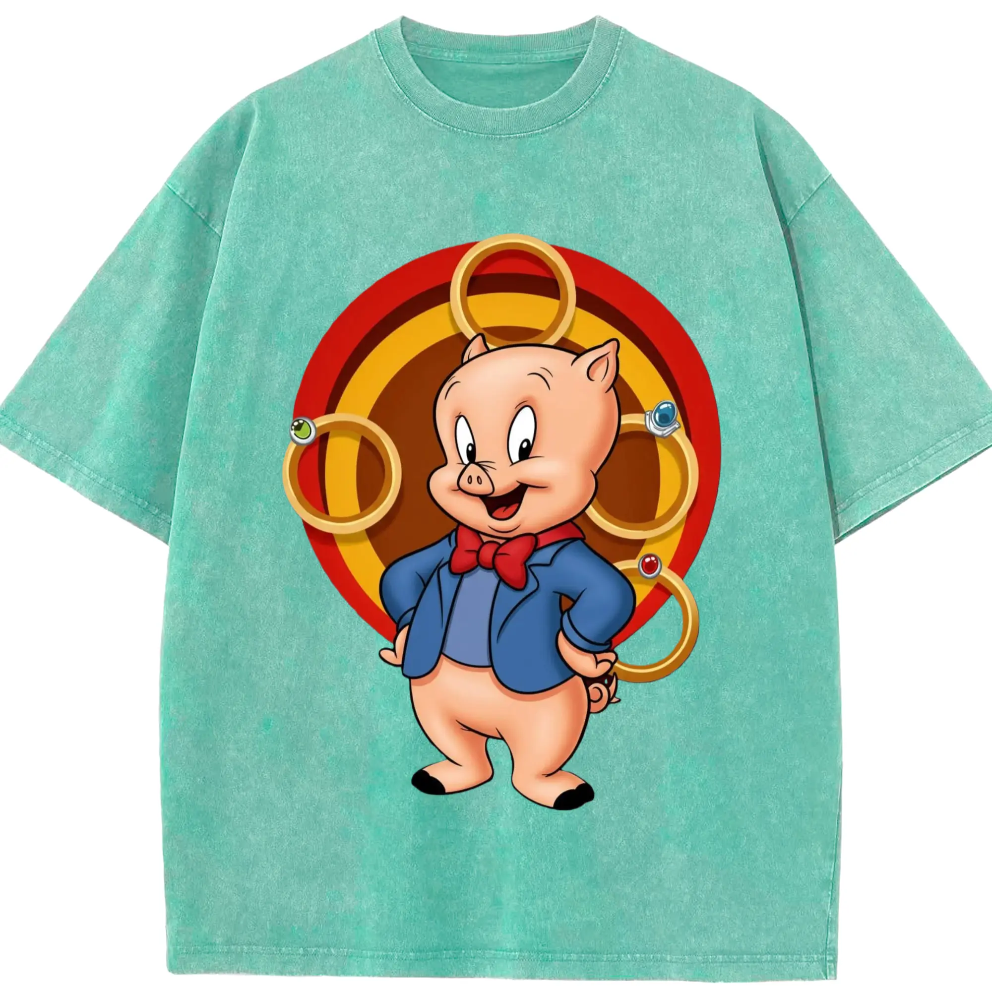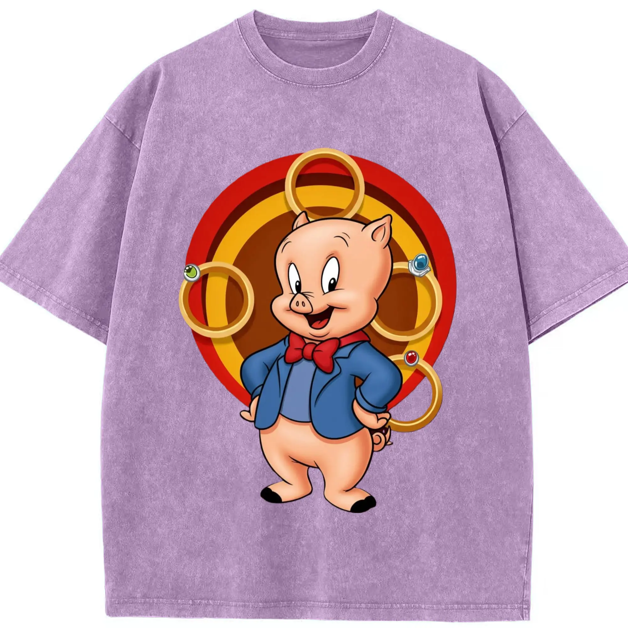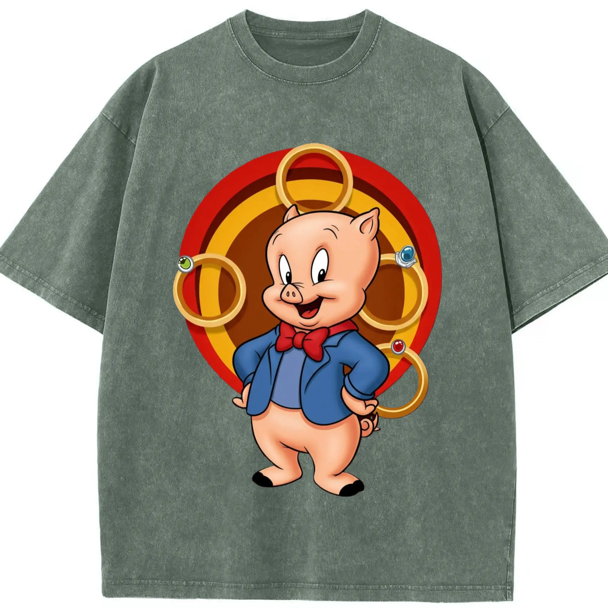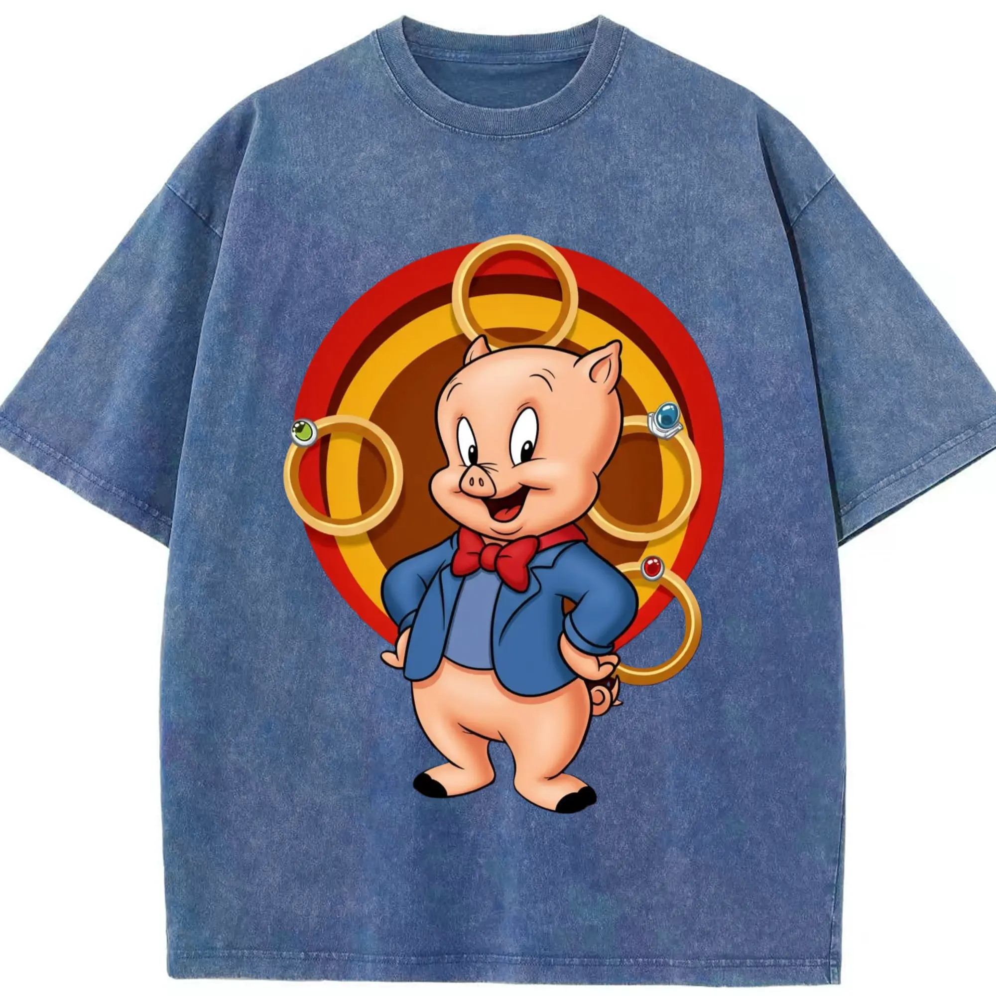 Porky Pig graphic shirt - Washed Vintage Look 230g Cotton Oversized T-Shirt With Front Heat Transfer Print – Soft, Lightweight, Stylish Fit – Comfortable Casual Wear For Sports & Everyday Use
