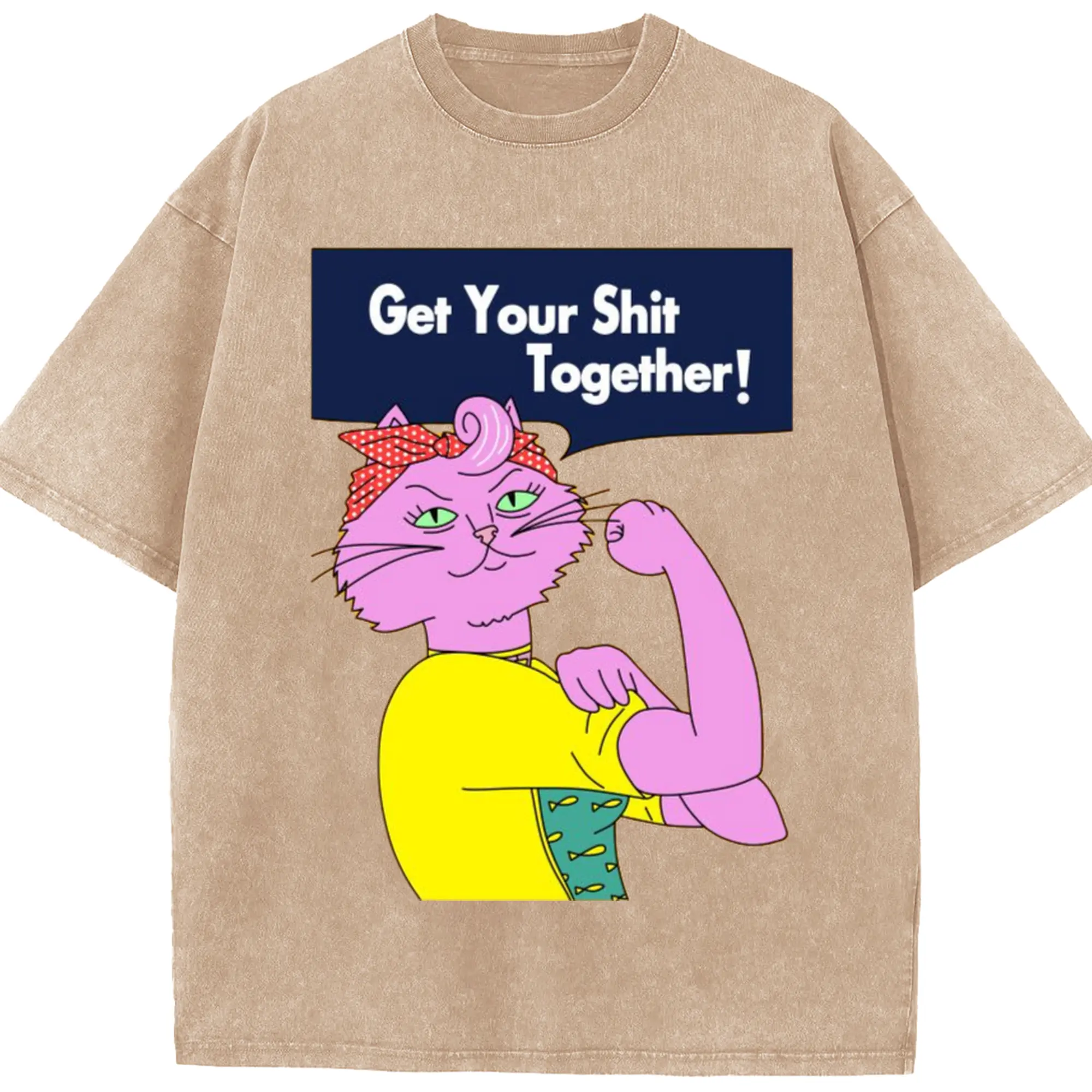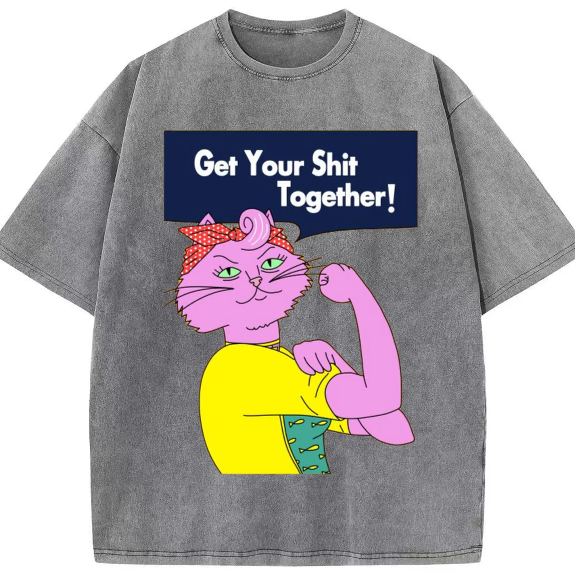 Washed Vintage Look 230g Cotton Oversized T-Shirt with Front Heat Transfer Print – Soft, Lightweight, Stylish Fit – Comfortable Casual Wear for Sports & Everyday Use