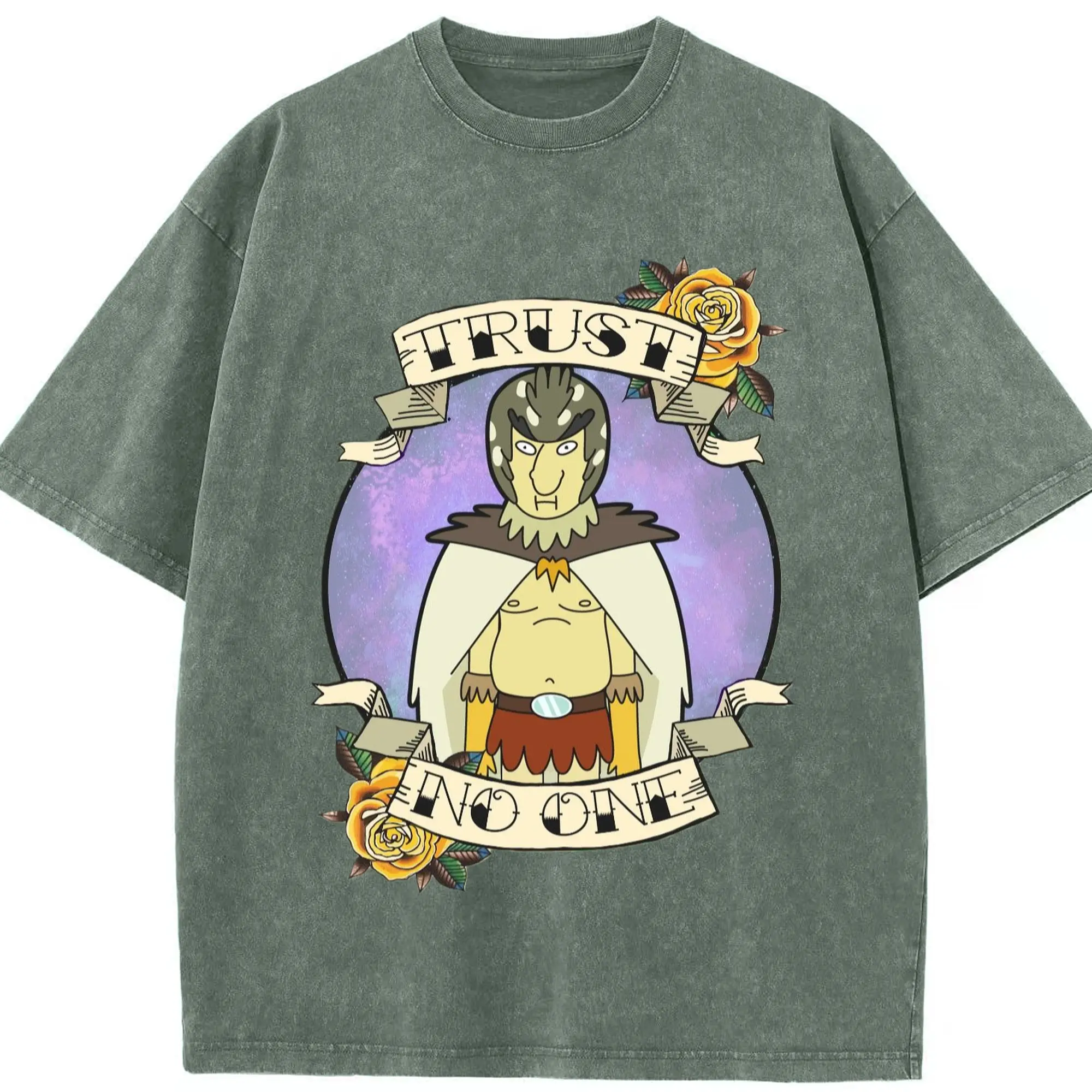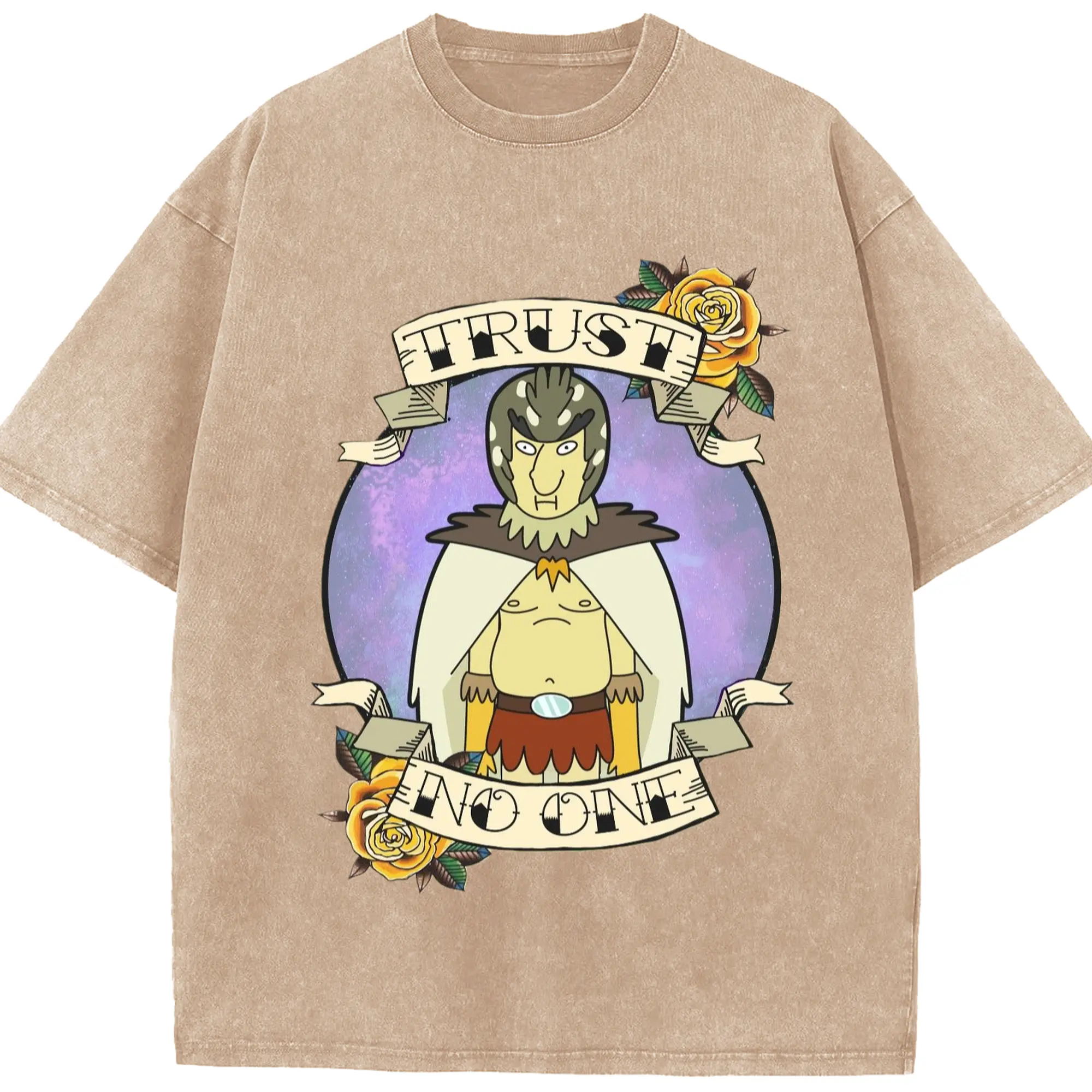 Rick and Morty Birdperson graphic shirt - Washed Vintage Look 230g Cotton Oversized T-Shirt With Front Heat Transfer Print – Soft, Lightweight, Stylish Fit – Comfortable Casual Wear For Sports & Everyday Use