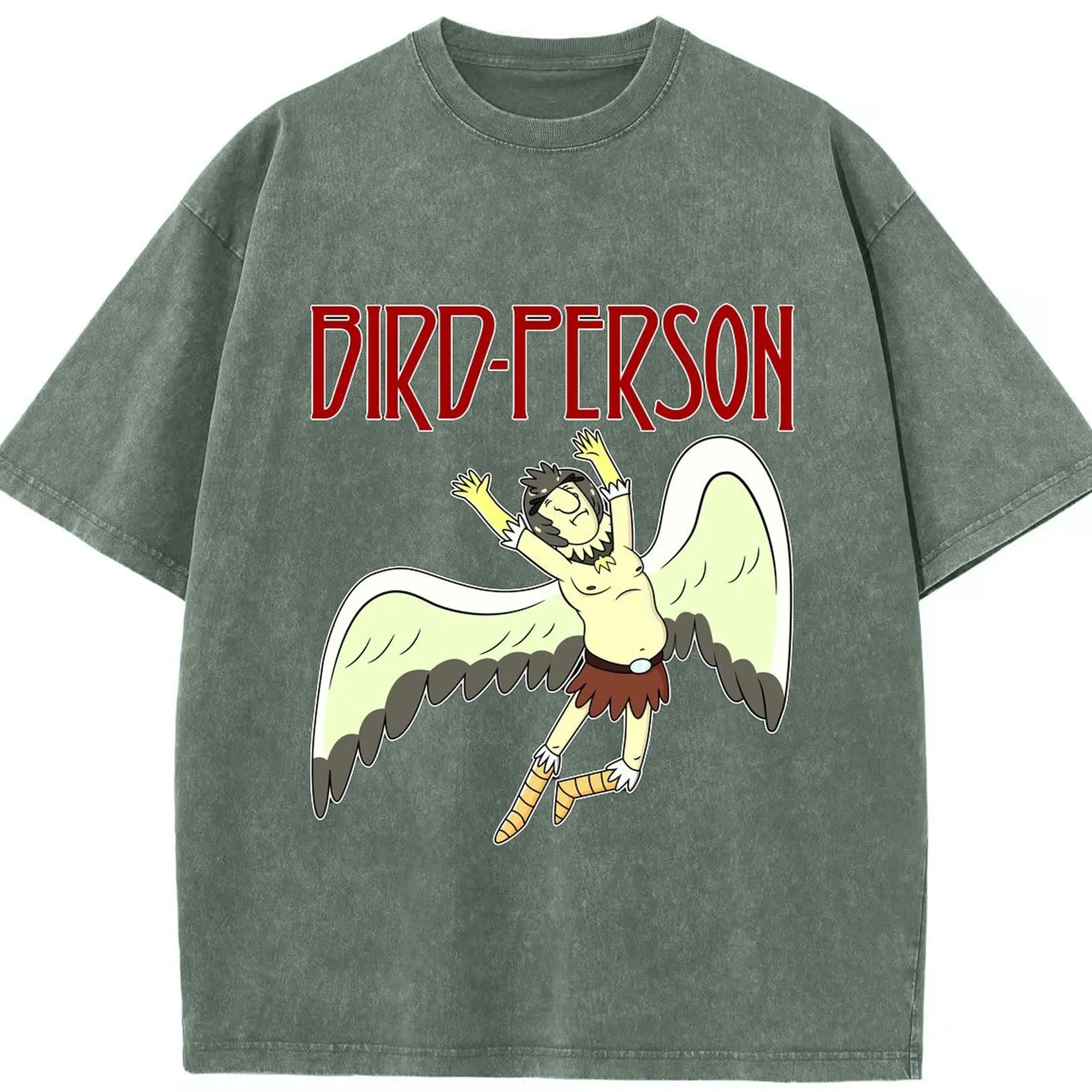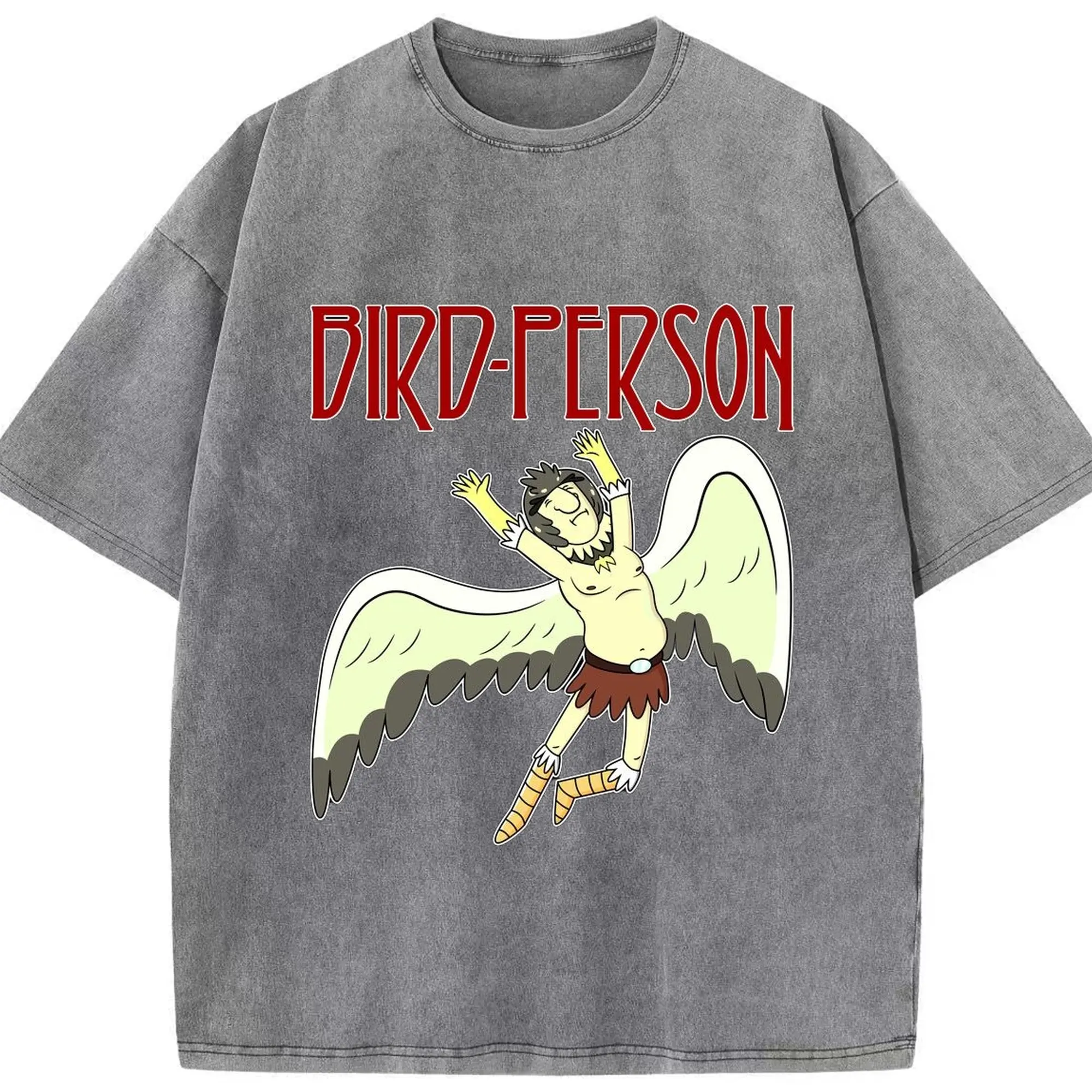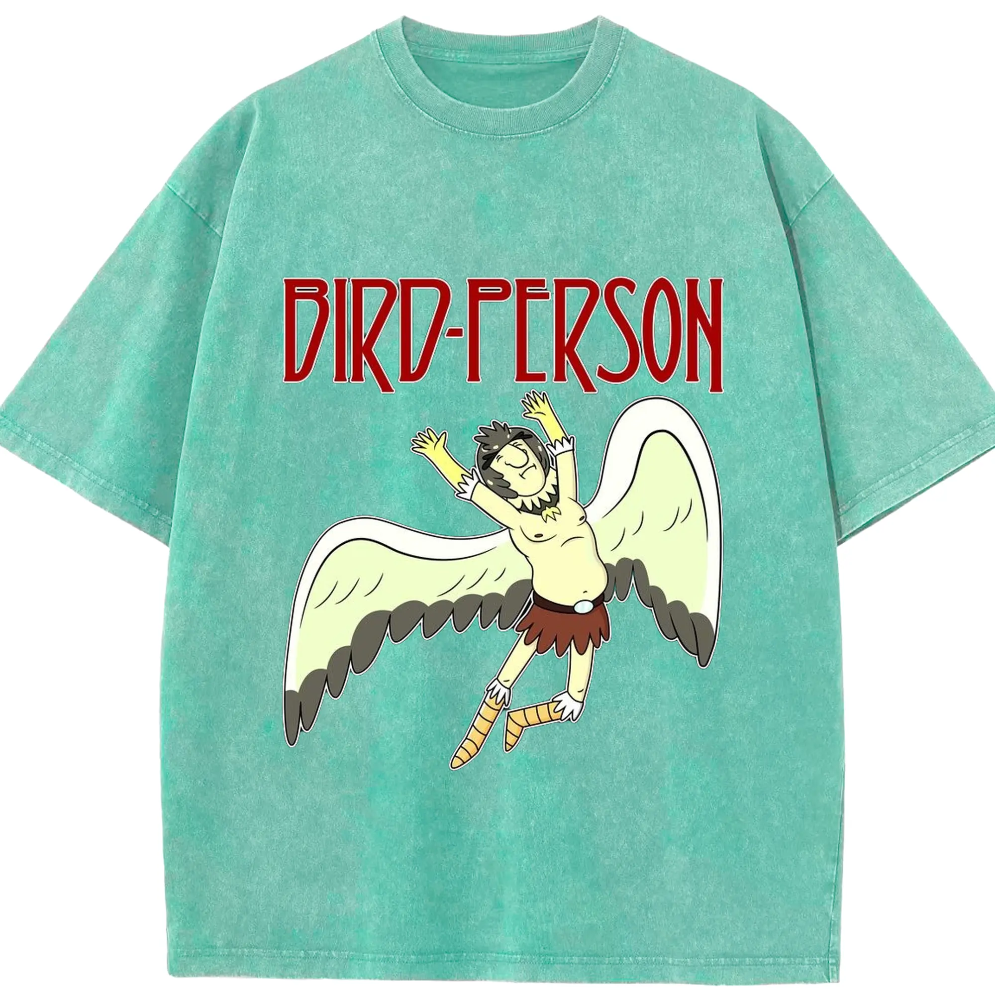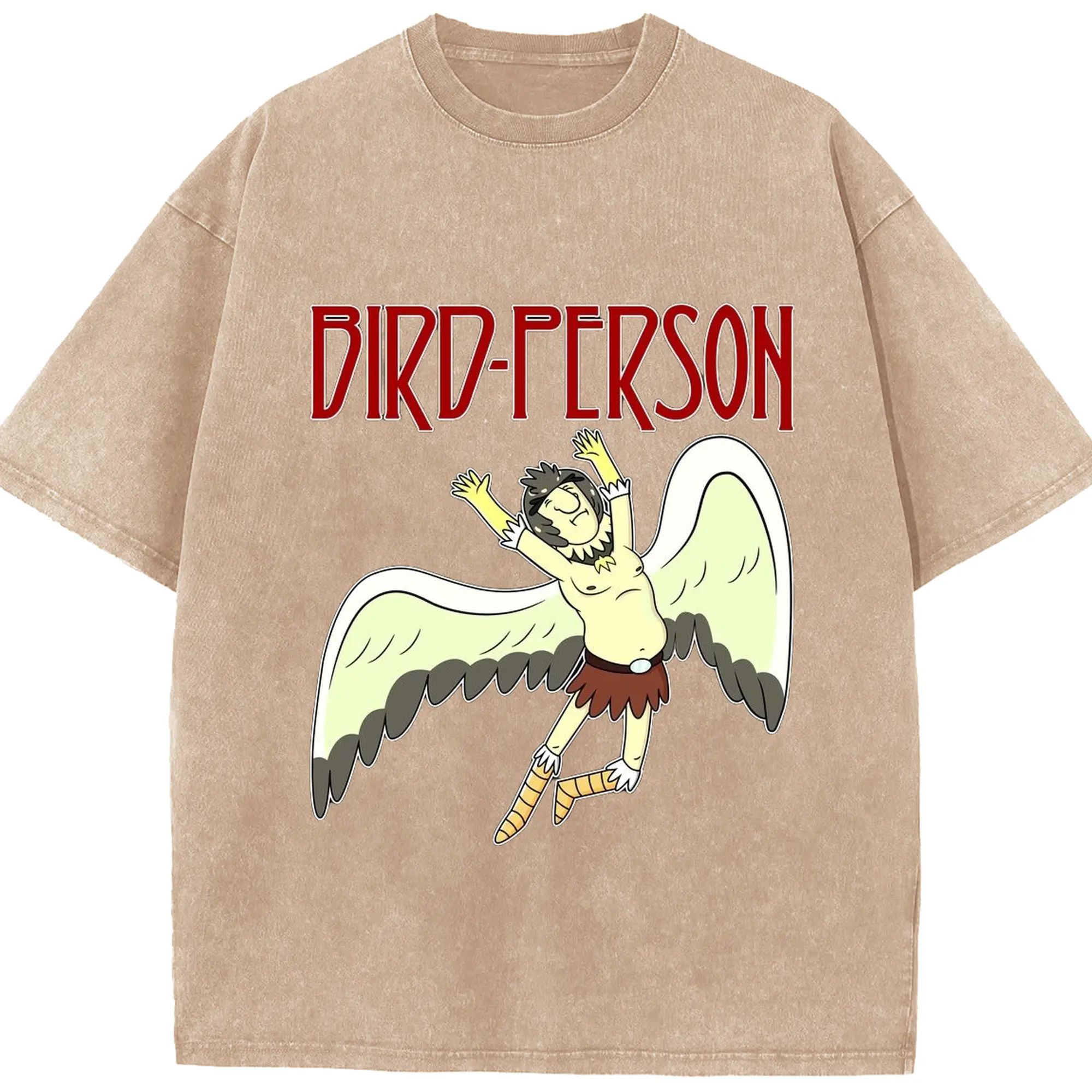 Rick and Morty Birdperson shirt - Washed Vintage Look 230g Cotton Oversized T-Shirt With Front Heat Transfer Print – Soft, Lightweight, Stylish Fit – Comfortable Casual Wear For Sports & Everyday Use