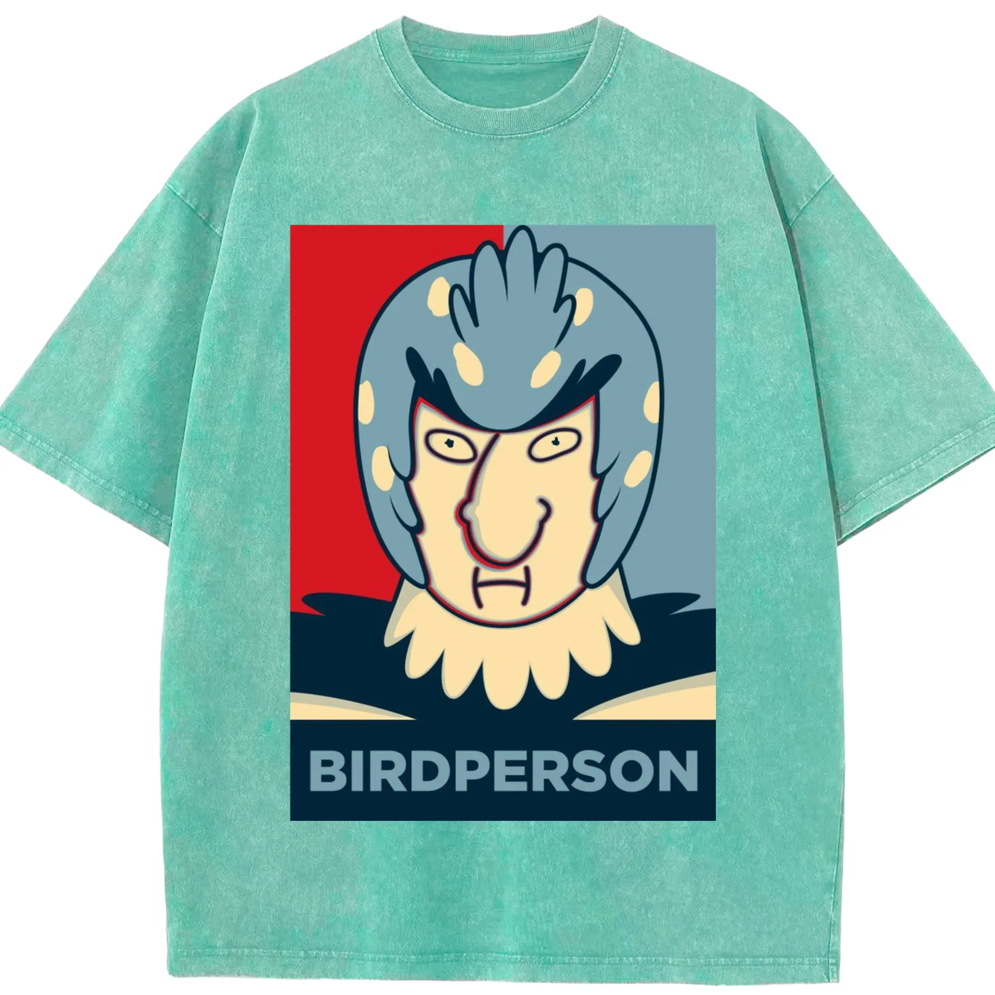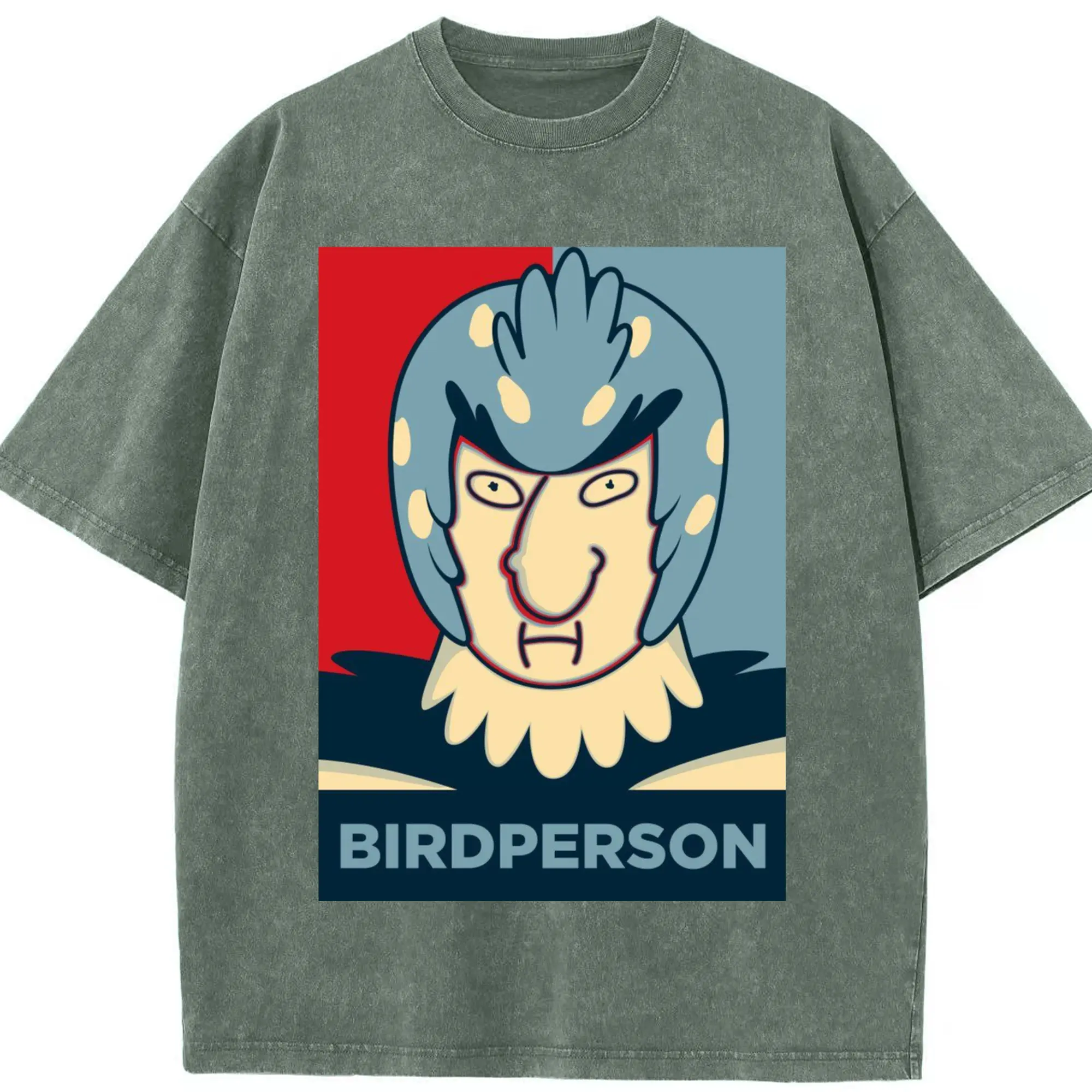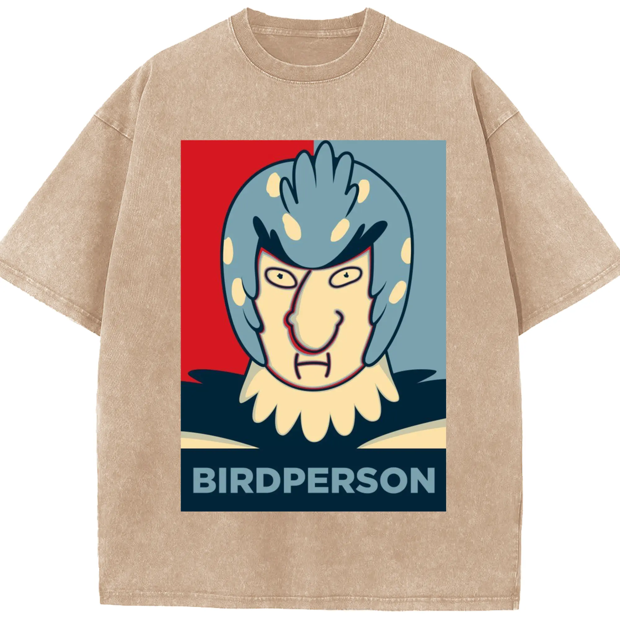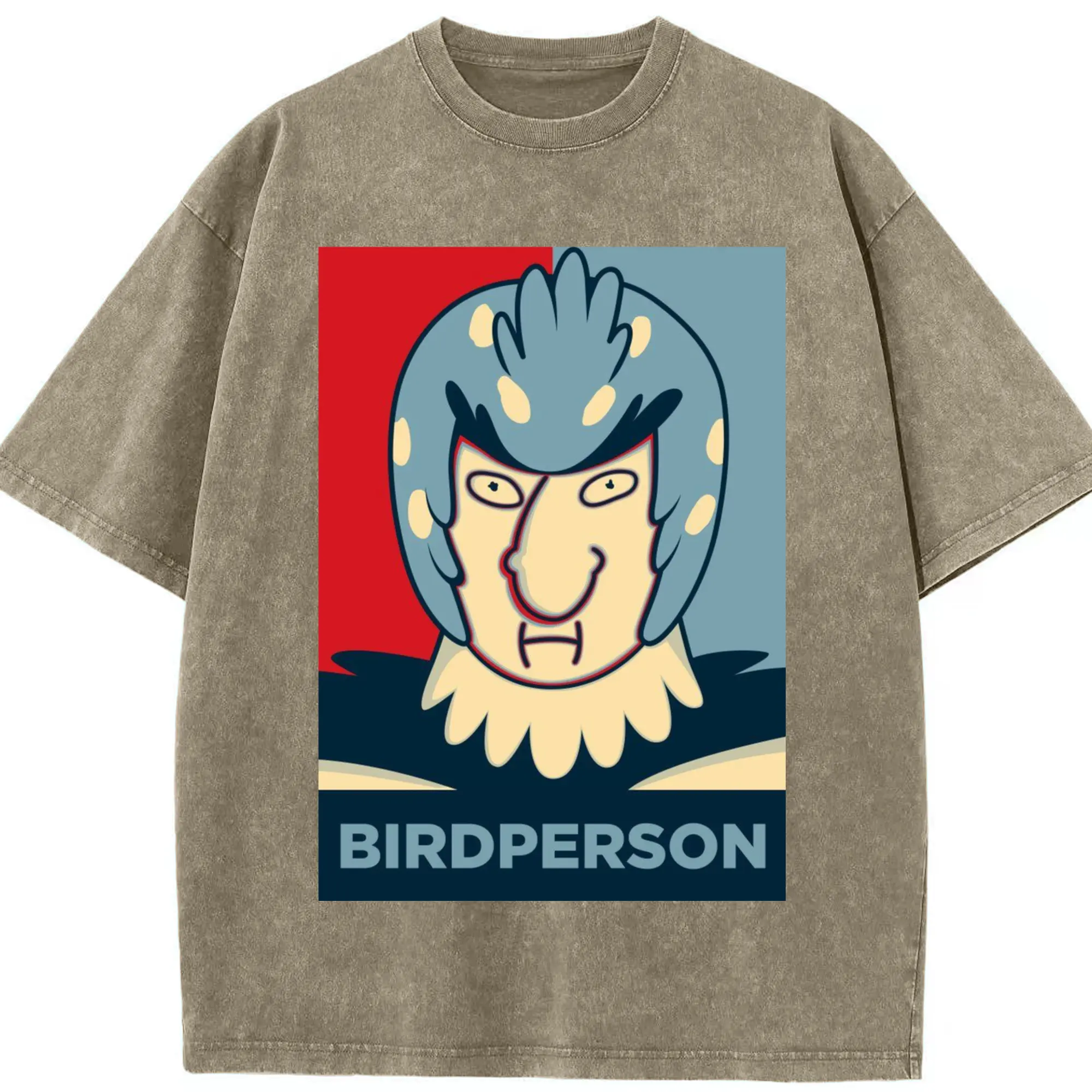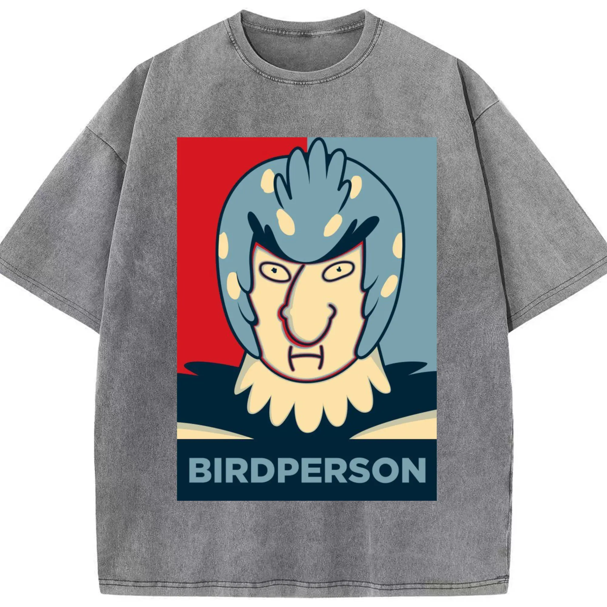 Rick and Morty Birdperson t-shirt - Washed Vintage Look 230g Cotton Oversized T-Shirt With Front Heat Transfer Print – Soft, Lightweight, Stylish Fit – Comfortable Casual Wear For Sports & Everyday Use